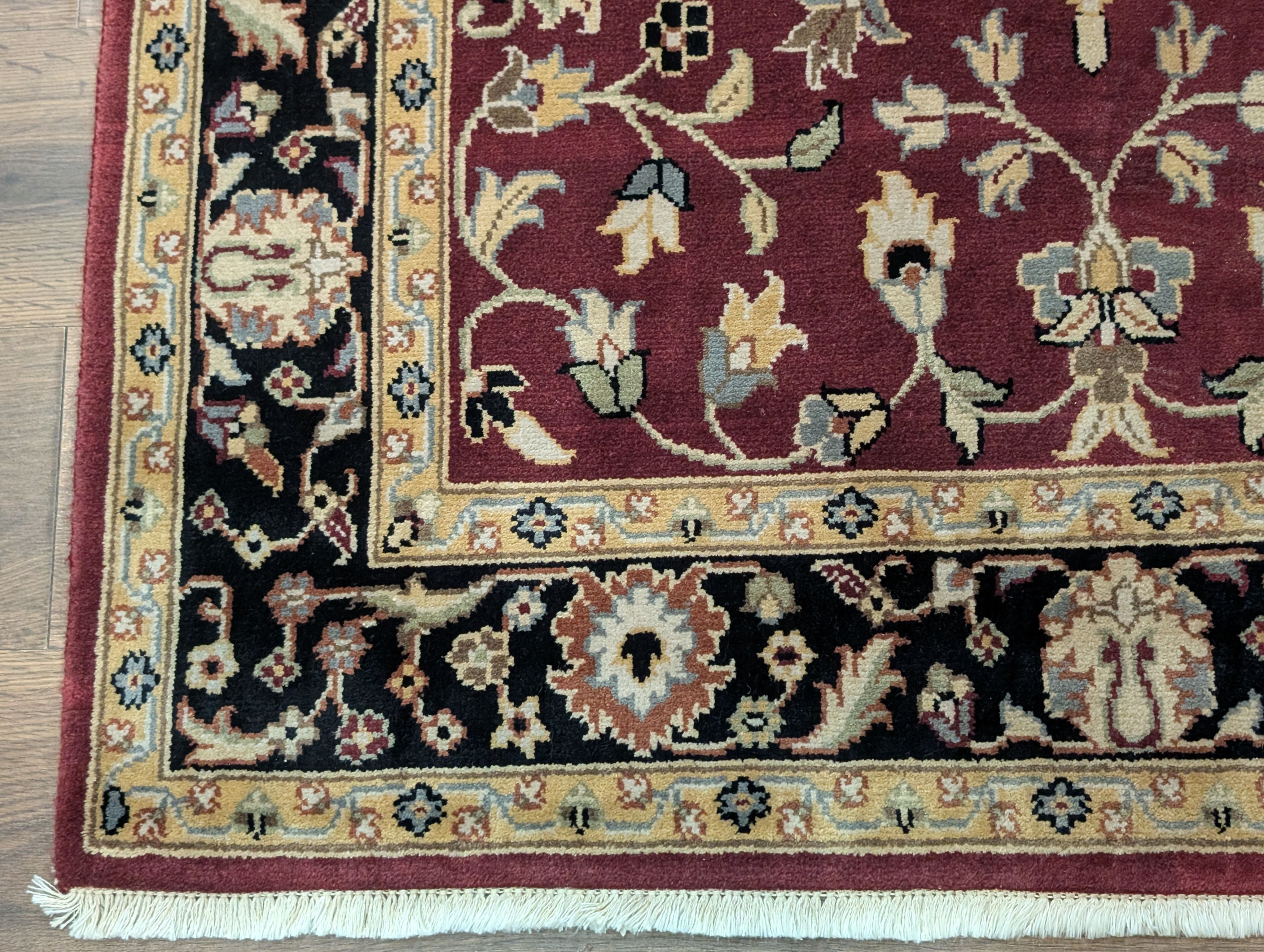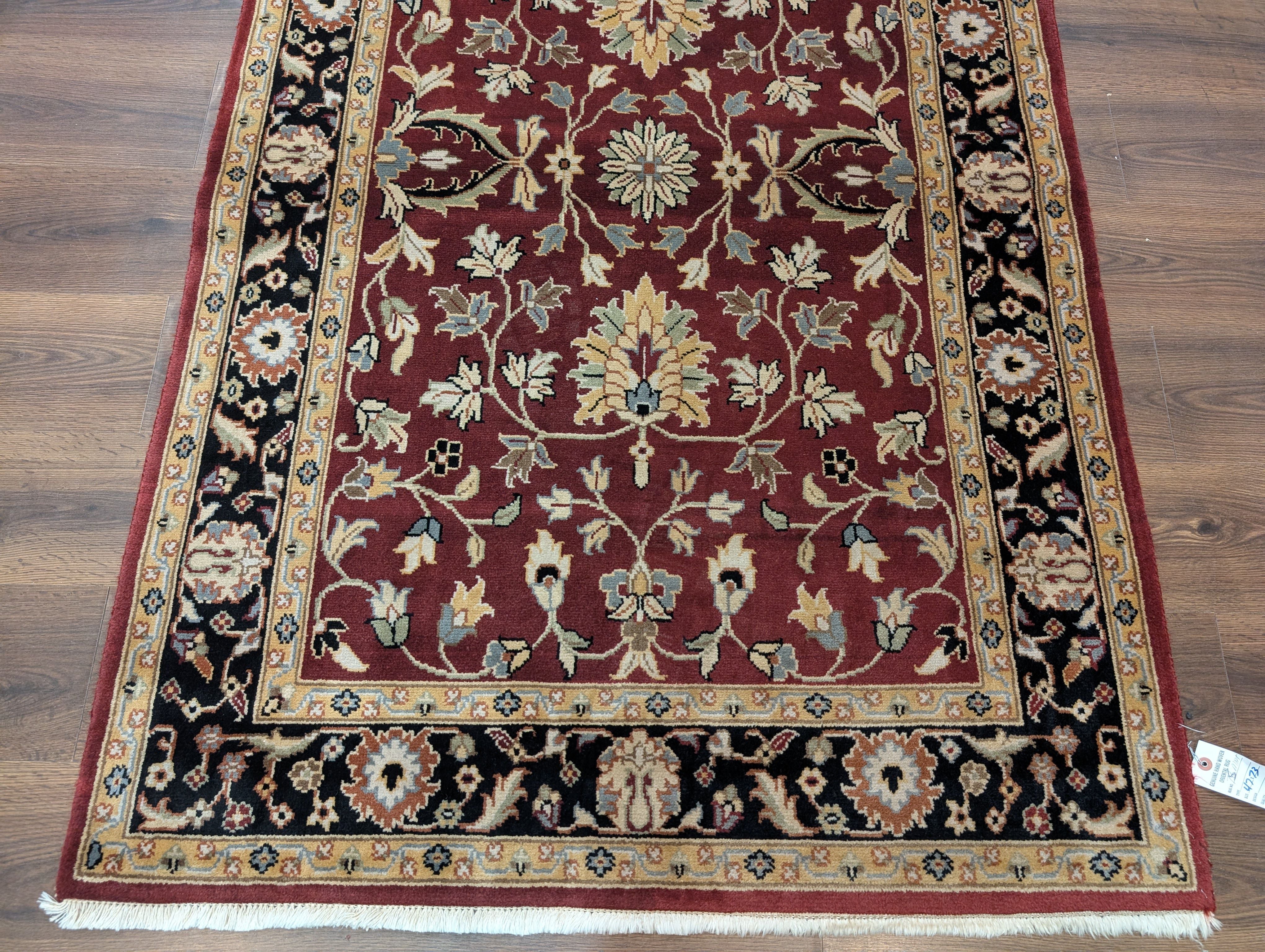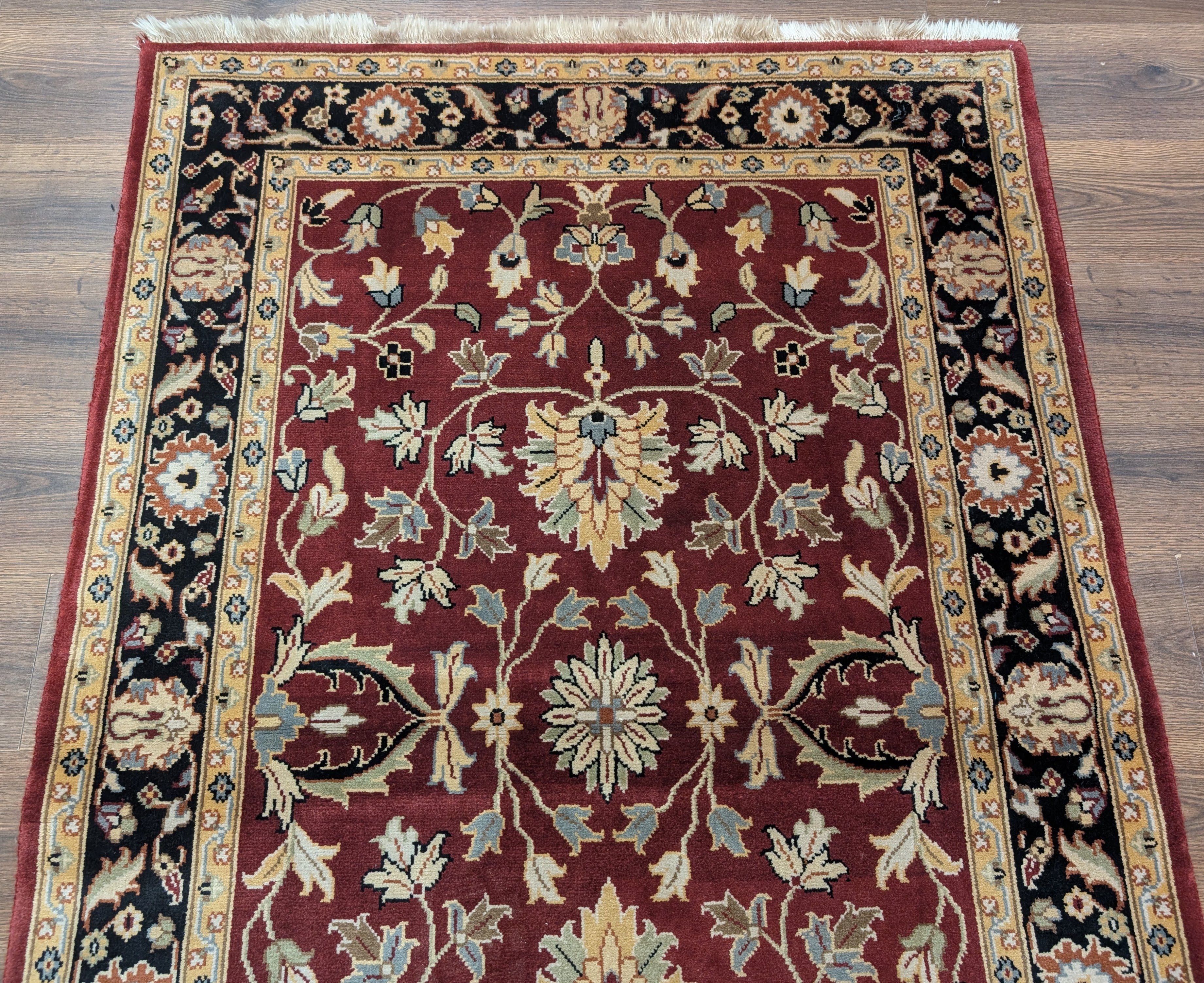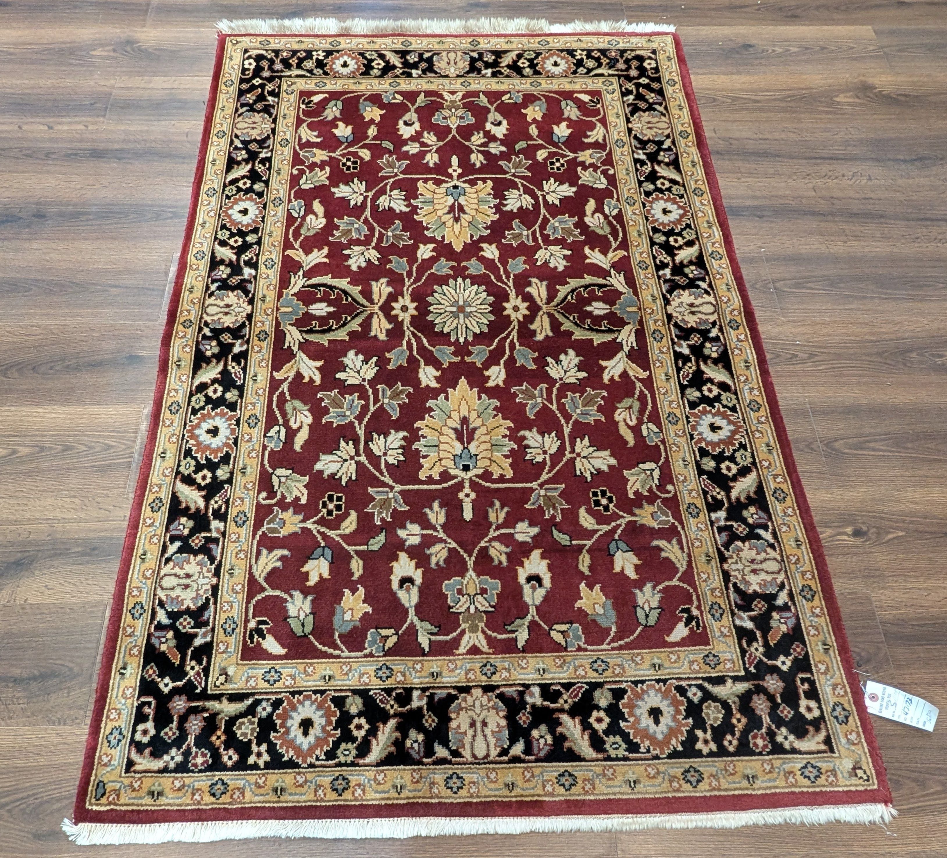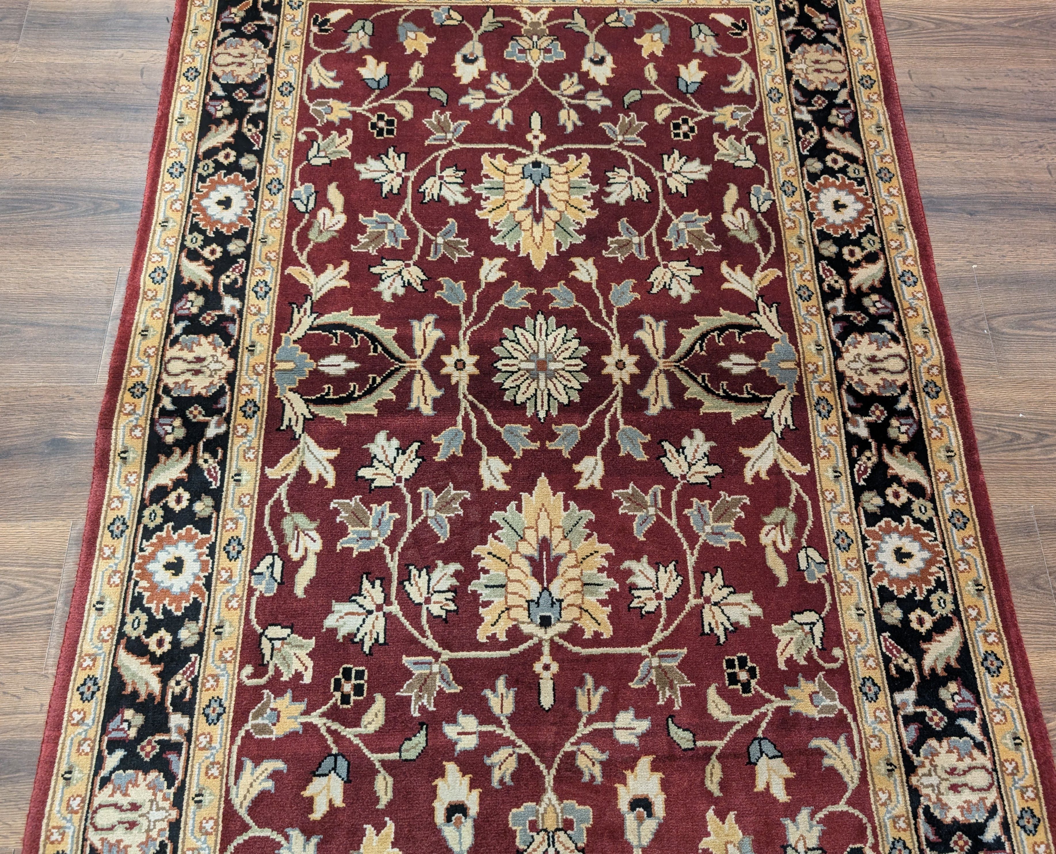 Indo Persian Sarouk Rug 4x6, Burgundy, Wool, Handmade