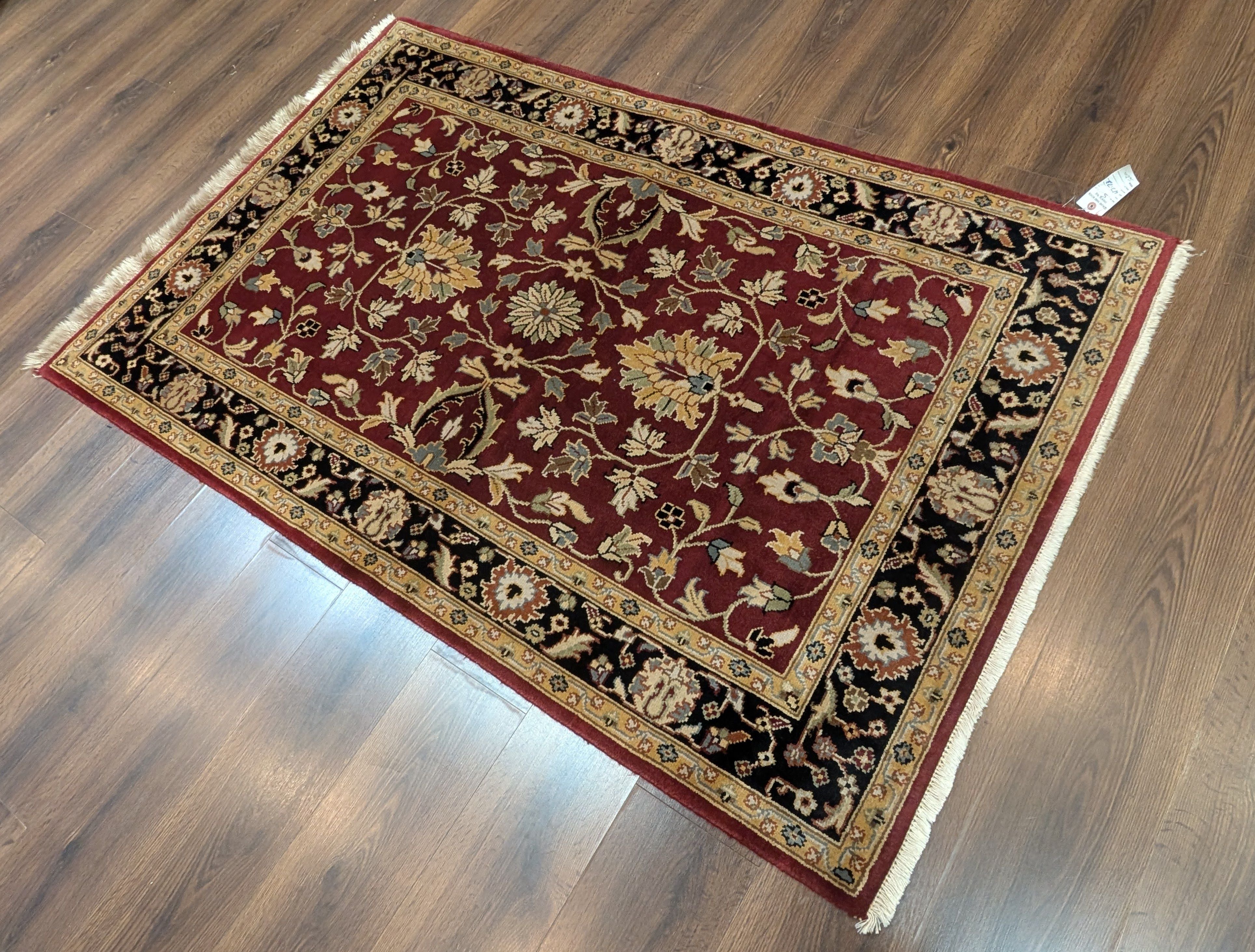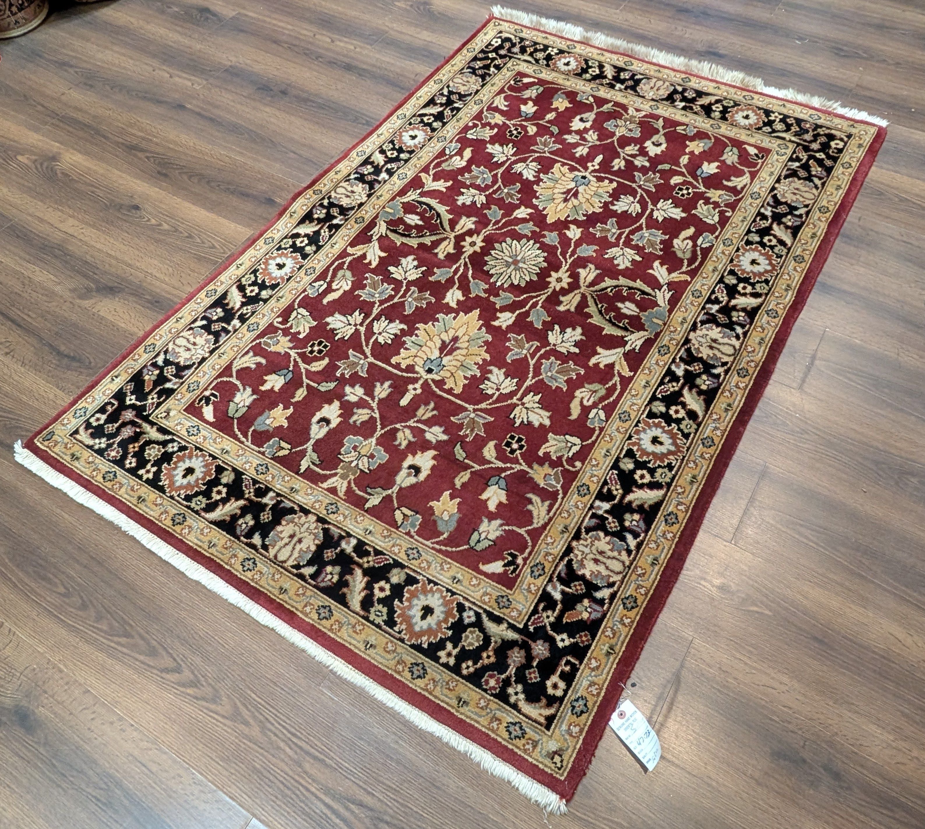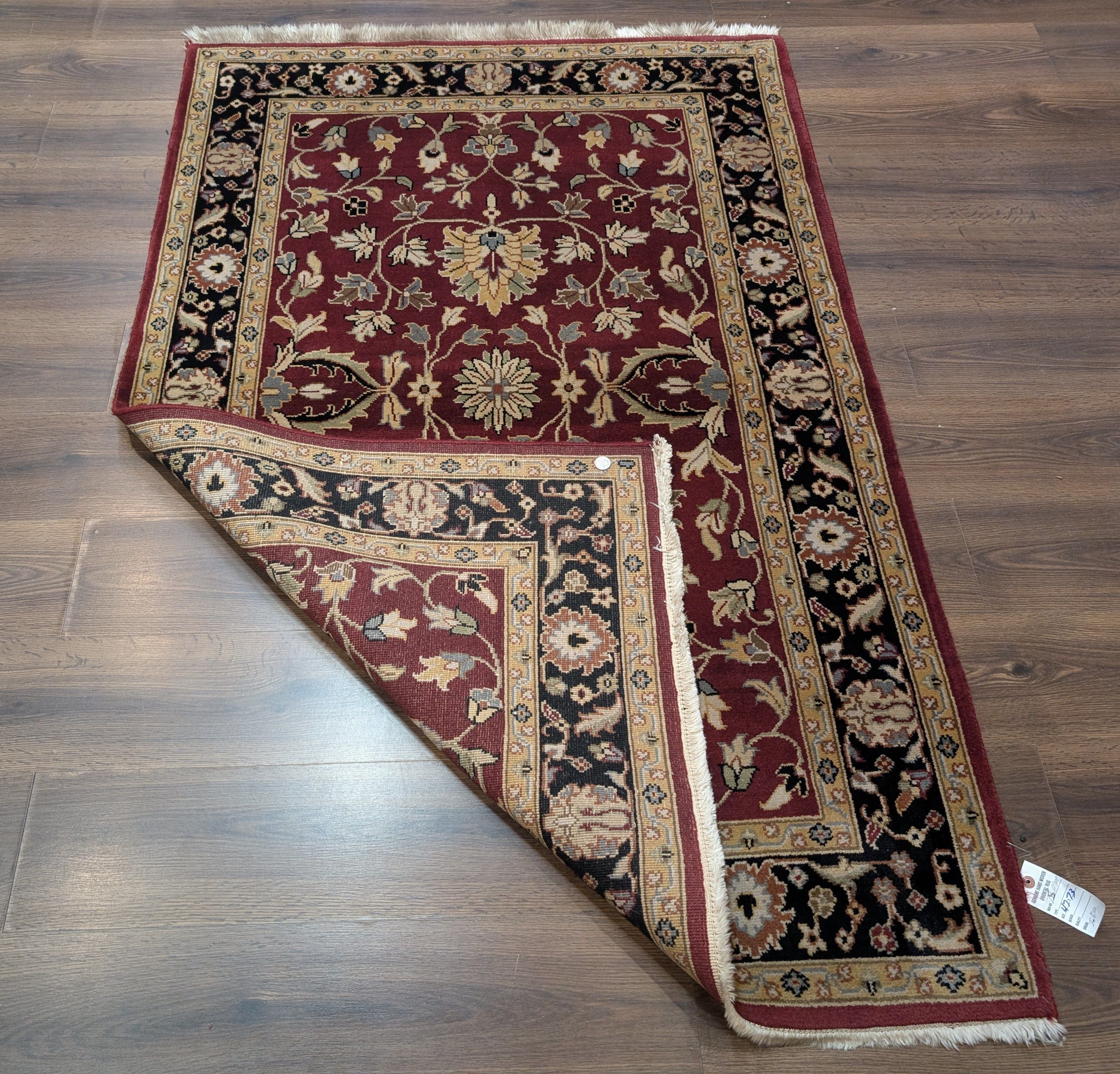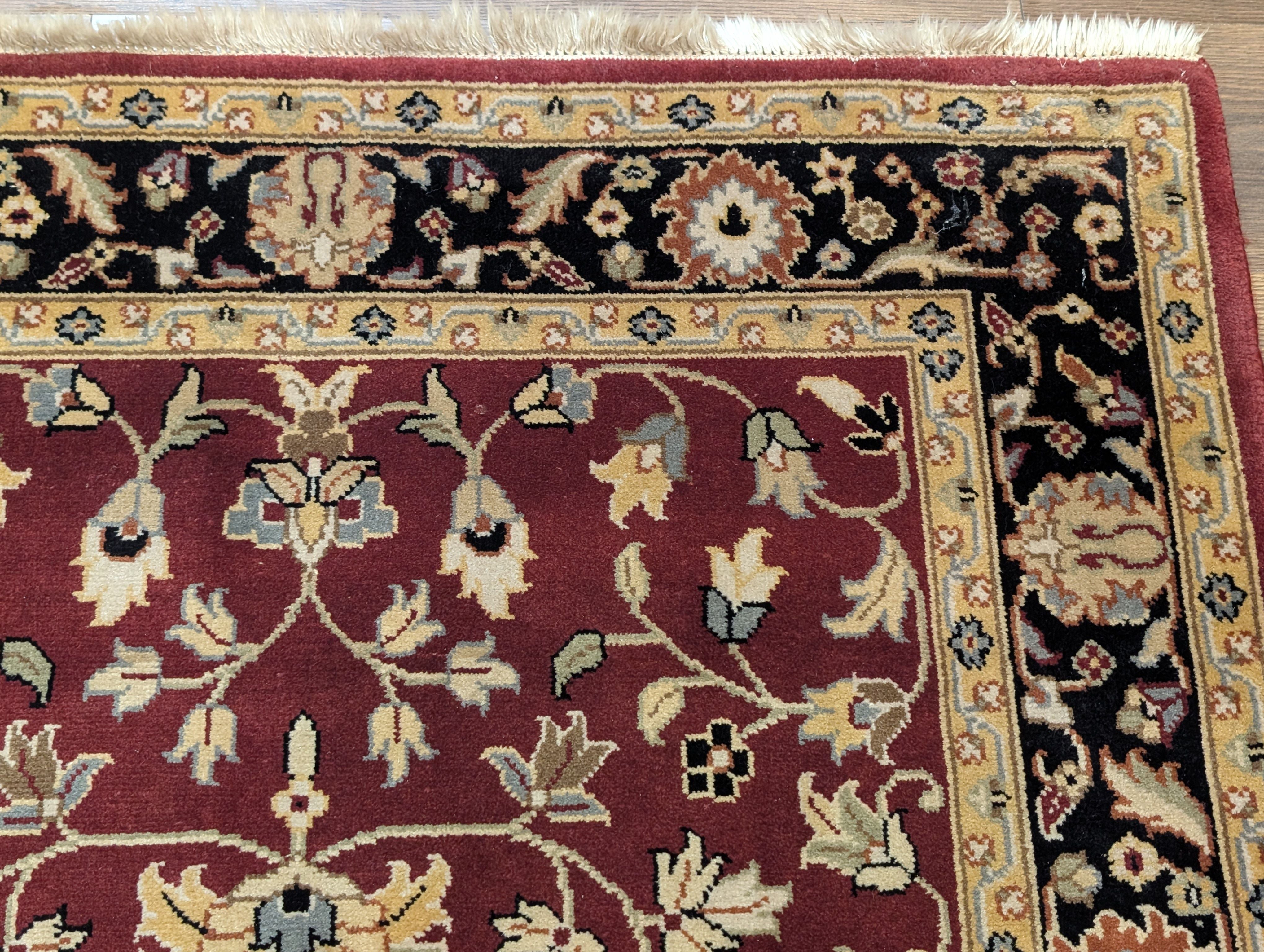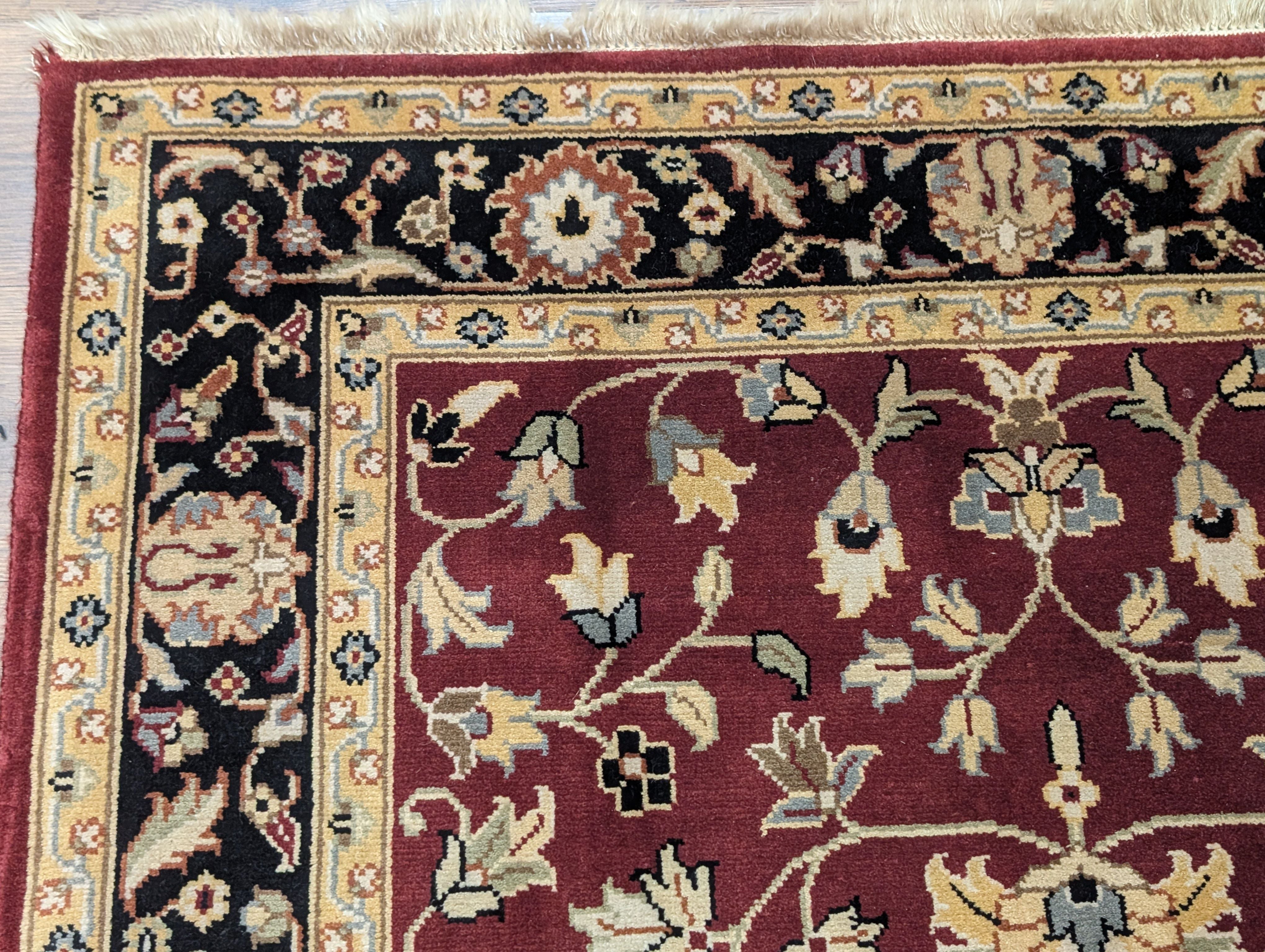 Indo Persian Sarouk Rug 4x6, Burgundy, Wool, Handmade