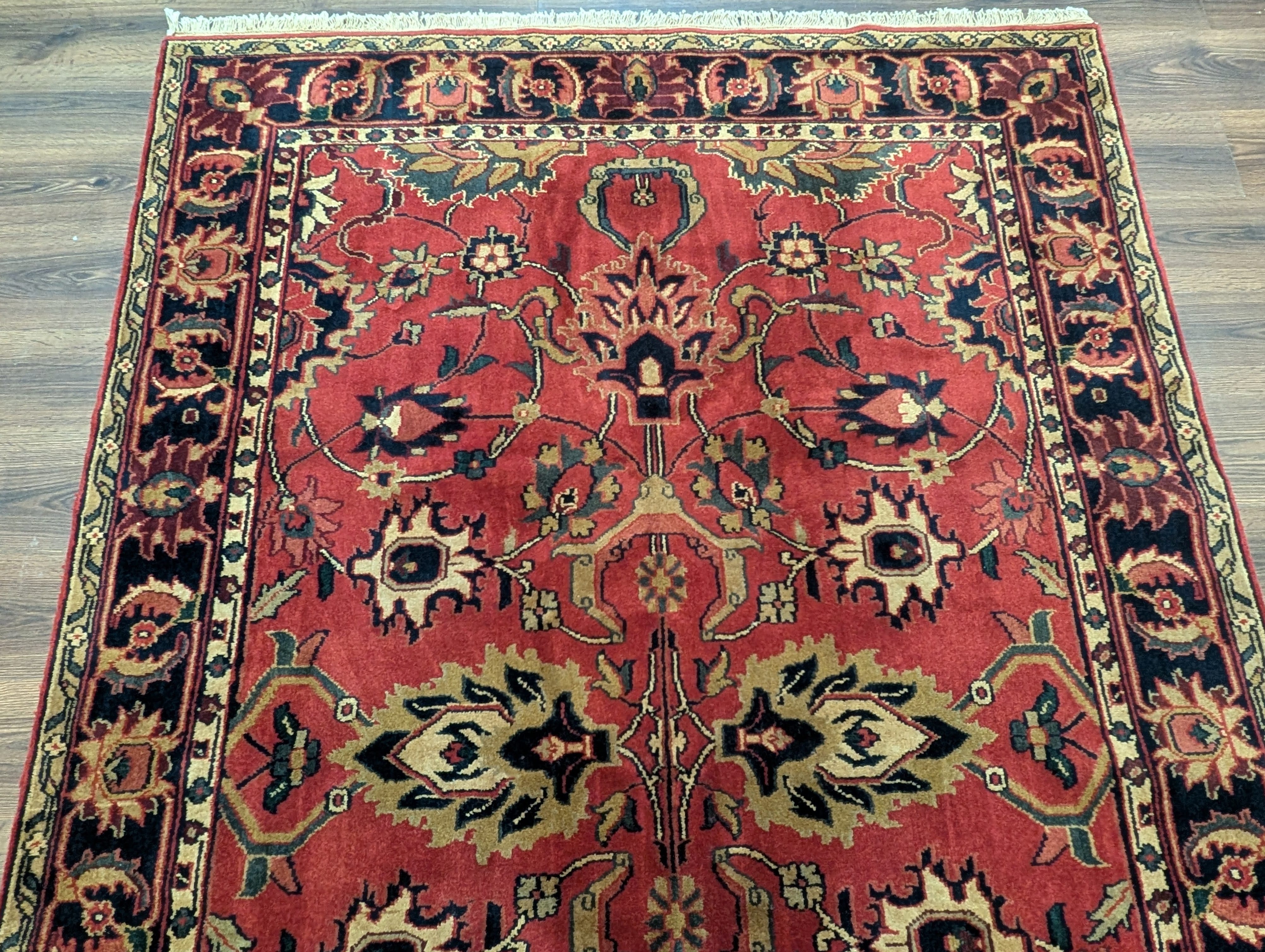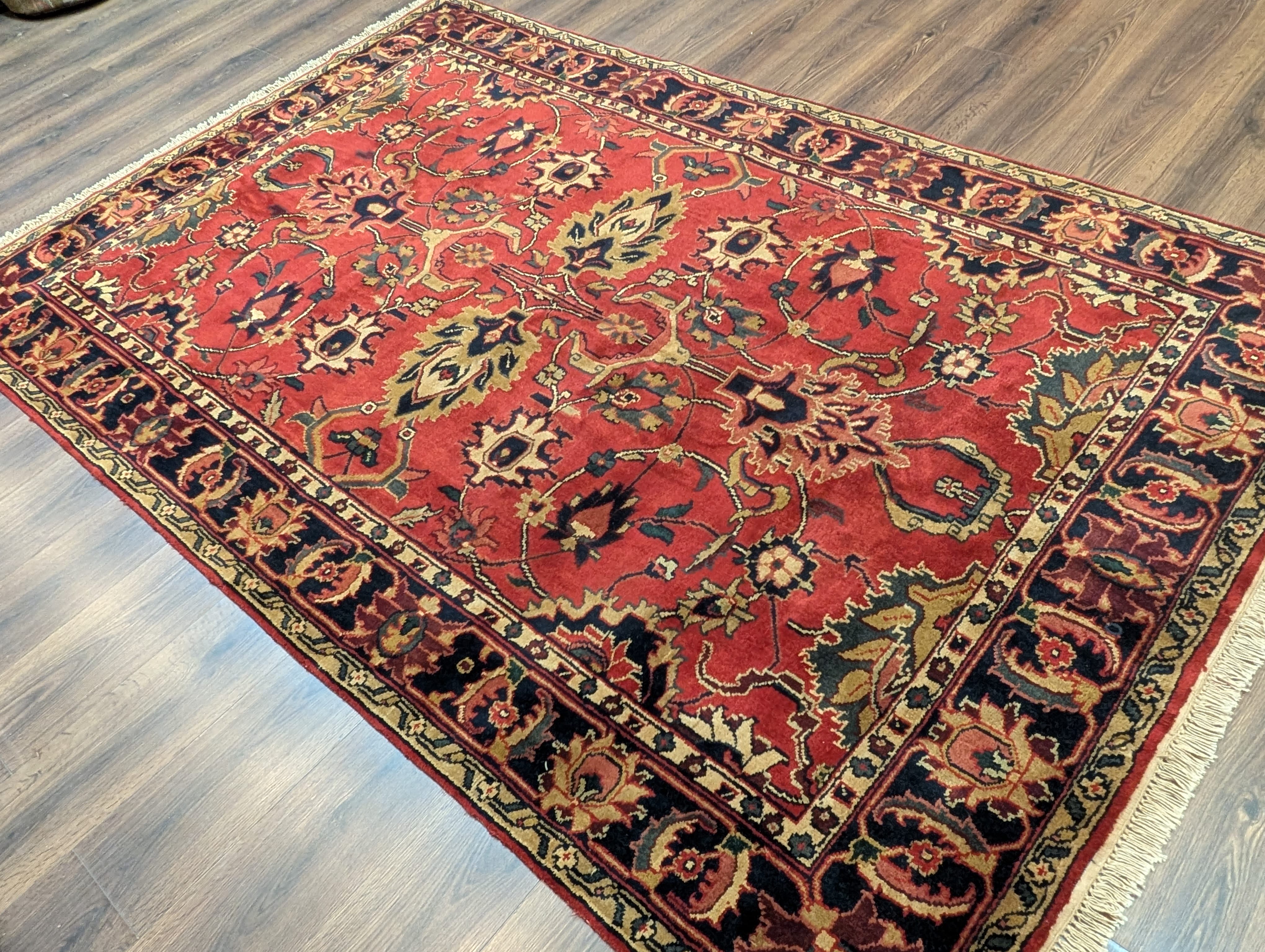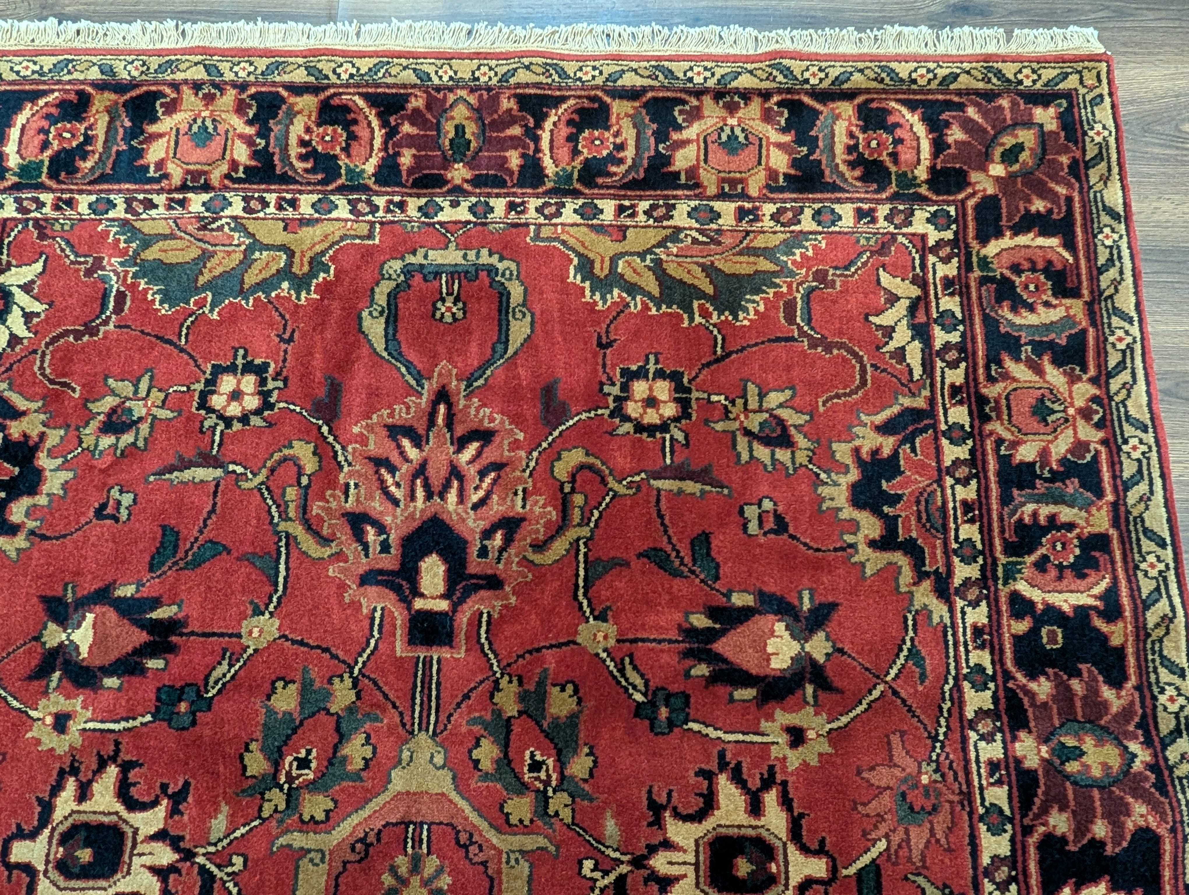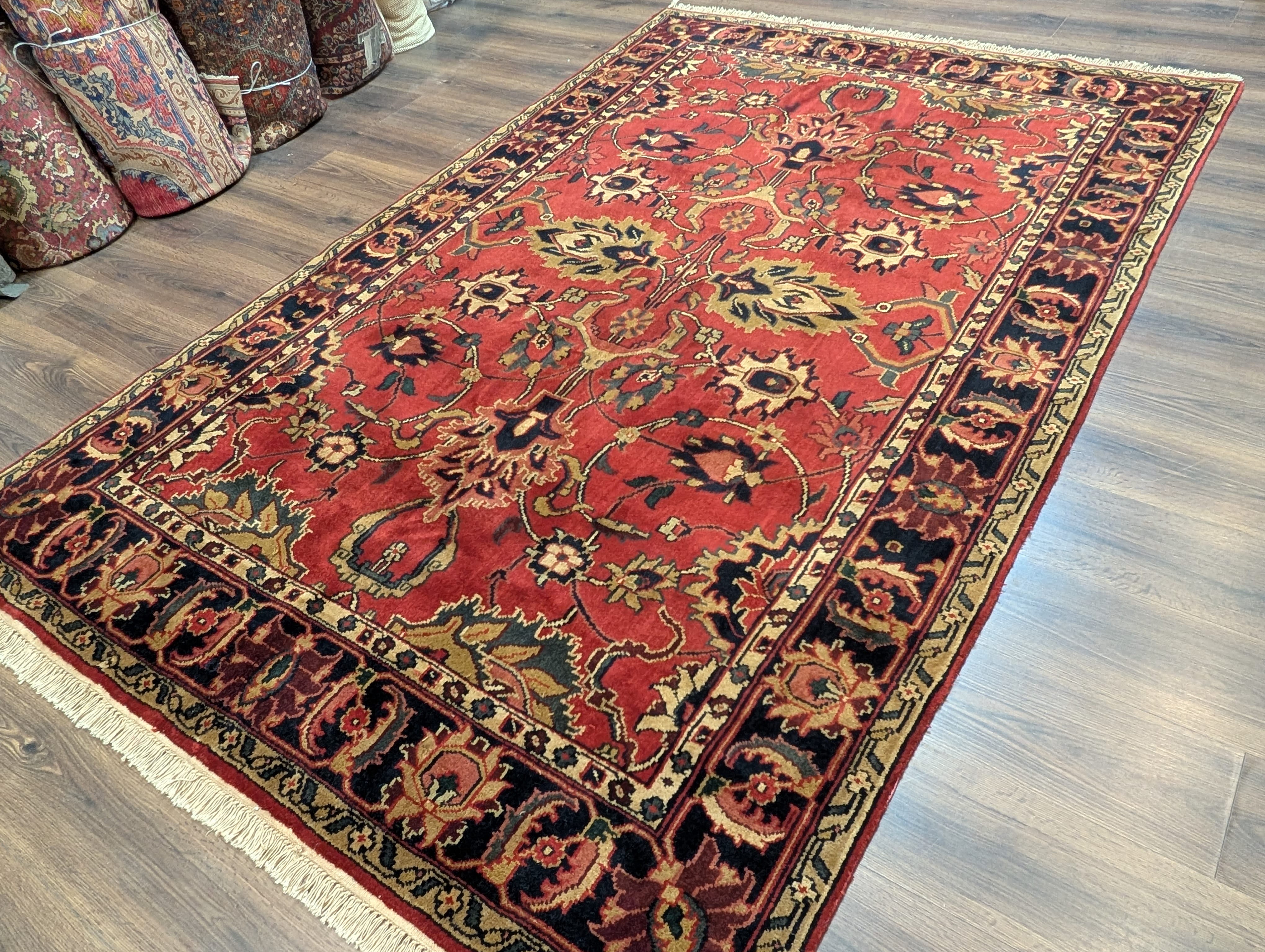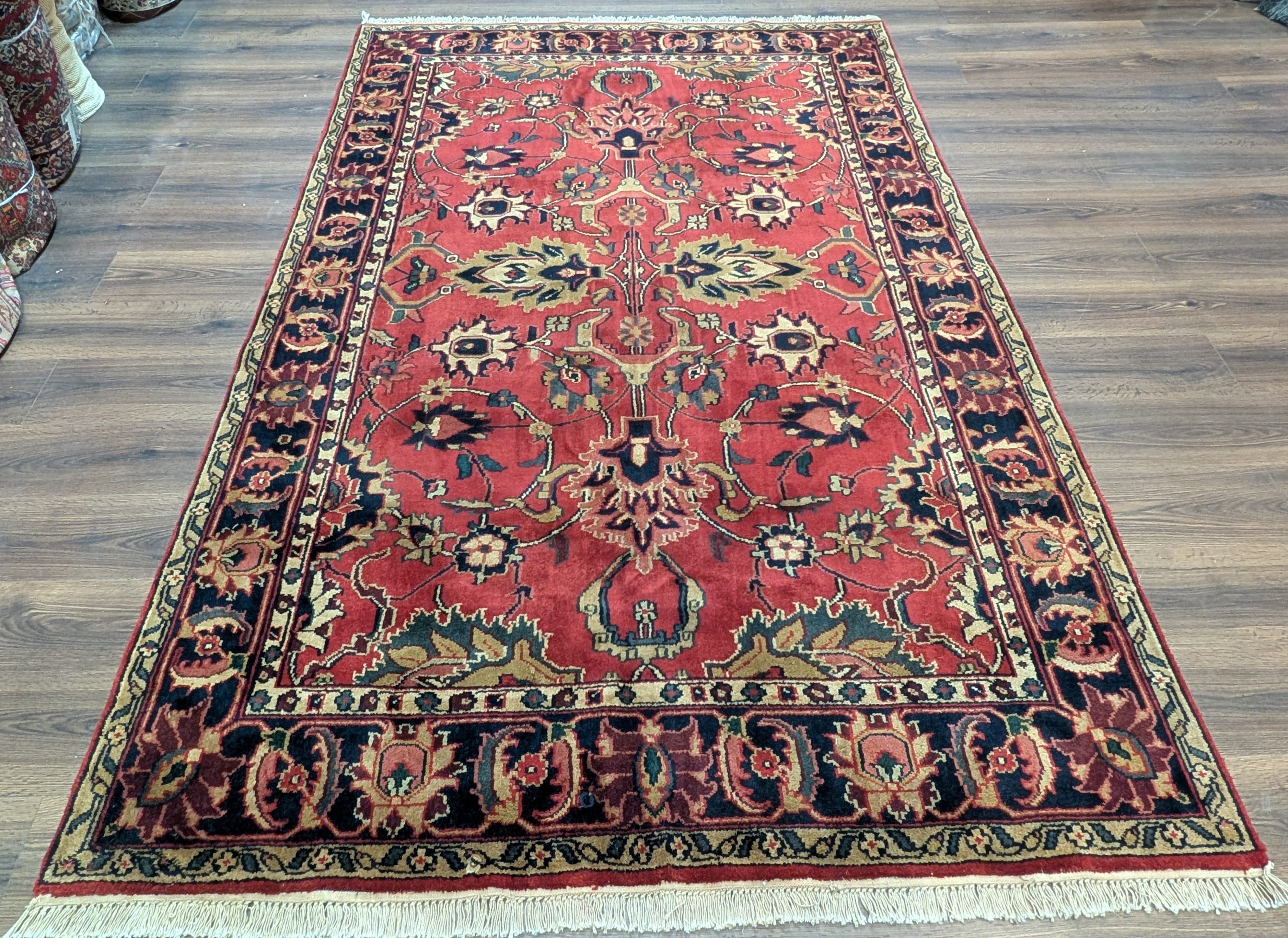 Indo Persian Sarouk Rug 6x9, Mahal Carpet, Wool, Allover Pattern, Red