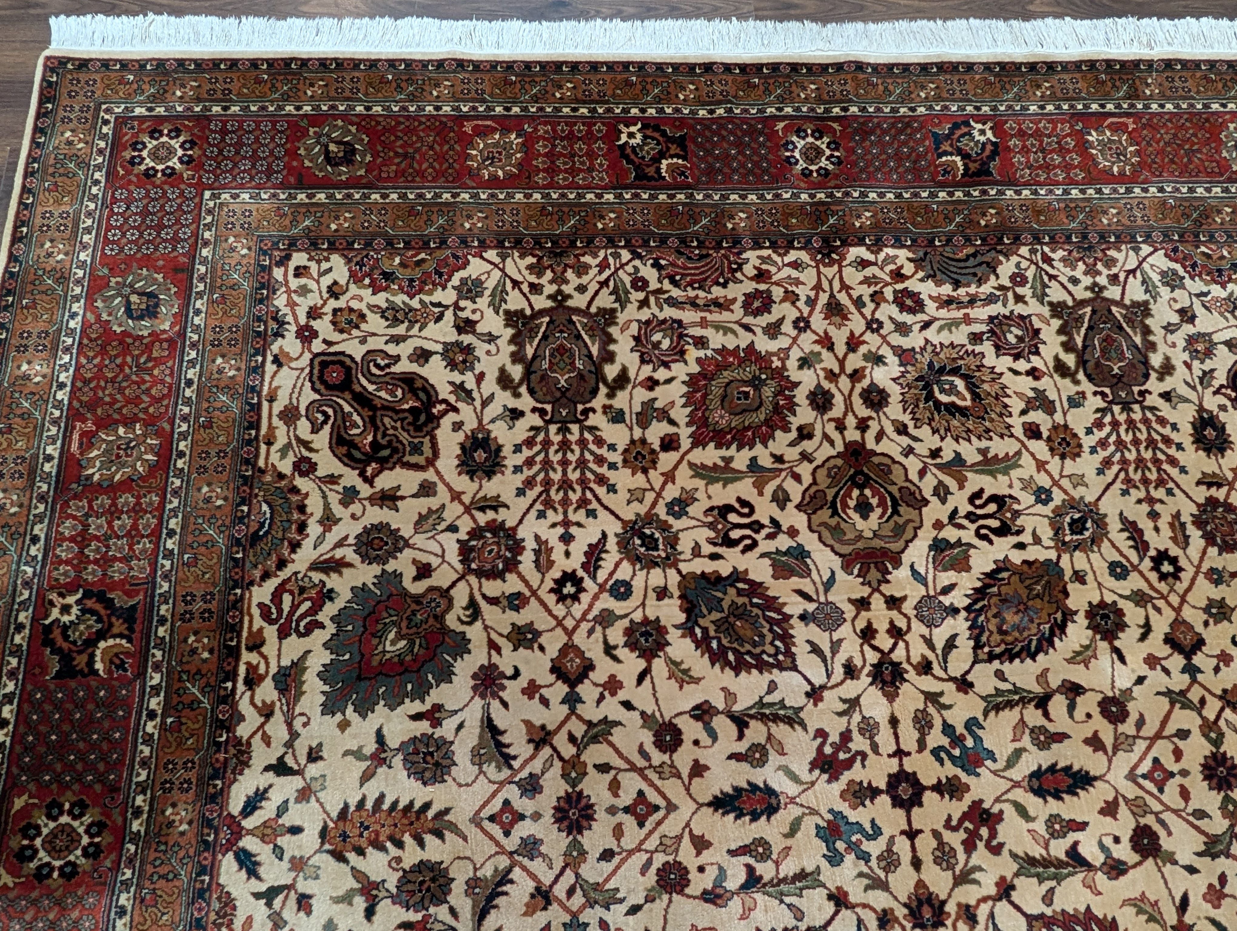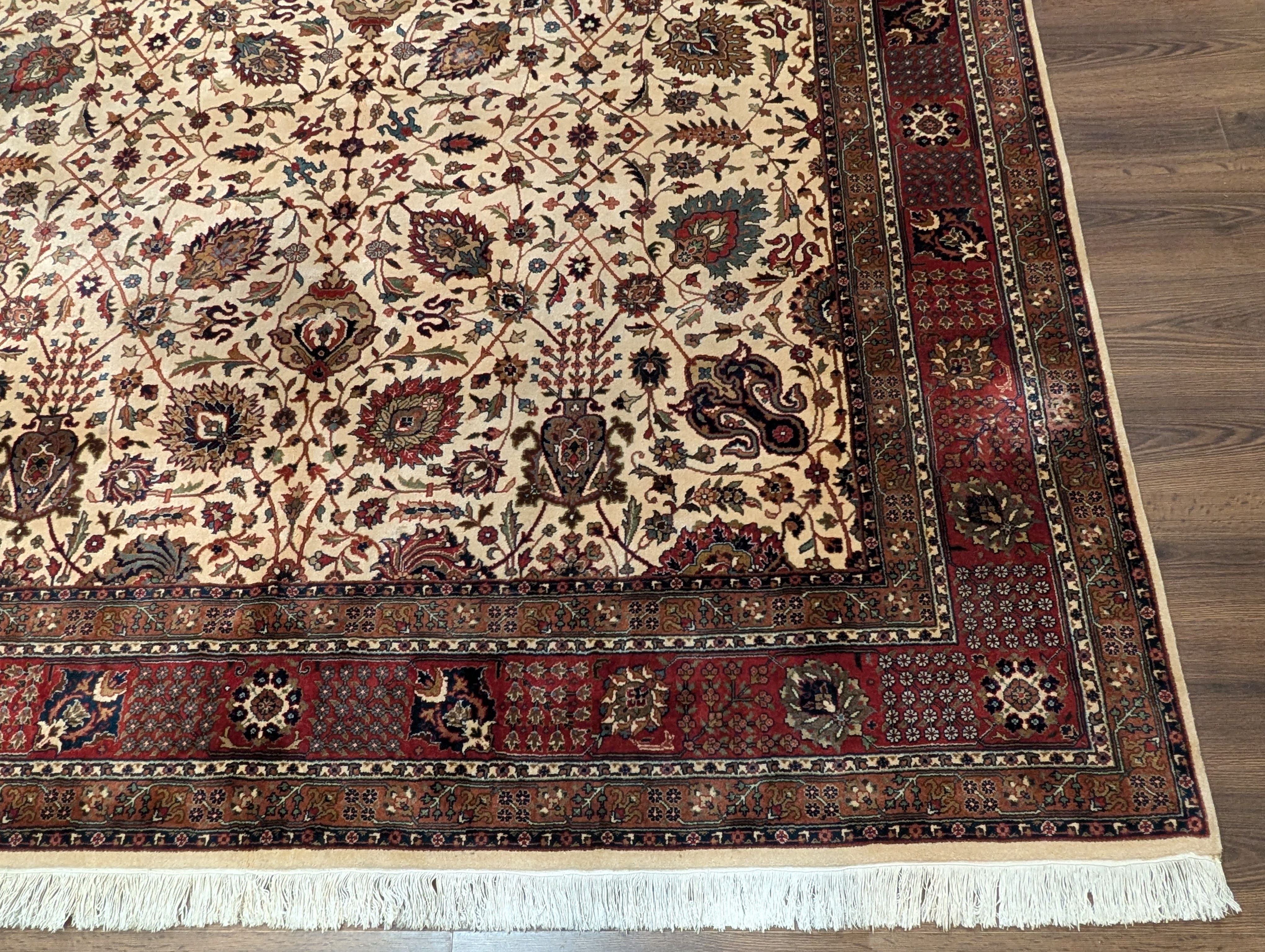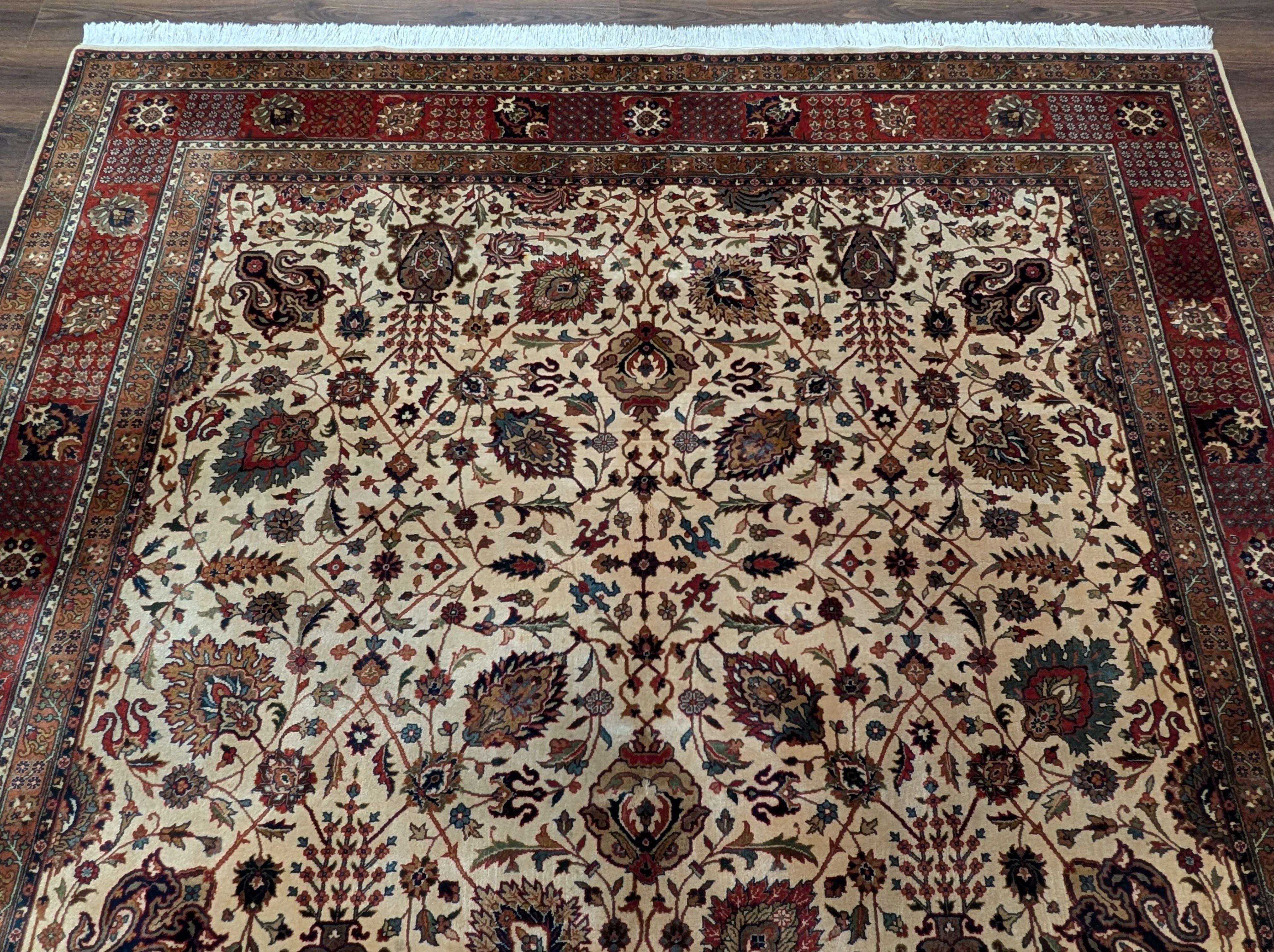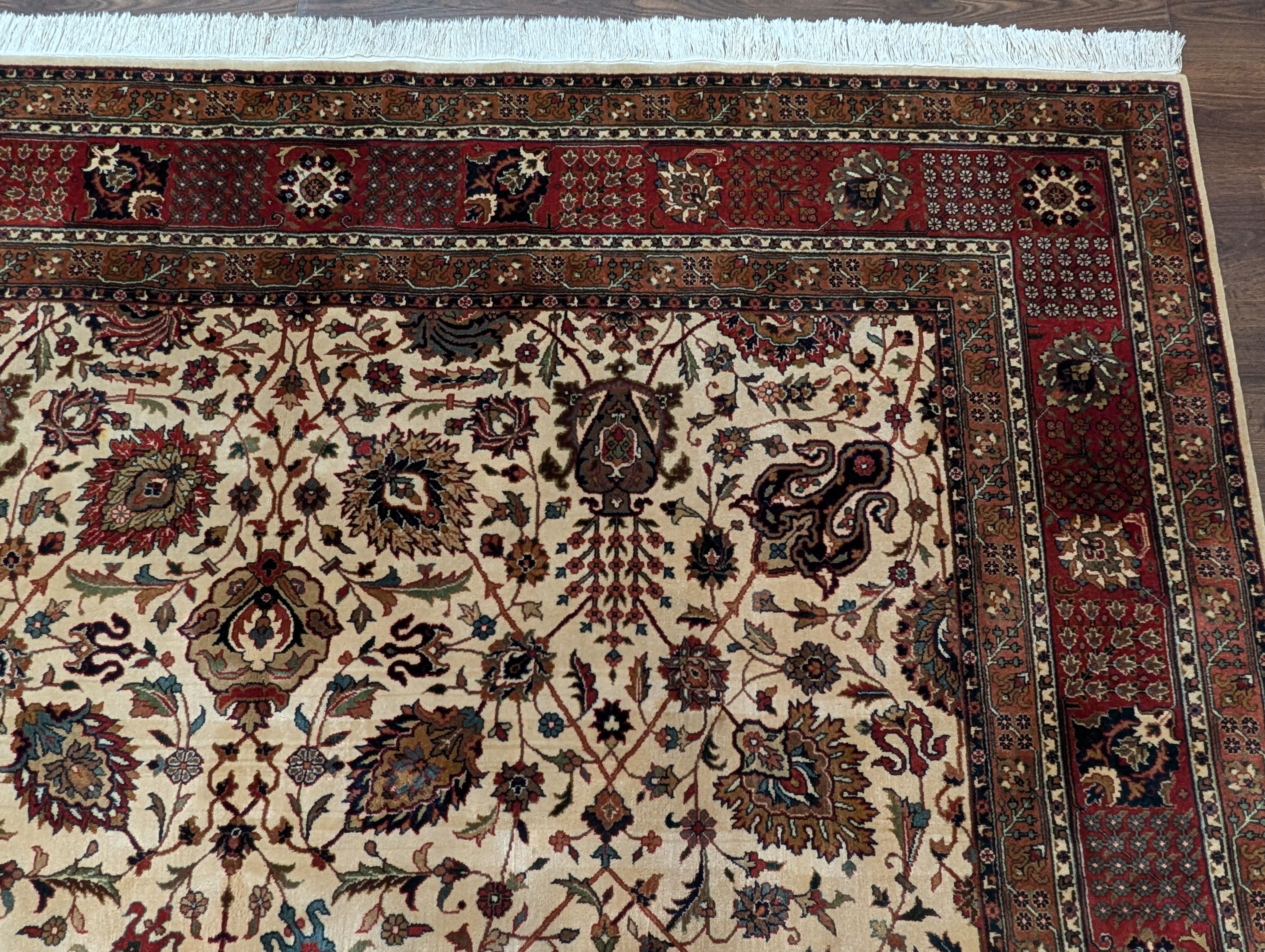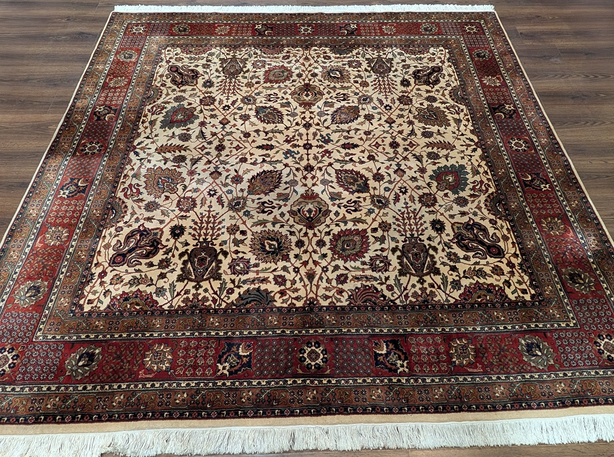 Indo Persian Square Rug 8x8 ft, Wool, Cream, Hand Knotted