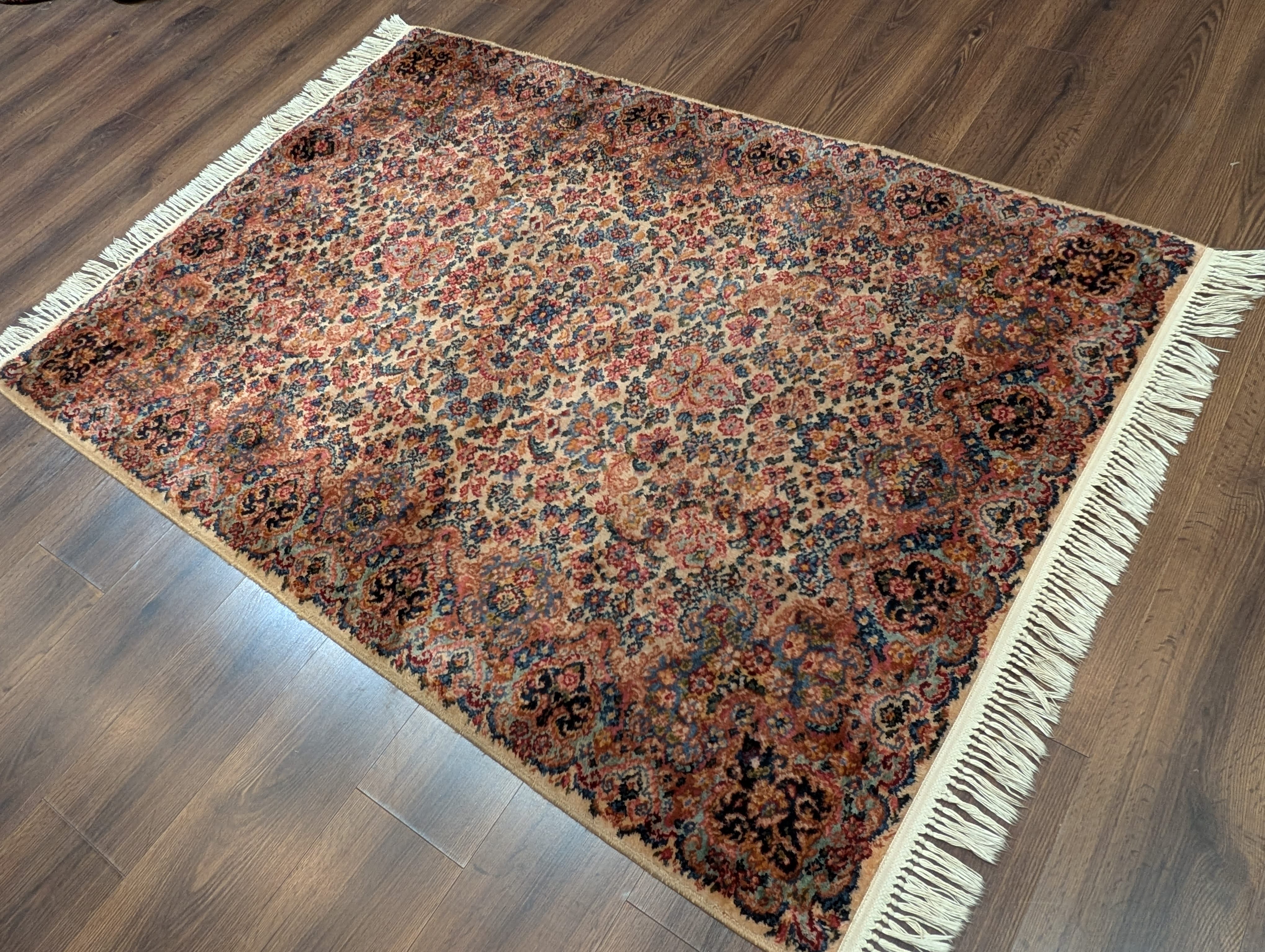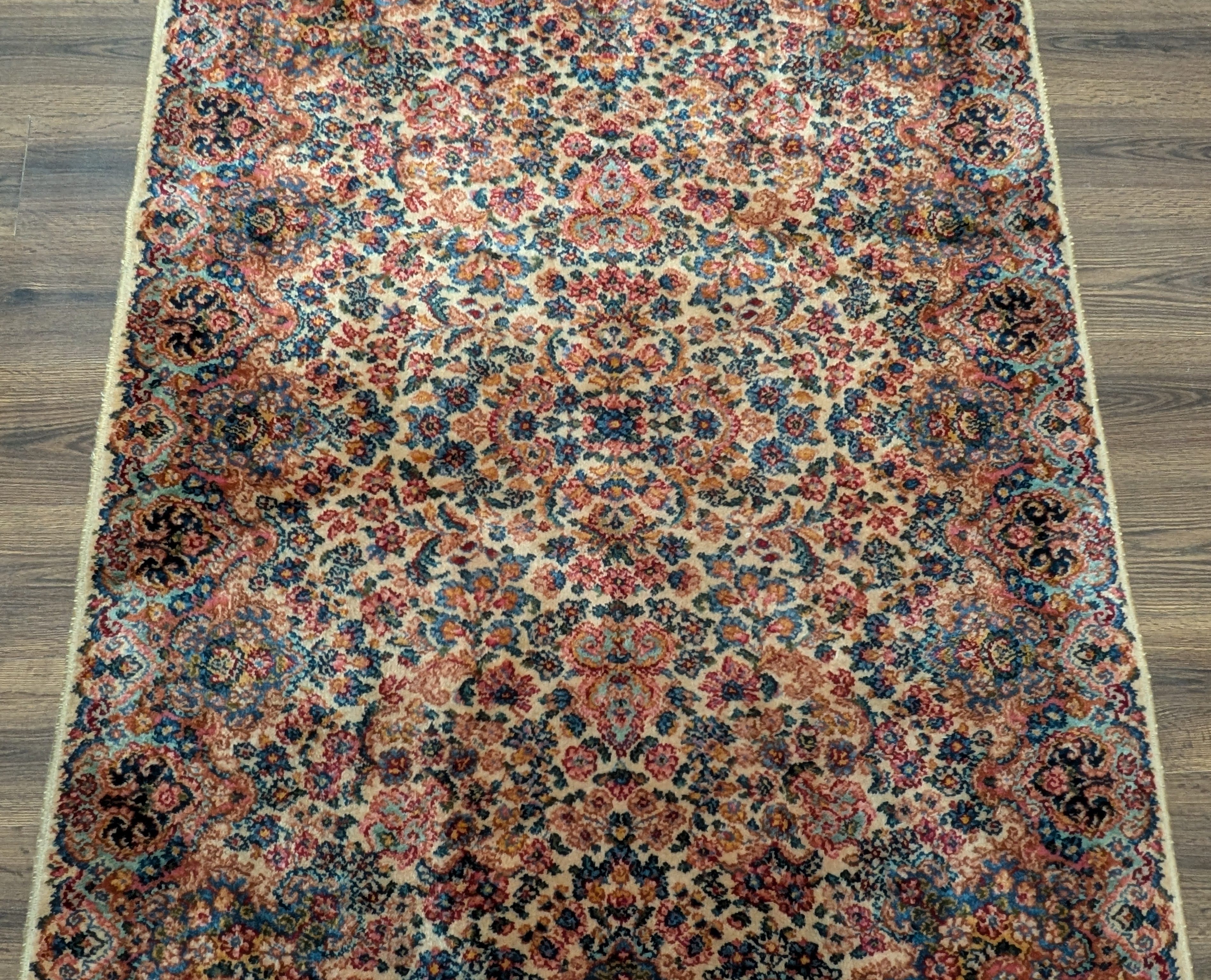 Karastan Kirman Rug 4x6, Ivory Floral Kirman #759, Antique, Wool