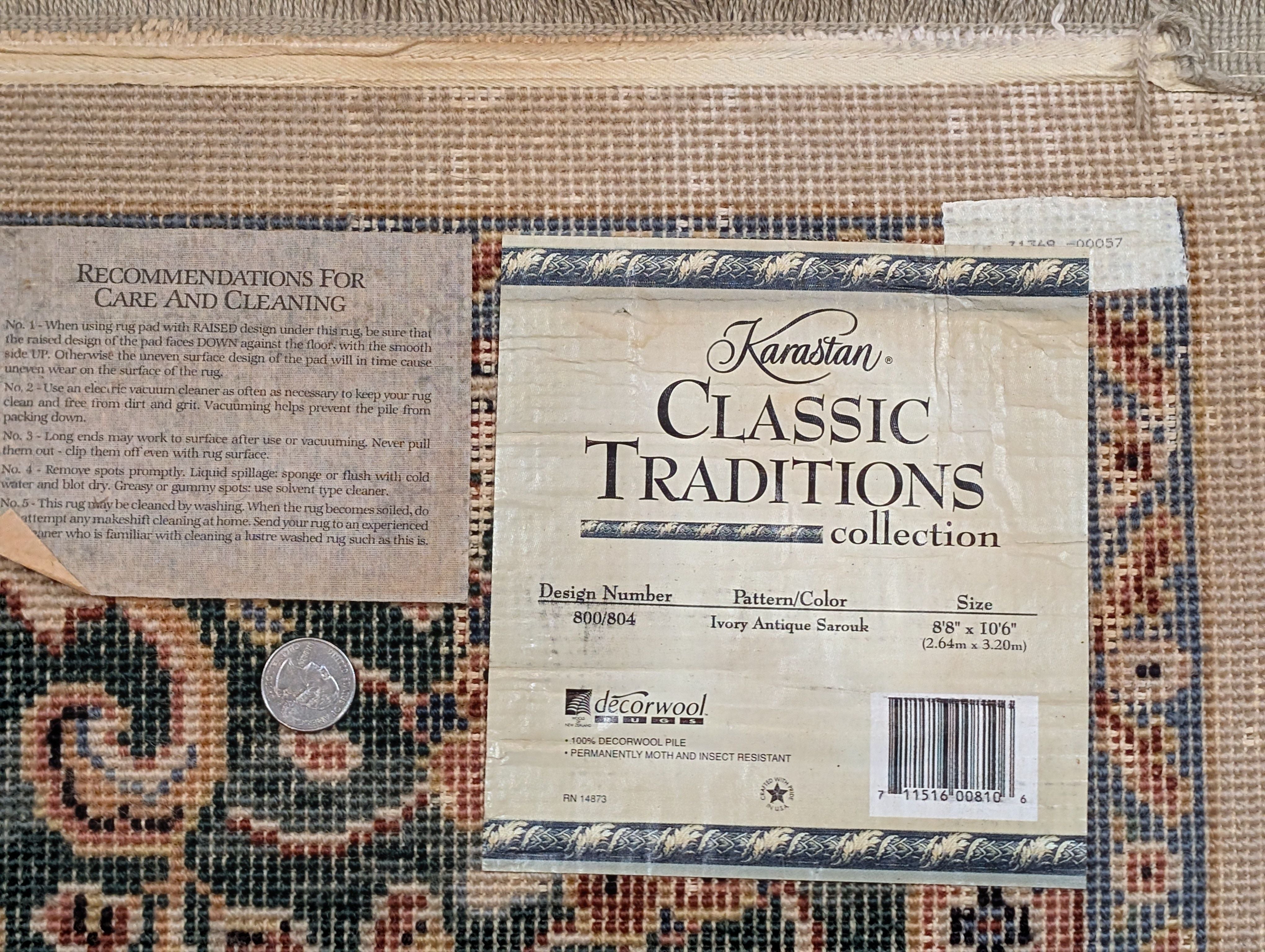 Karastan Rug 8.8 x 10.6, Ivory Antique Sarouk #800-804, Wool, Vintage, Discontinued, Rare