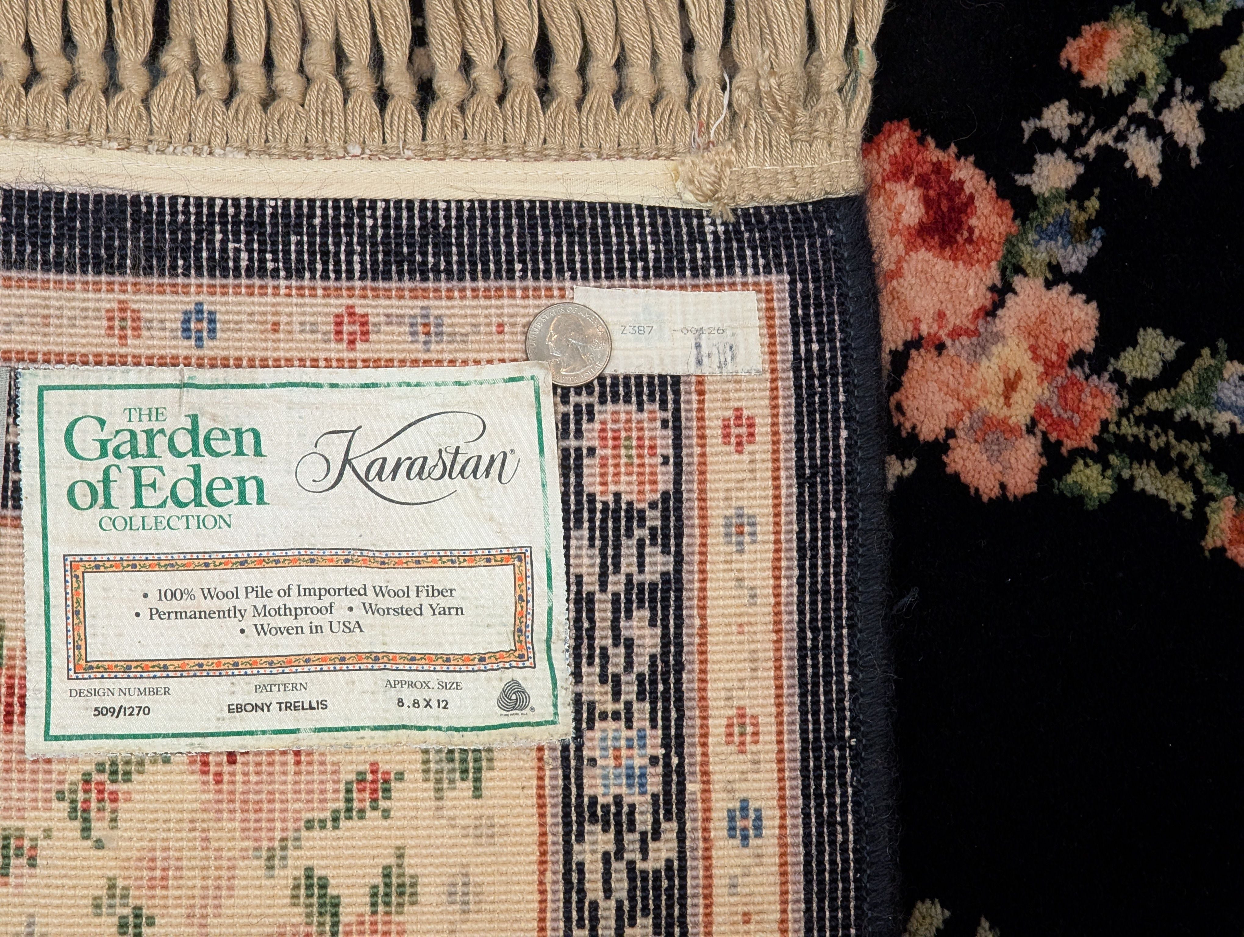 Karastan Rug 8.8 x 12 Garden of Eden #509/1270, Ebony Trellis, Wool