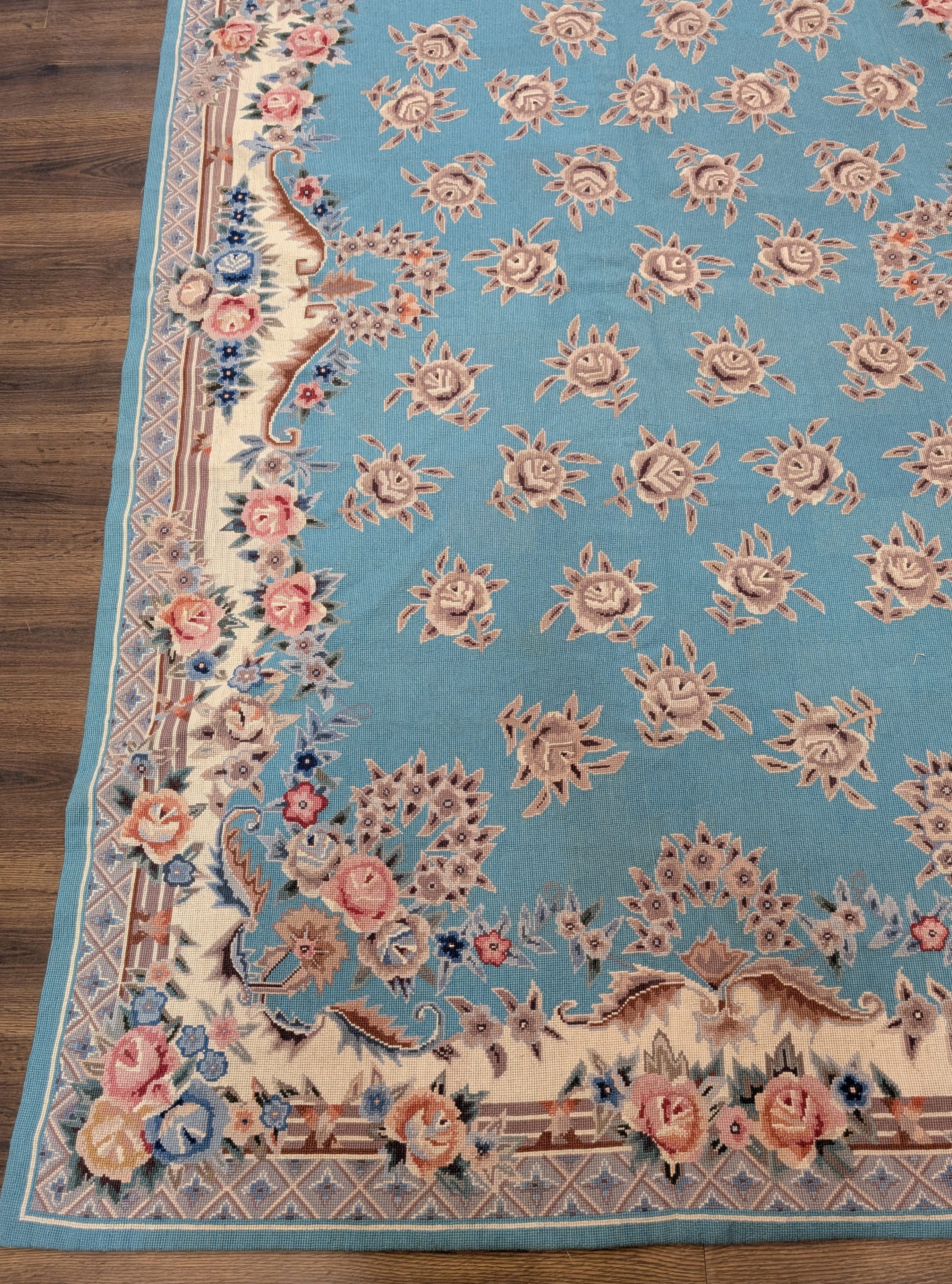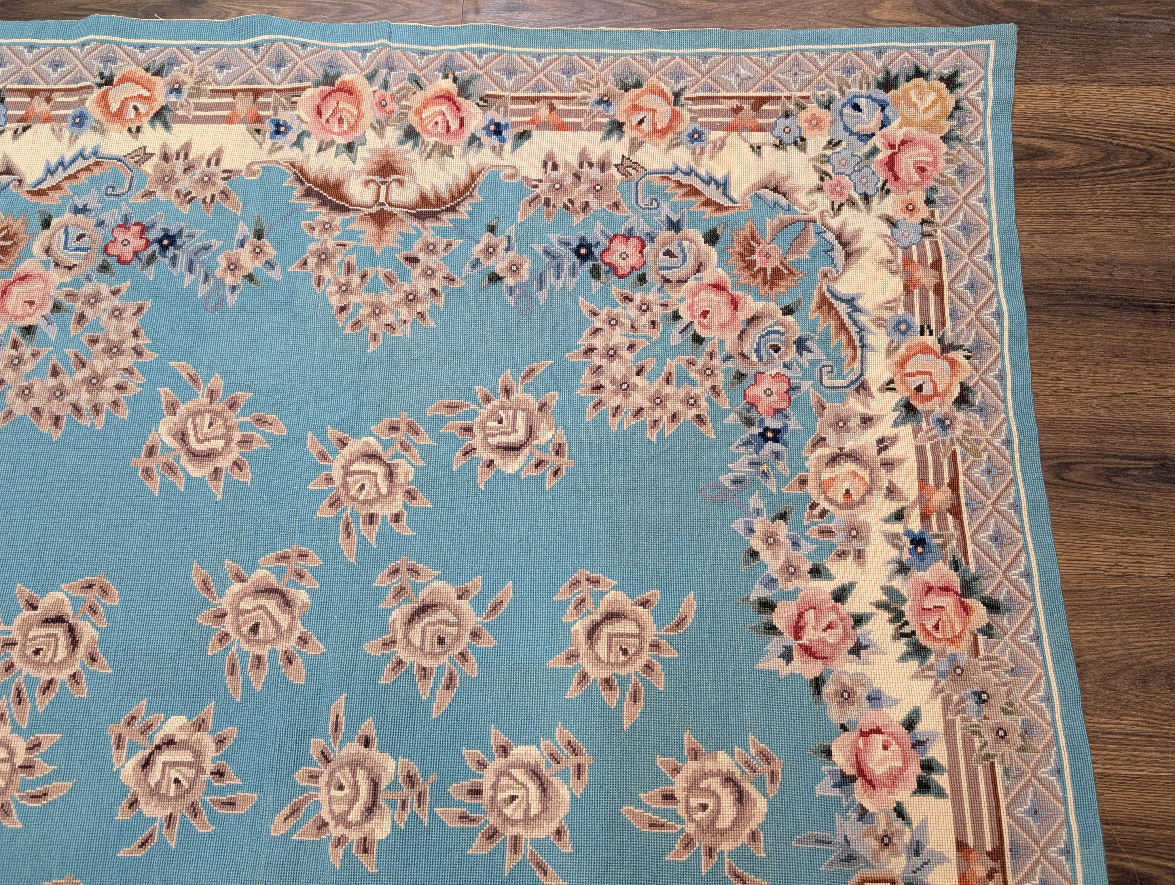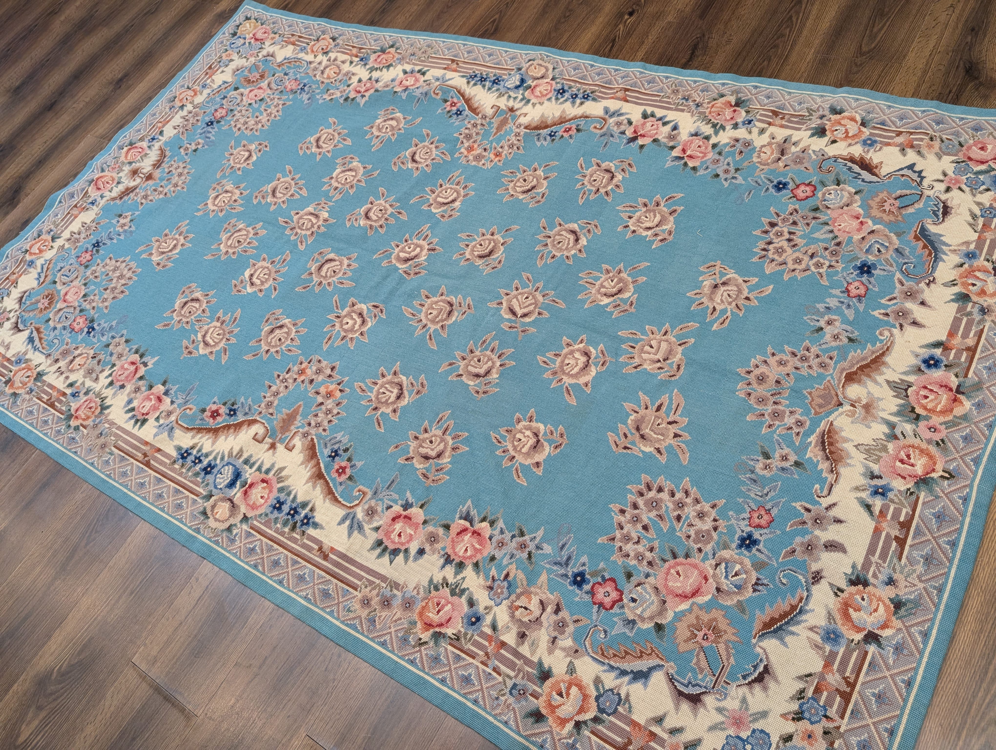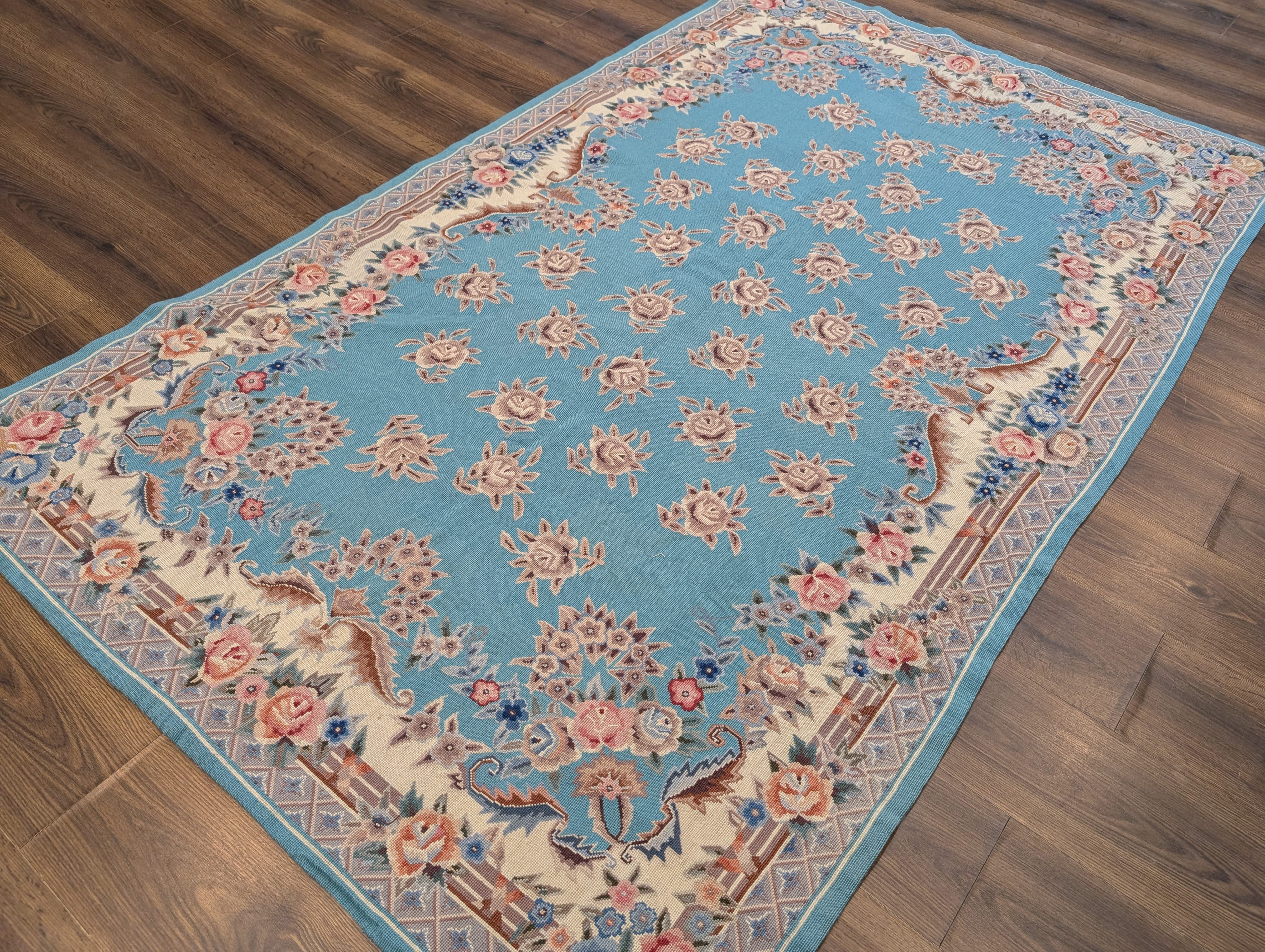 Light Blue Needlepoint Rug 5x8, Floral, New