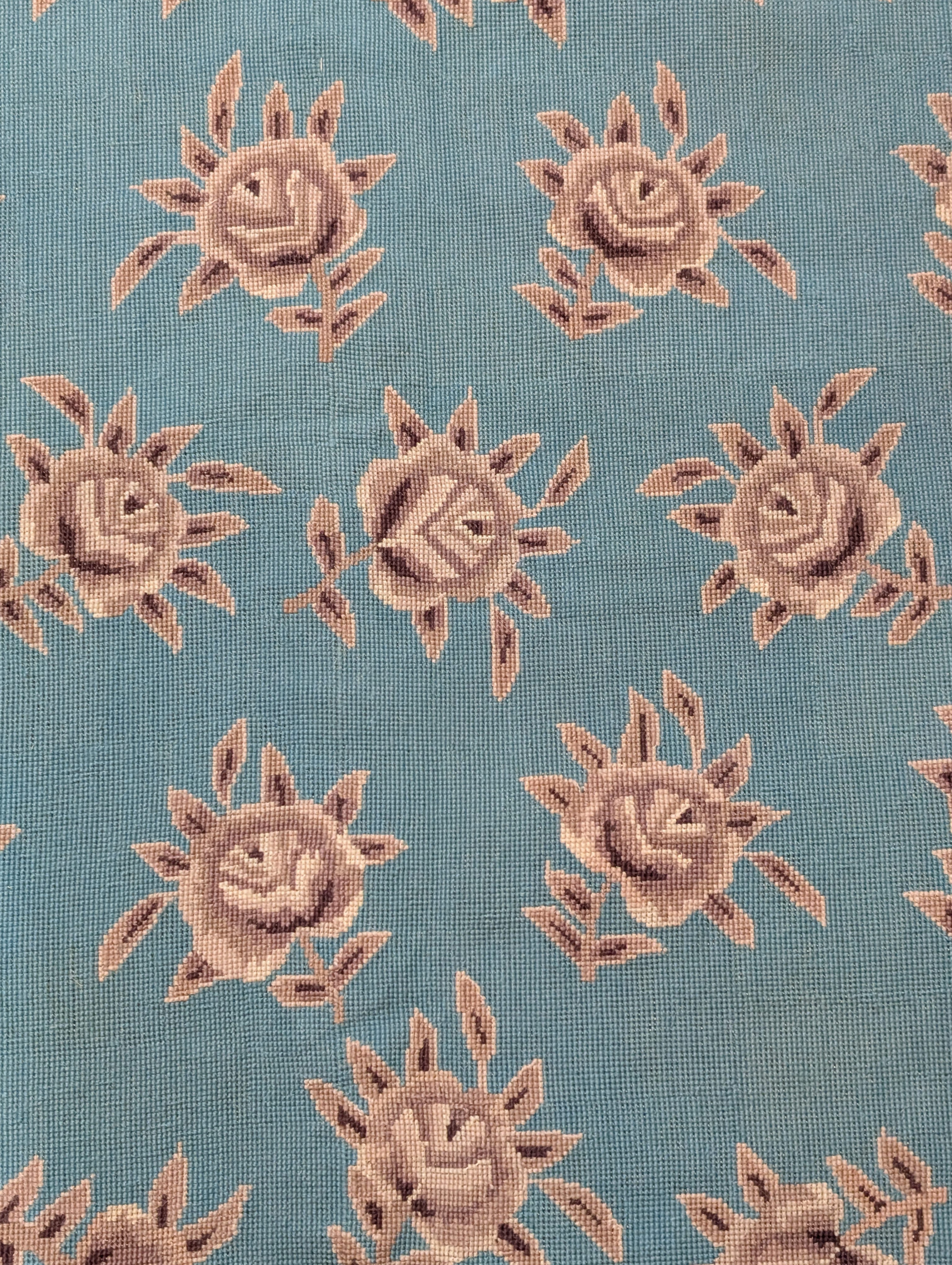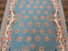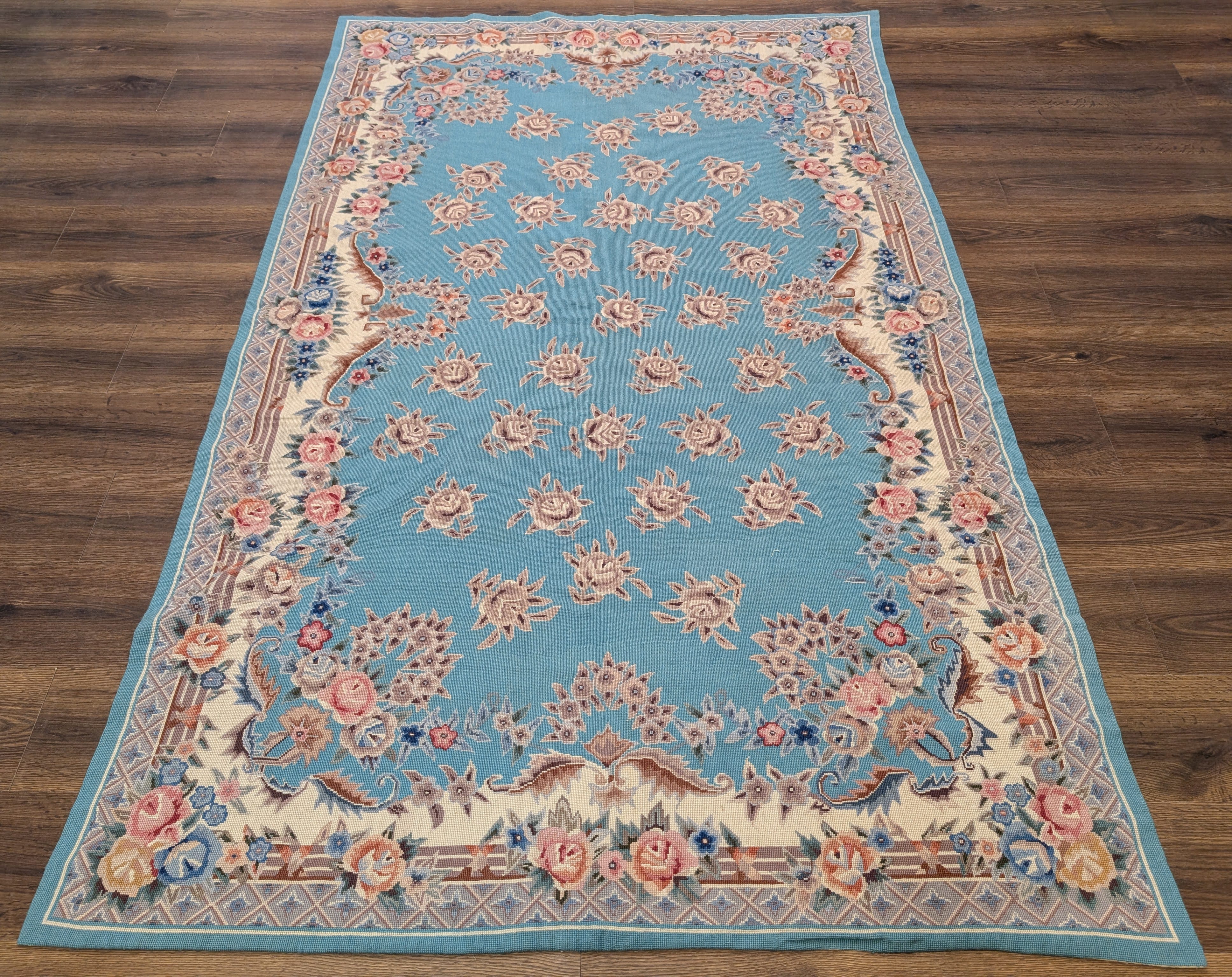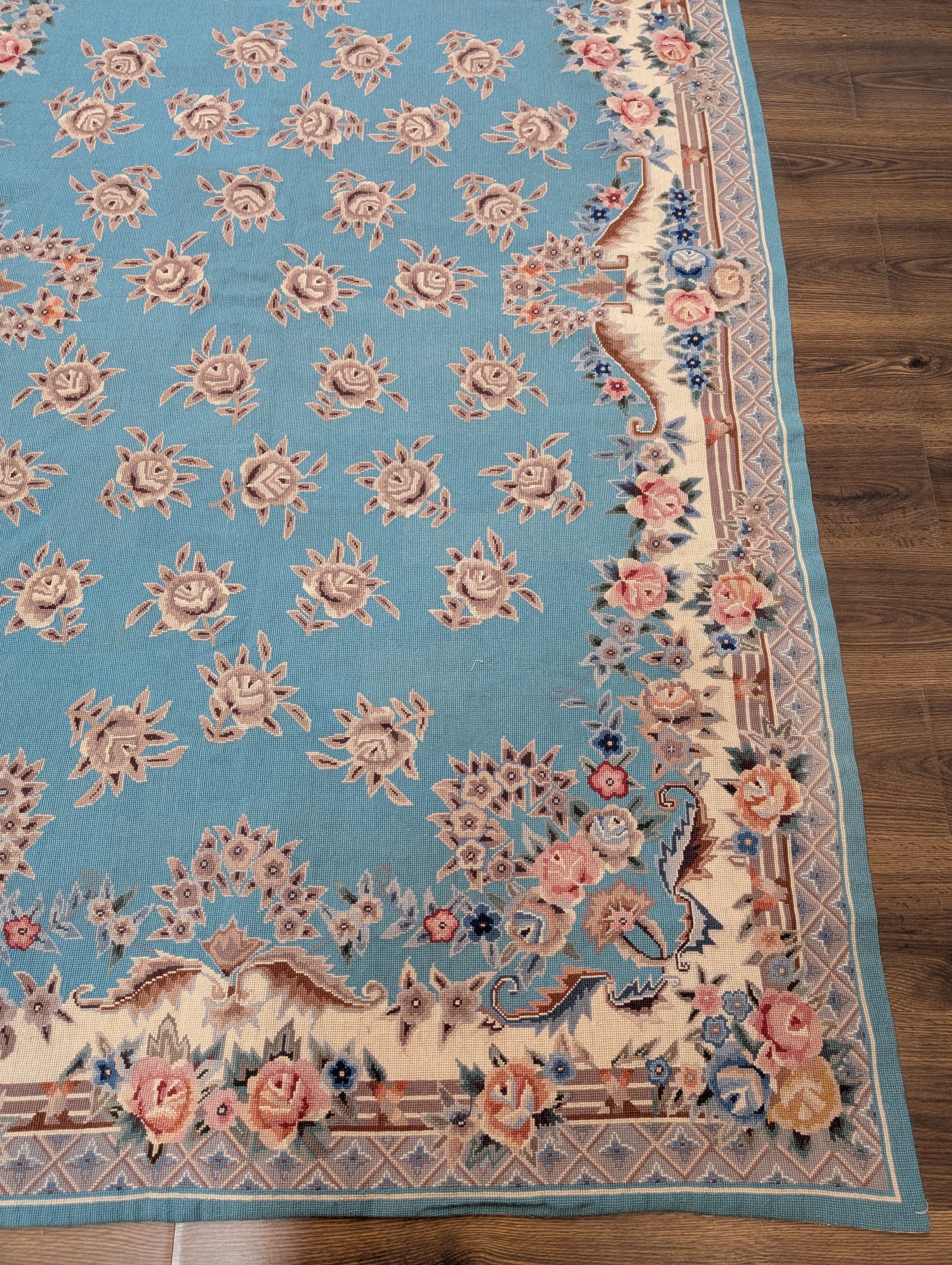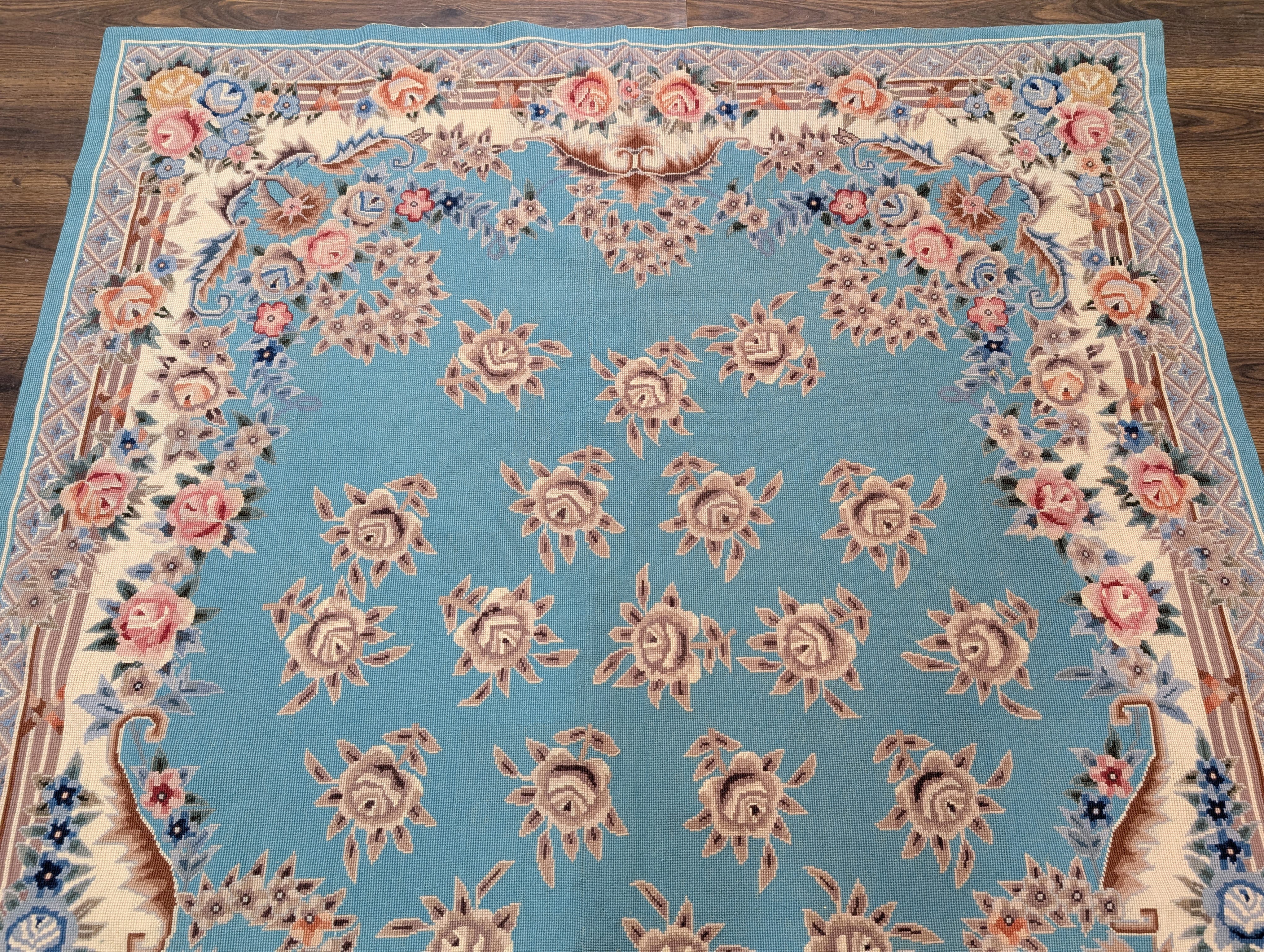 Light Blue Needlepoint Rug 5x8, Floral, New