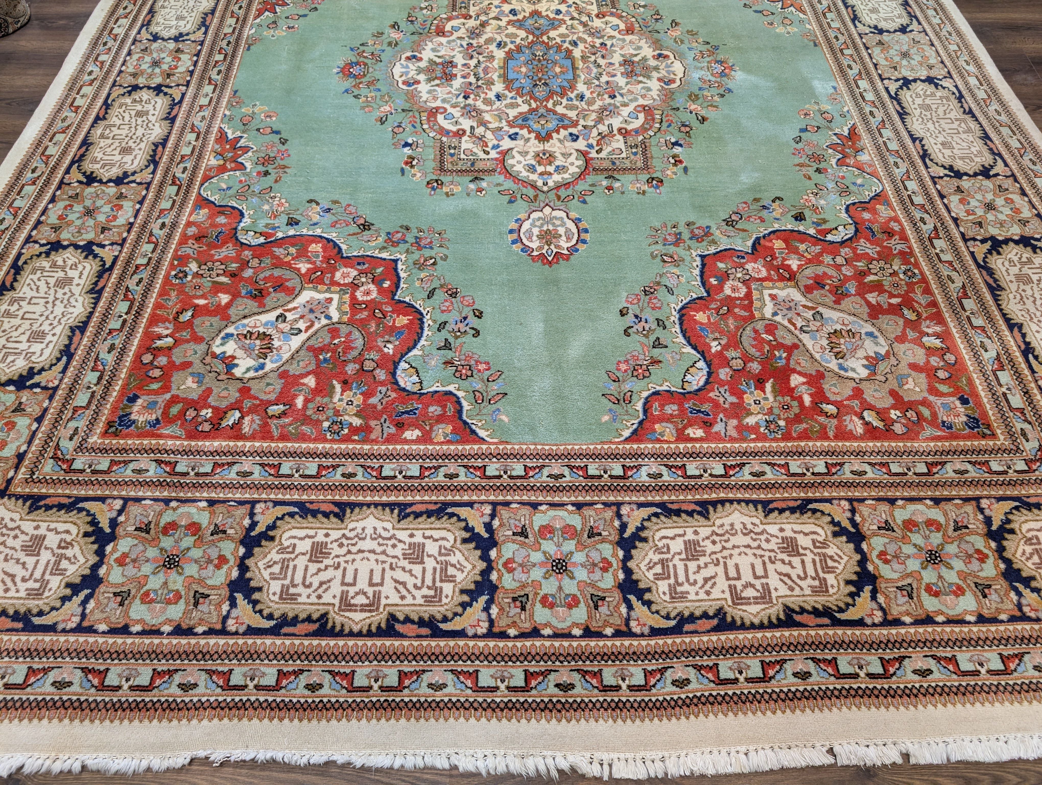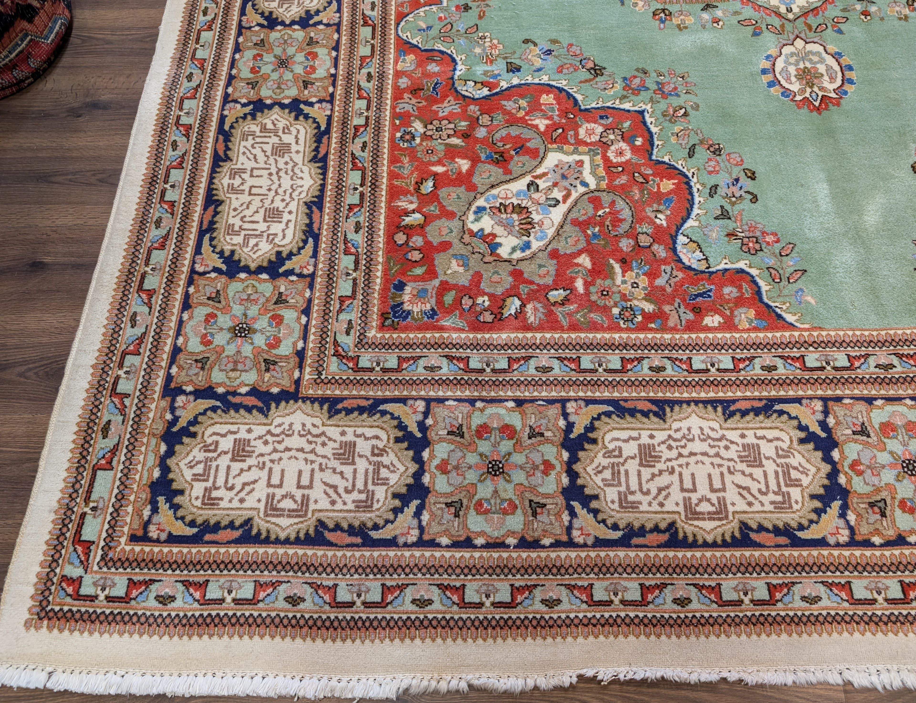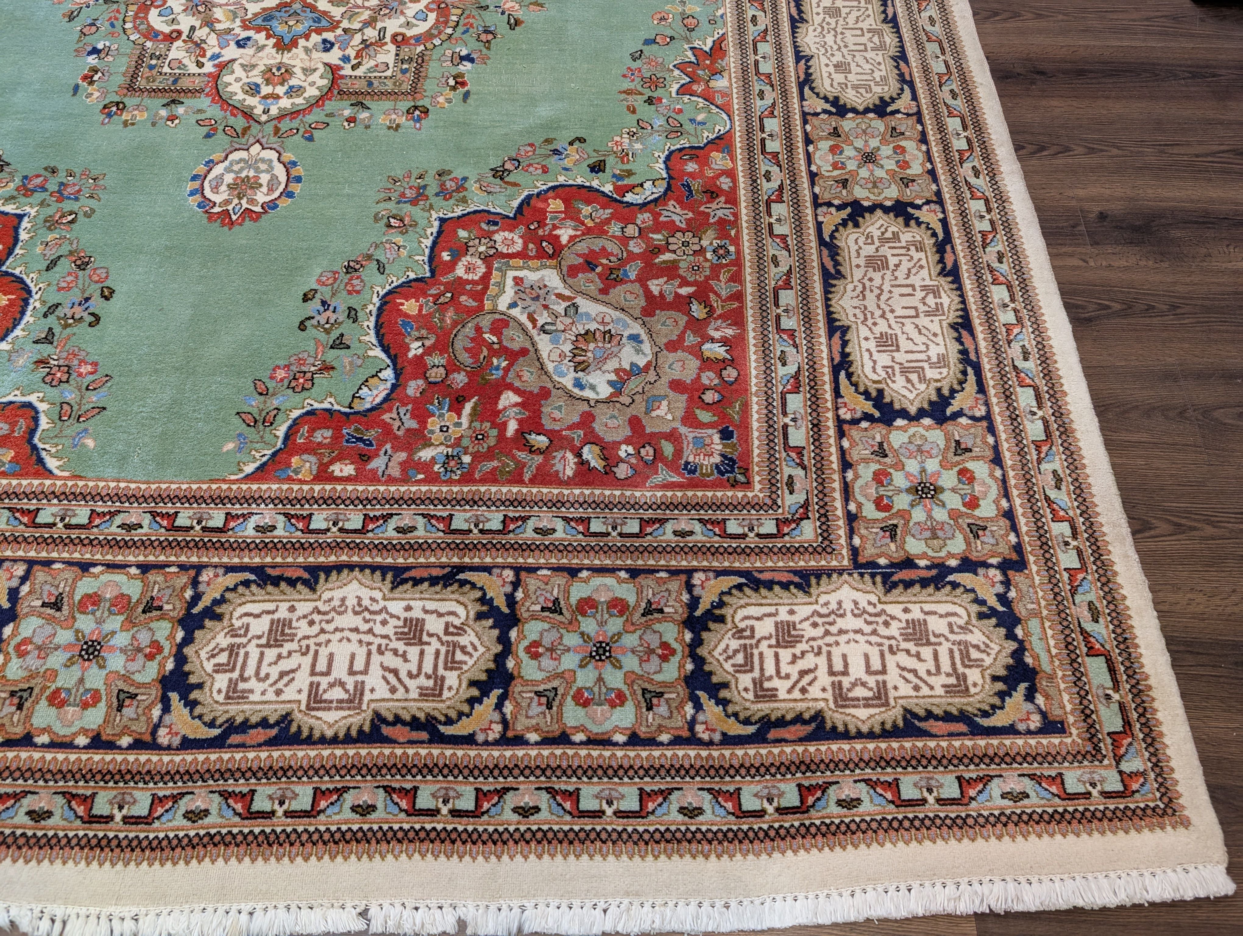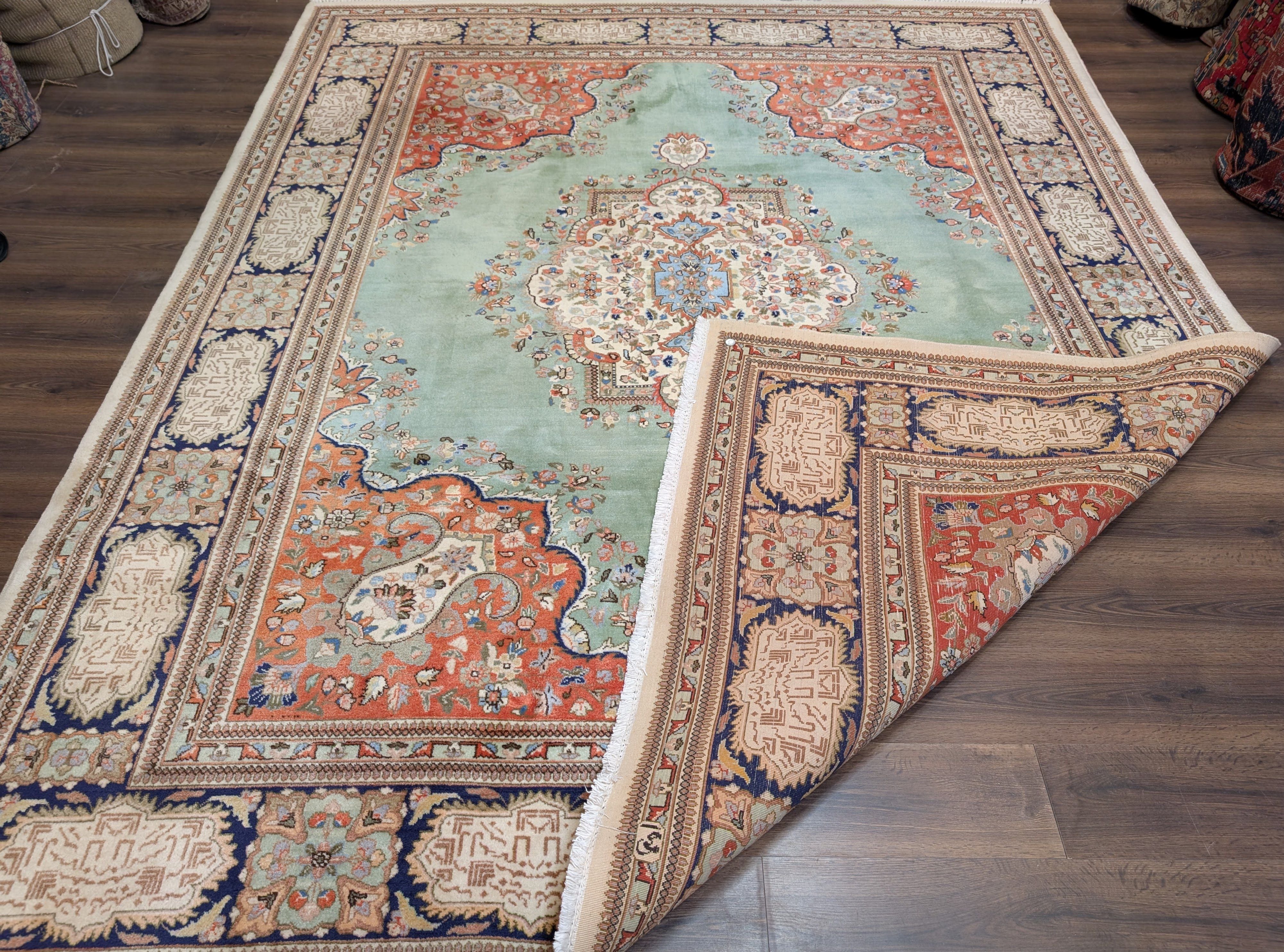 Light Green Persian Rug 9x12, Tabriz Tabatabie Carpet, Wool