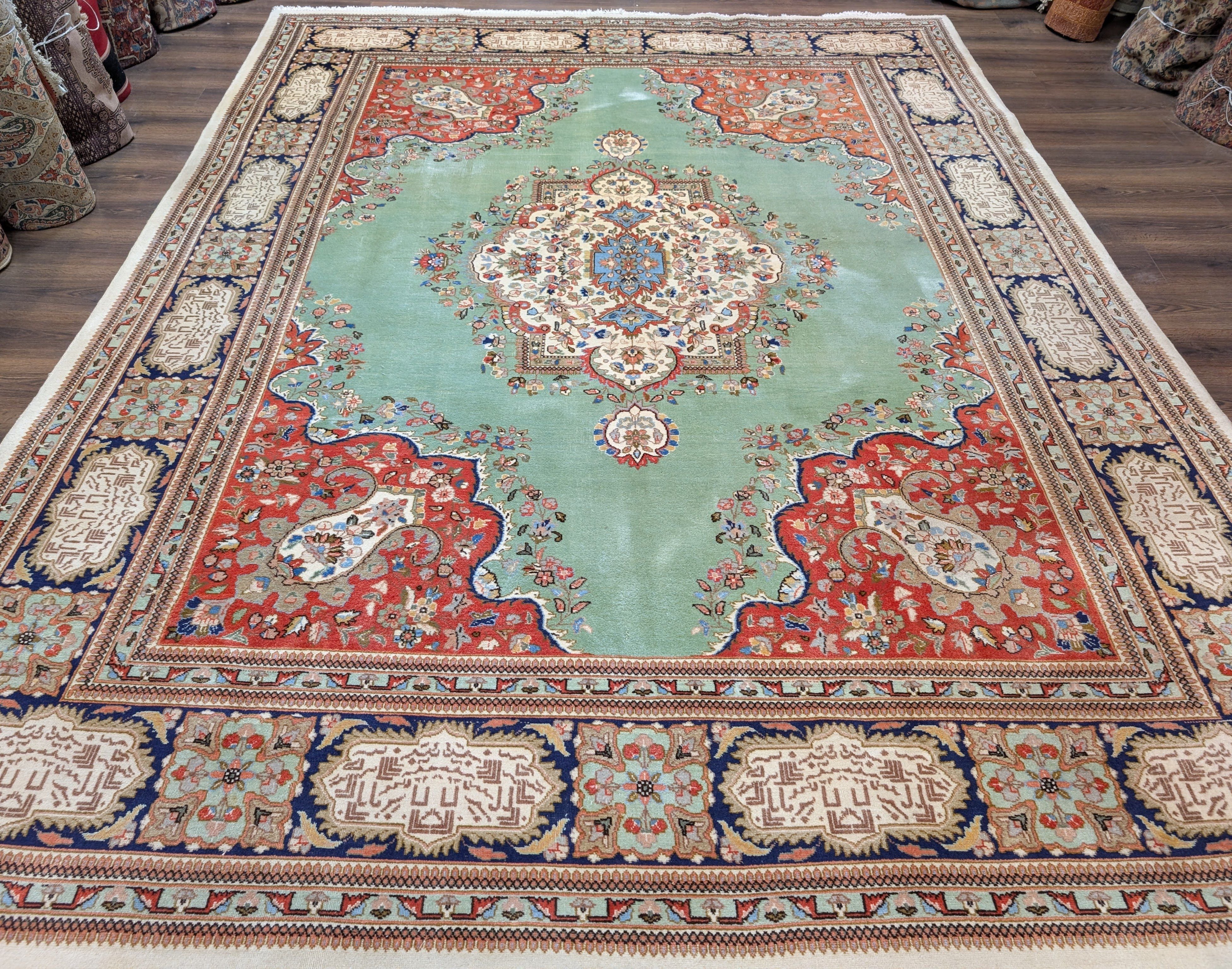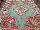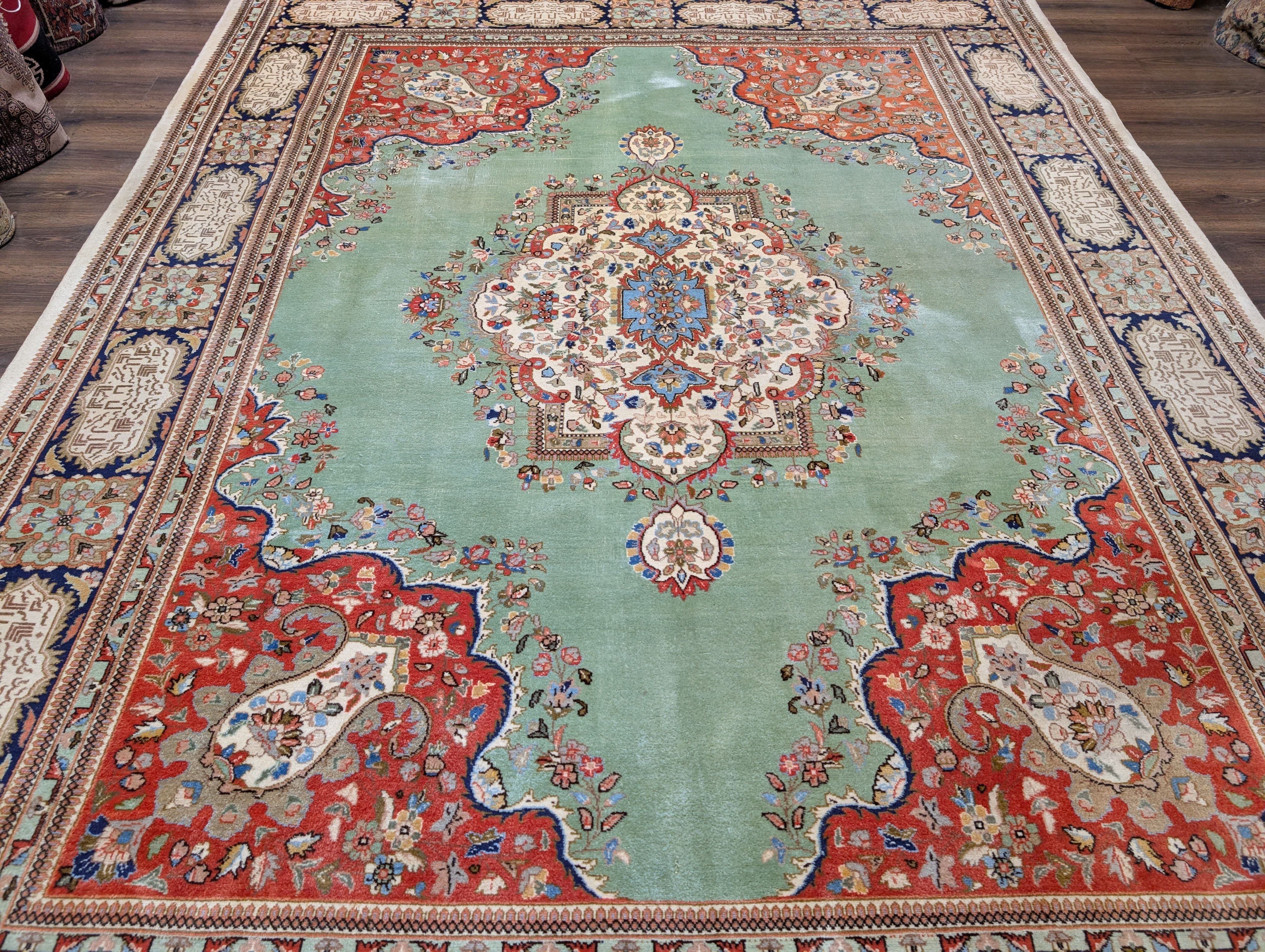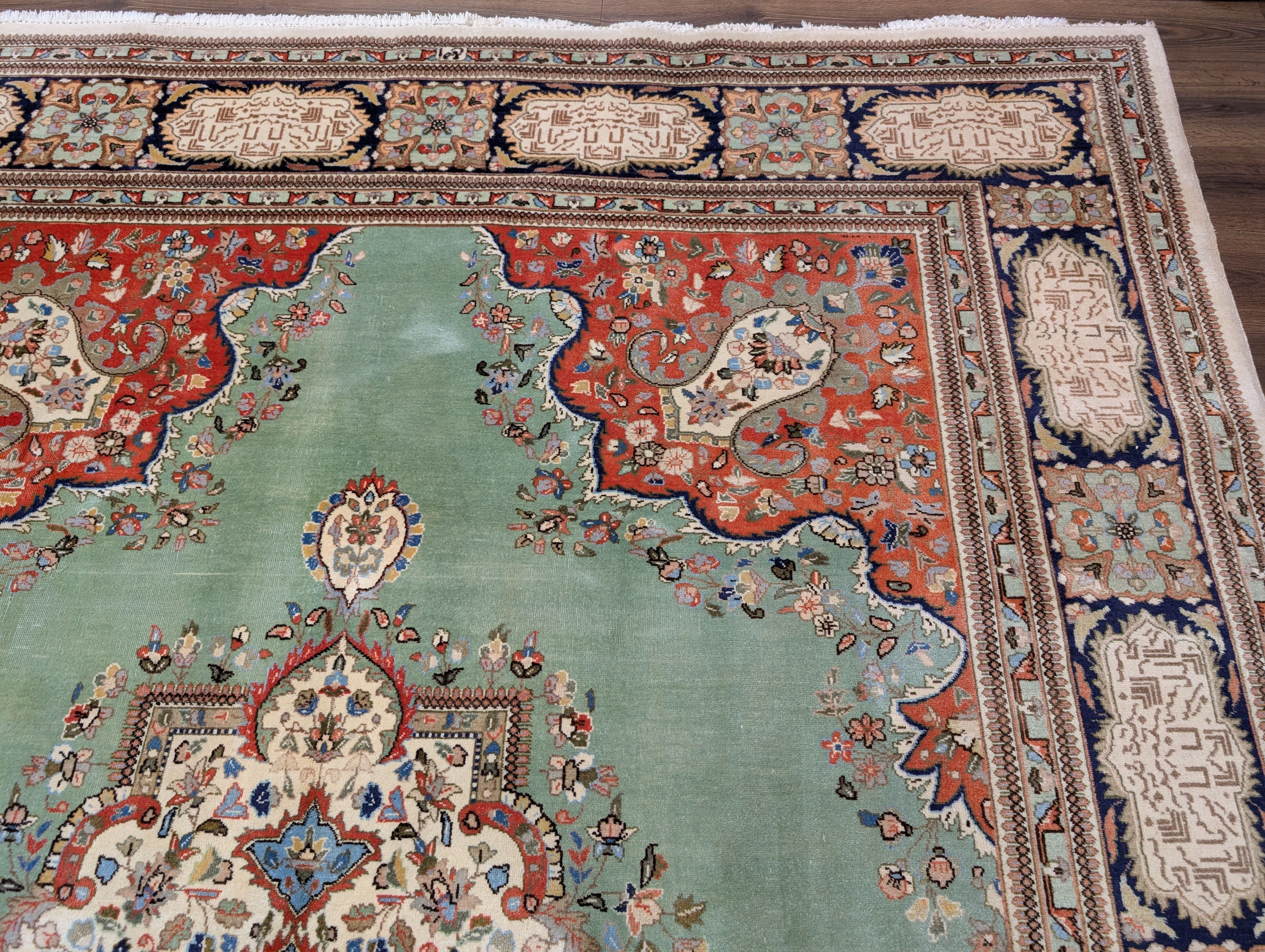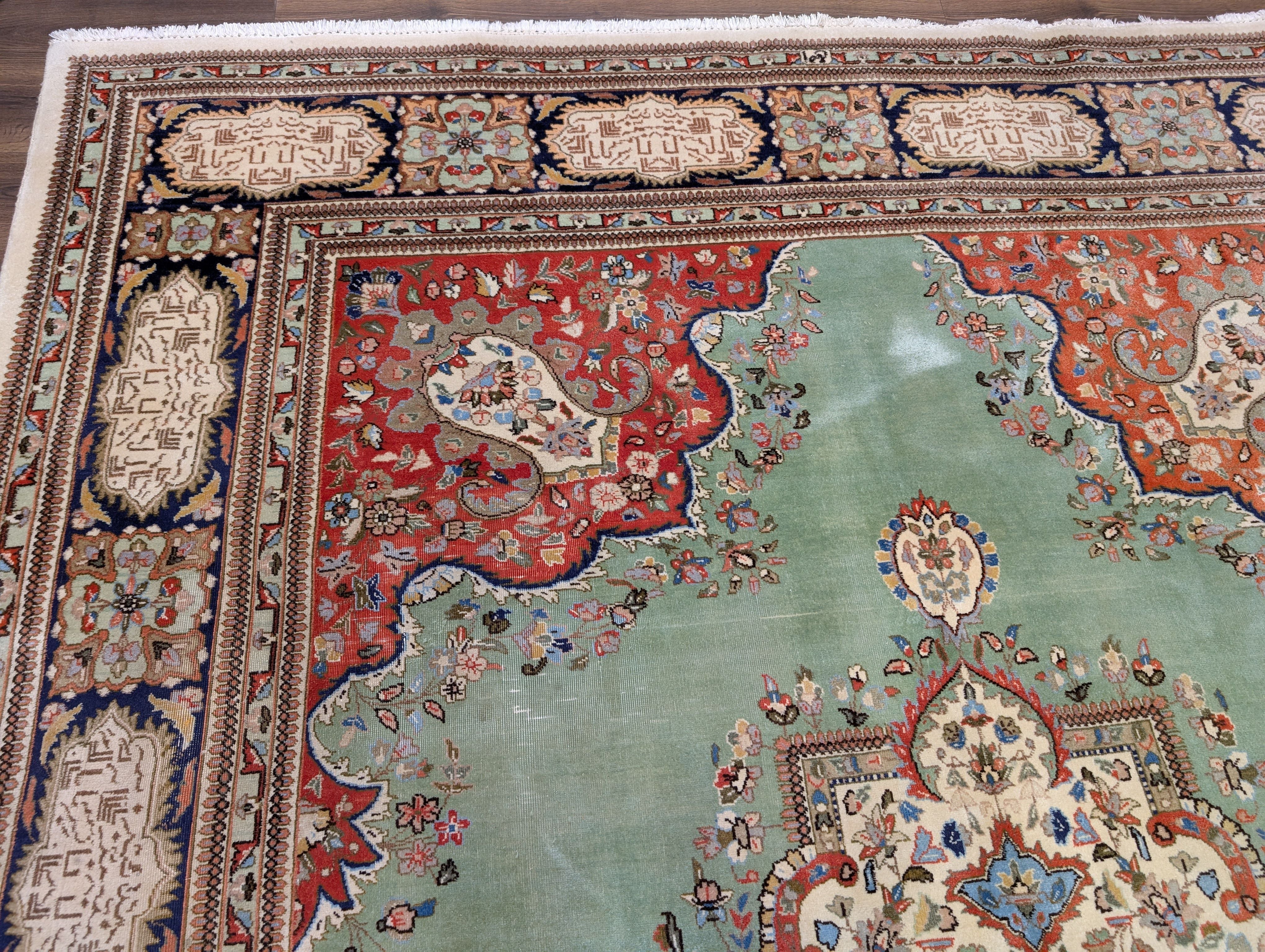 Light Green Persian Rug 9x12, Tabriz Tabatabie Carpet, Wool