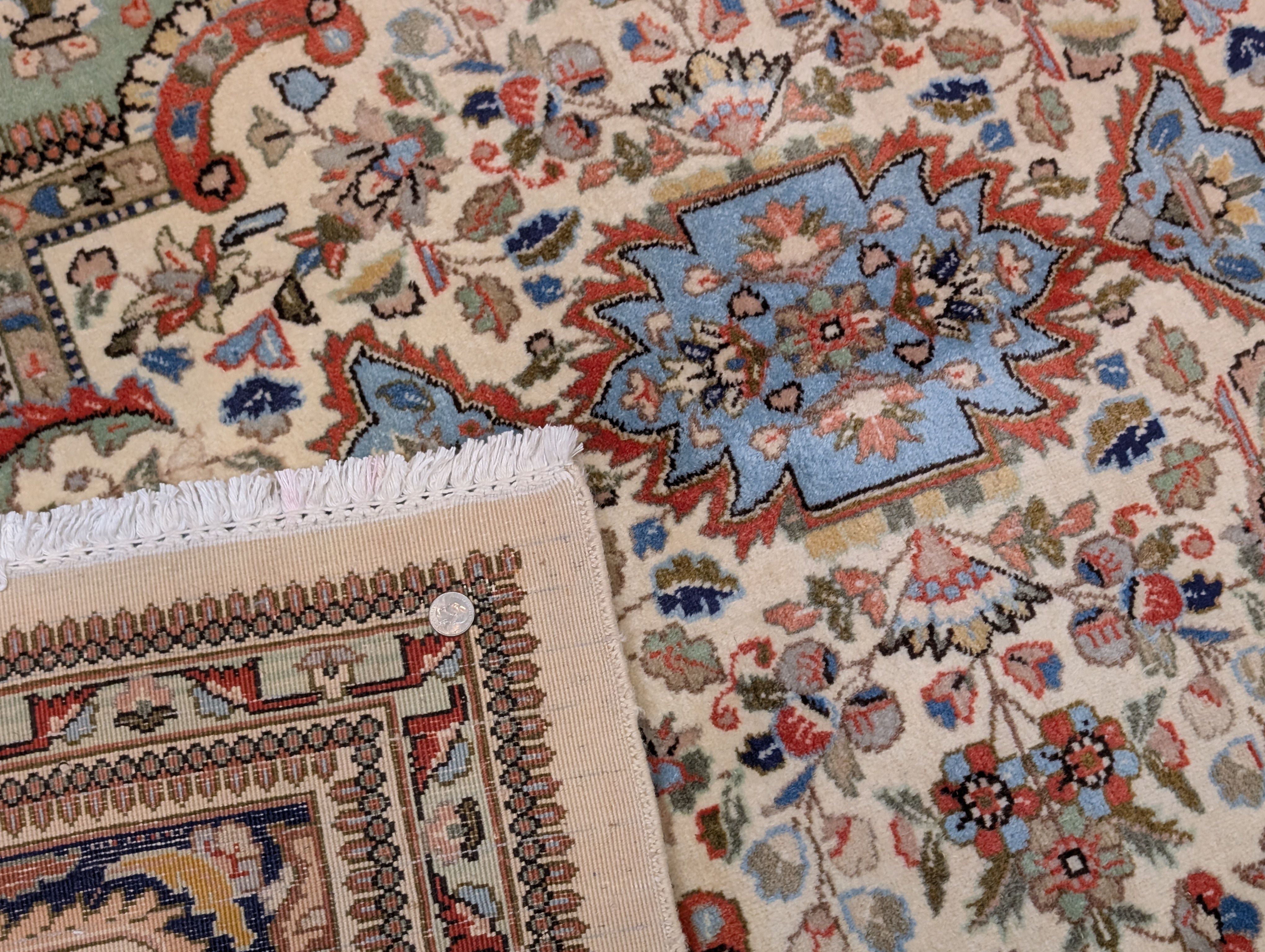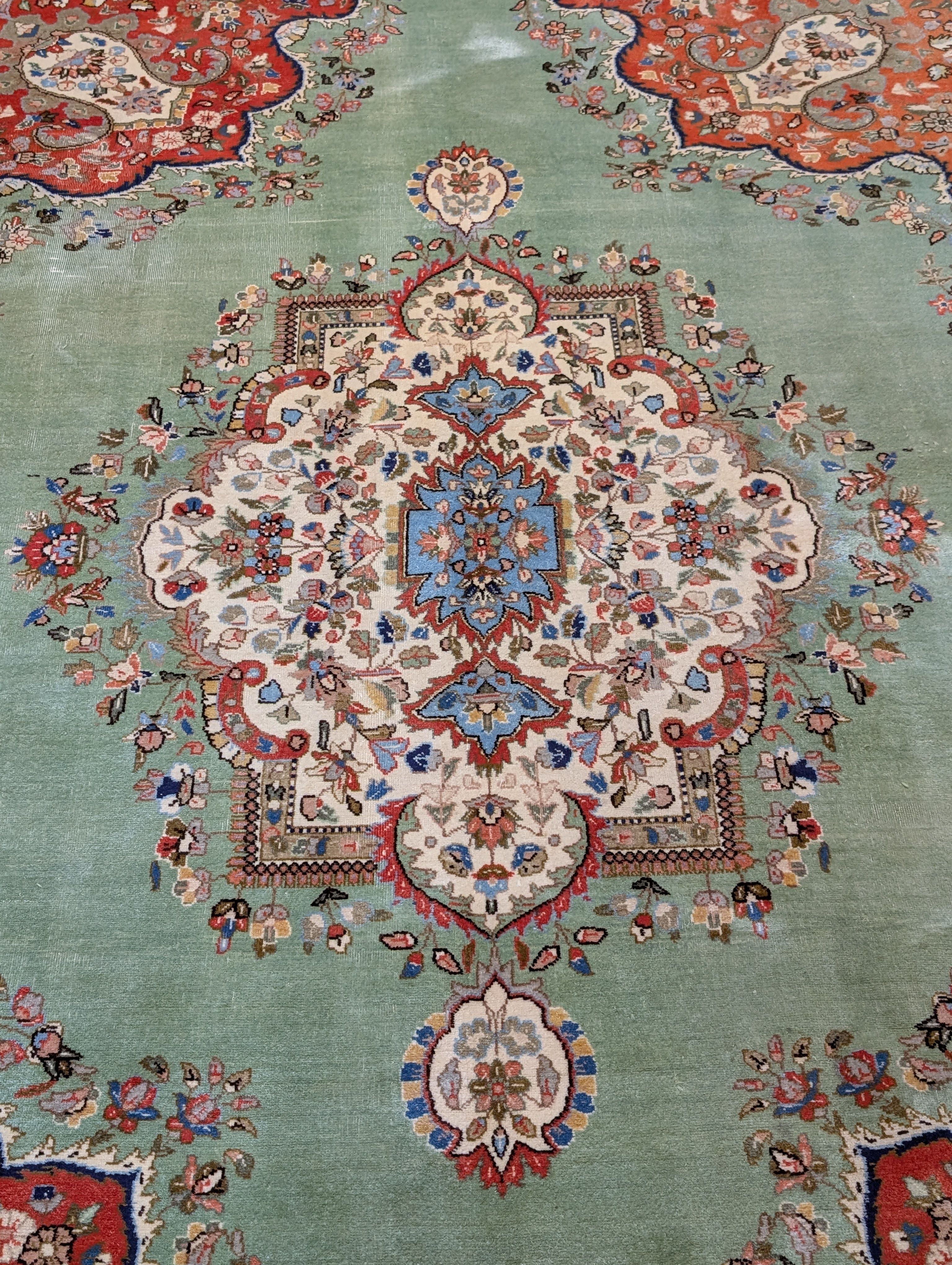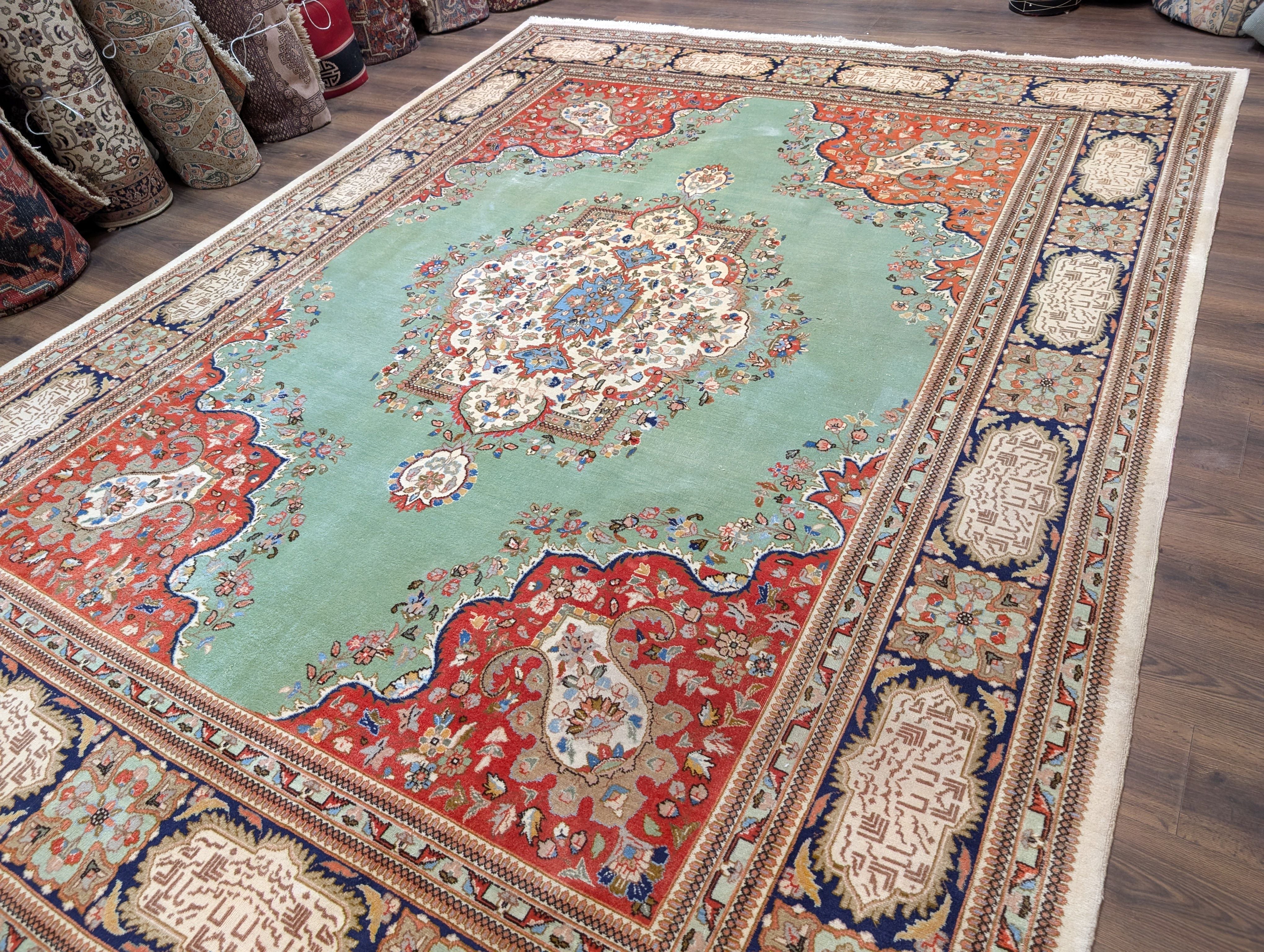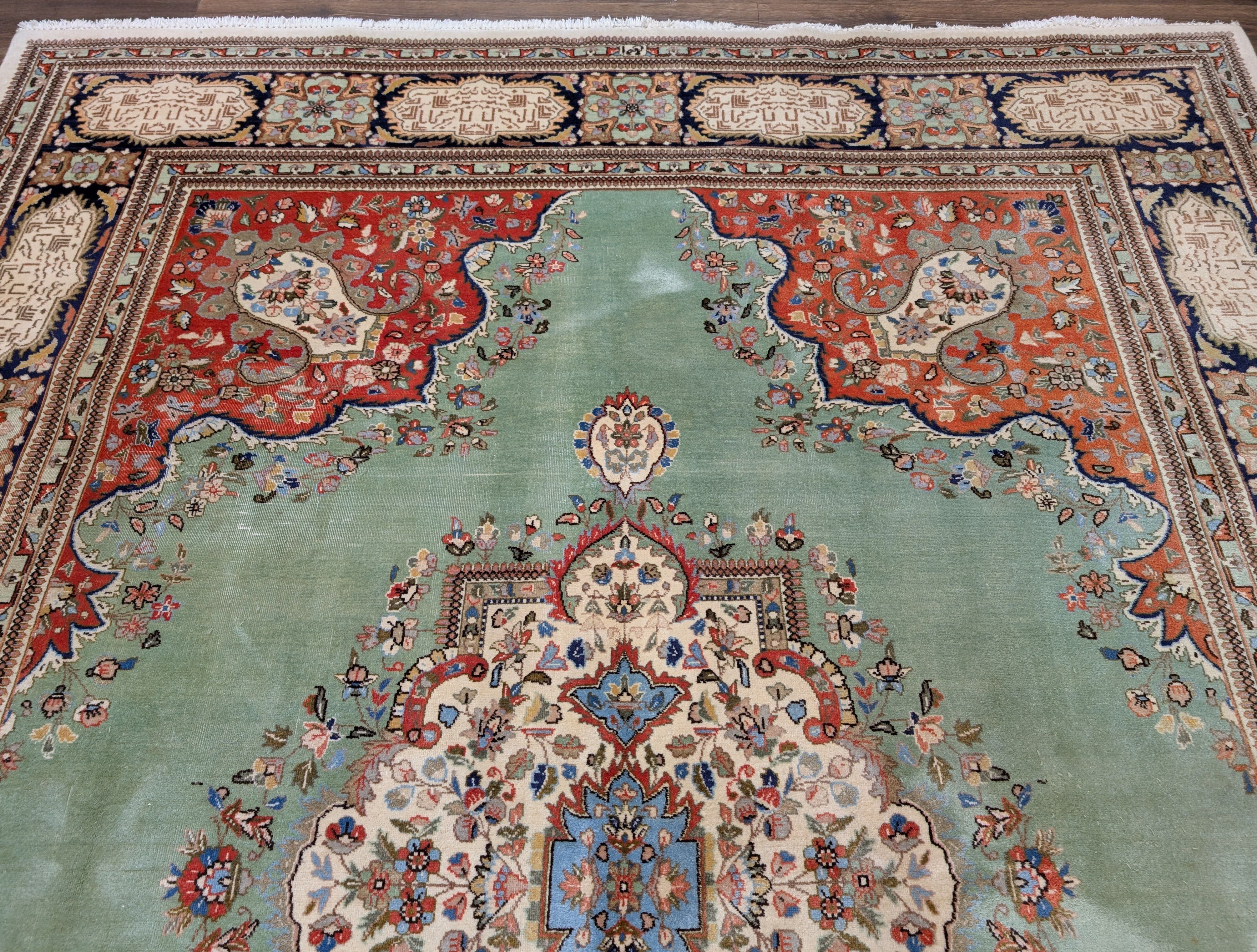 Light Green Persian Rug 9x12, Tabriz Tabatabie Carpet, Wool