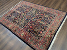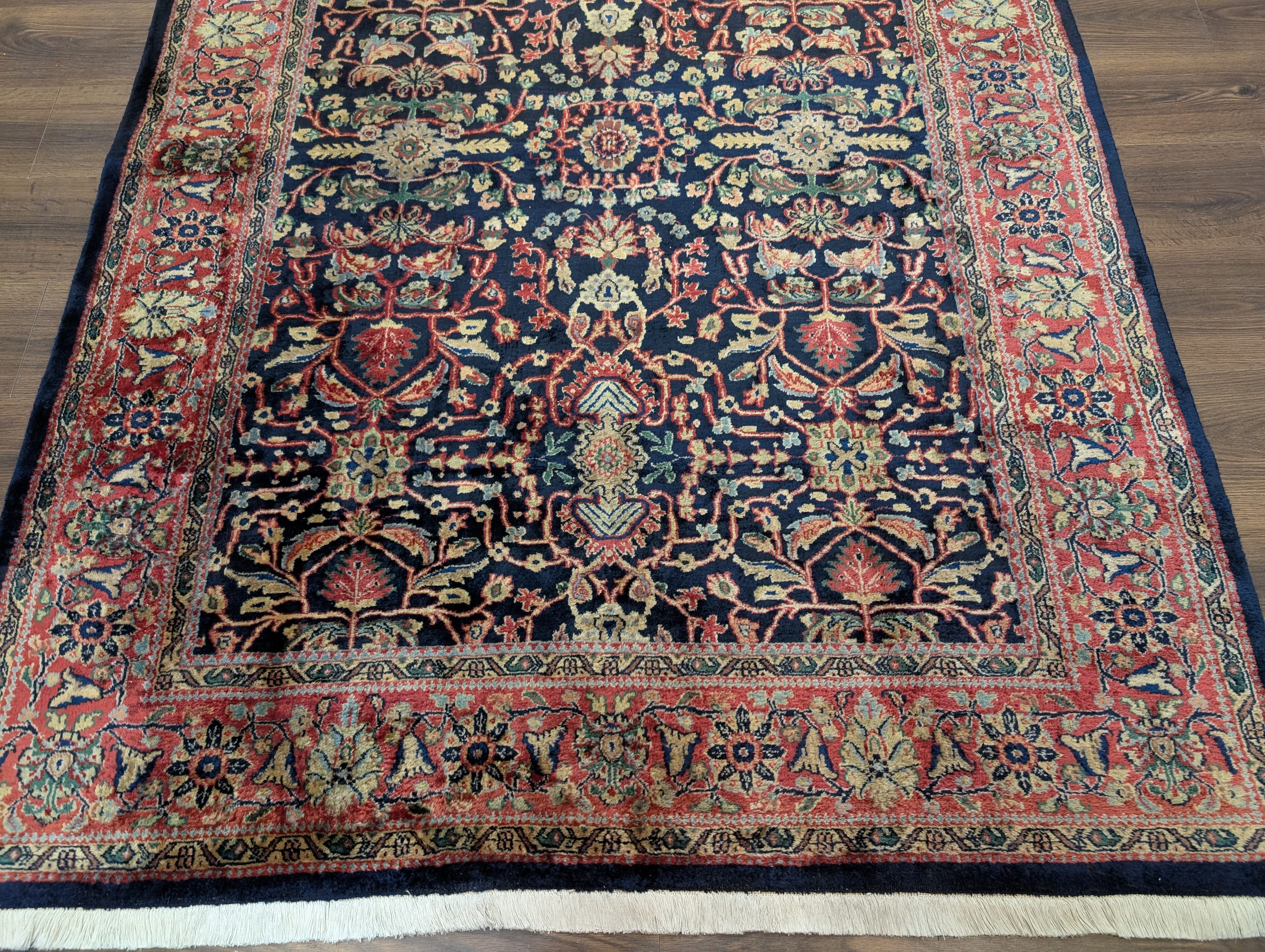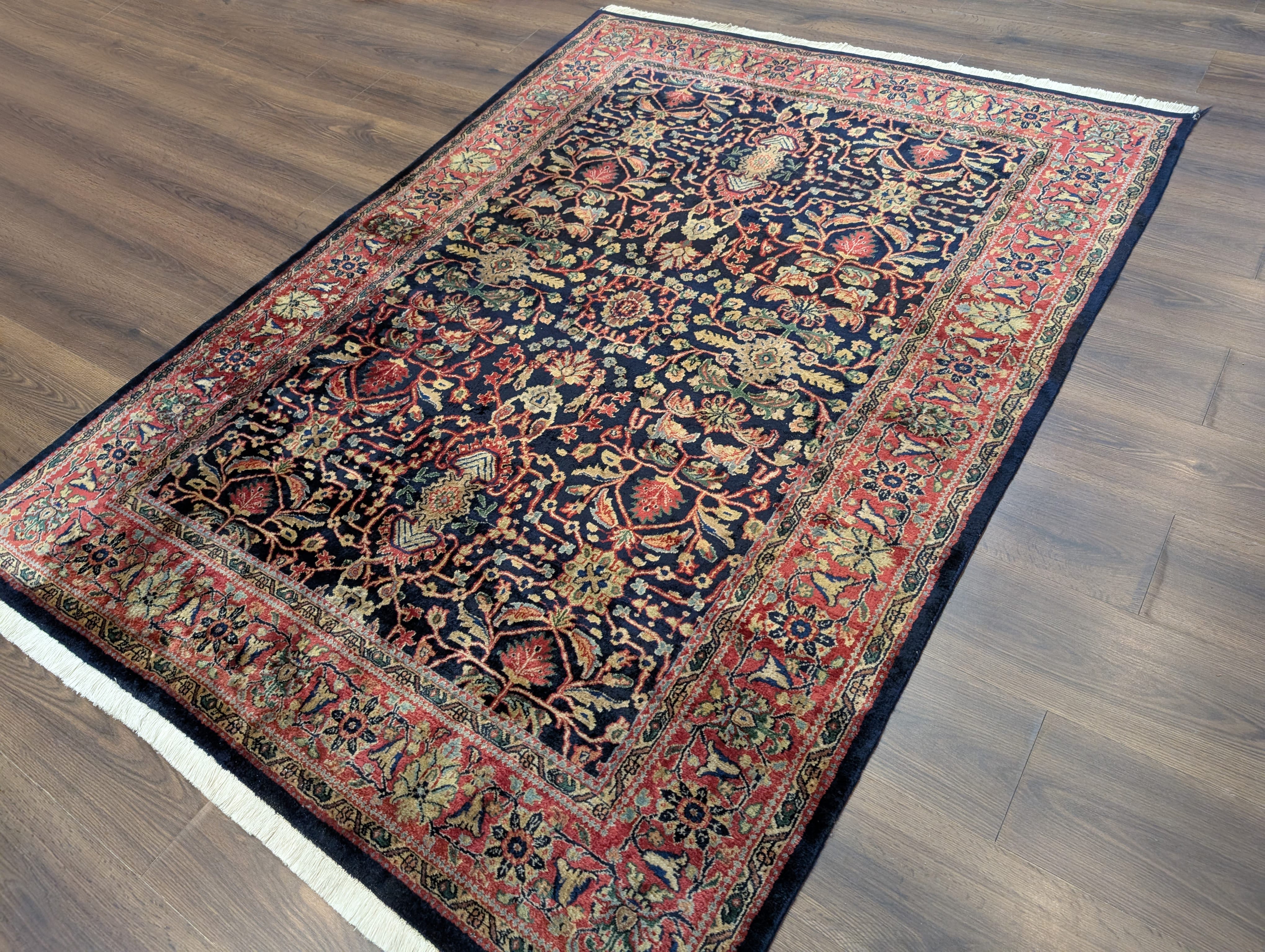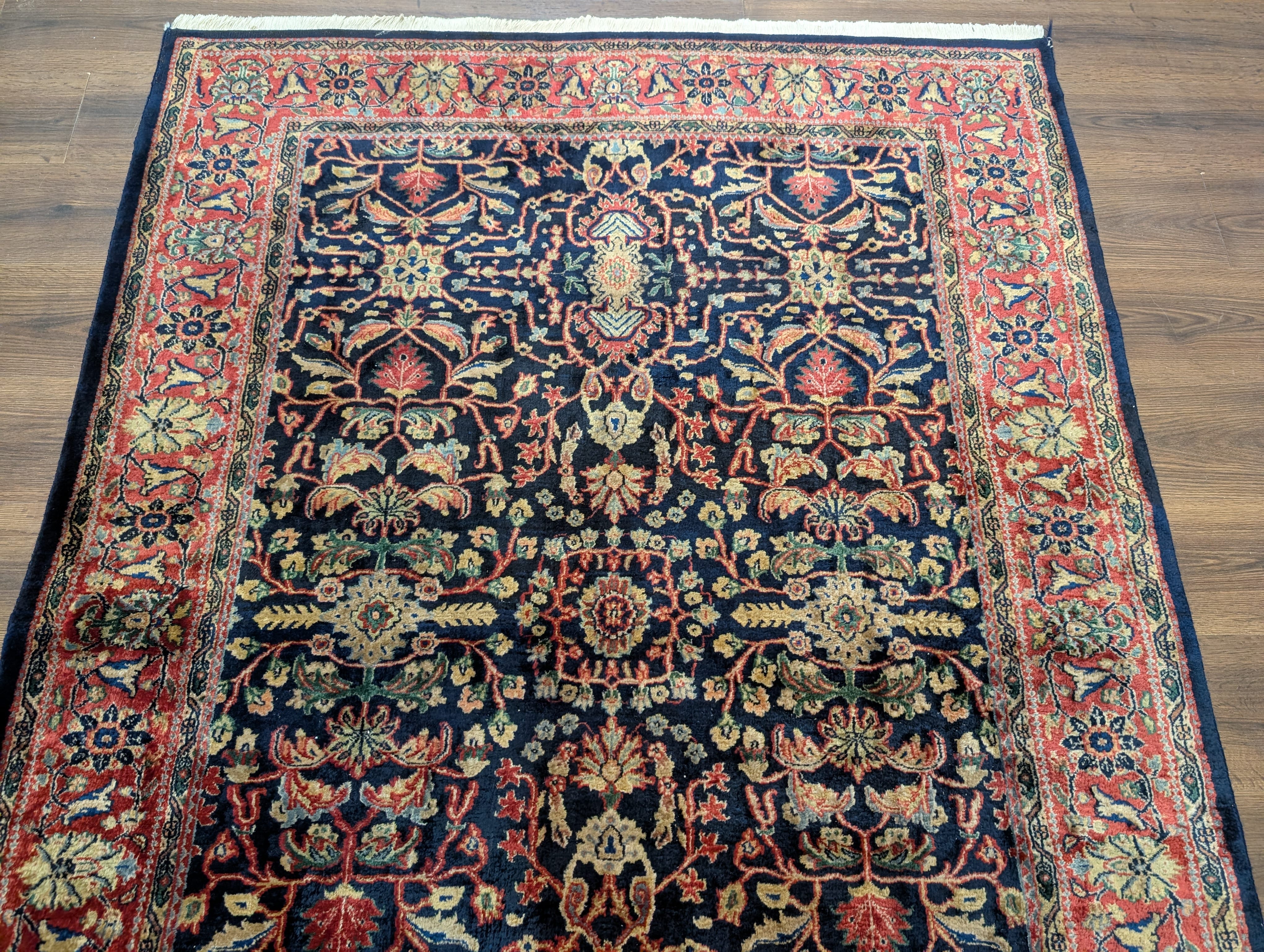 Navy Blue Indo Persian Sarouk Rug 5x7, Allover Pattern