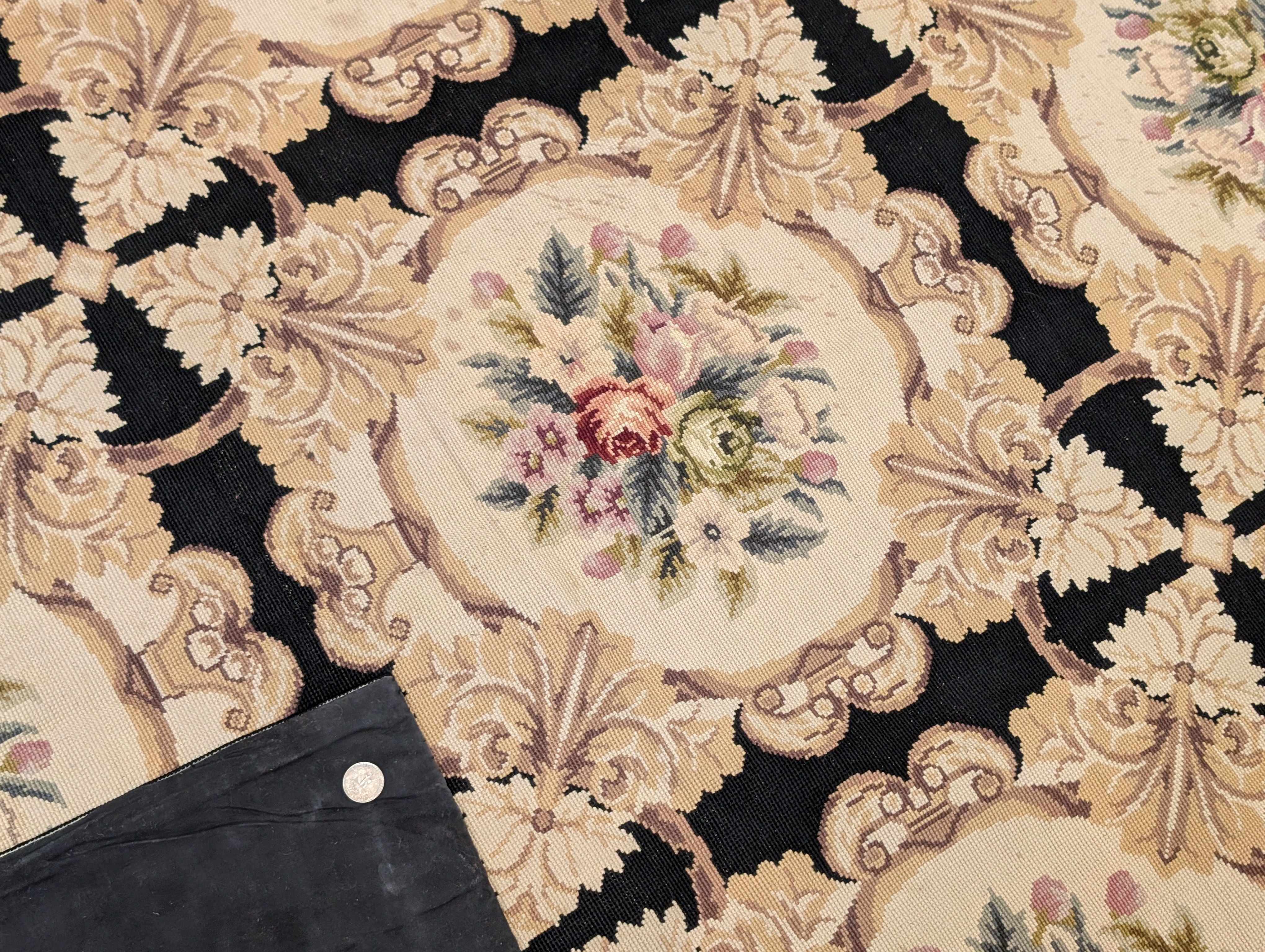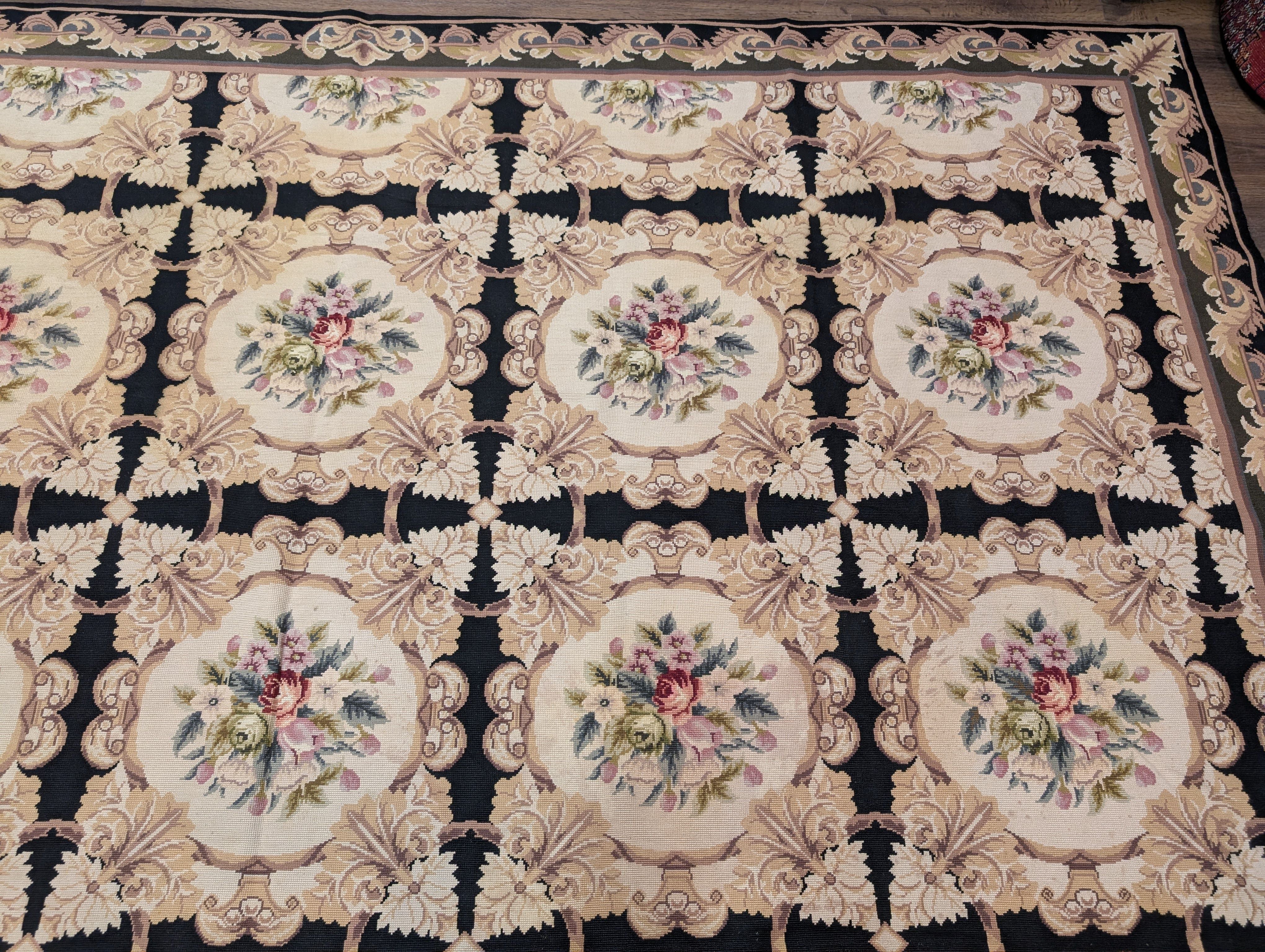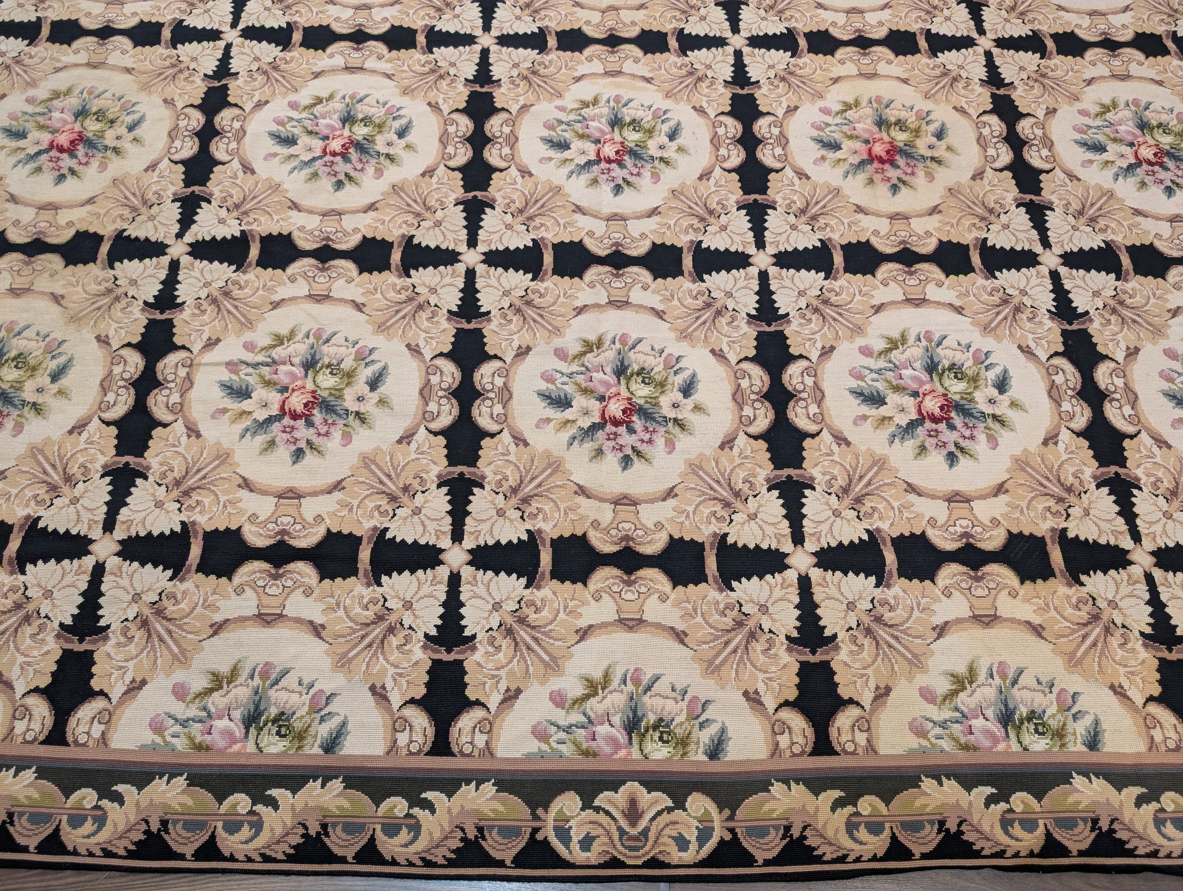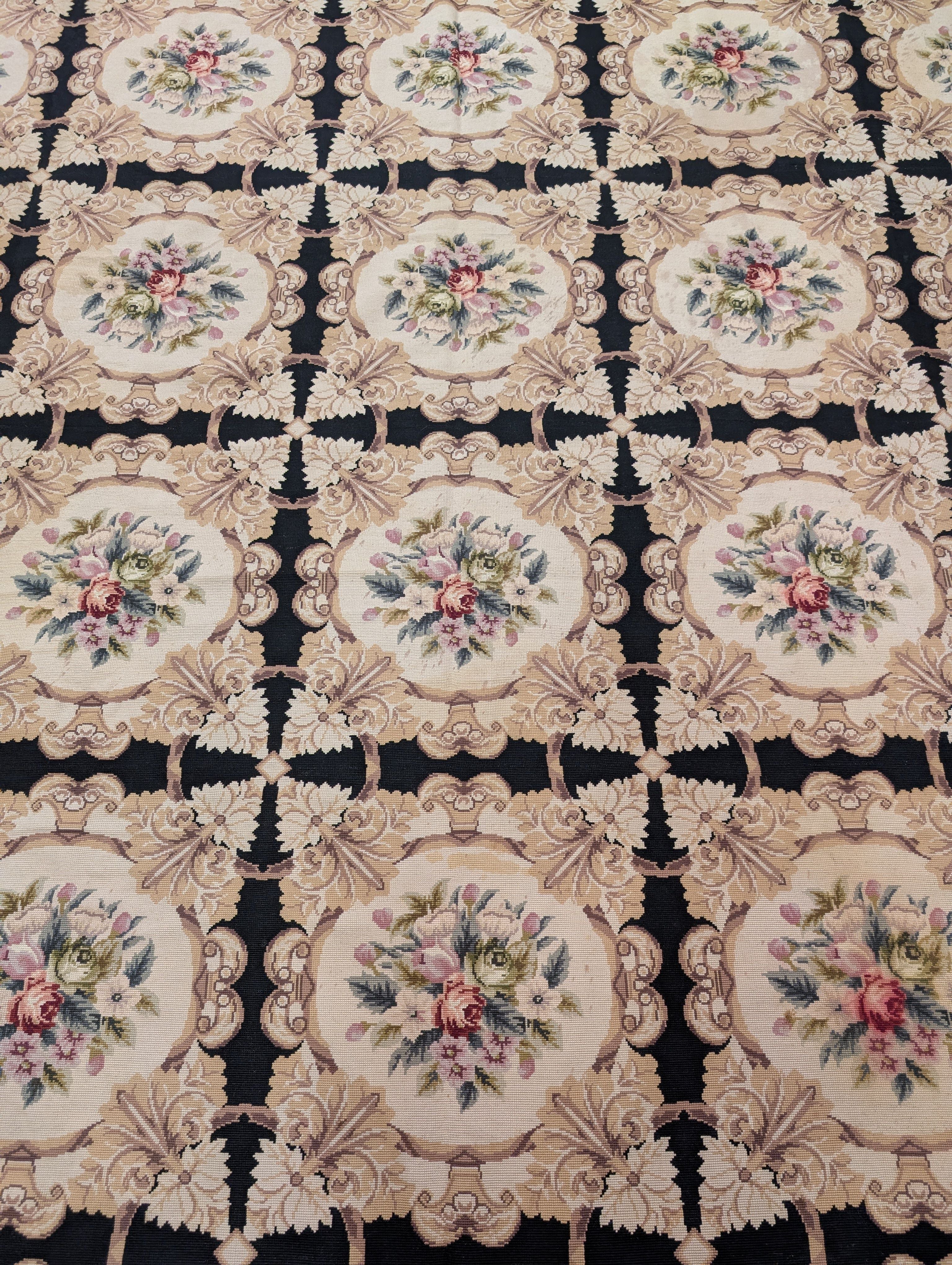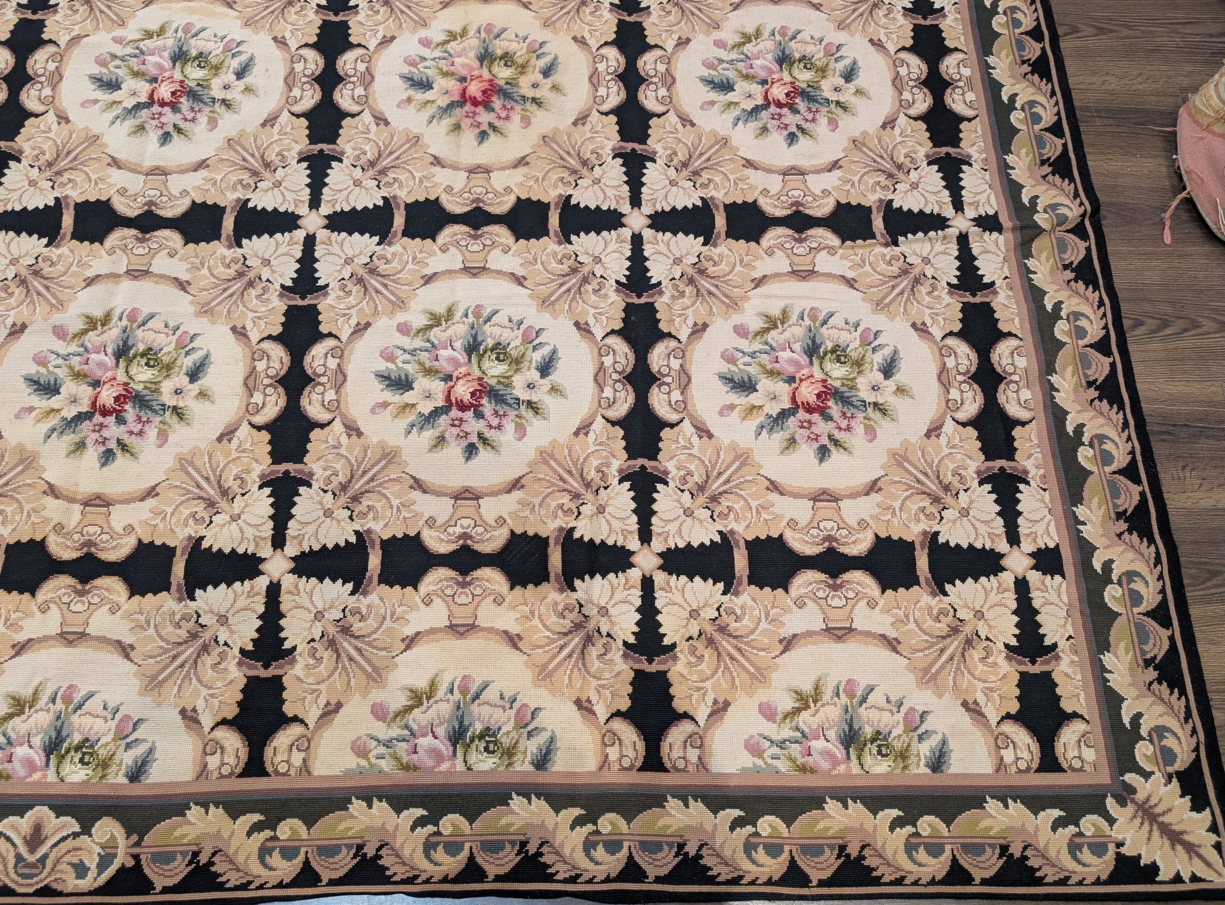 Needlepoint Rug 10x14, English European Floral Panel Design