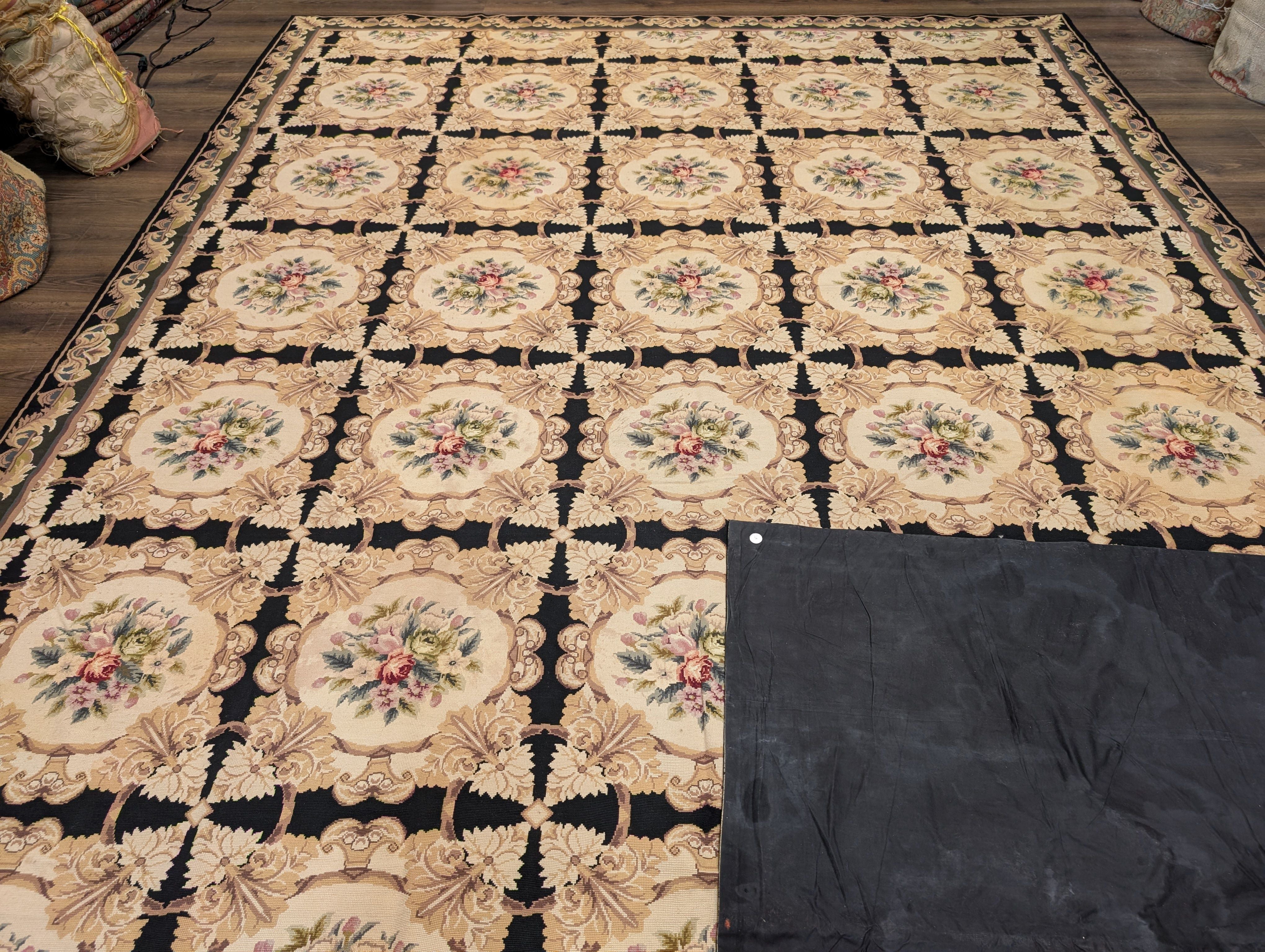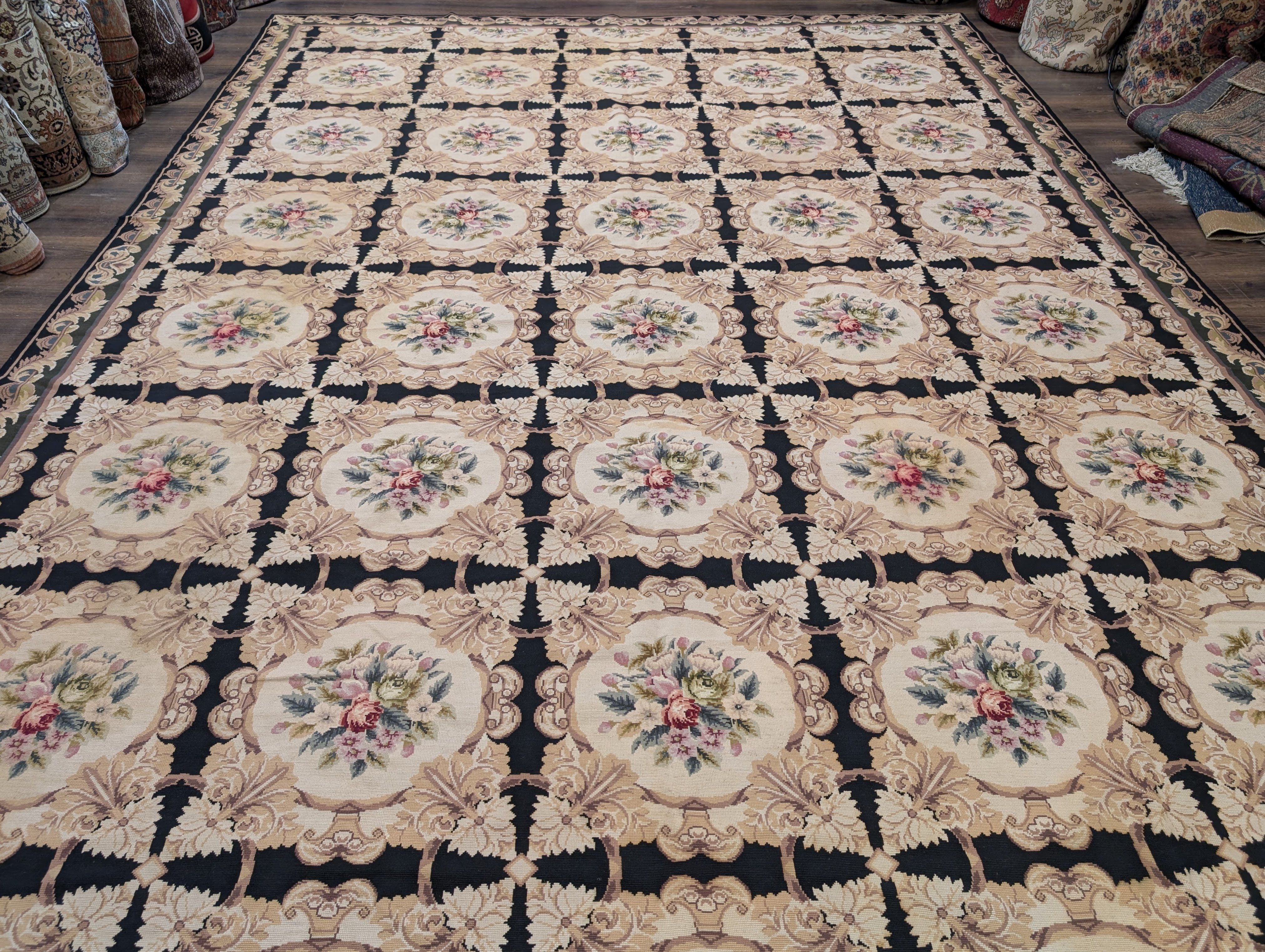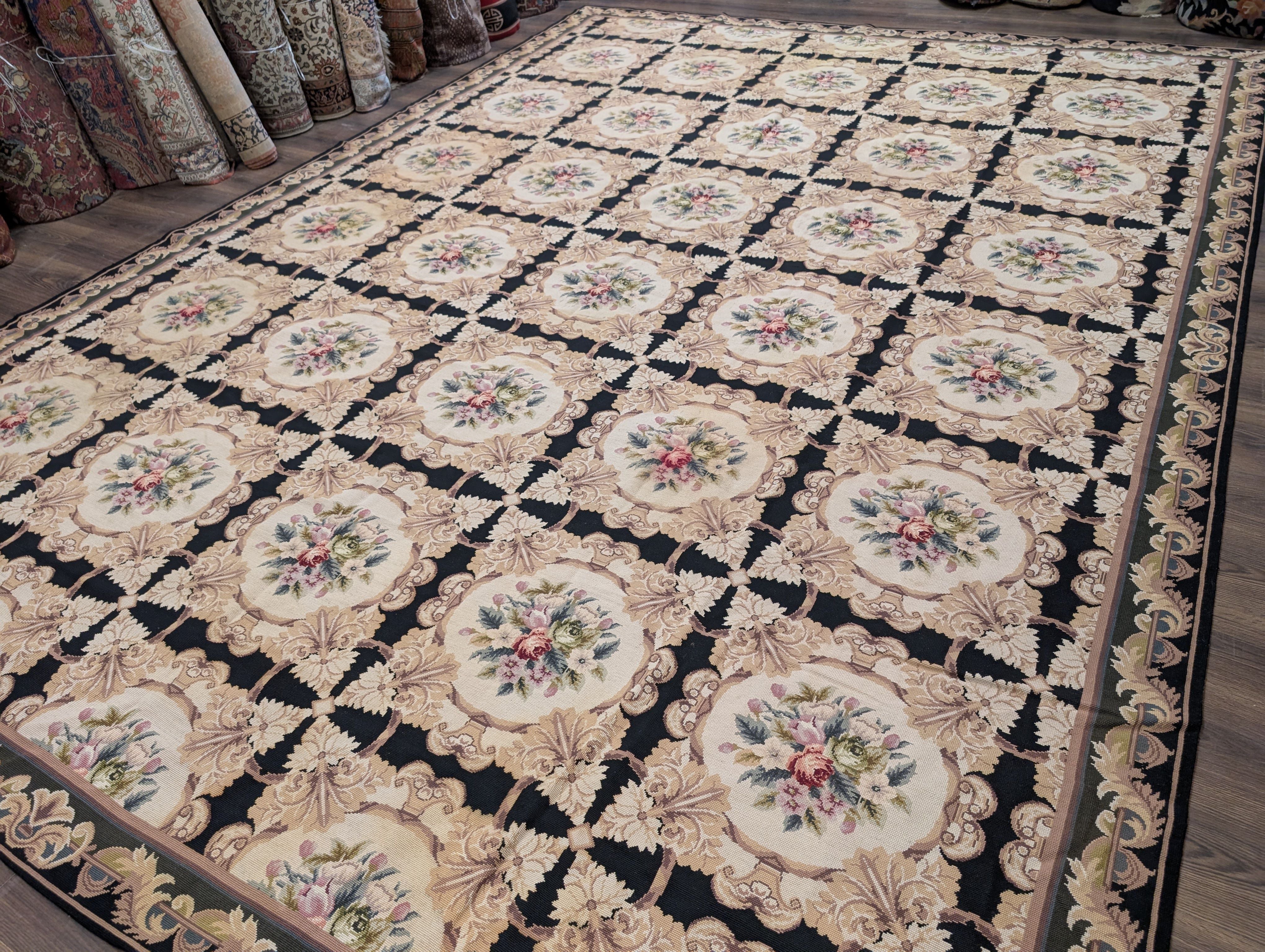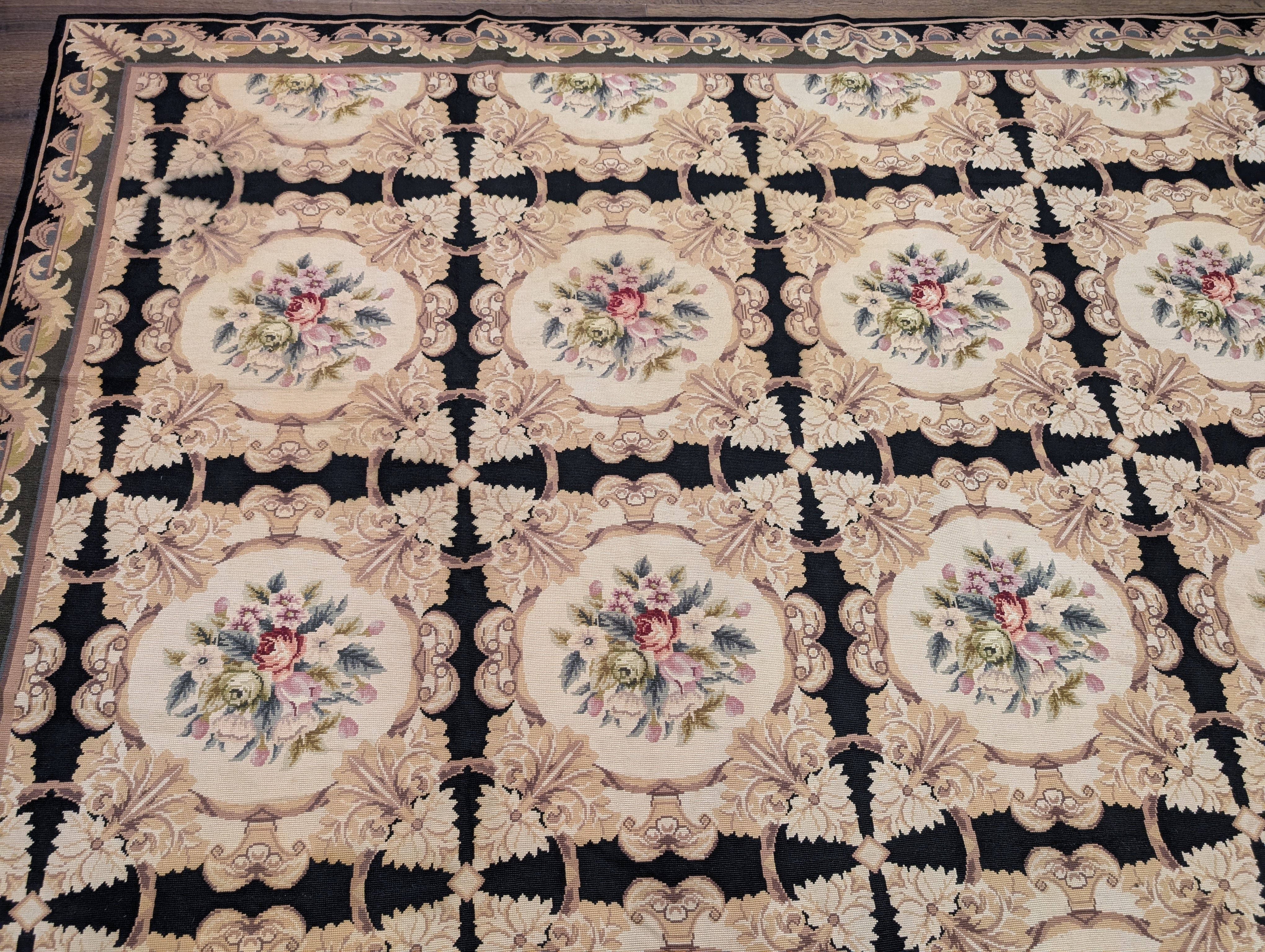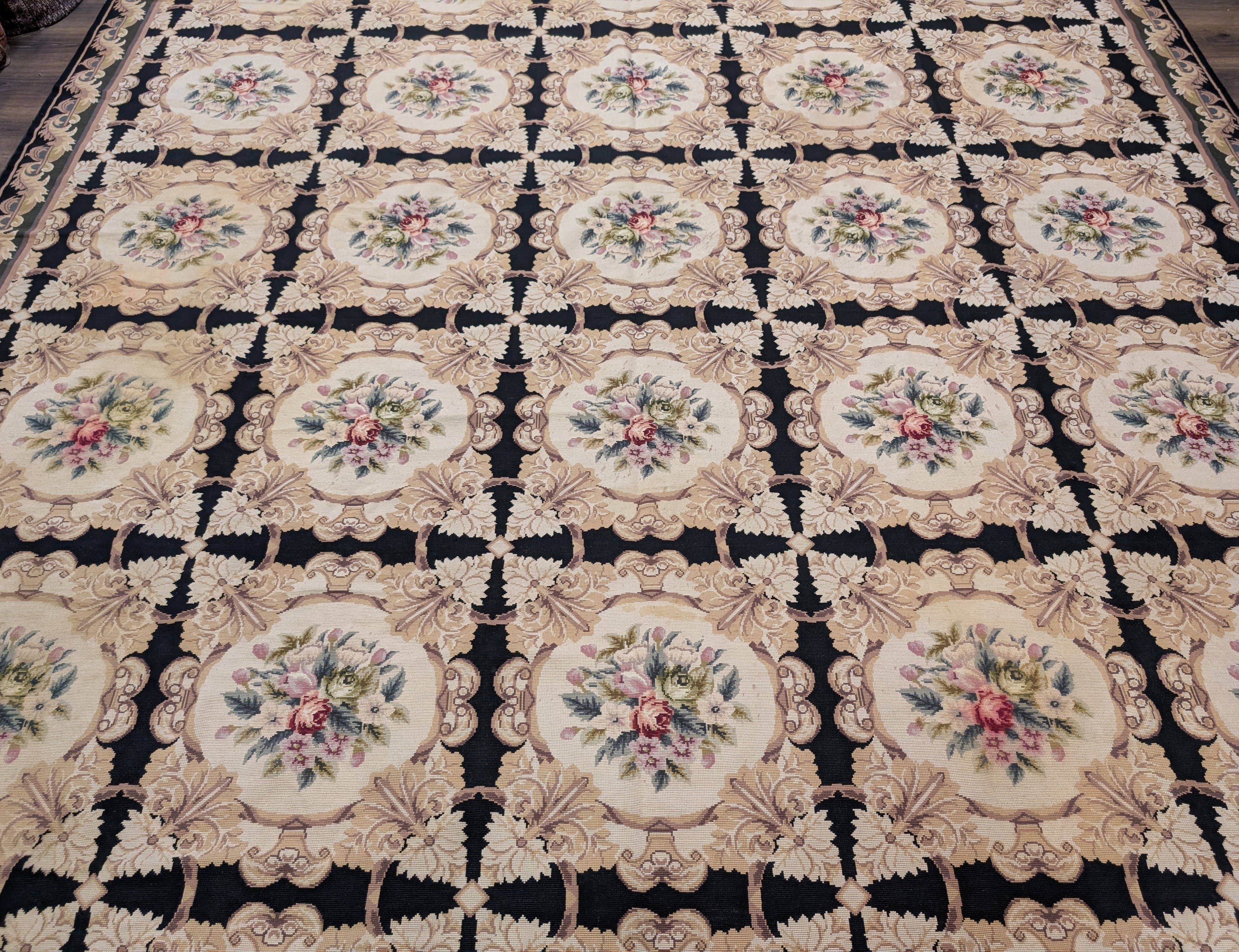 Needlepoint Rug 10x14, English European Floral Panel Design
