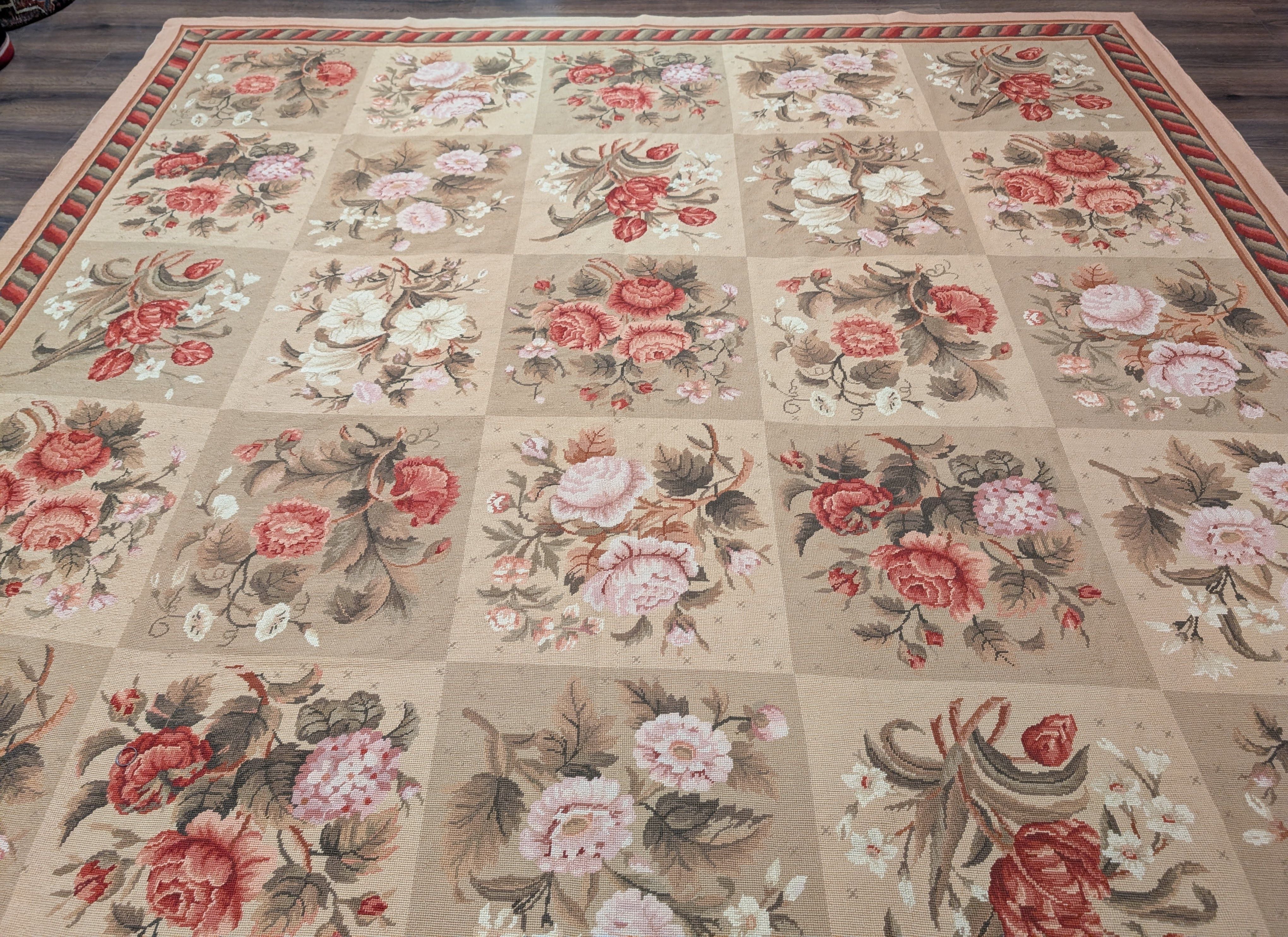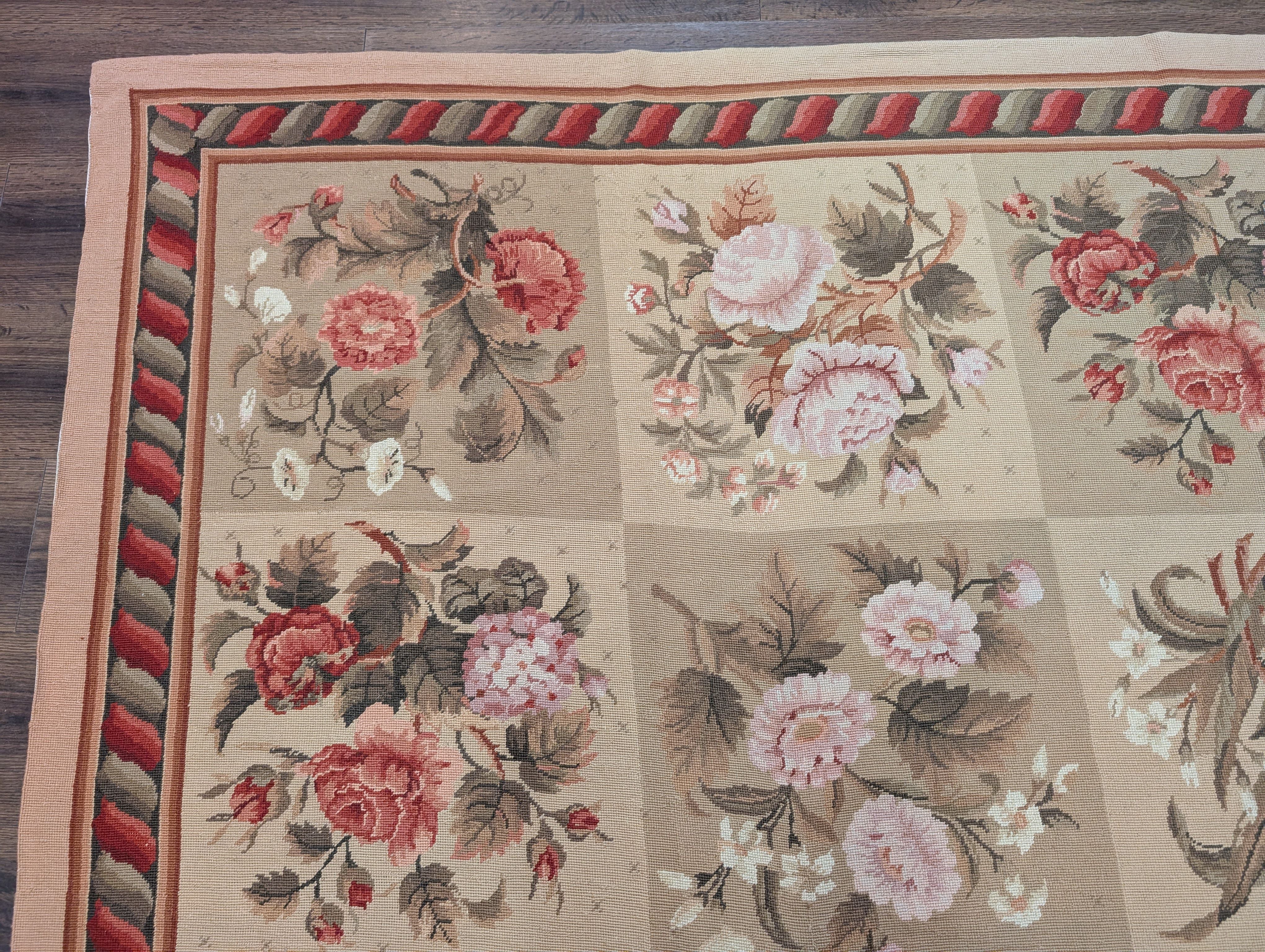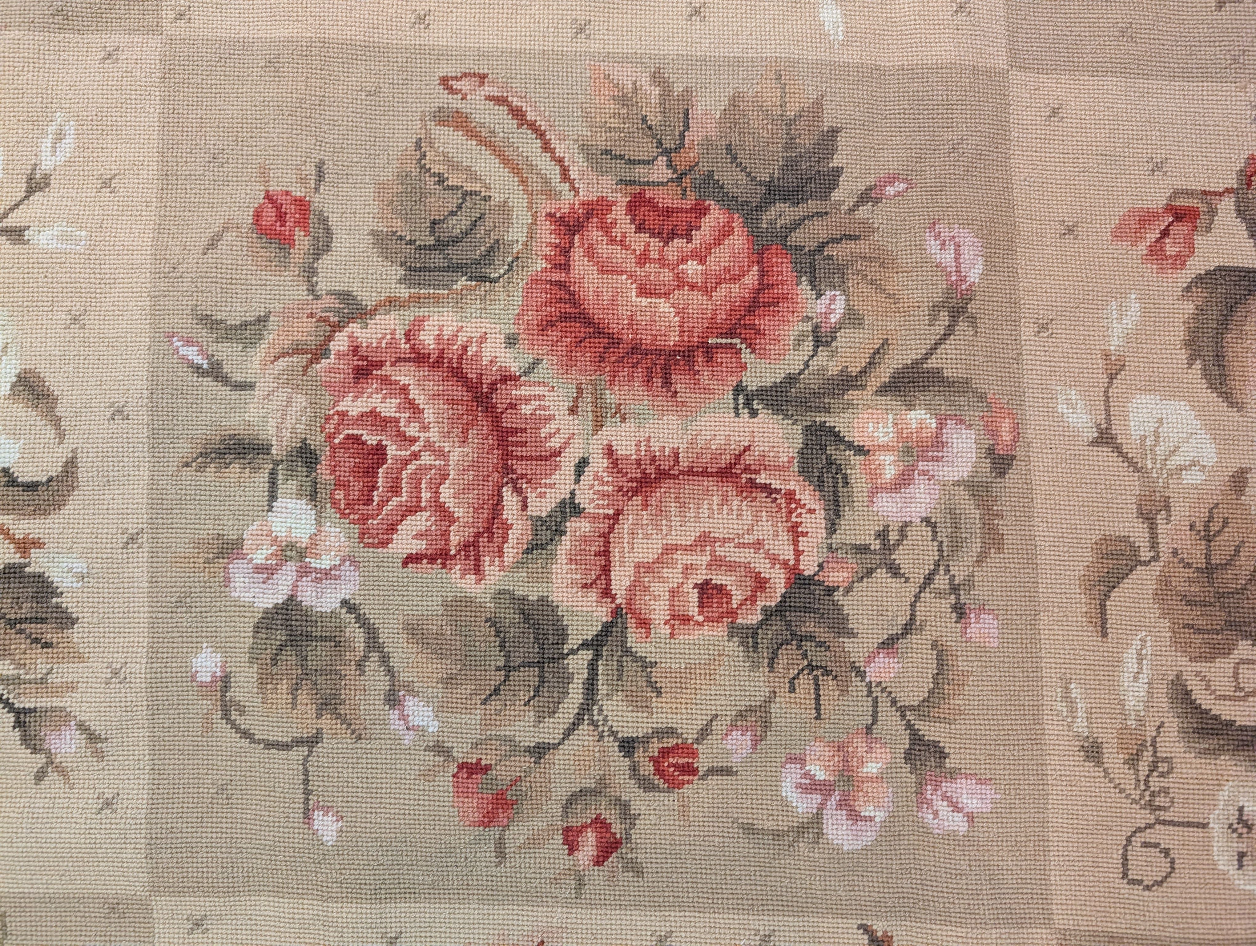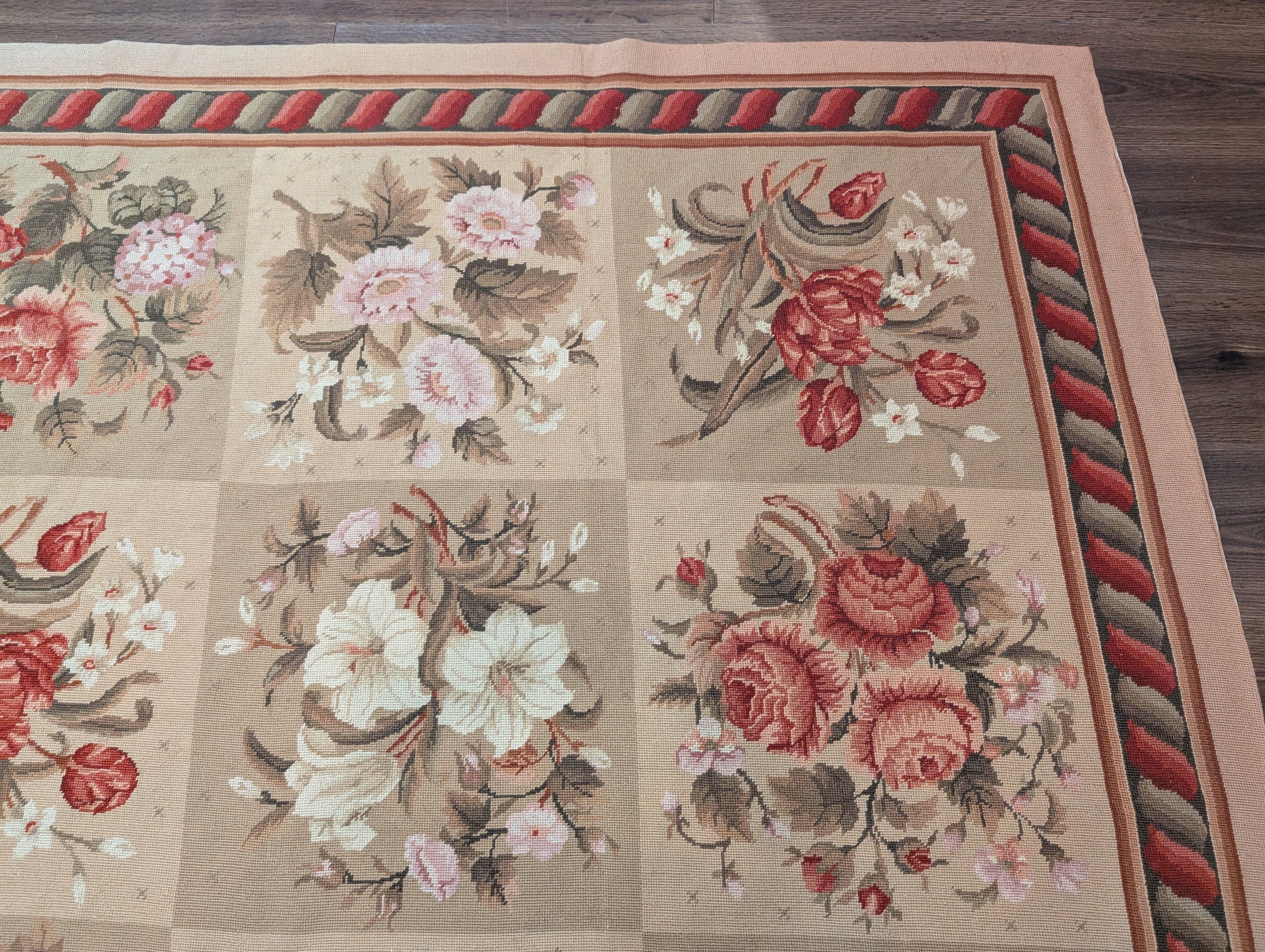 Needlepoint Rug 9x11, Floral Panel Design, Handmade