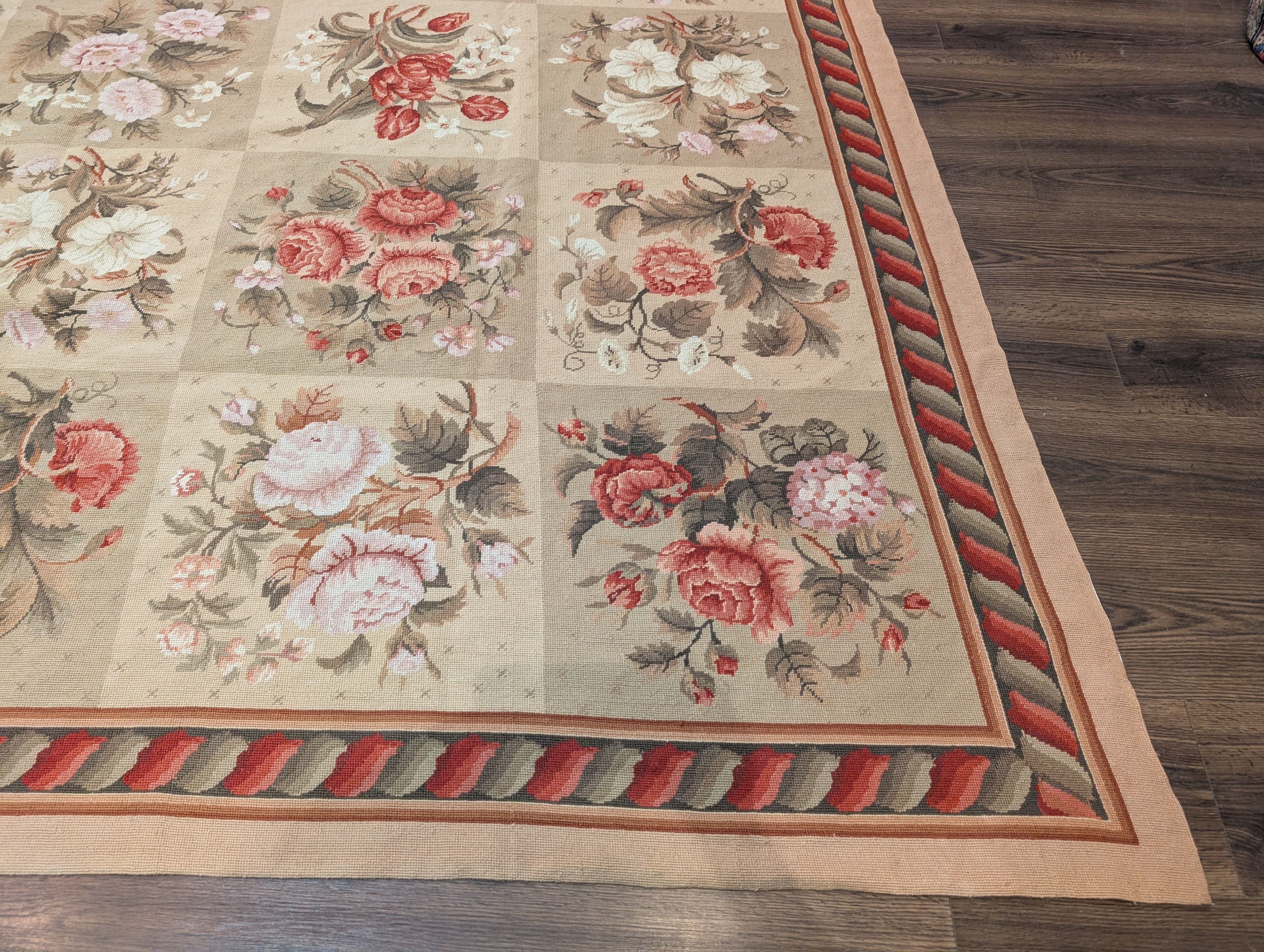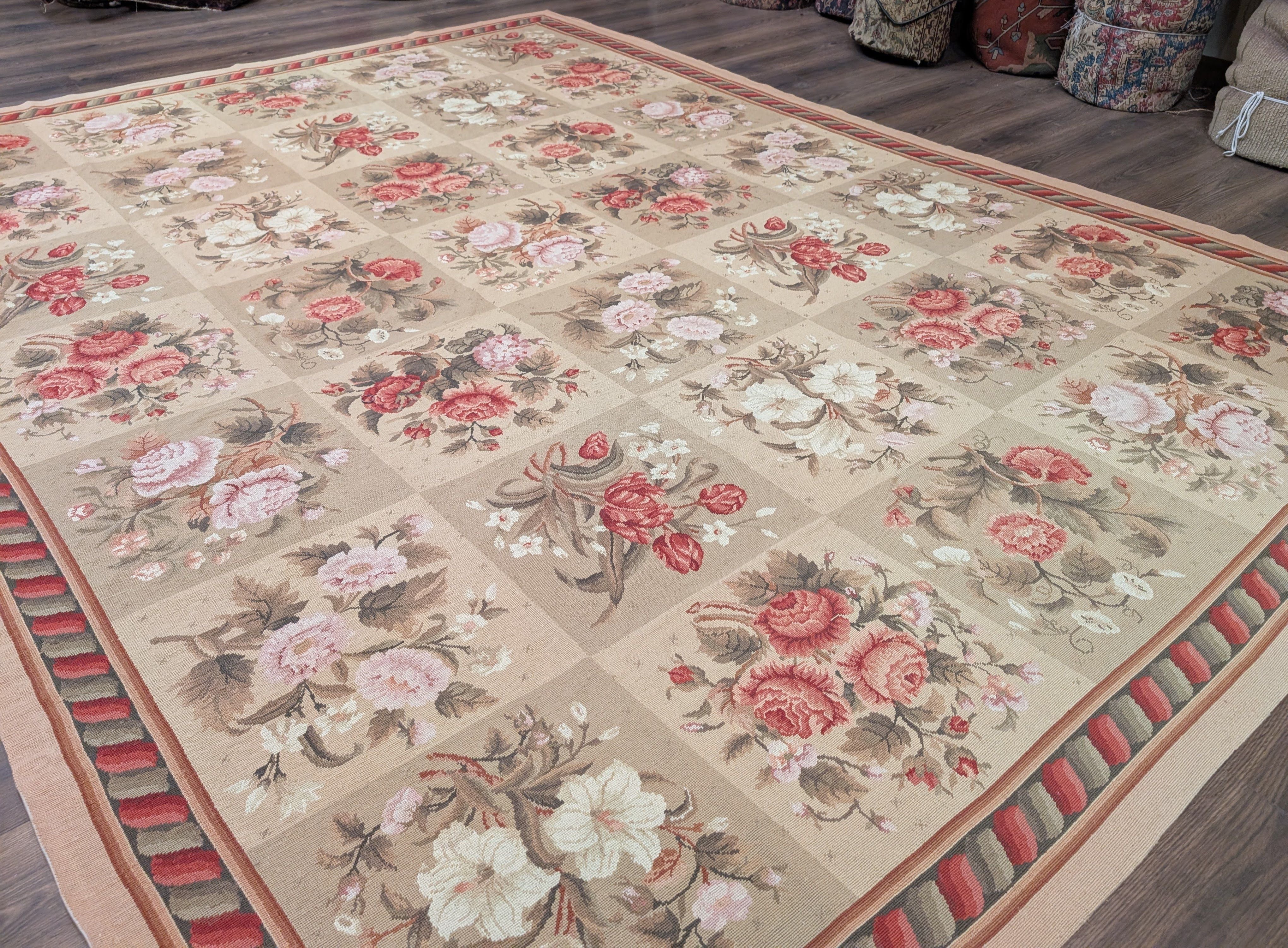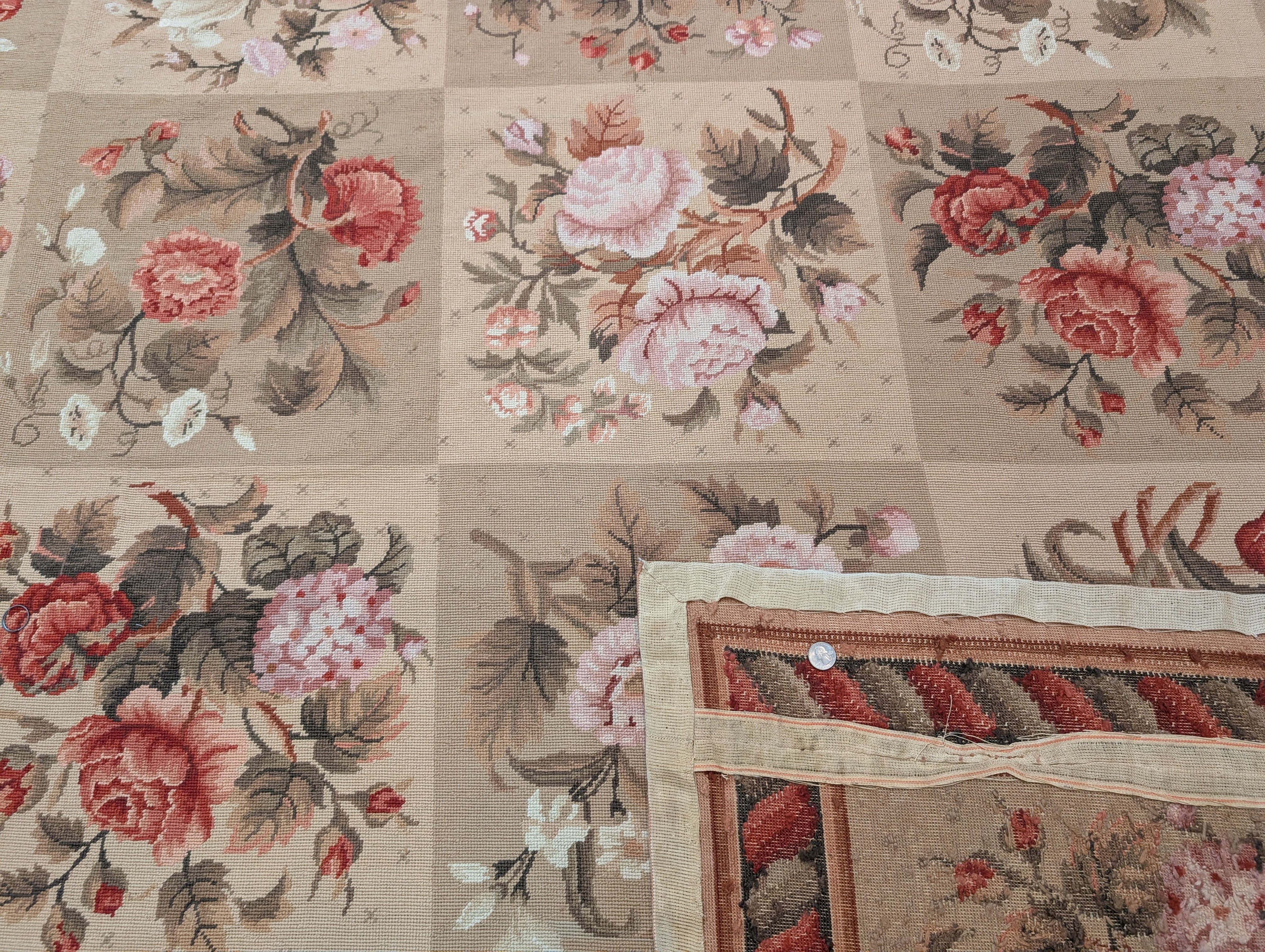 Needlepoint Rug 9x11, Floral Panel Design, Handmade