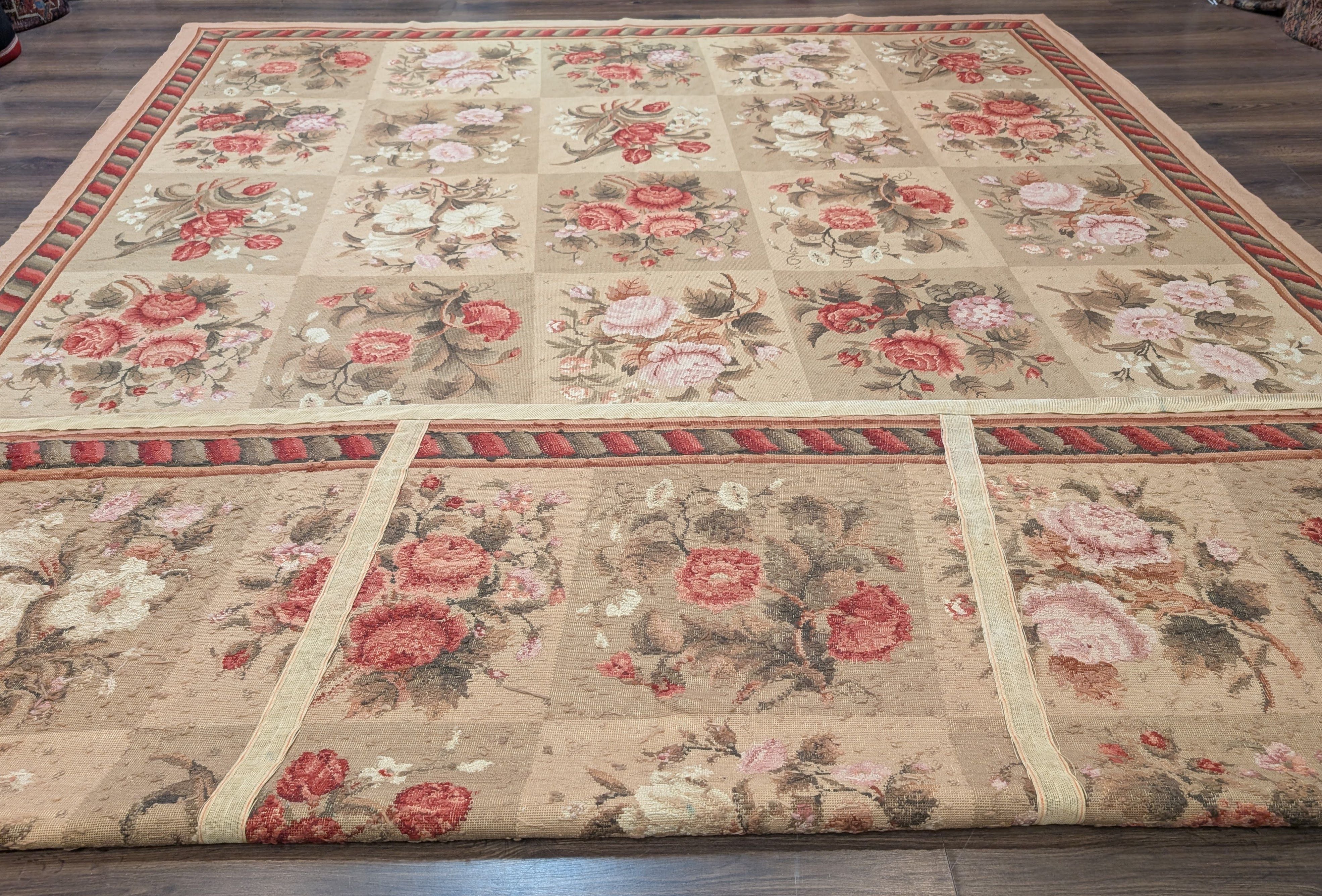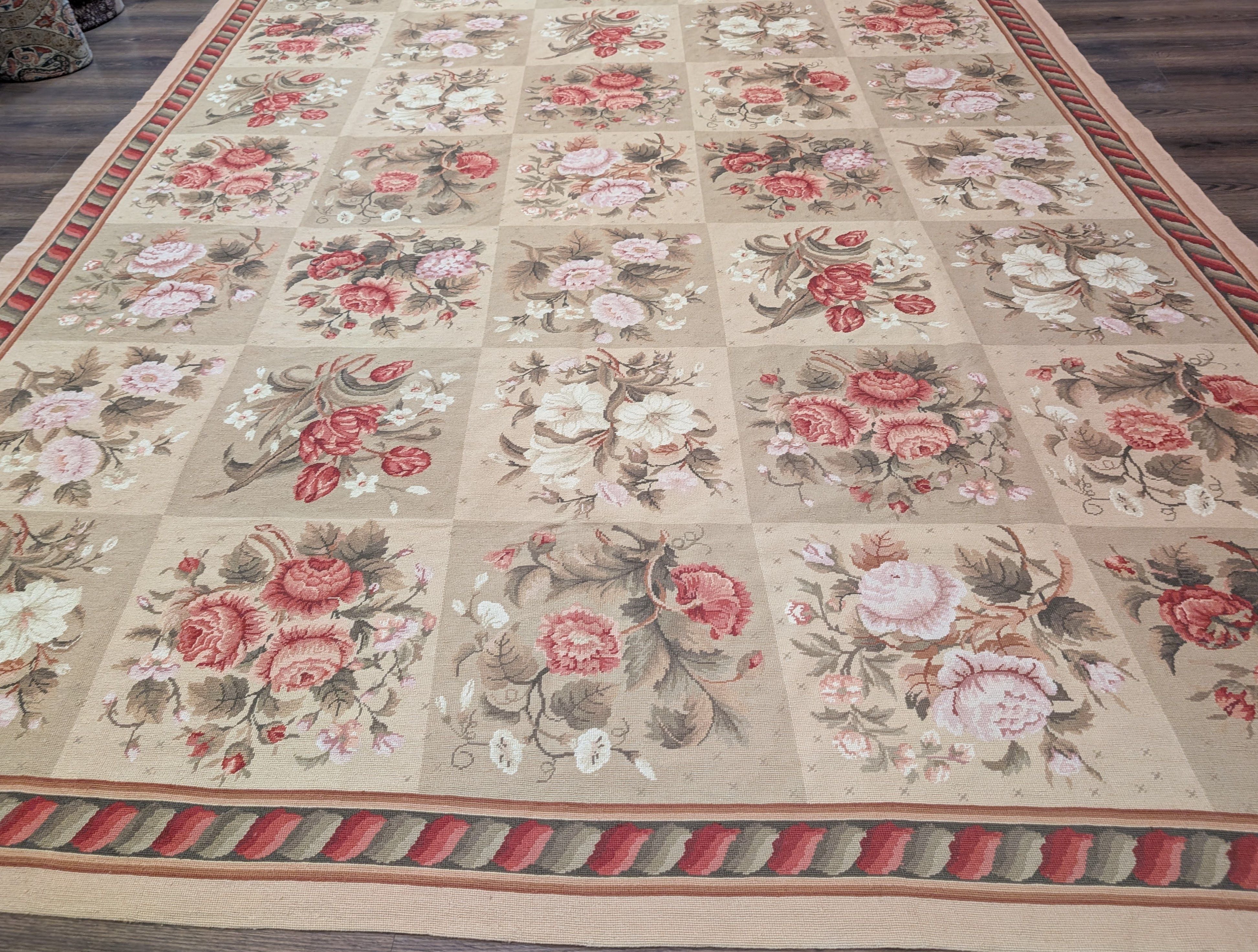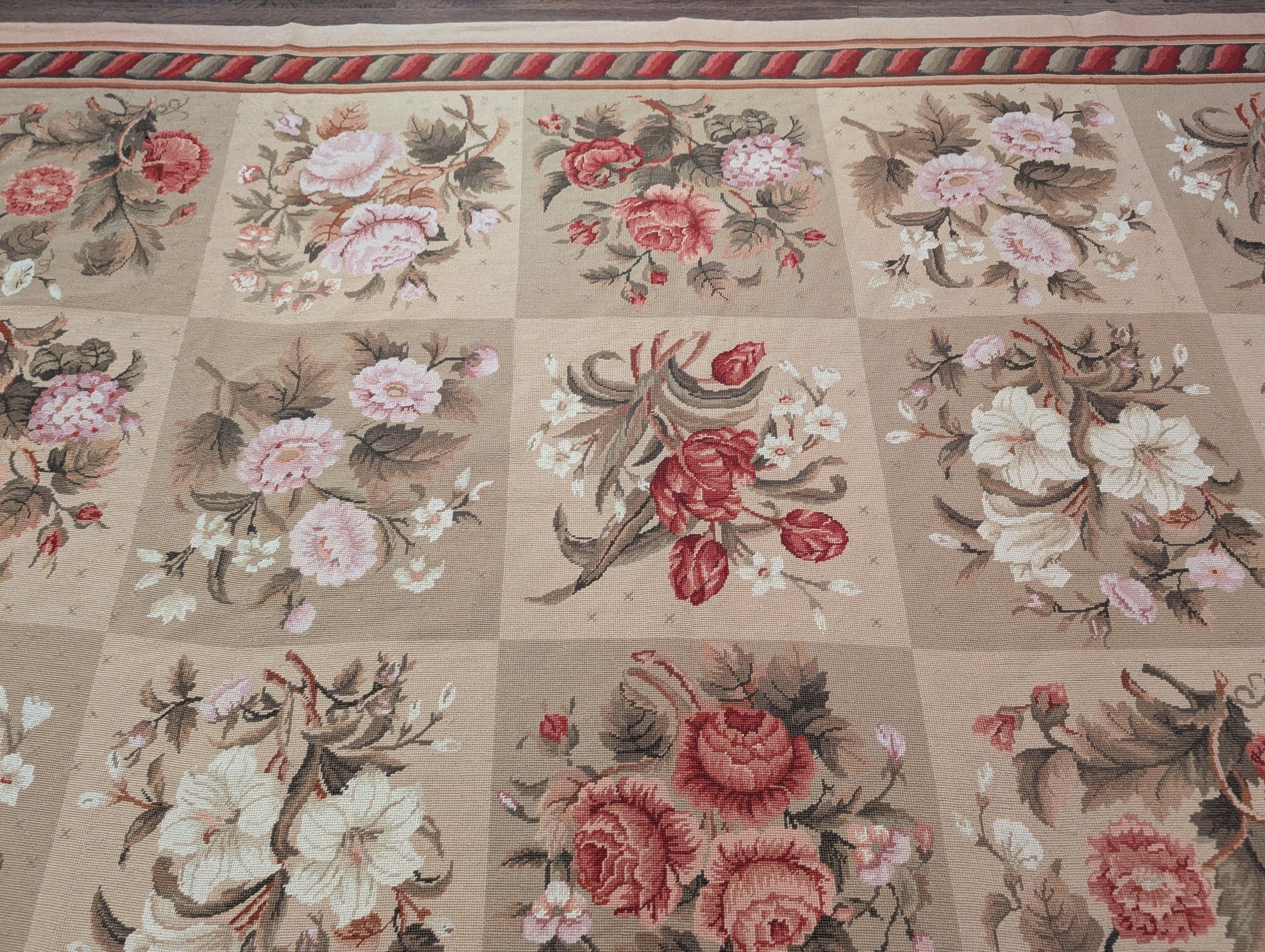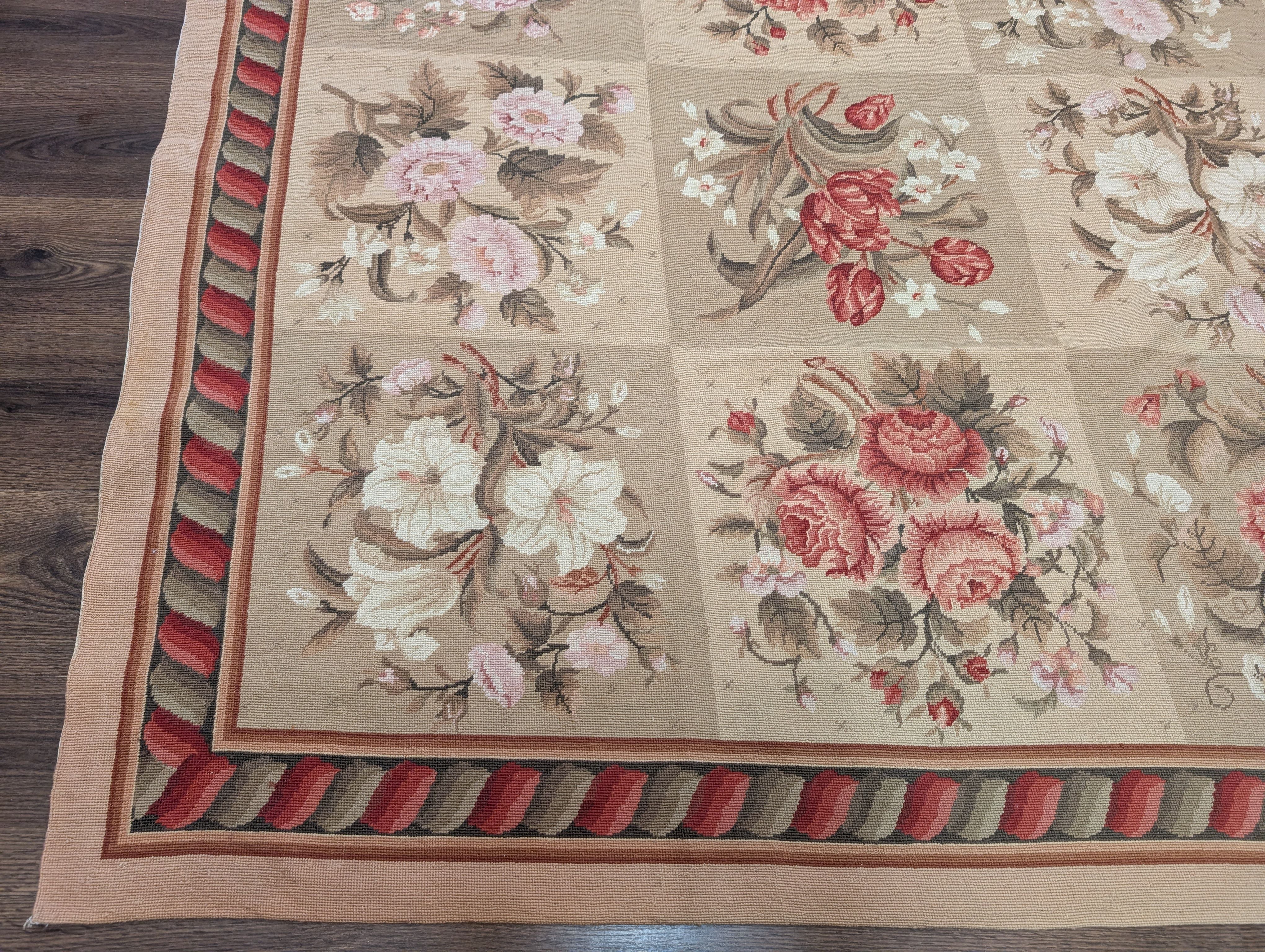 Needlepoint Rug 9x11, Floral Panel Design, Handmade