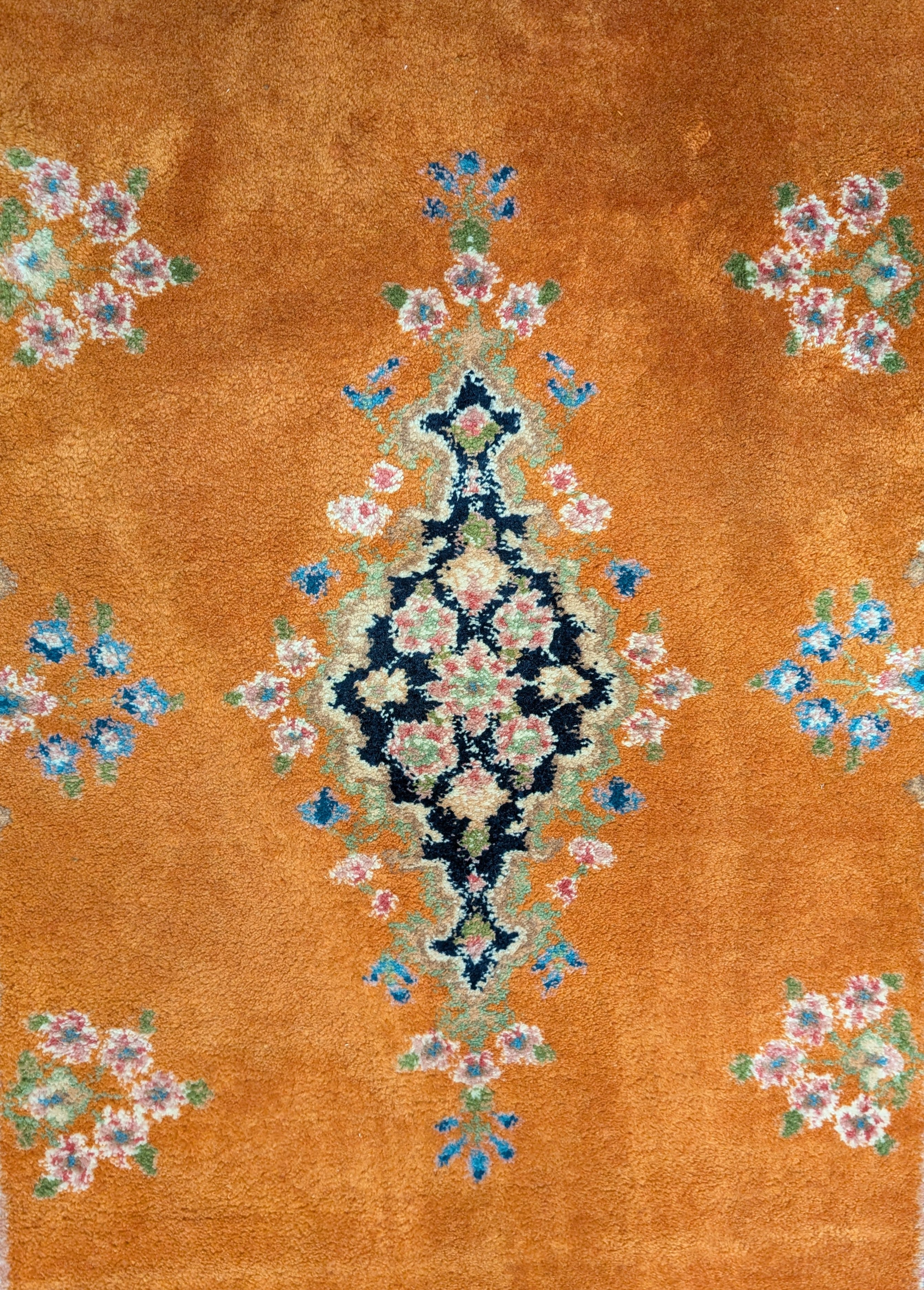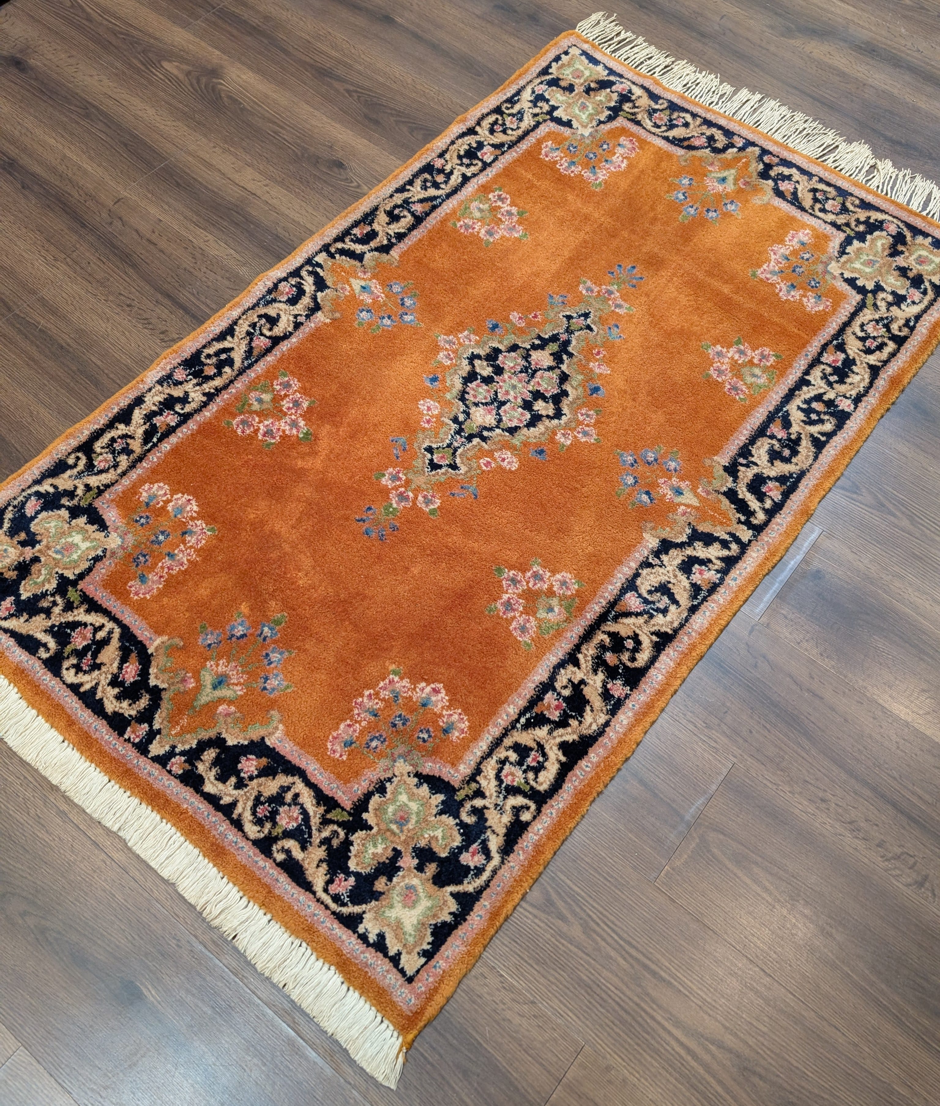 Orange Persian Rug 3x5, Kirman Wool Rug