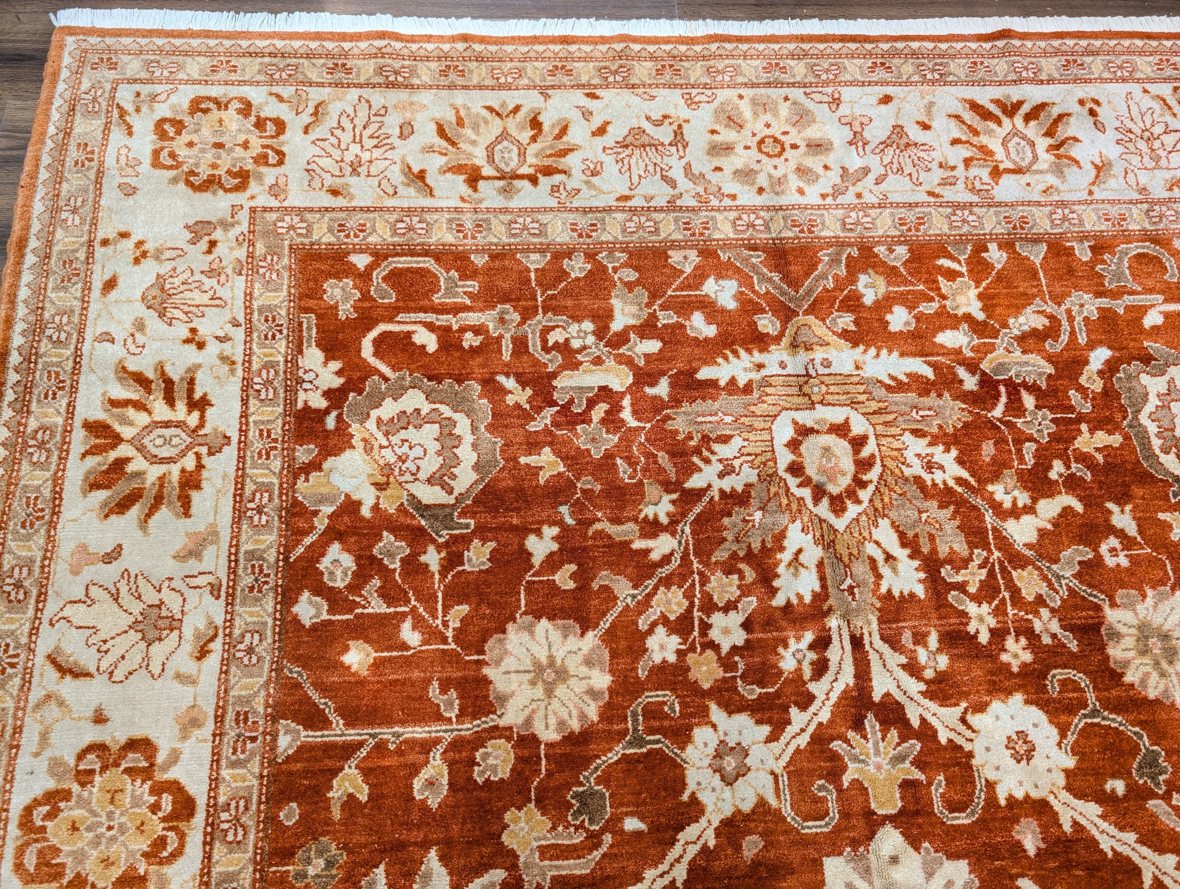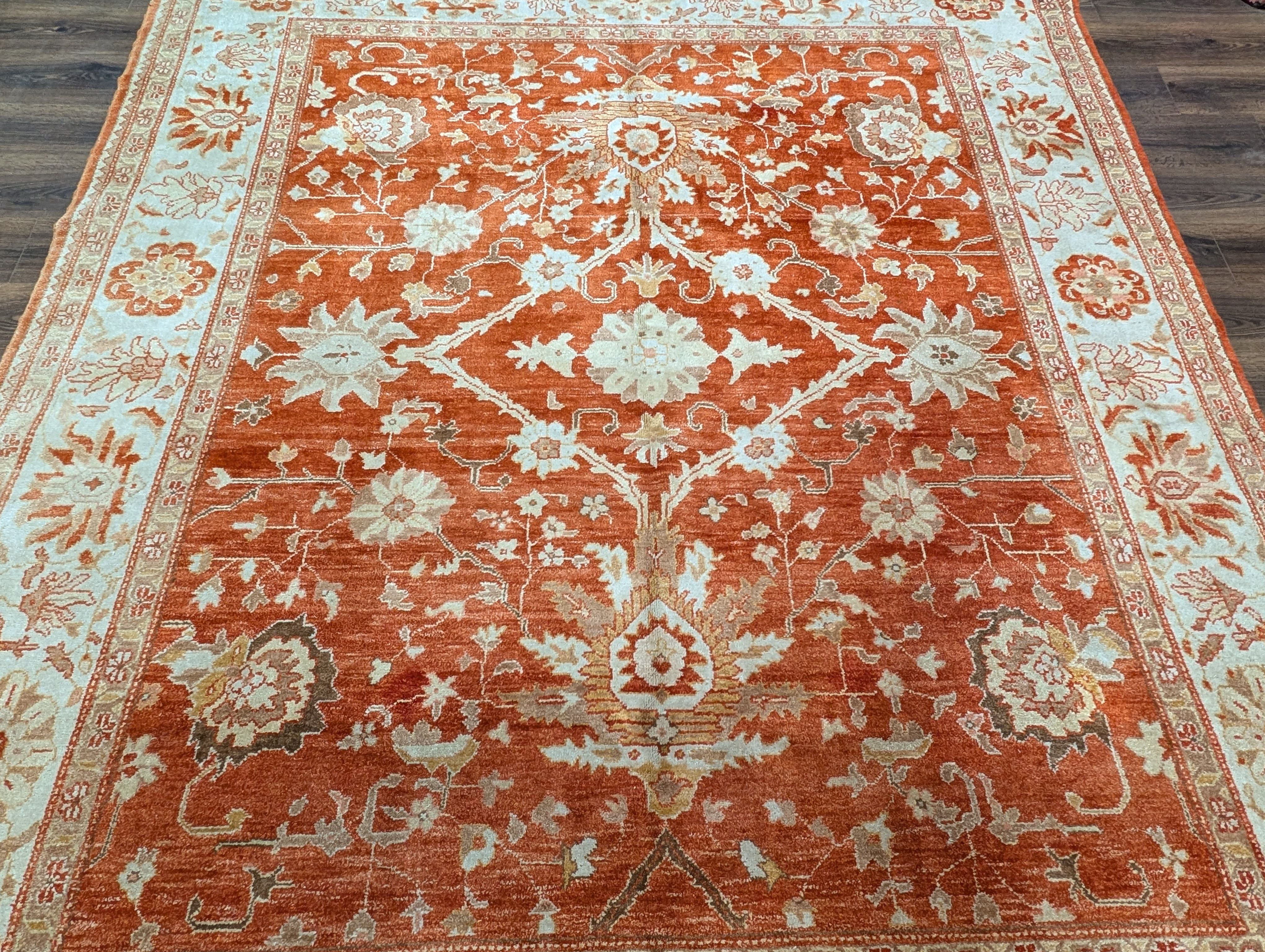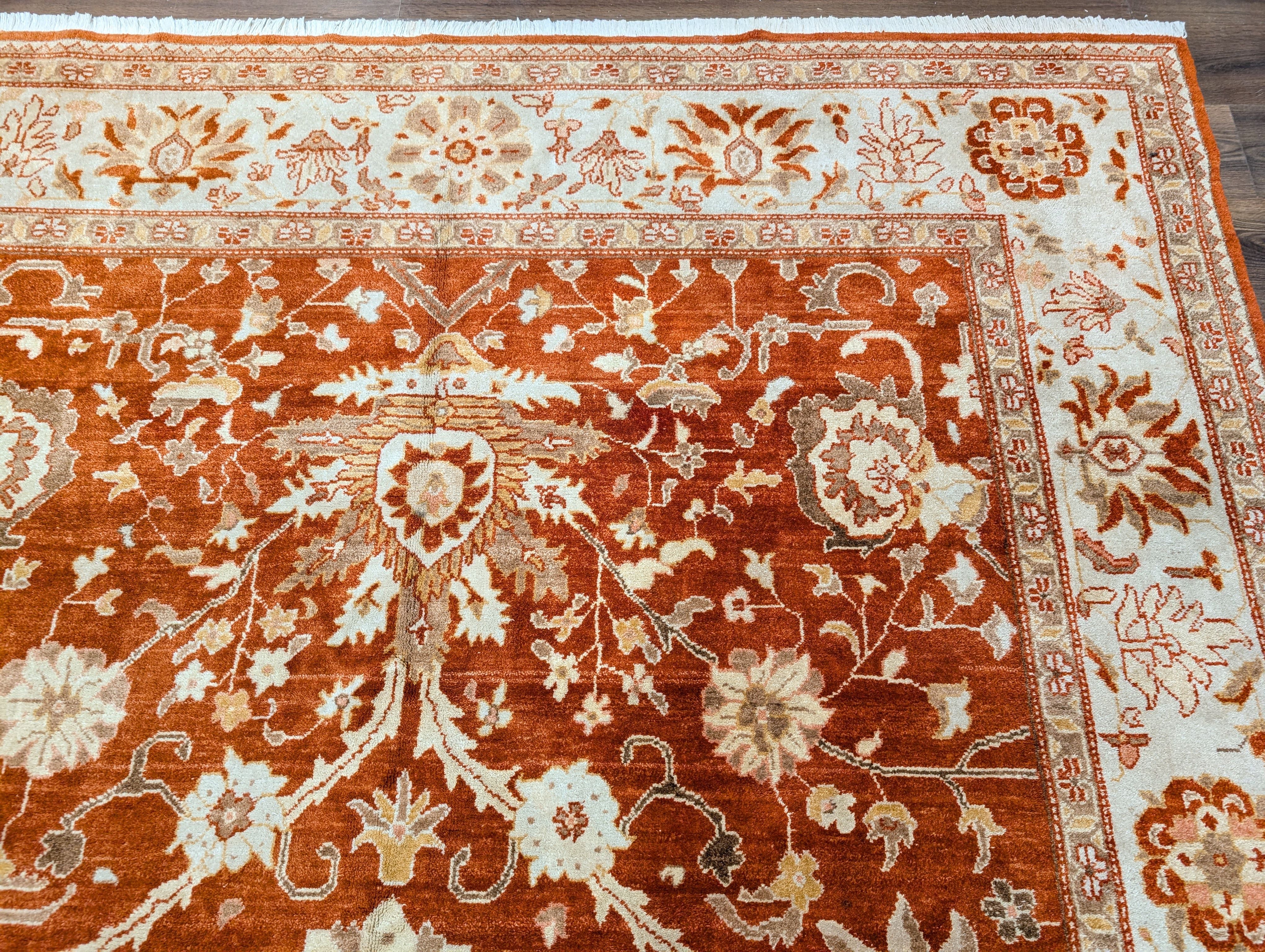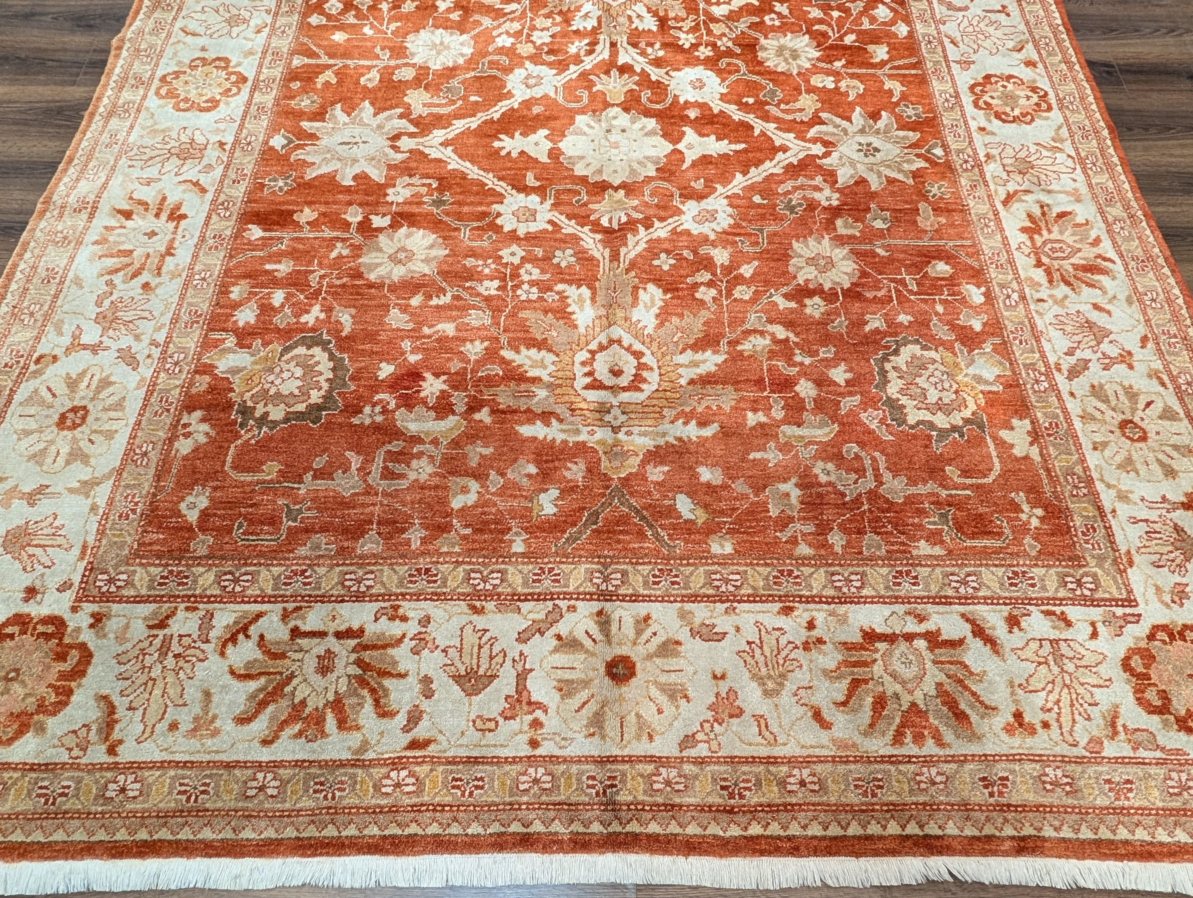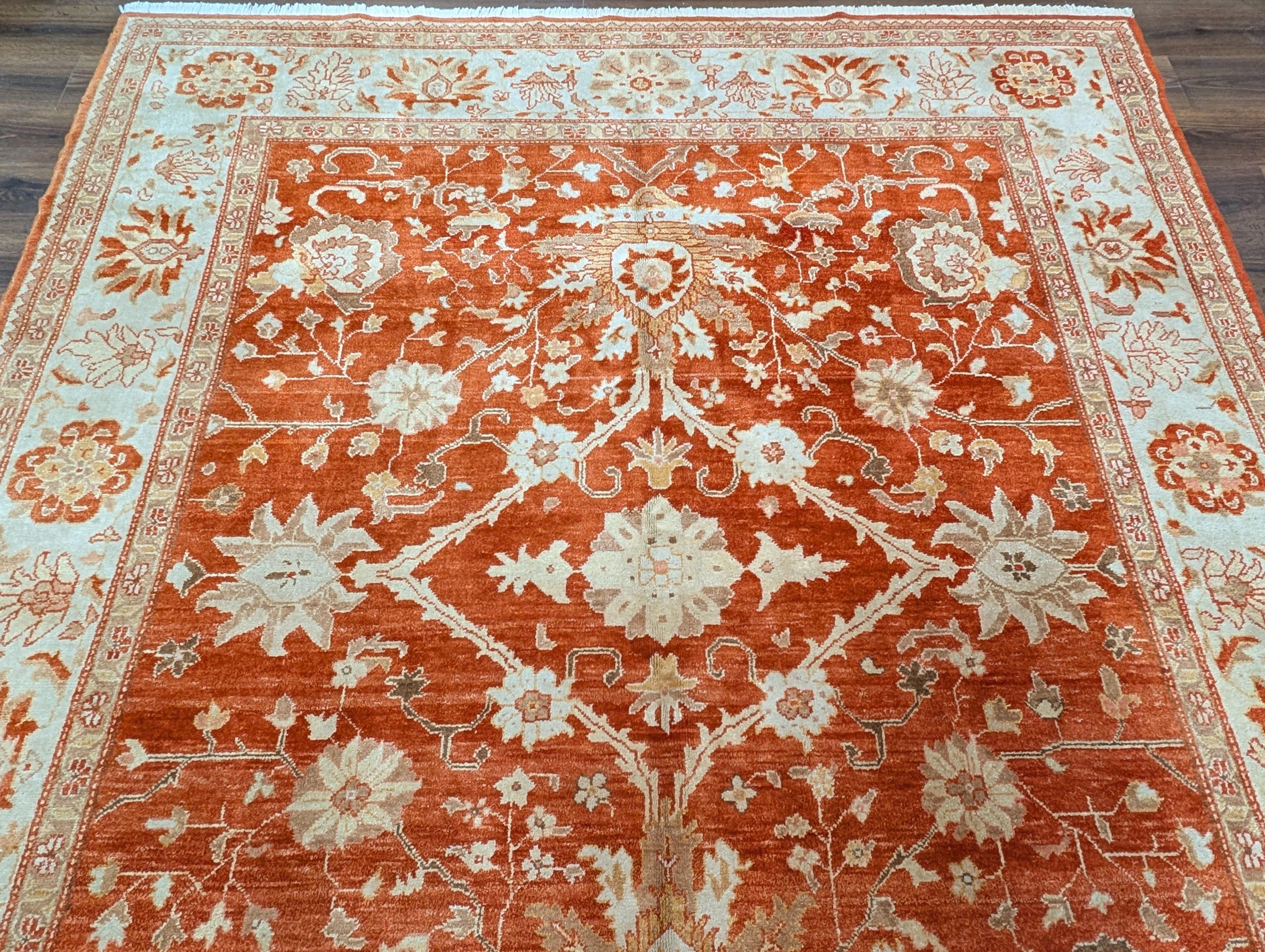 Pak Persian Peshawar Rug 8x10, Sultanabad Wool Carpet, Burnt Orange, Hand Knotted