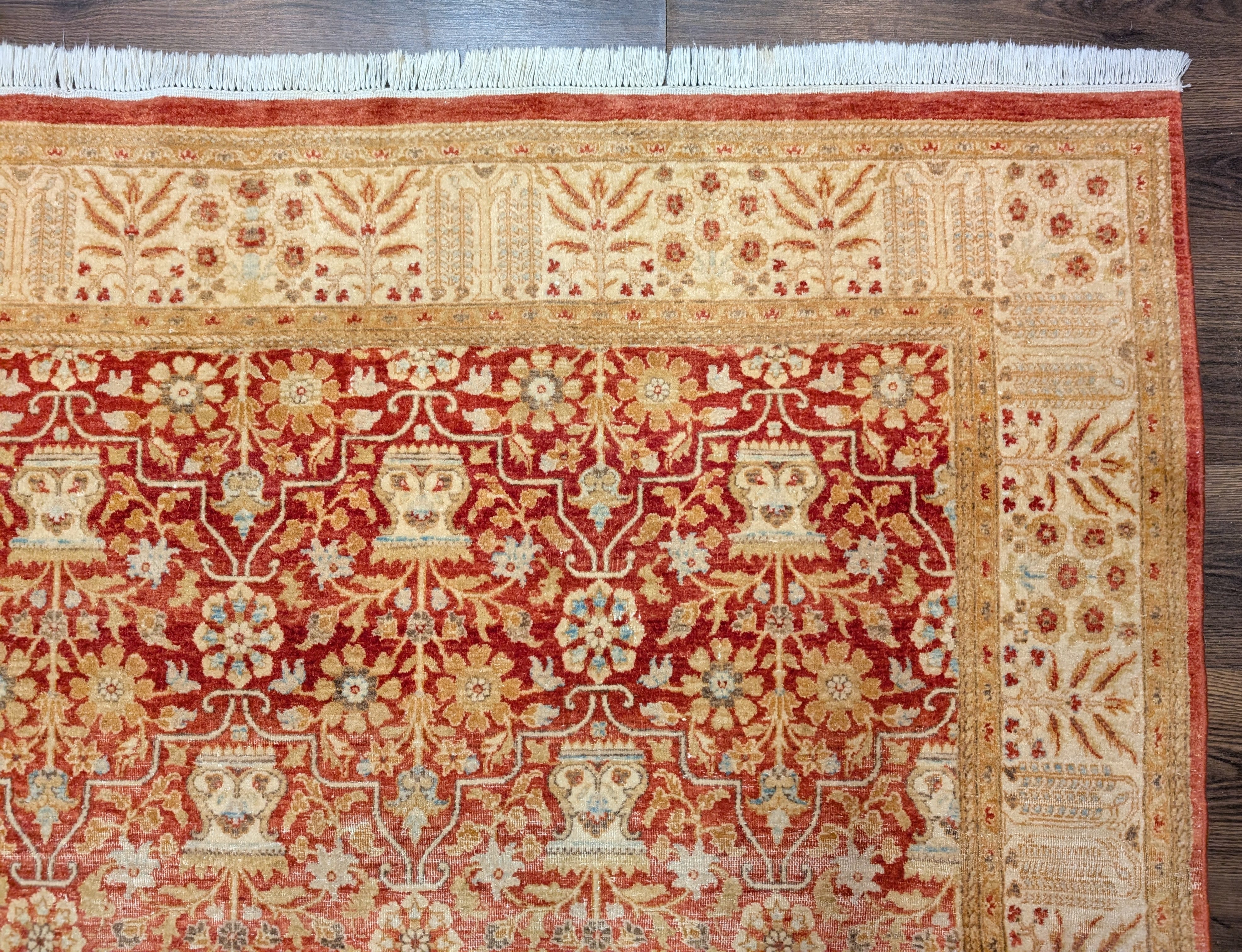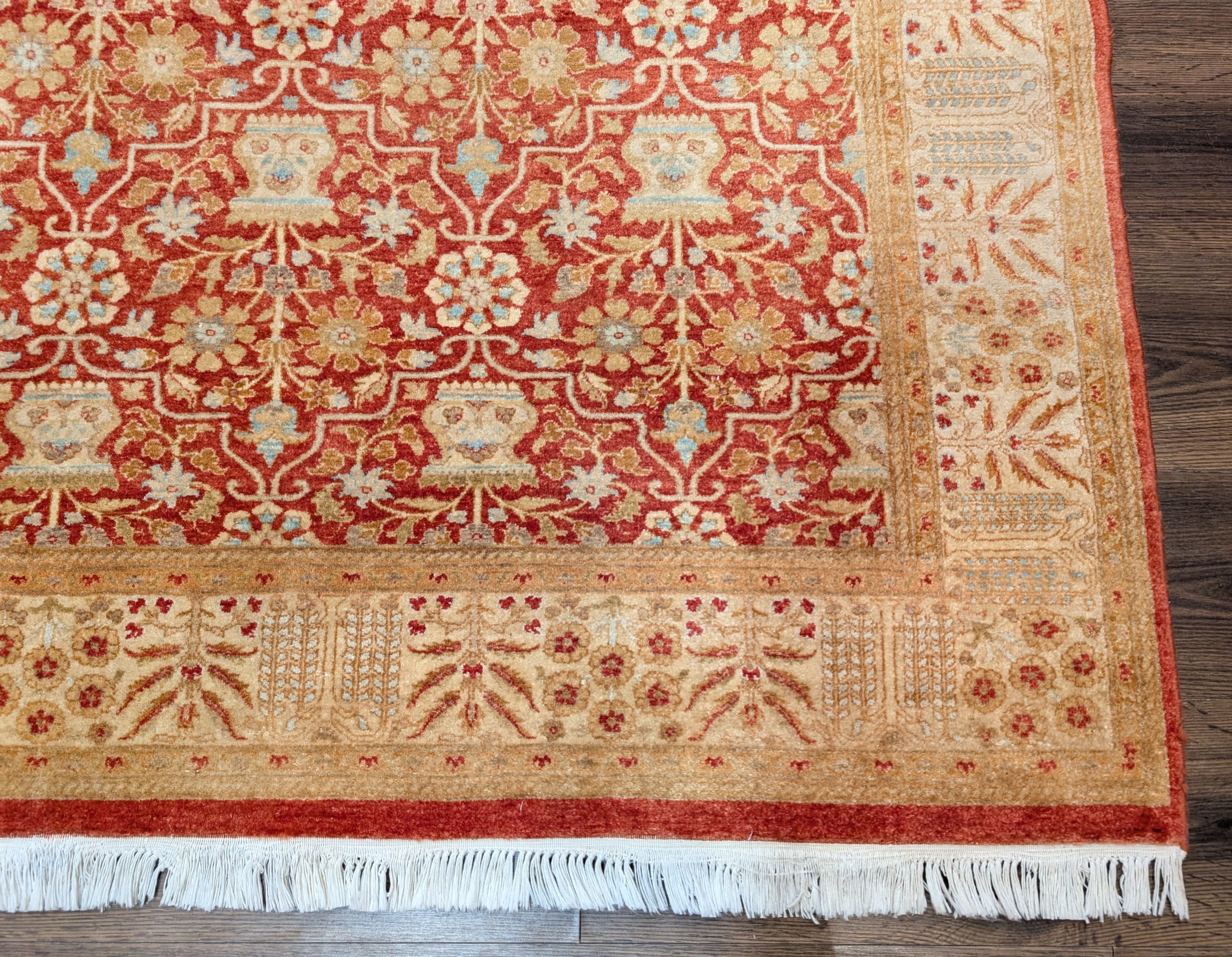 Pak Persian Rug 6x9, Red Allover Floral Pattern, Fine 290 KPSI