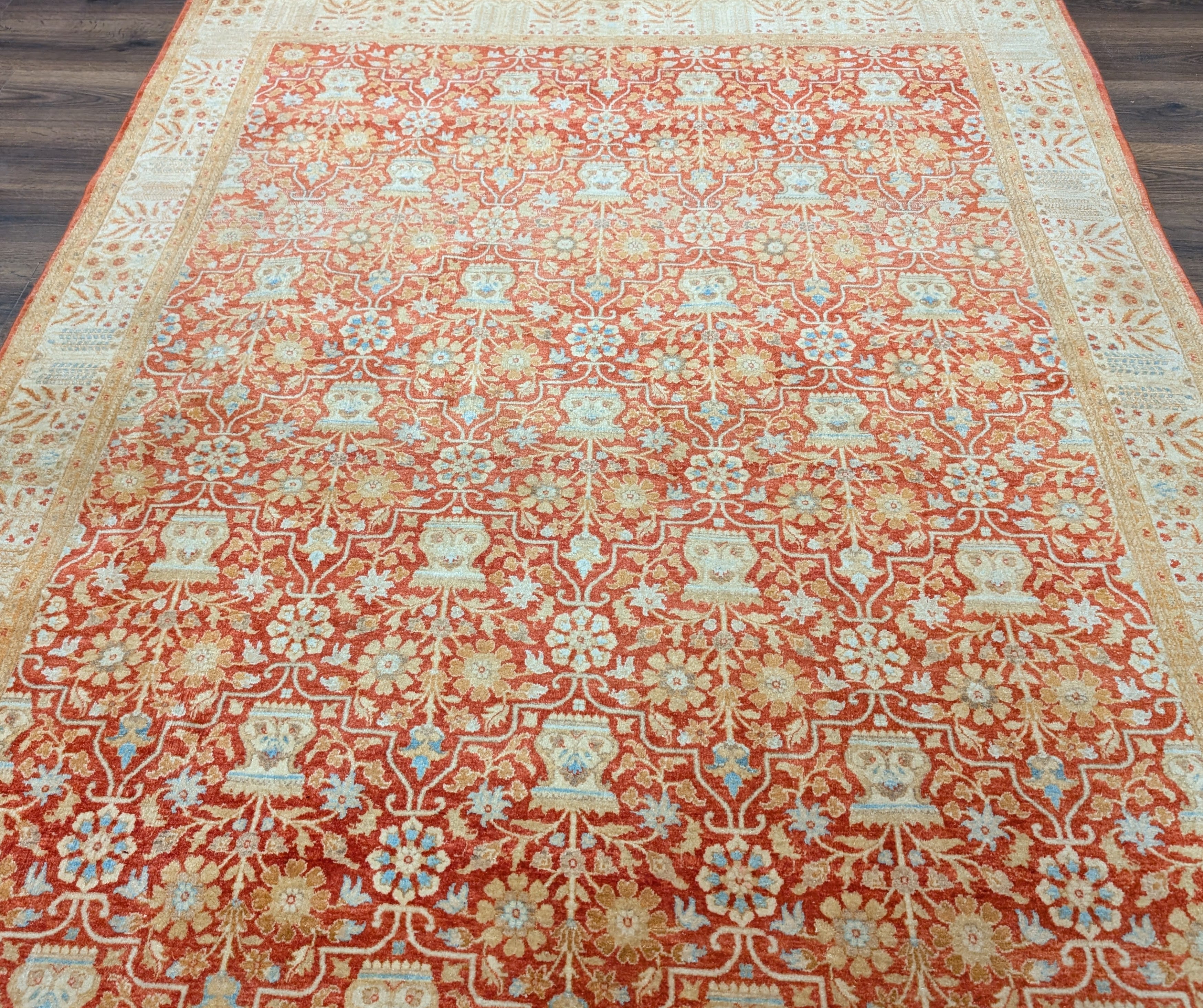 | Condition/Notes | Good condition. Free of stains, odors, discolorations, tears, etc. Has one area of medium-low pile. Finely hand knotted with a knot density of 290 KPSI. Recently cleaned and ready to be enjoyed in your space. |