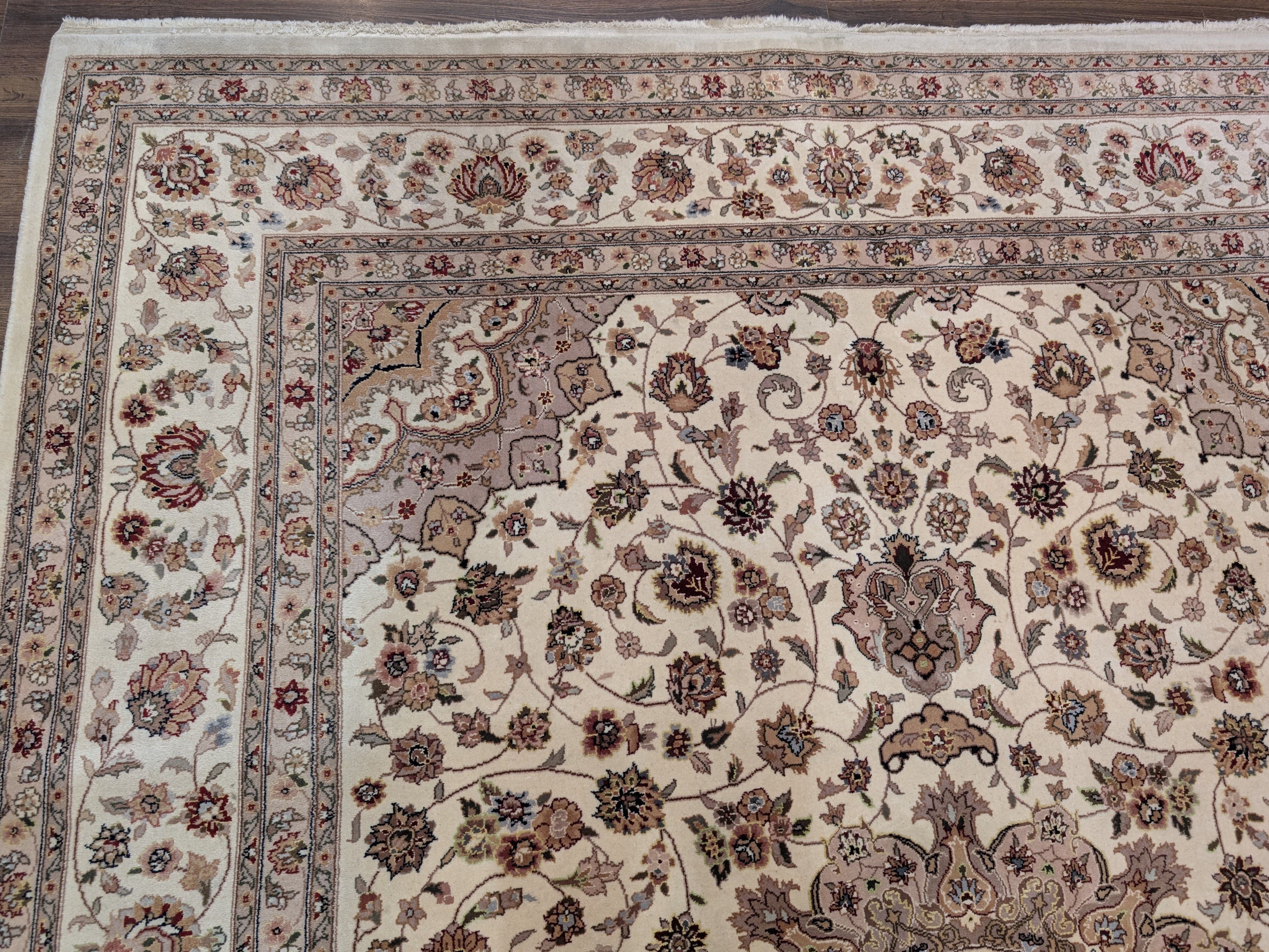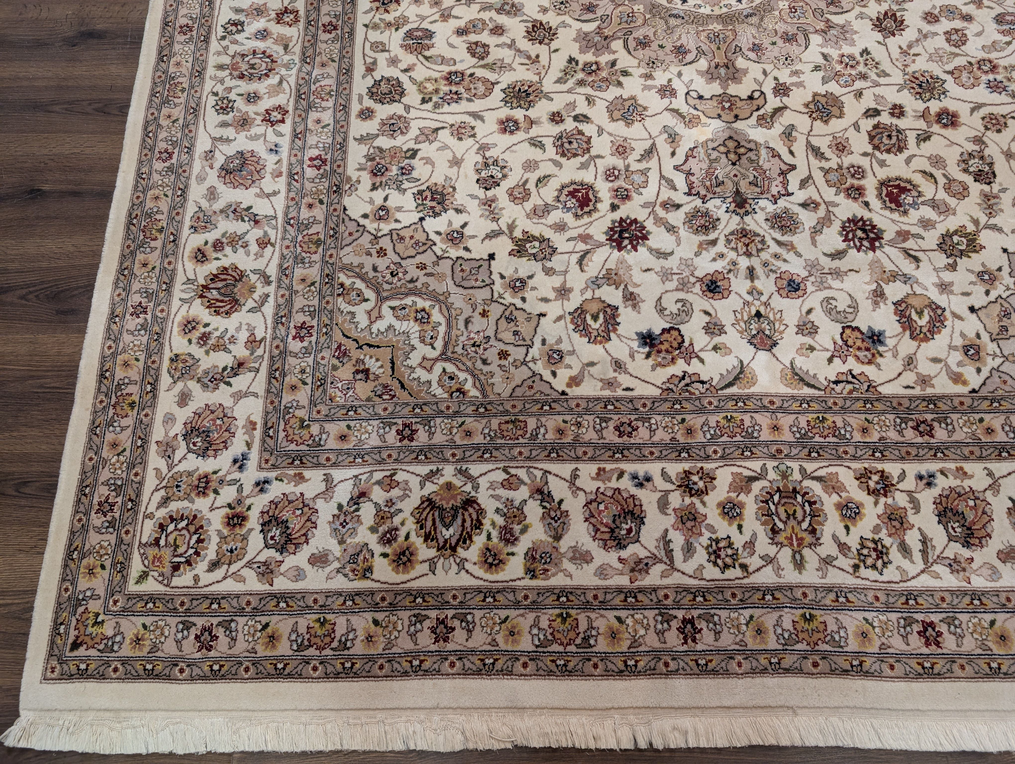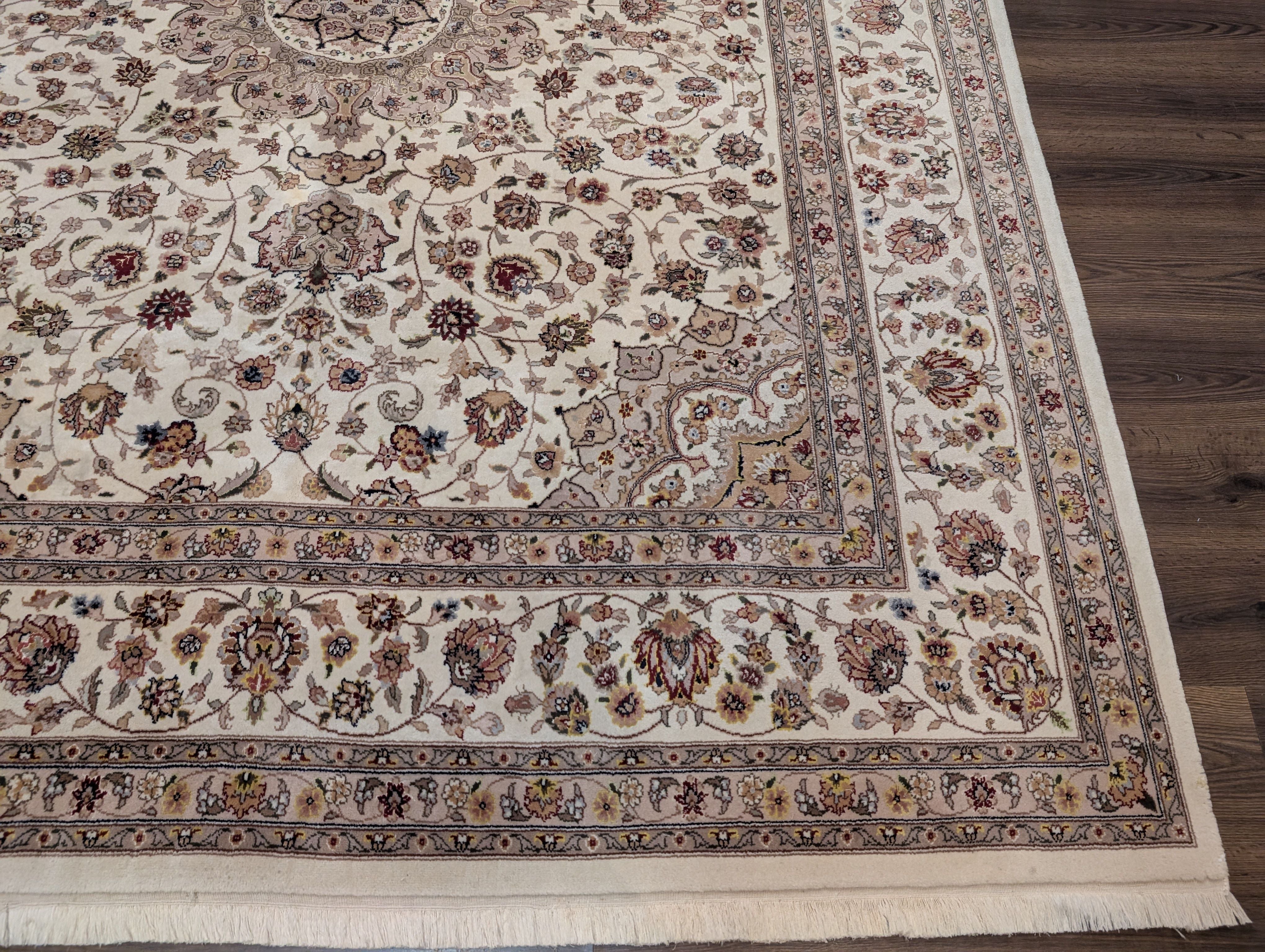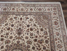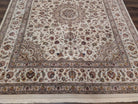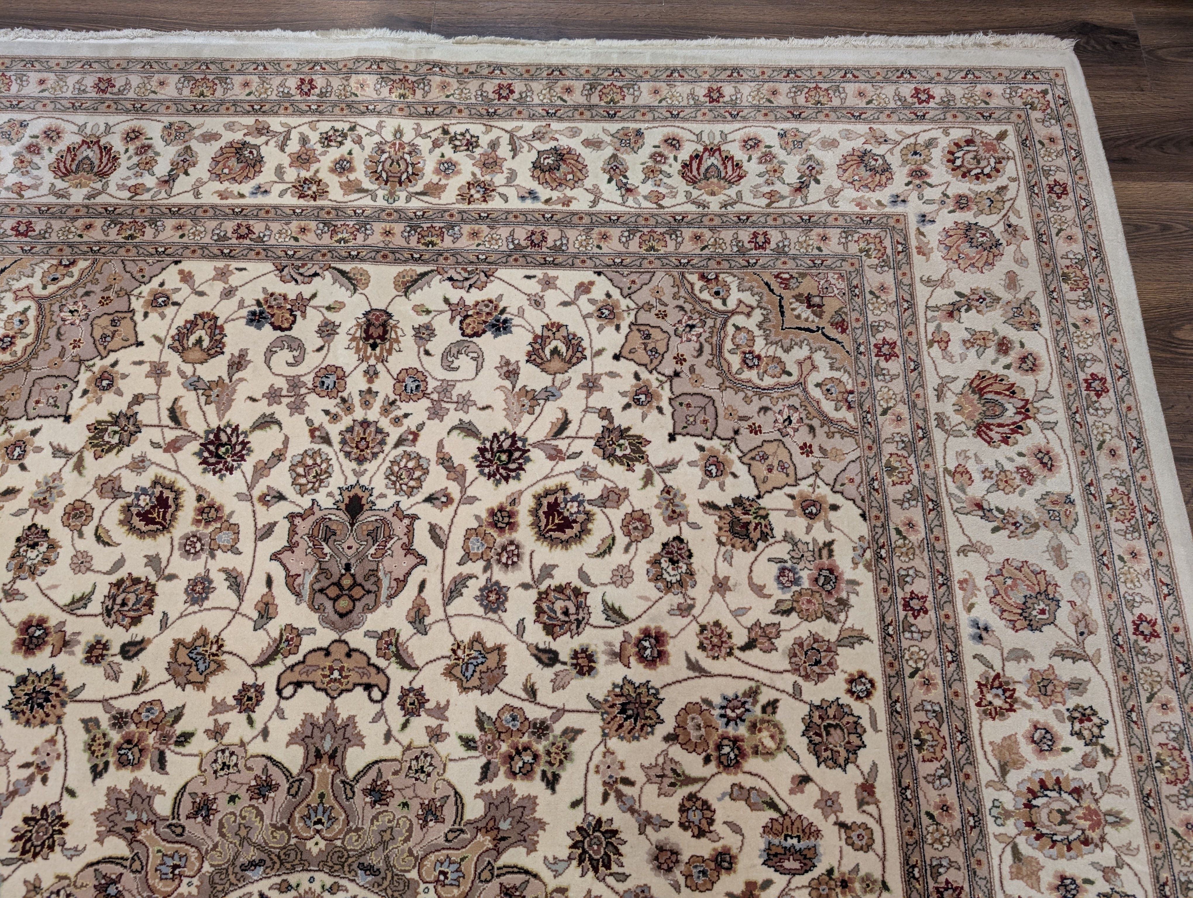 Pak Persian Rug 8x10, Finely Hand Knotted, Ivory/Cream, Floral Medallion, Wool Carpet