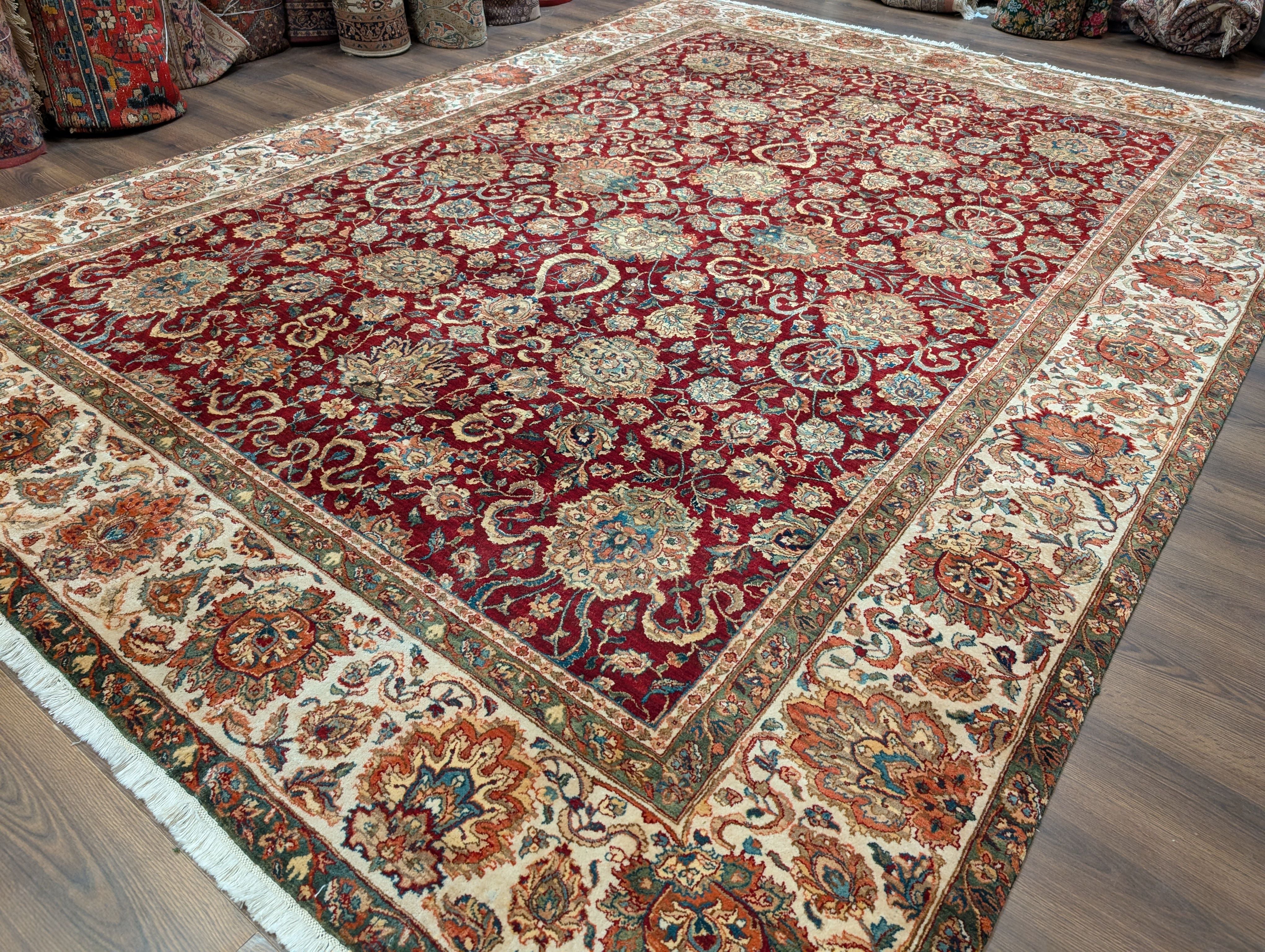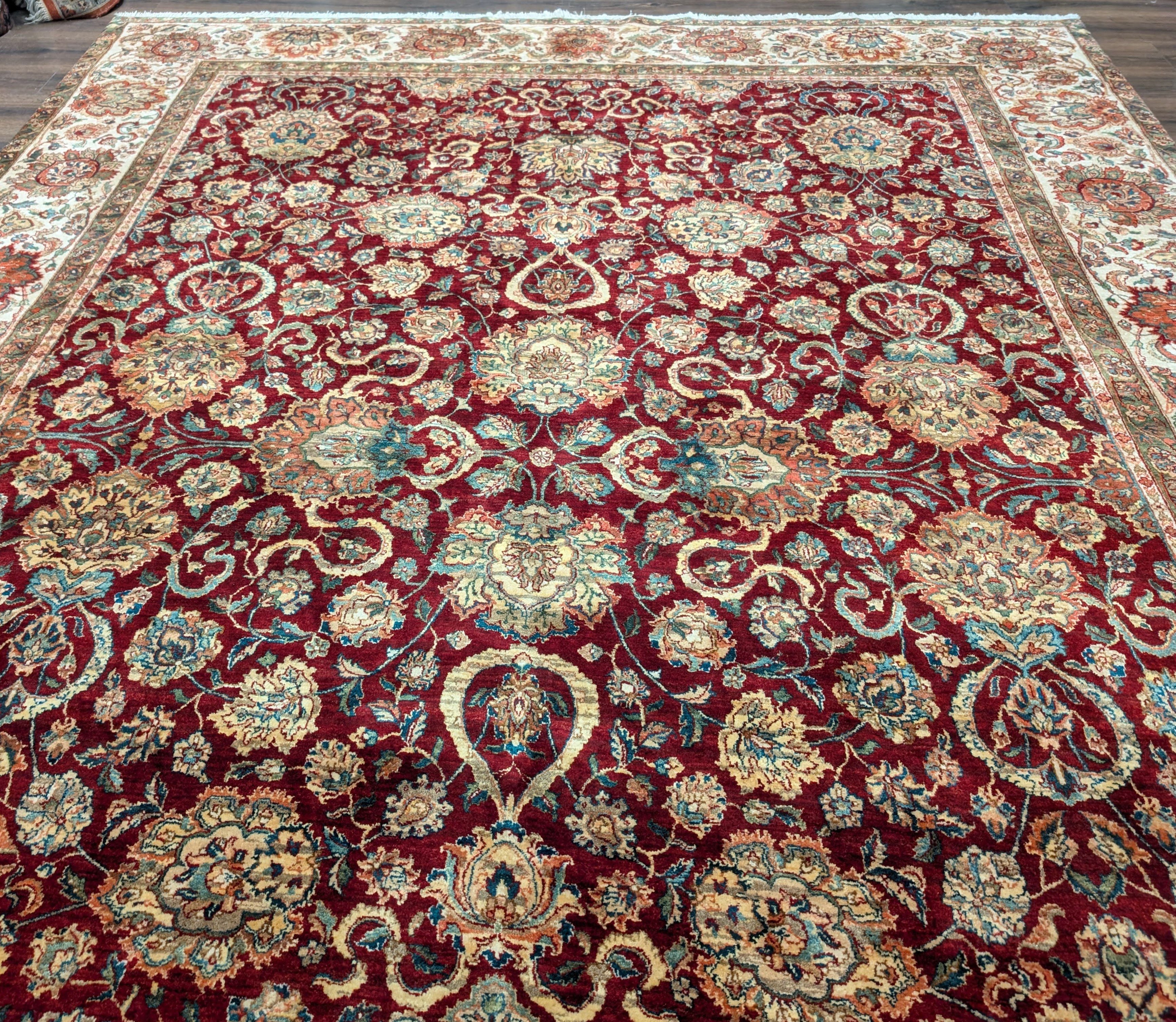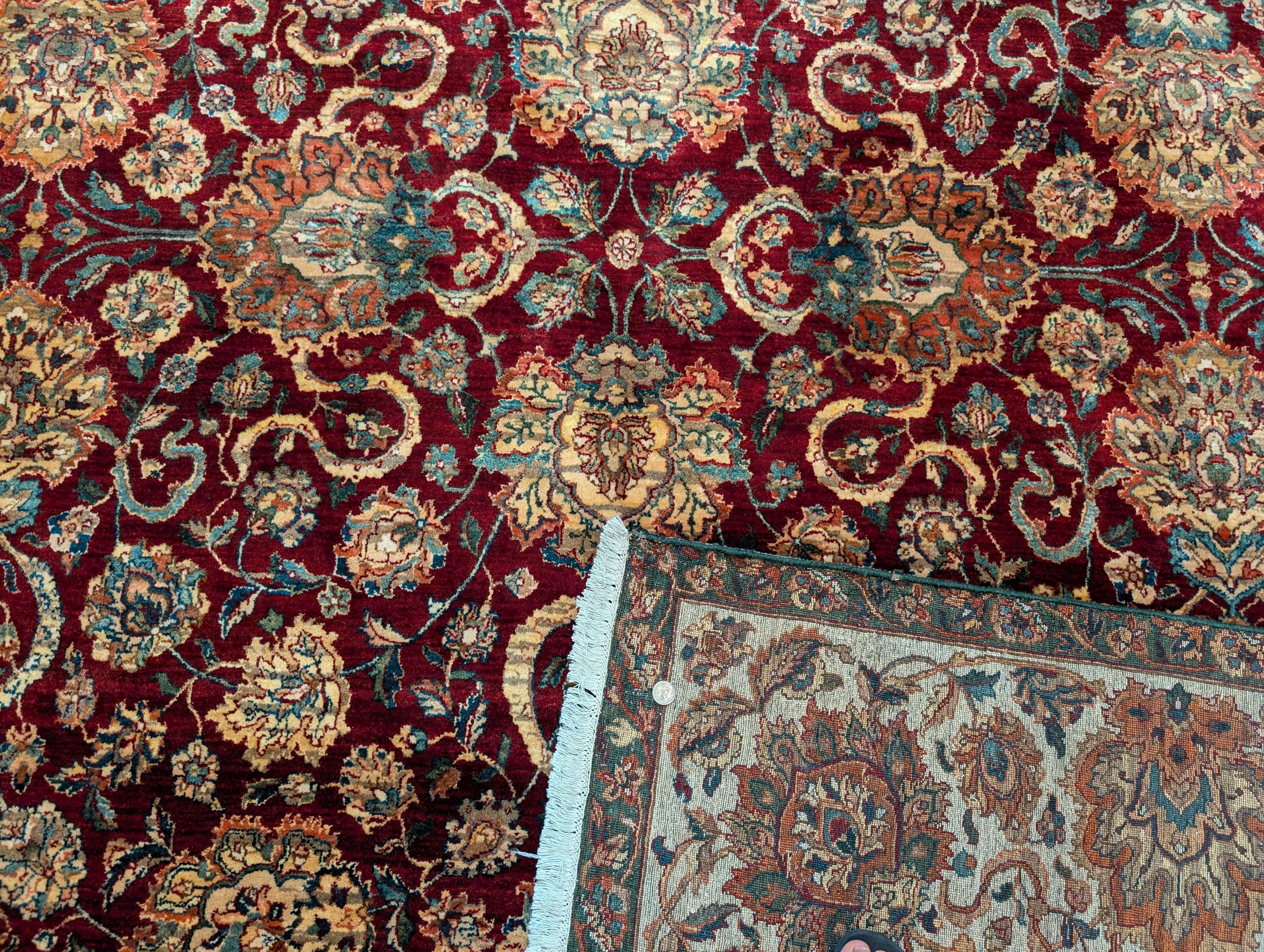 Pak Persian Rug 9x13, Dark Red and Cream, Fine, Allover Pattern