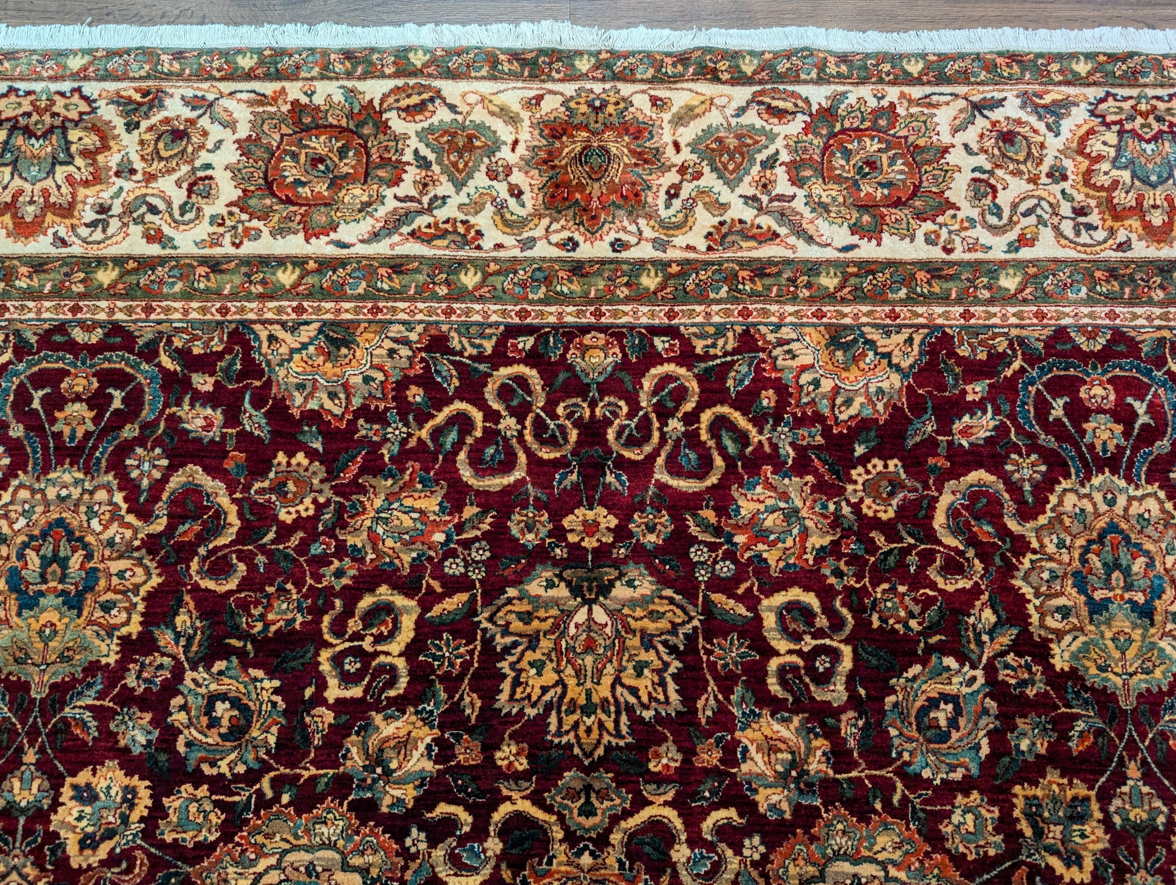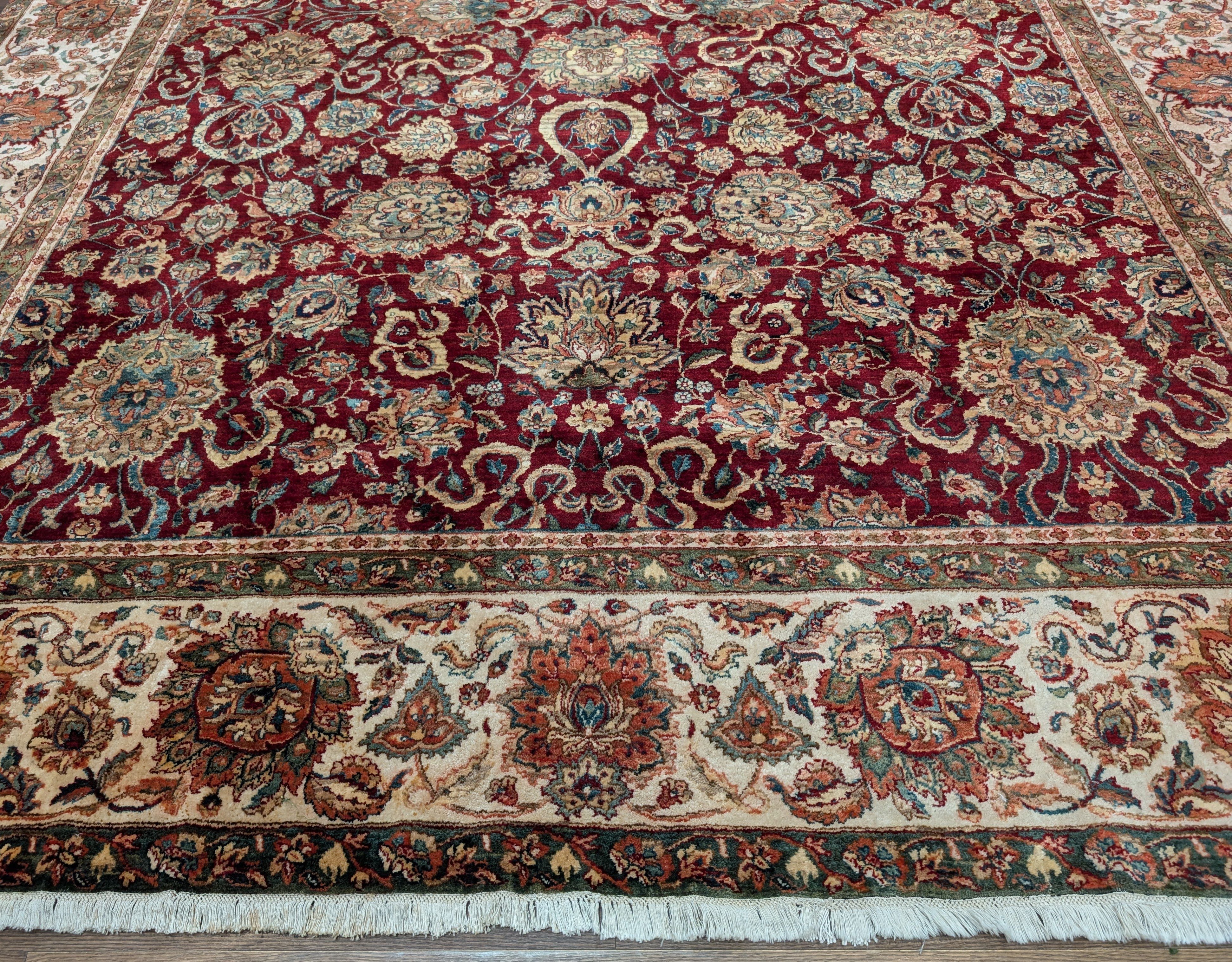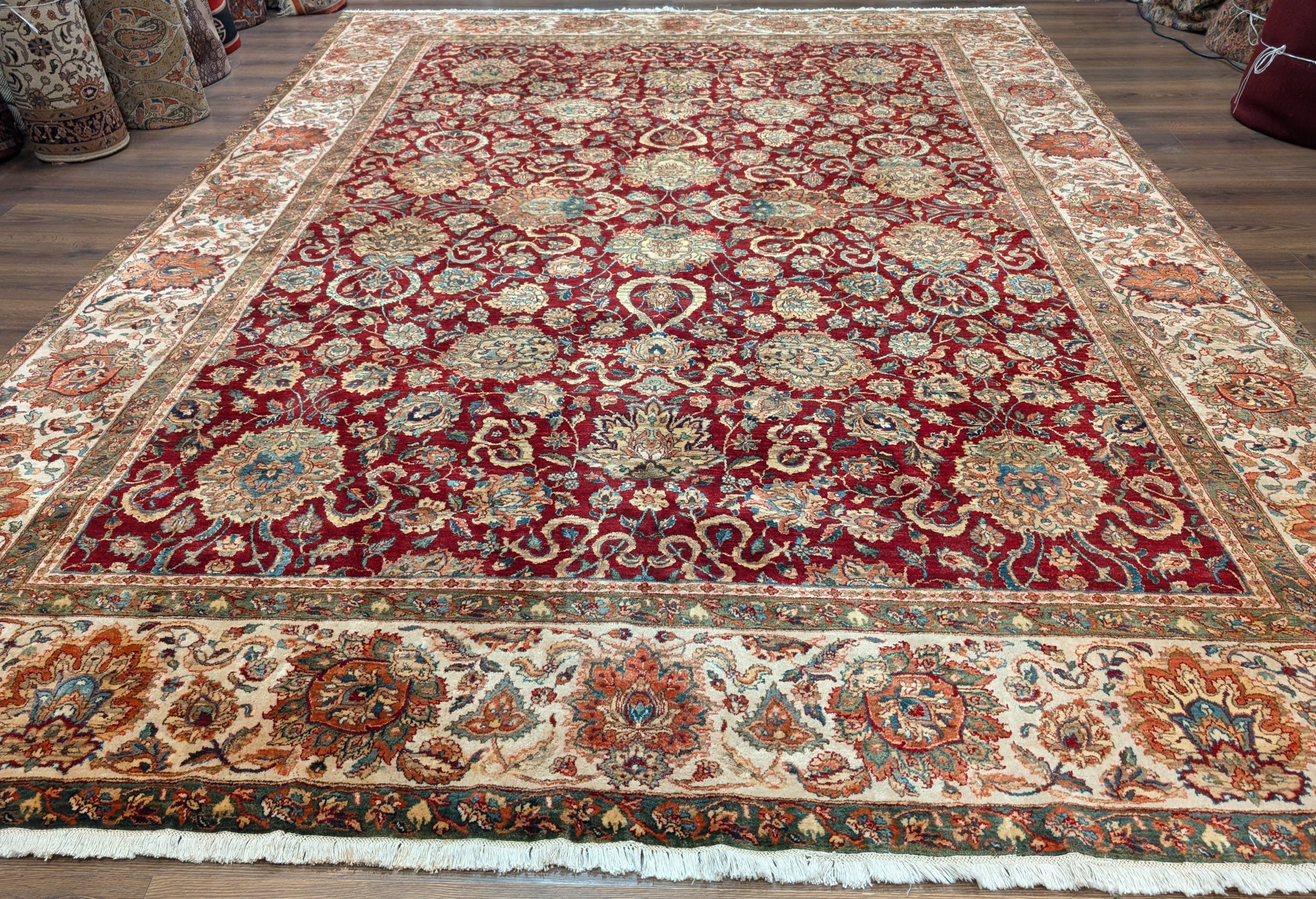 Pak Persian Rug 9x13, Dark Red and Cream, Fine, Allover Pattern