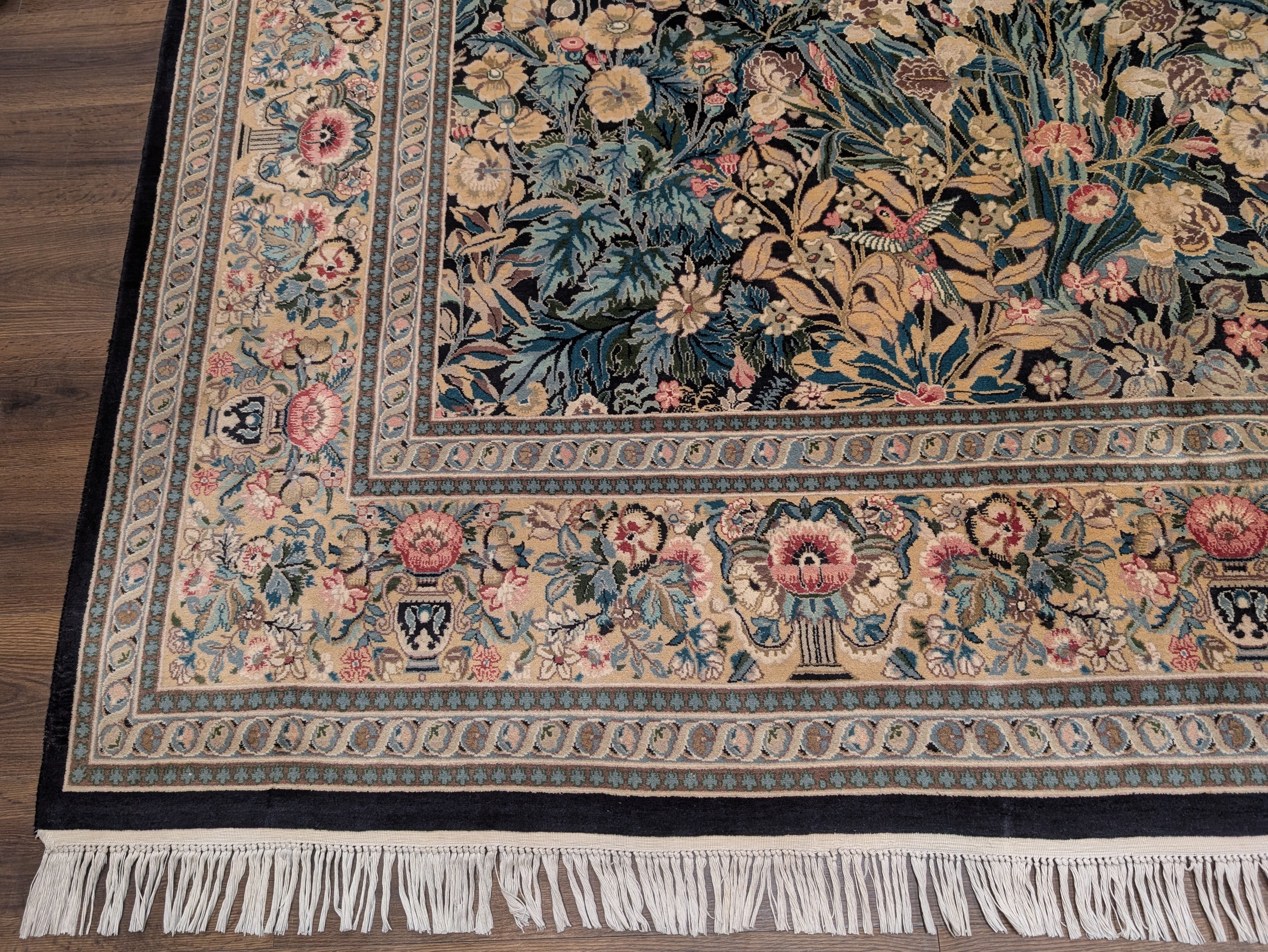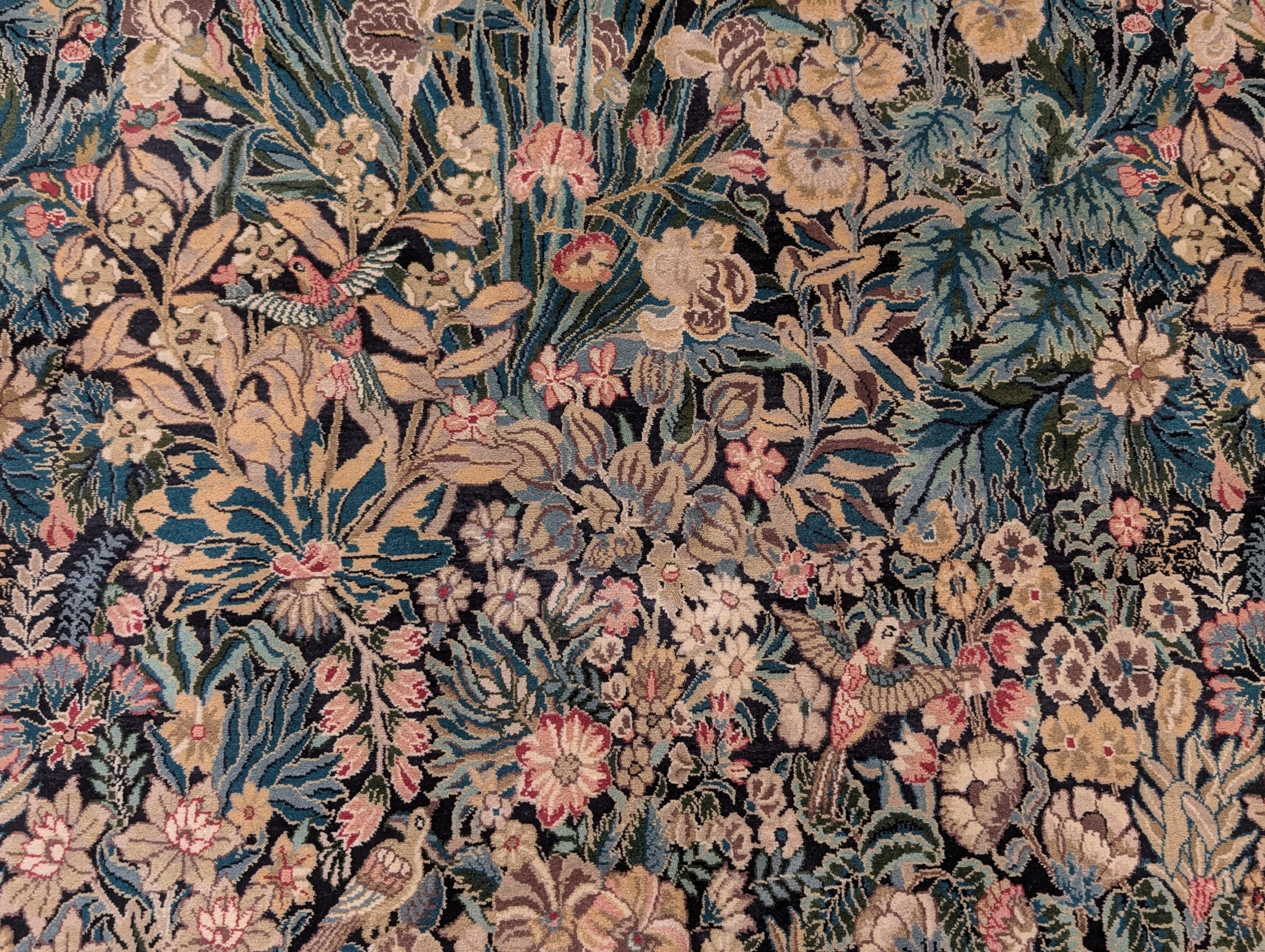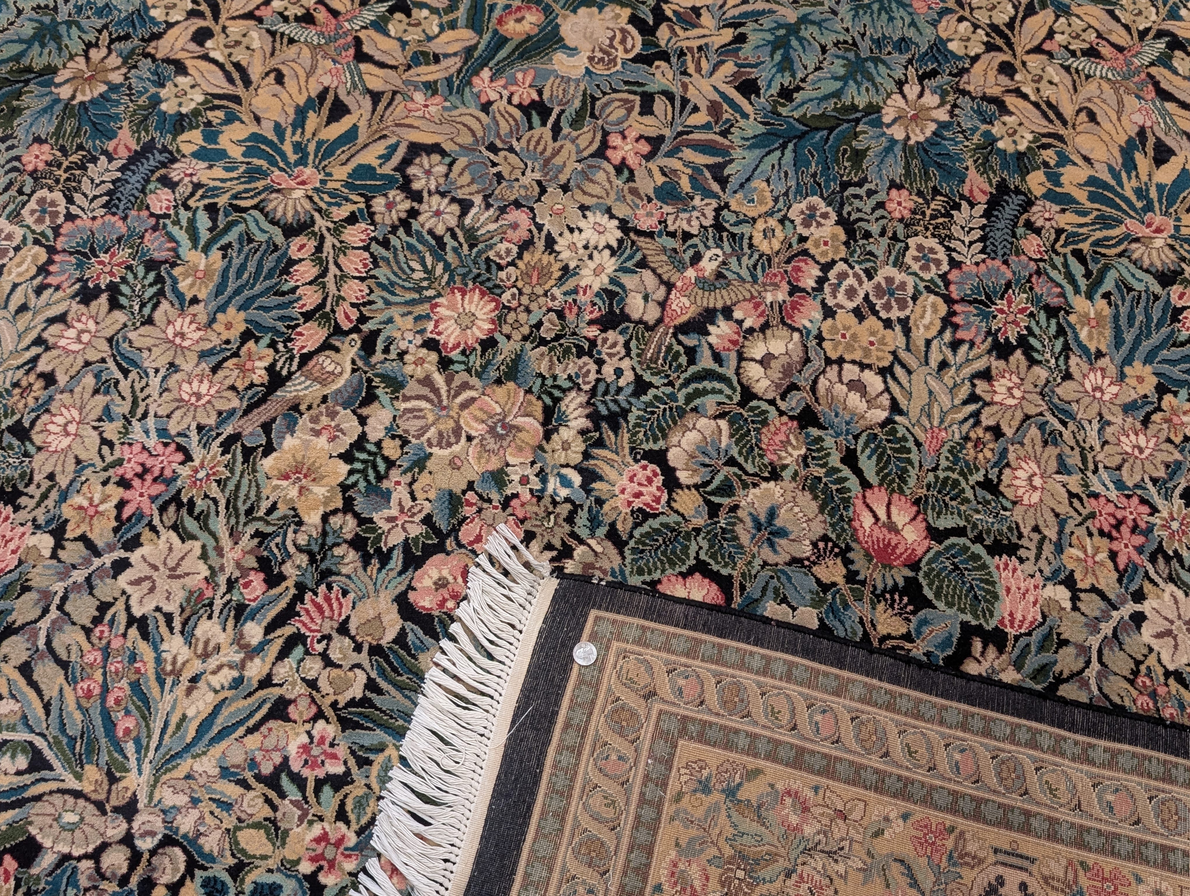 | Condition/Notes | Very good condition. Free of stains, odors, discolorations, tears, etc. Beautiful design featuring bird pictorials. Finely hand knotted with a knot density of 240 KPSI. Recently professionally cleaned and ready to be enjoyed in your space. |