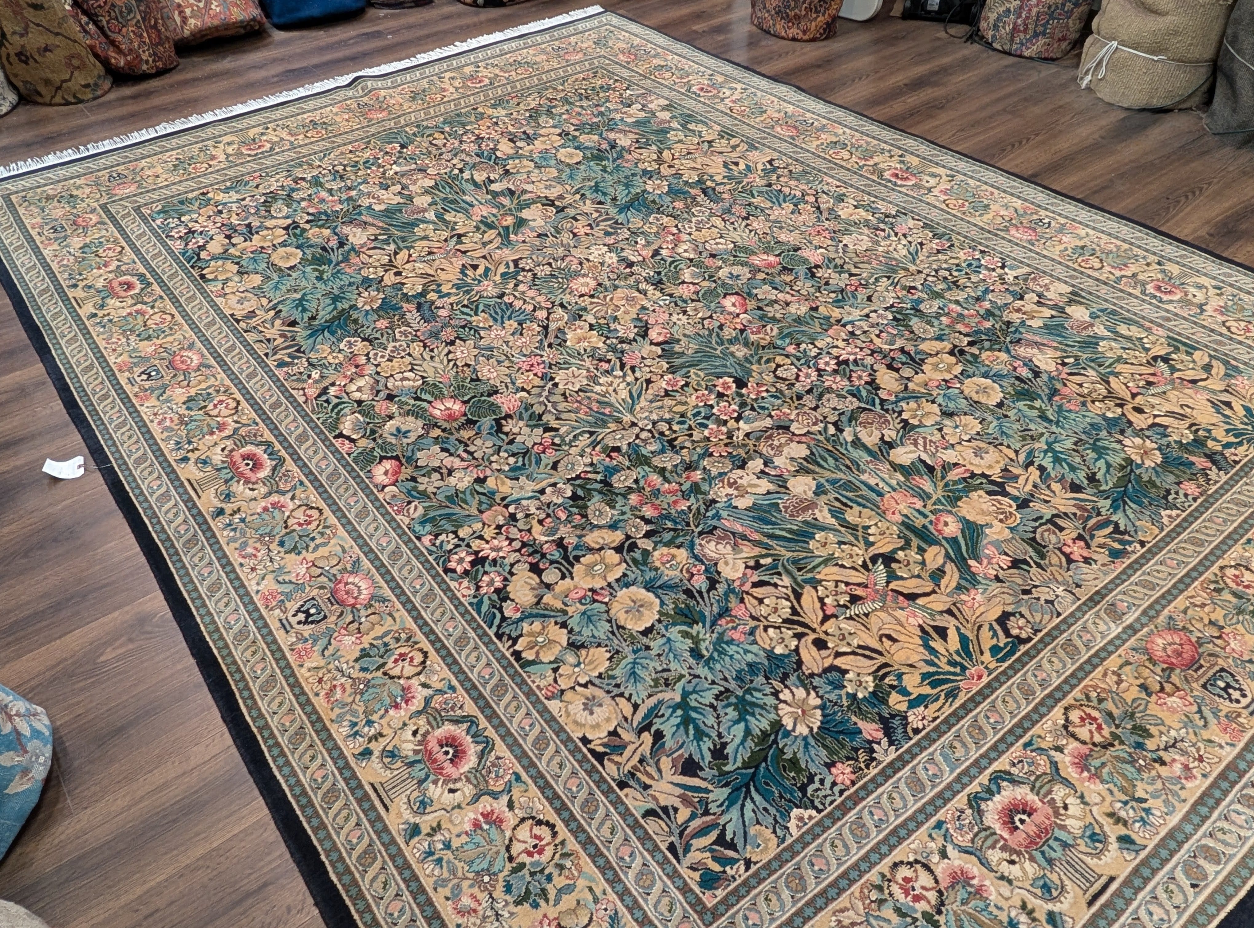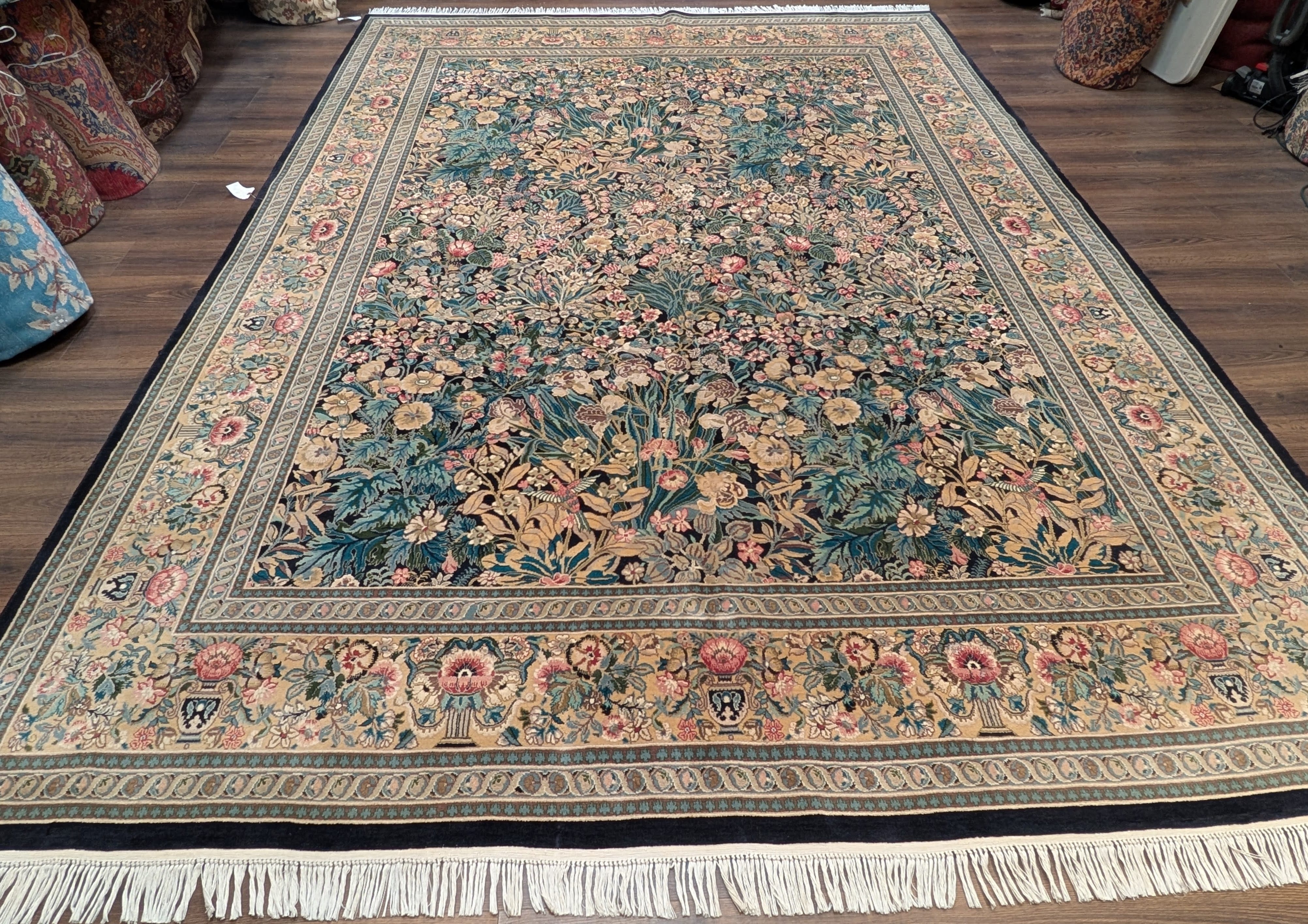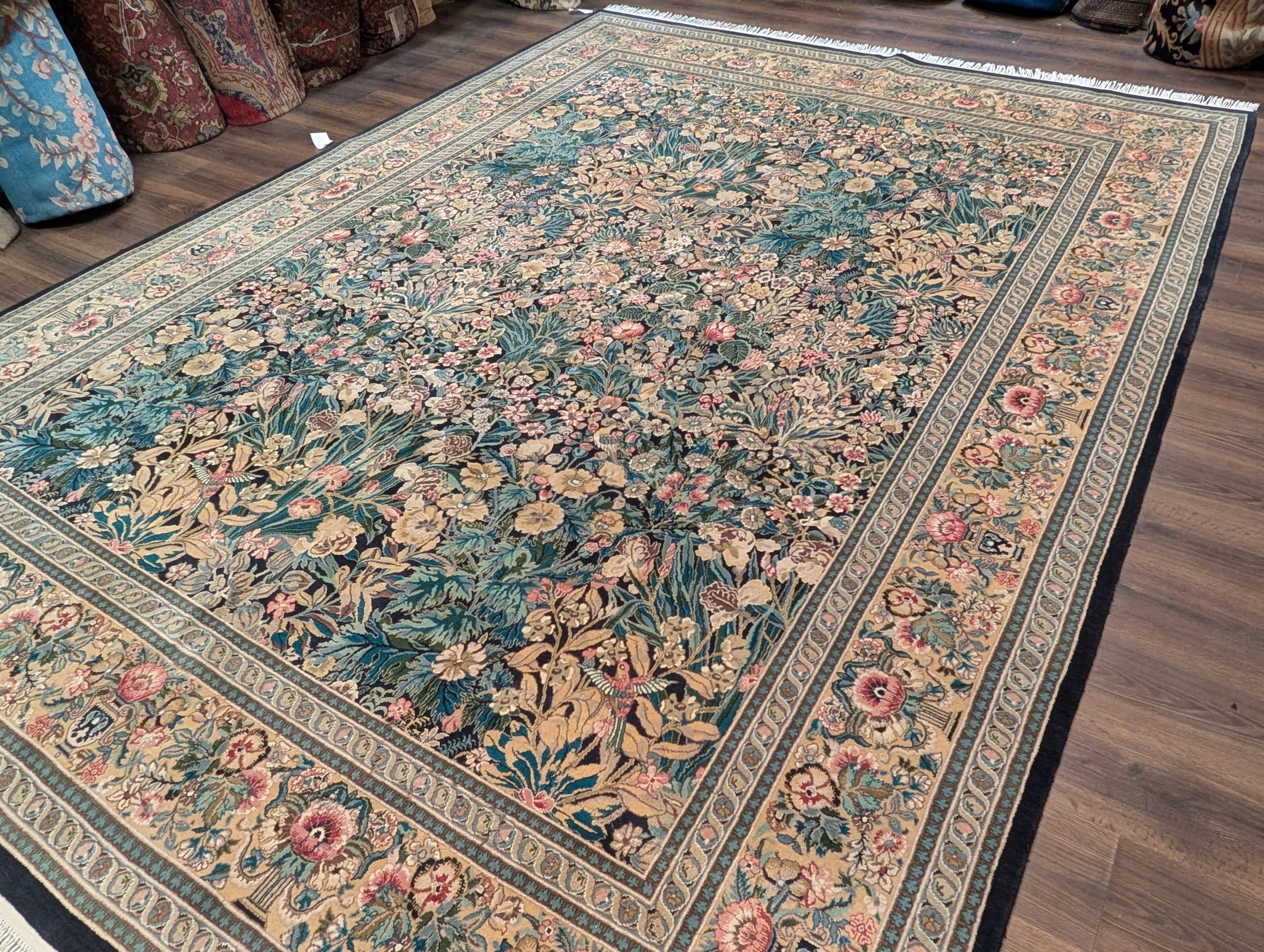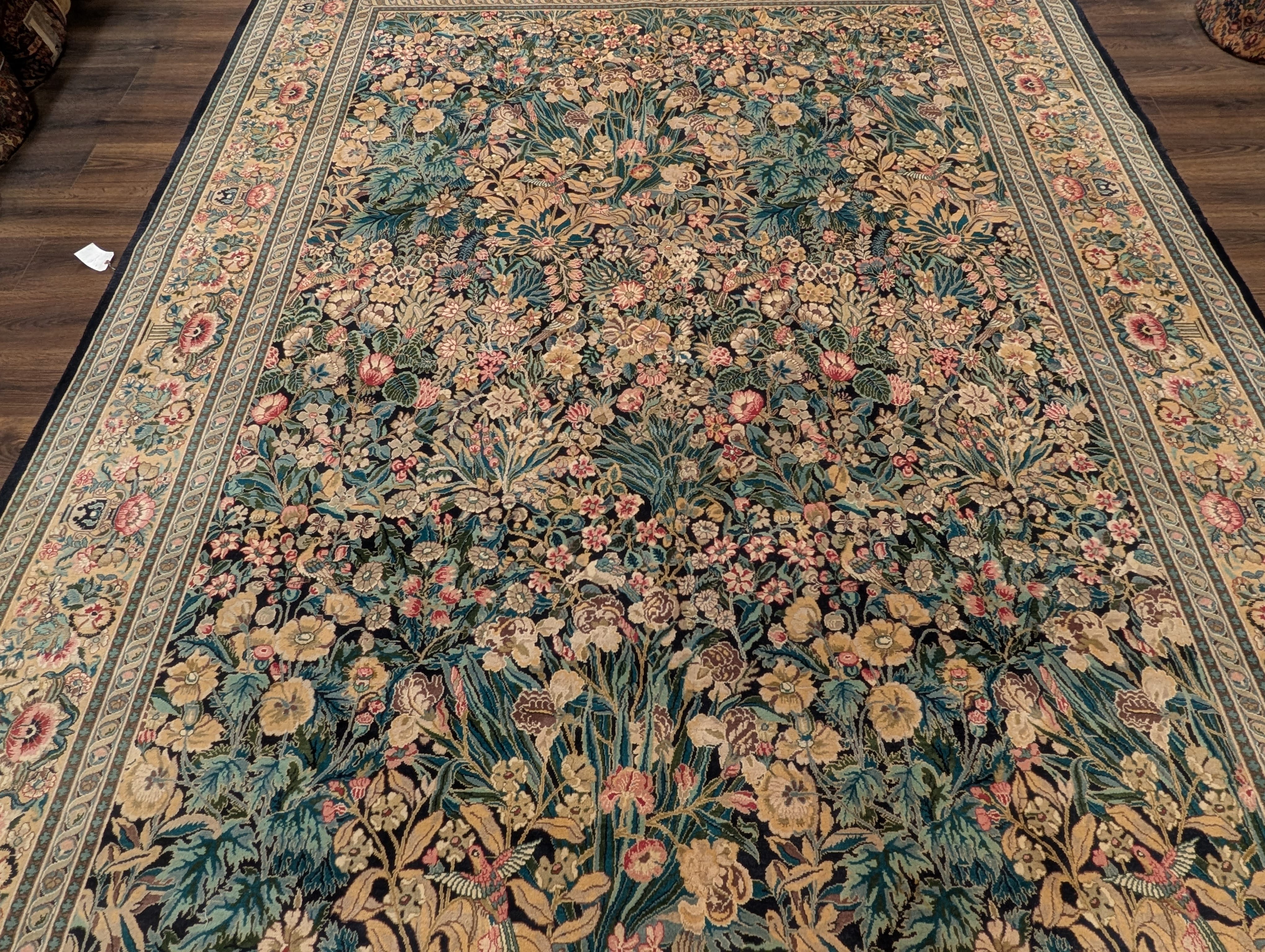 | Condition/Notes | Very good condition. Free of stains, odors, discolorations, tears, etc. Beautiful design featuring bird pictorials. Finely hand knotted with a knot density of 240 KPSI. Recently professionally cleaned and ready to be enjoyed in your space. |