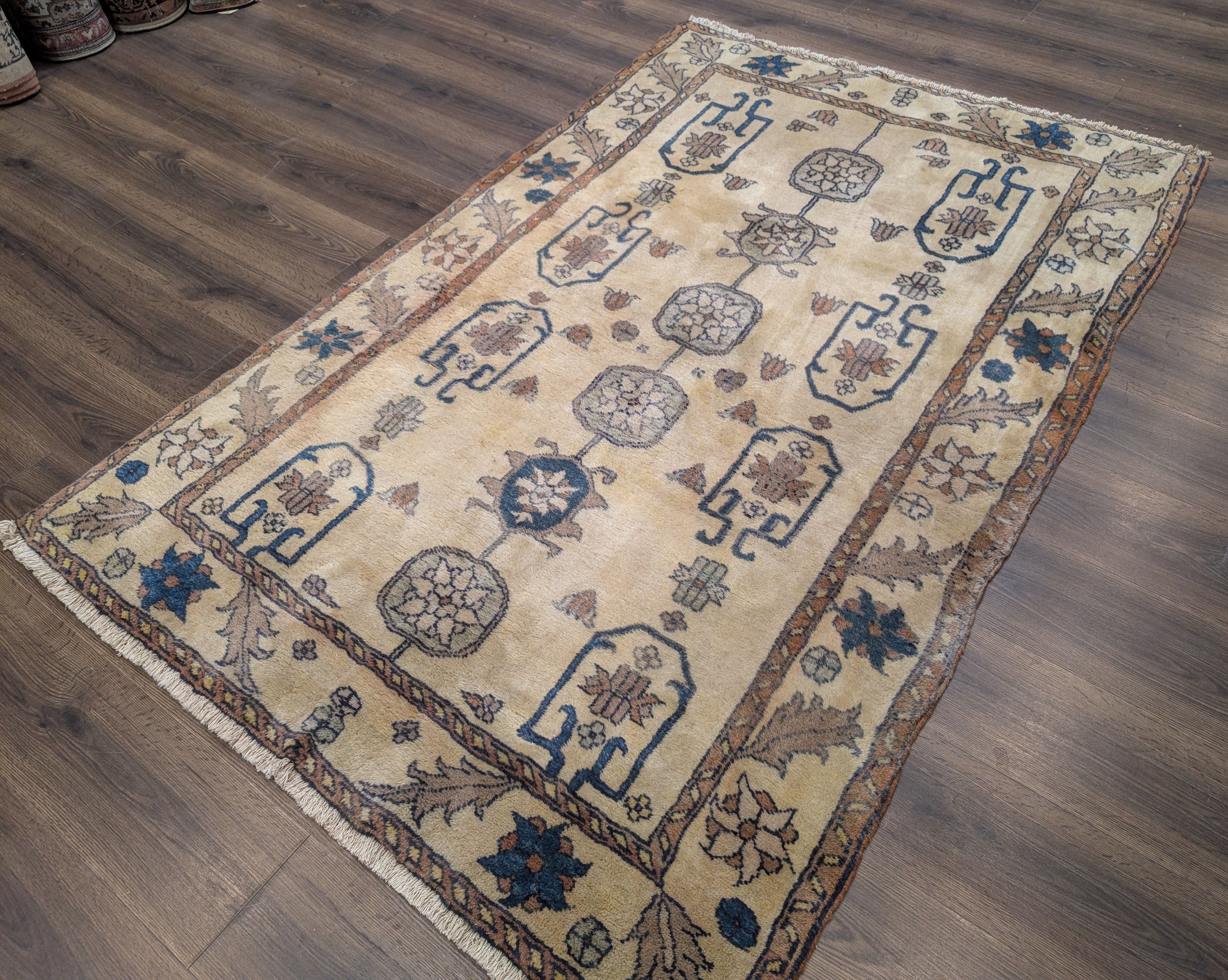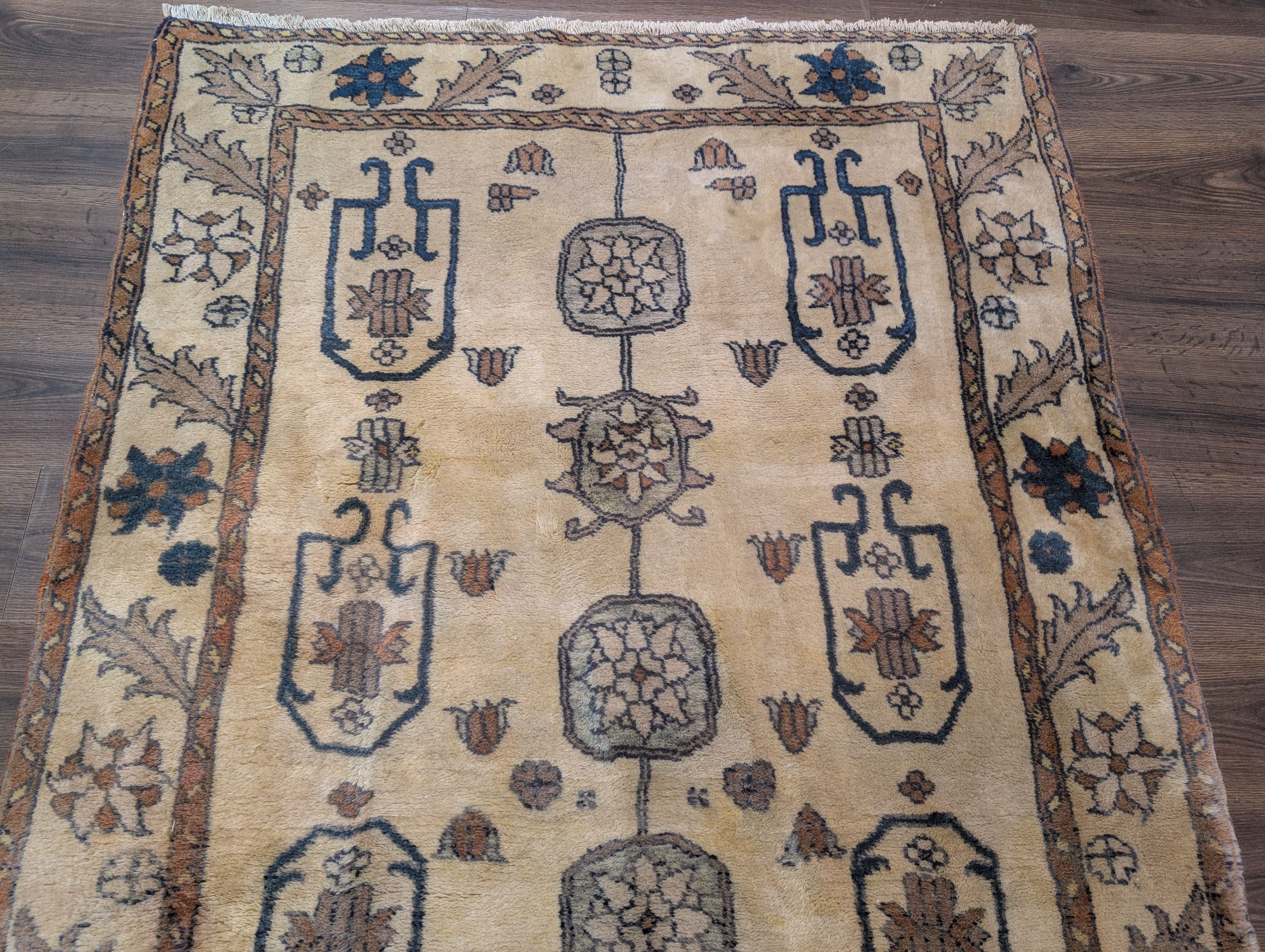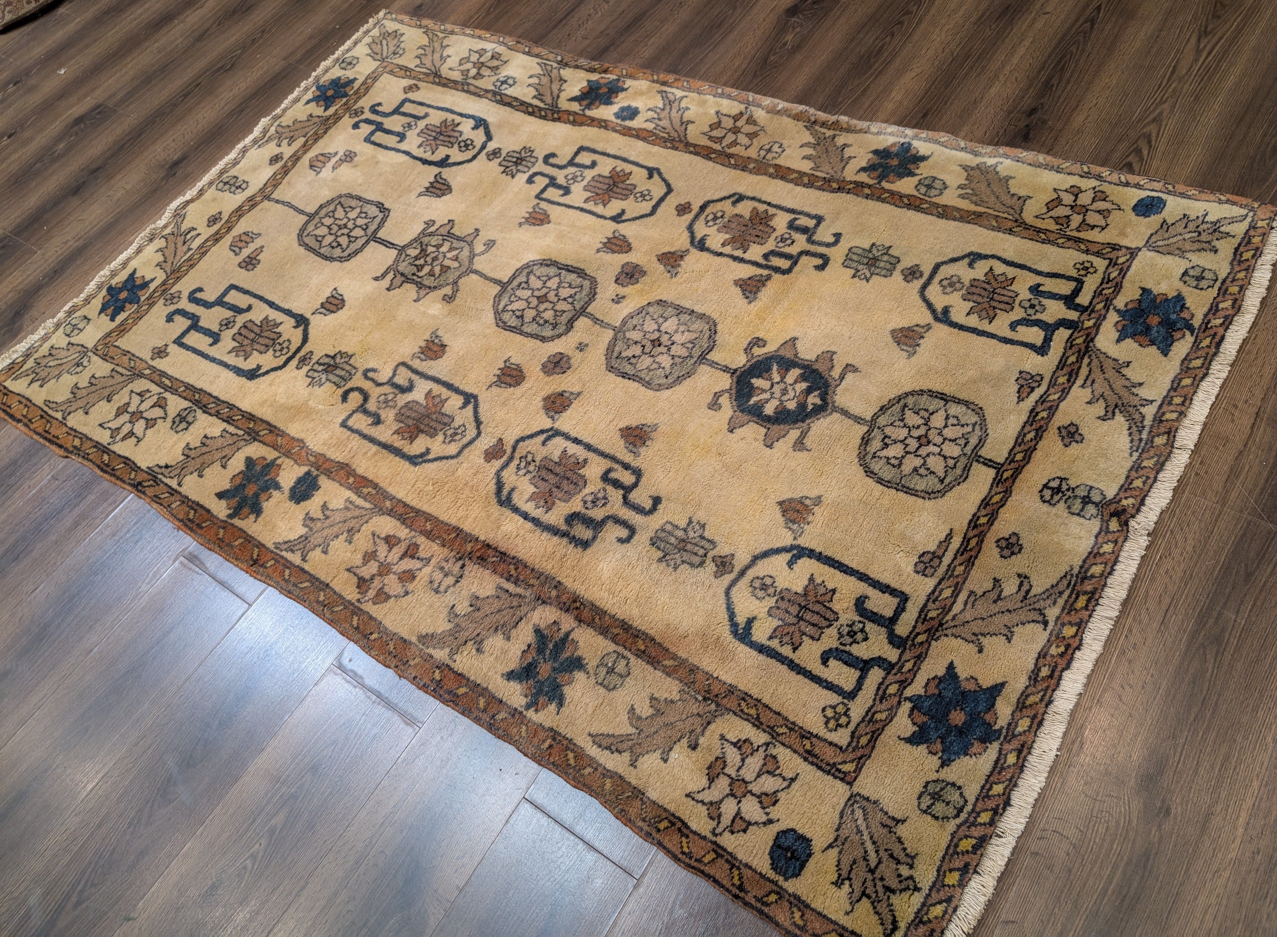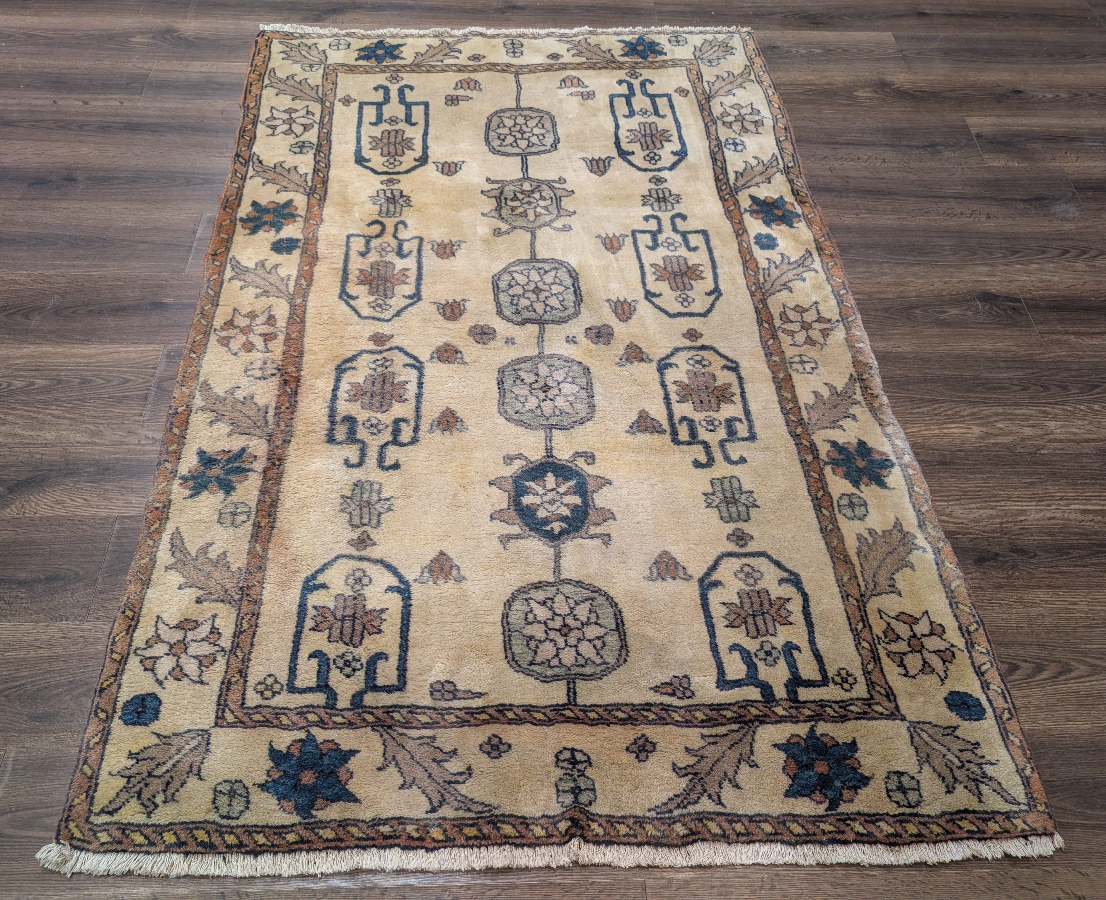 Persian Gabbeh Rug 4x7, Tribal Wool Carpet, Beige-Camel