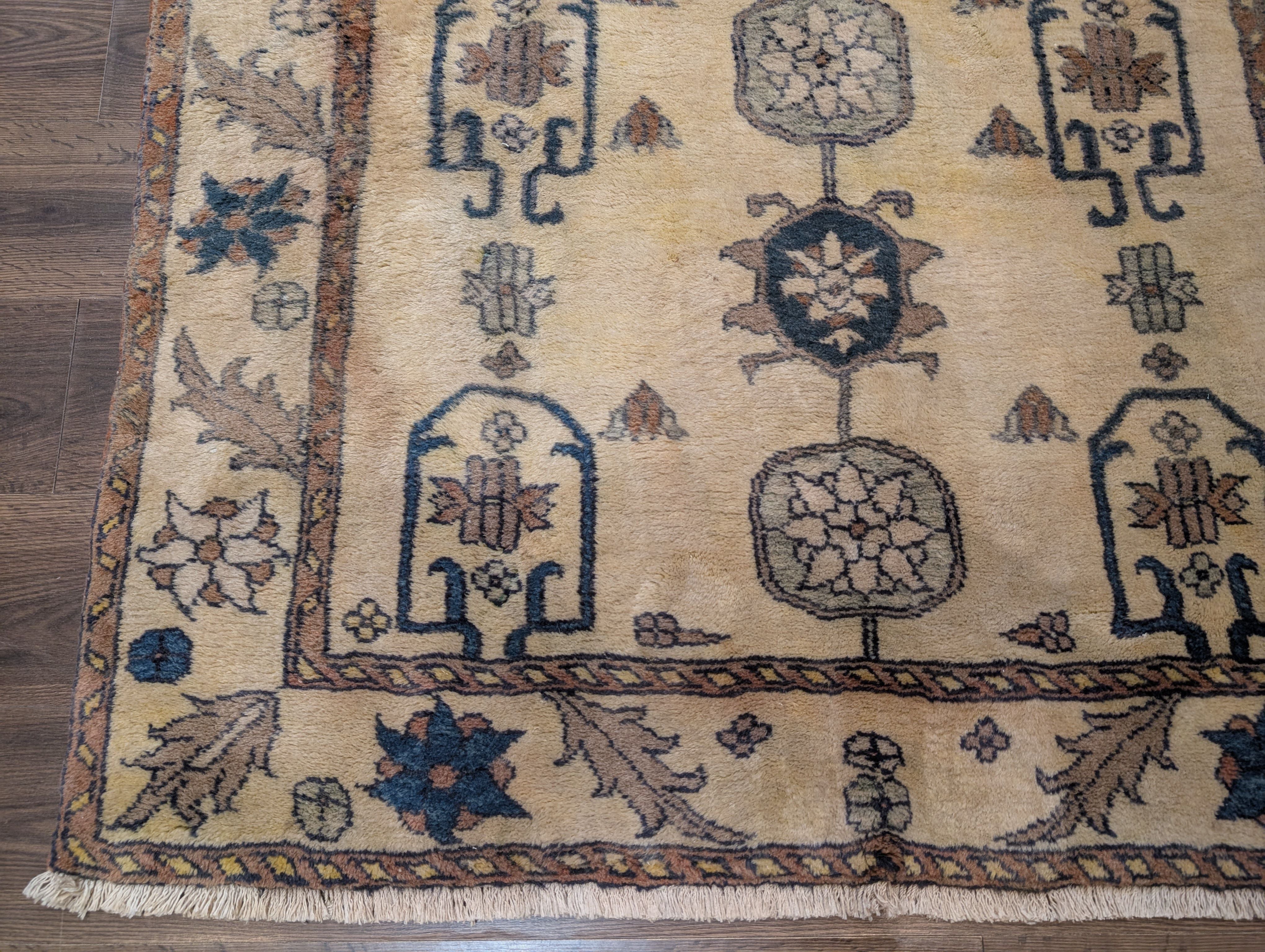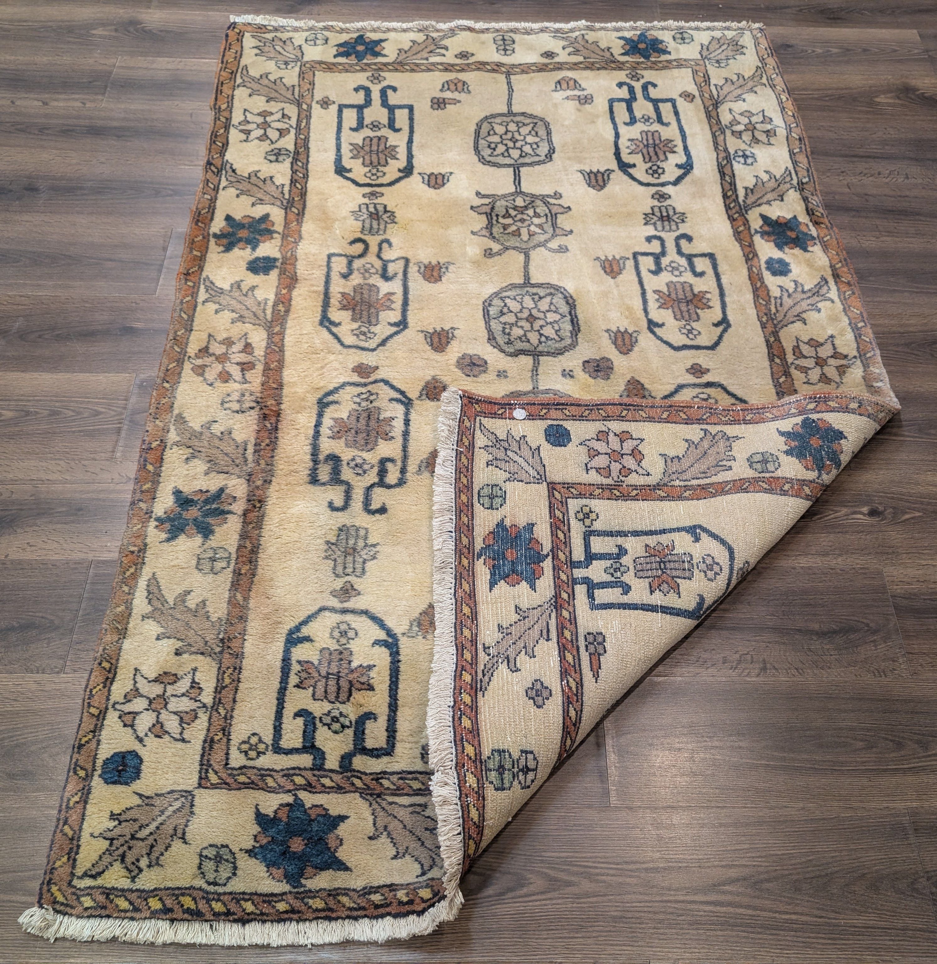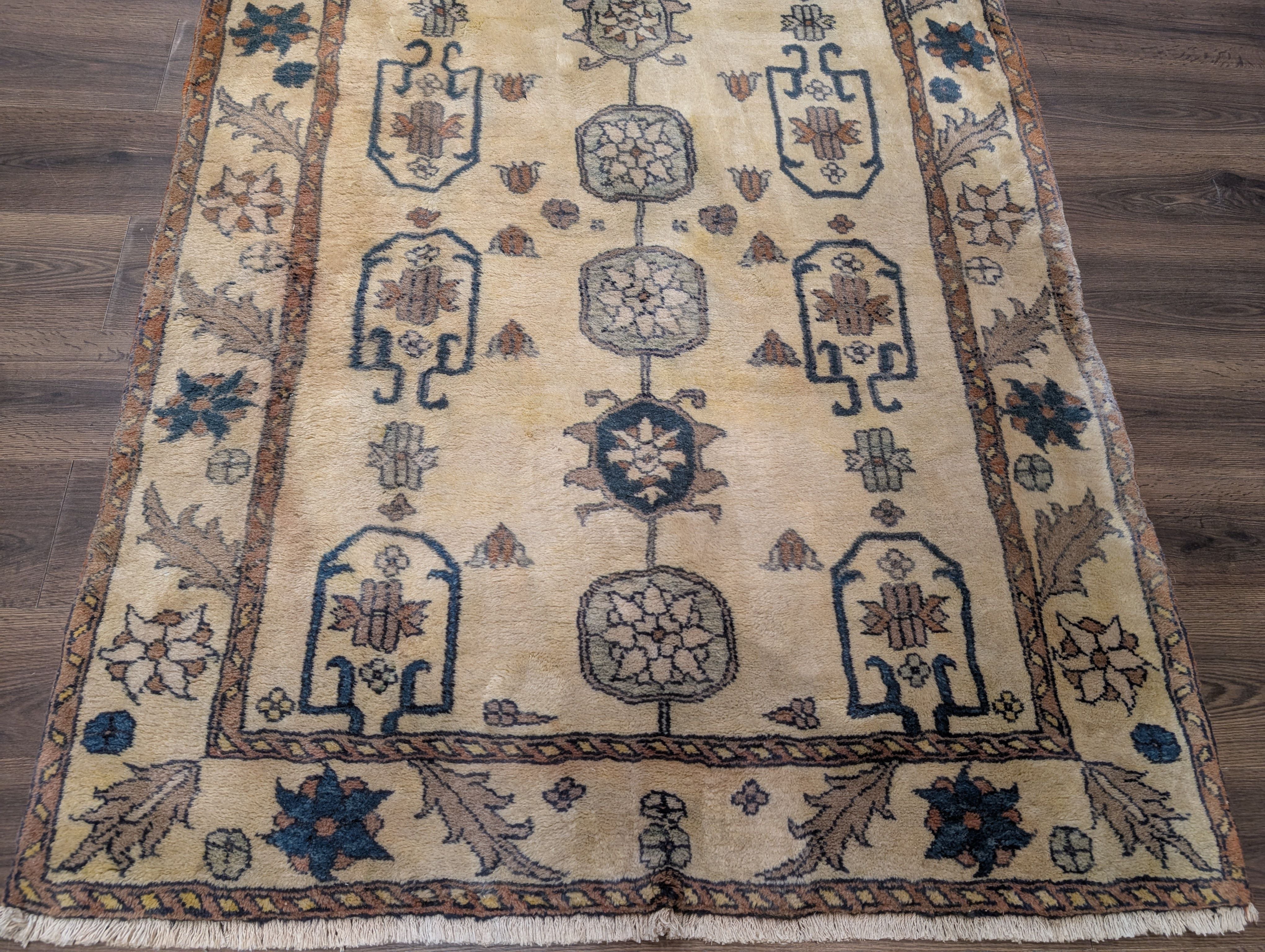 Persian Gabbeh Rug 4x7, Tribal Wool Carpet, Beige-Camel
