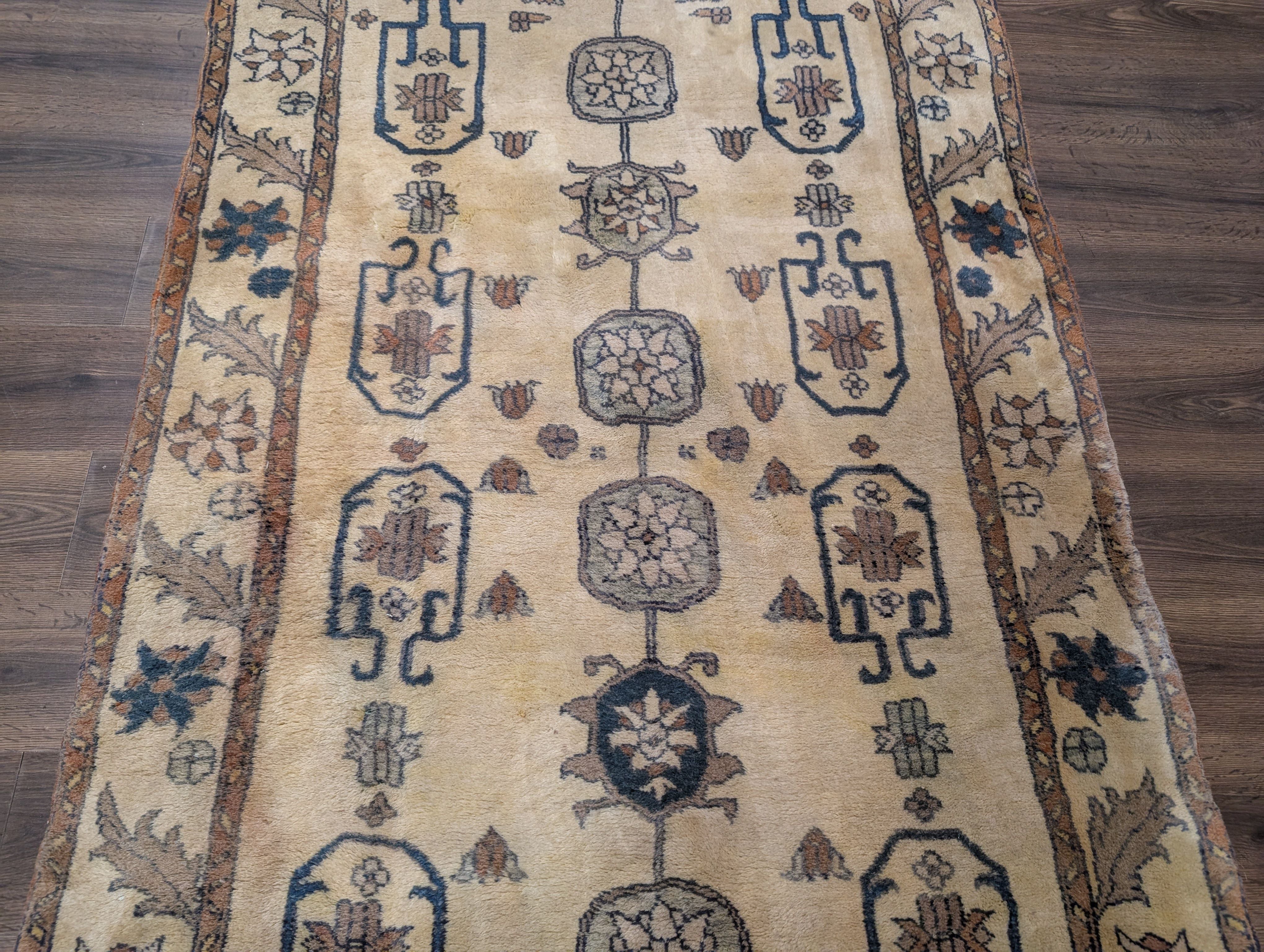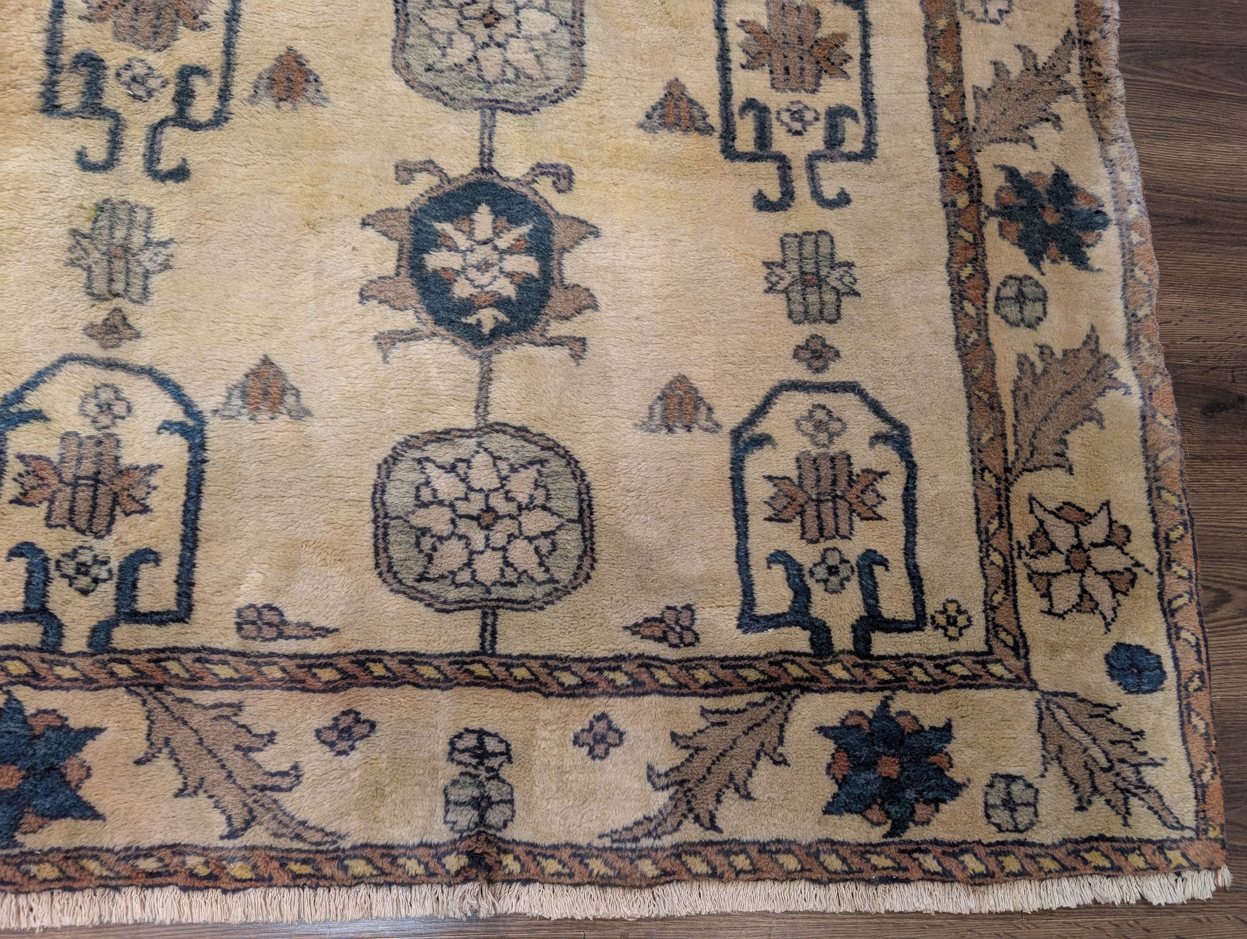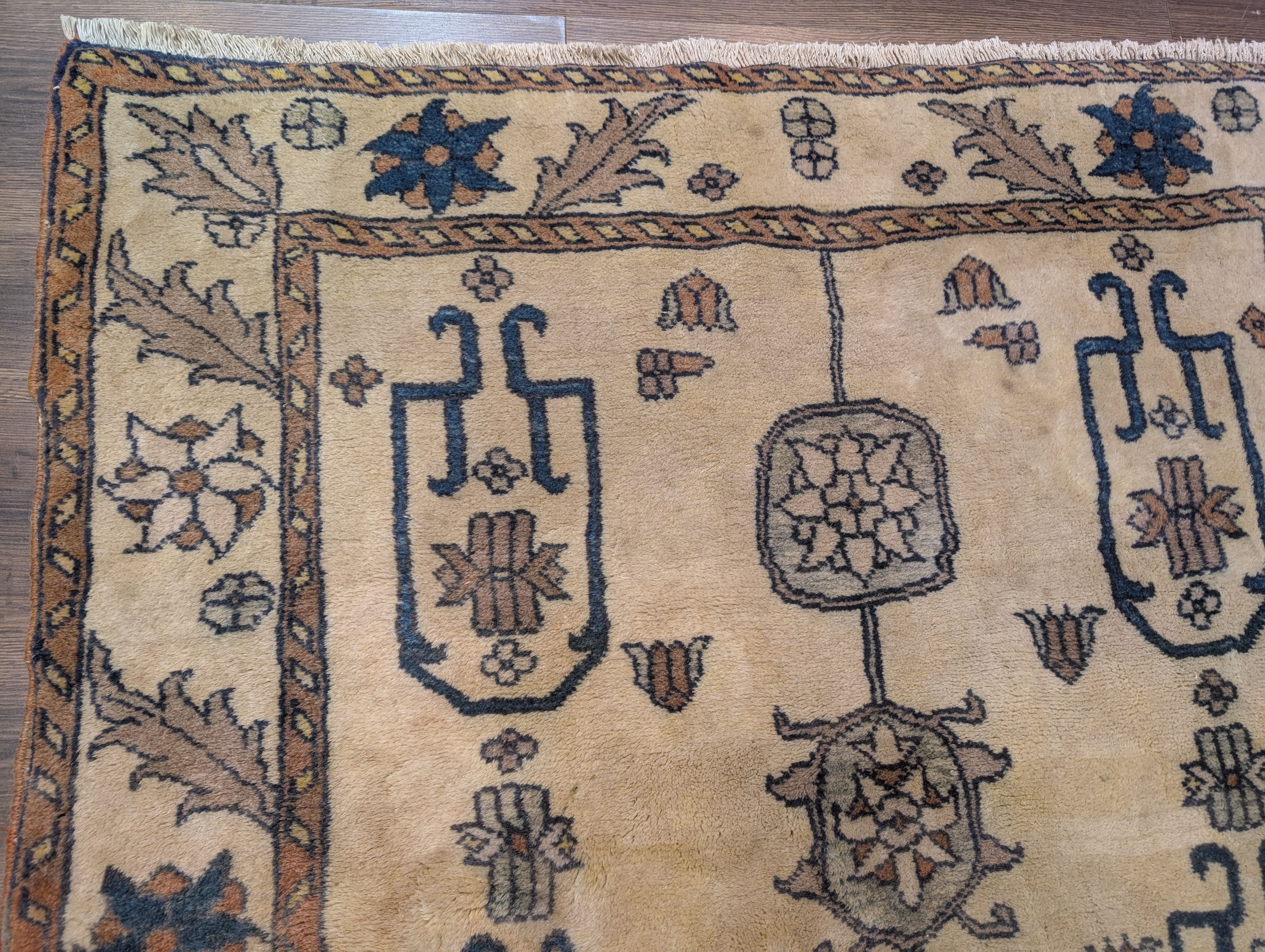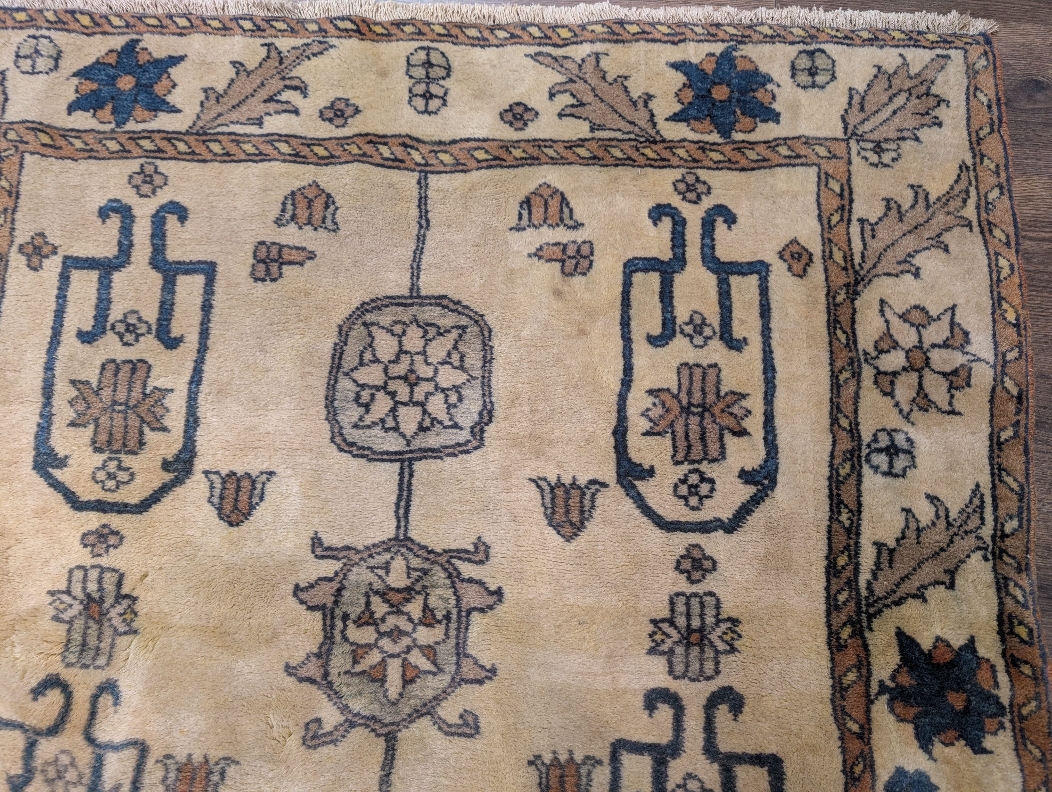 Persian Gabbeh Rug 4x7, Tribal Wool Carpet, Beige-Camel