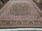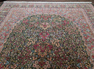 Persian Kirman Rug 10x12, Millefleur, Hand-Knotted Wool Carpet, Dark Green Multicolor