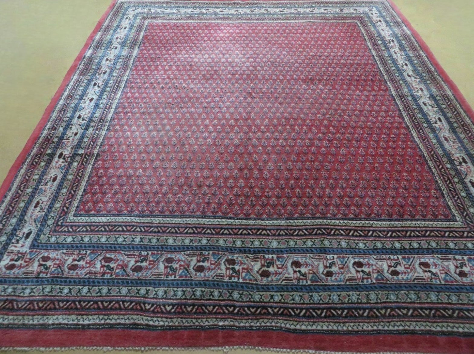 Persian Mir Sarouk Rug 7x9, Red, Repeated Allover Boteh Pattern