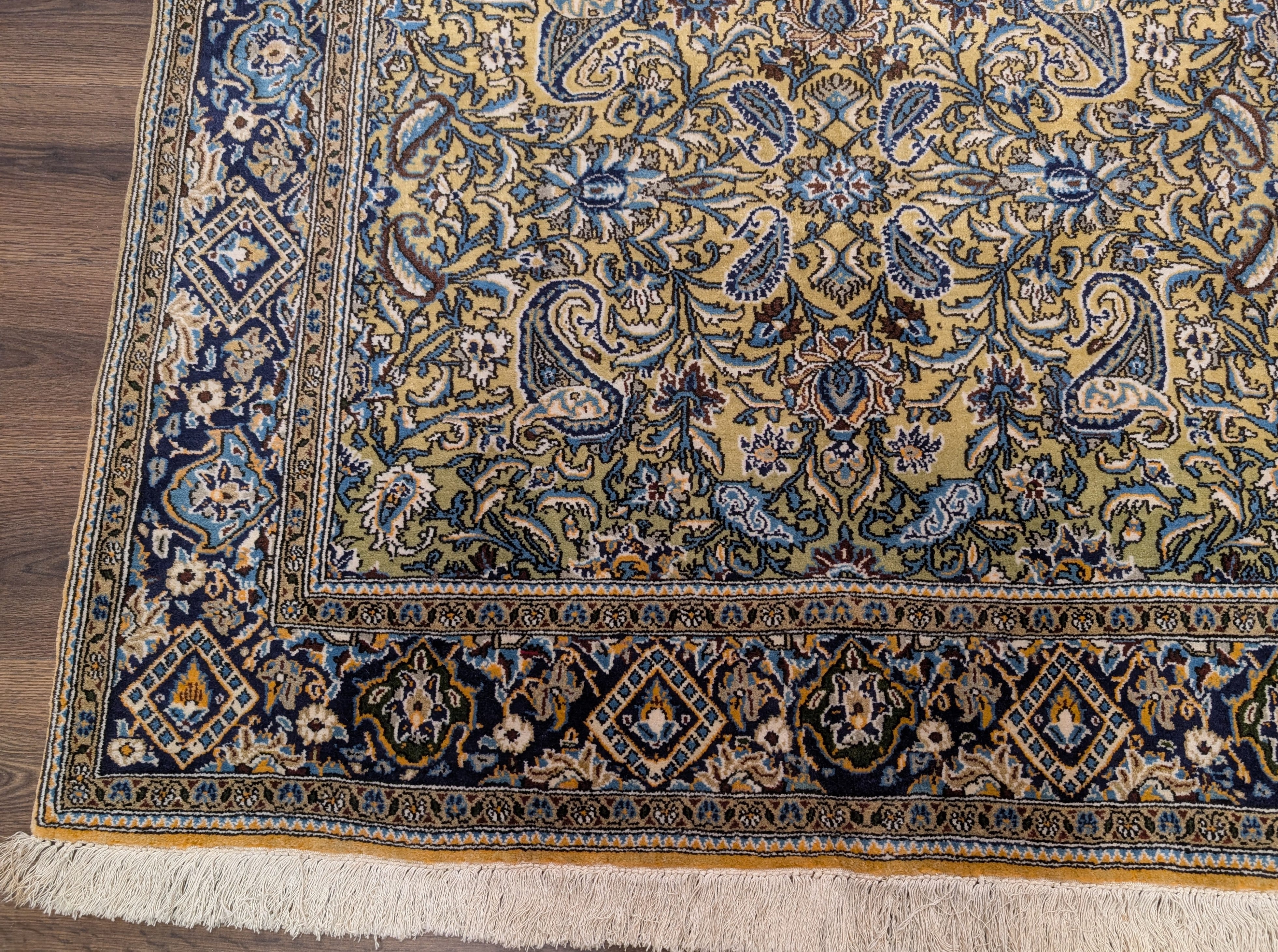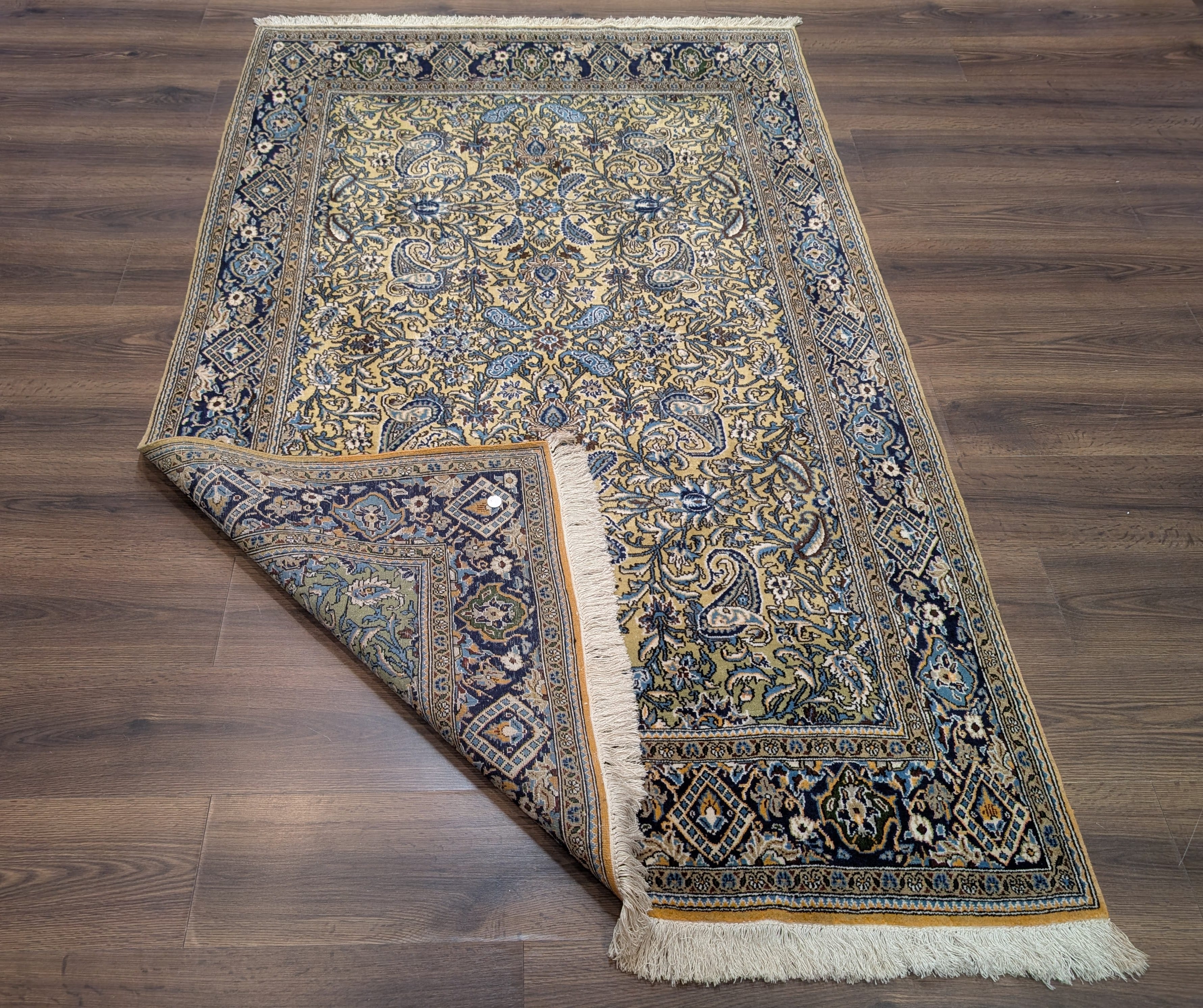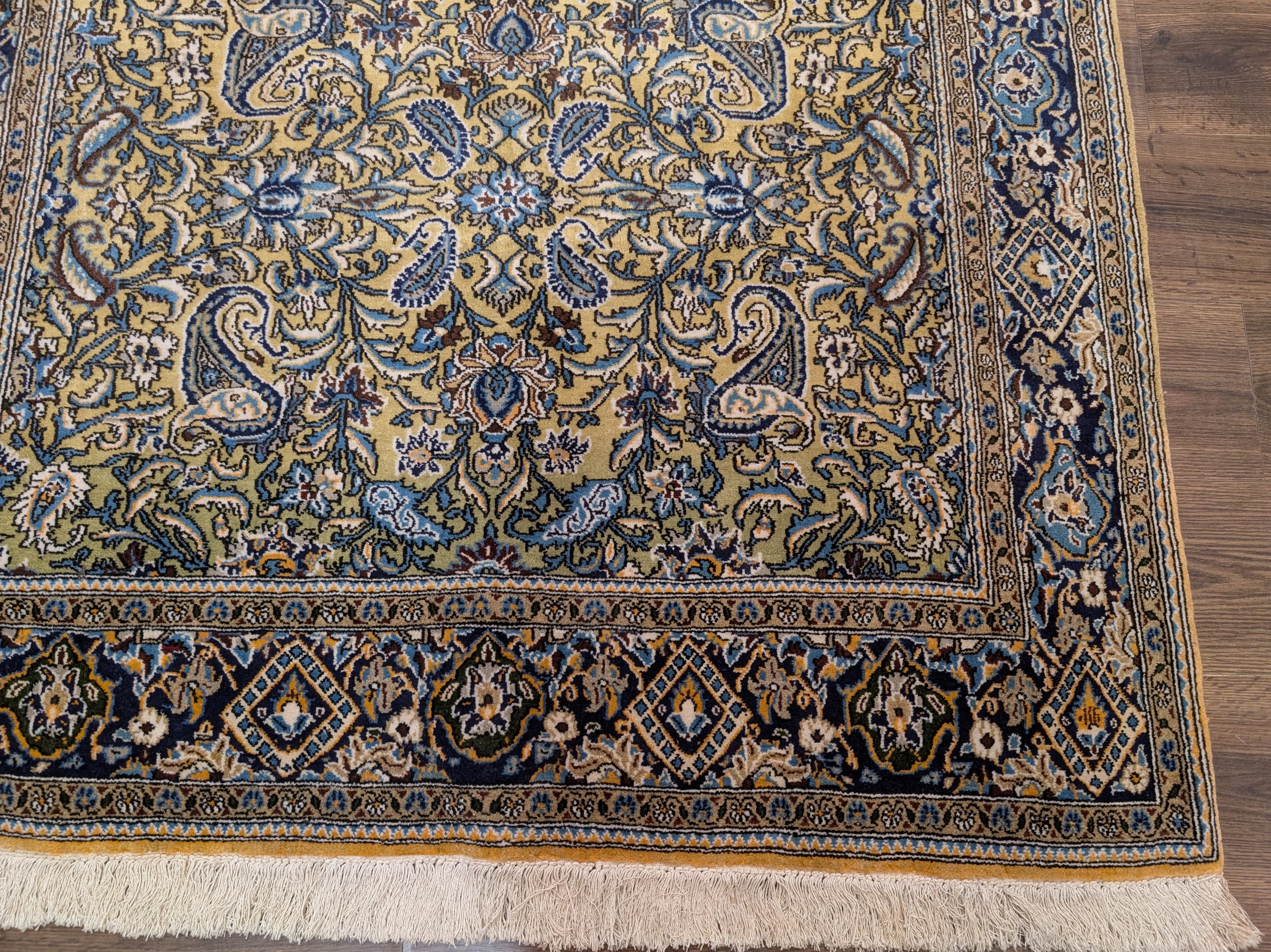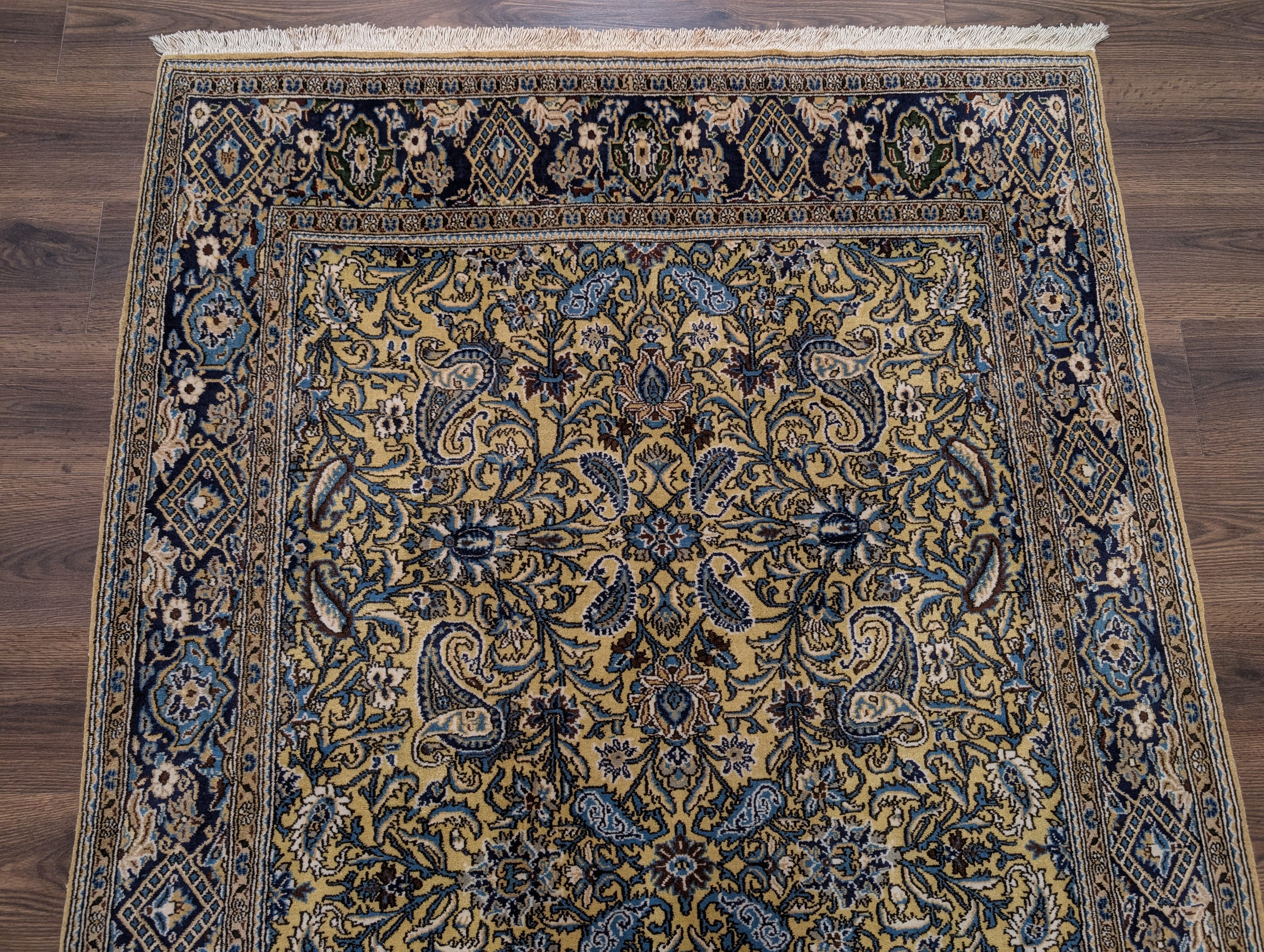 Persian Qum Rug 5x7, Gold and Navy Blue, Paisley-Boteh, Allover Floral