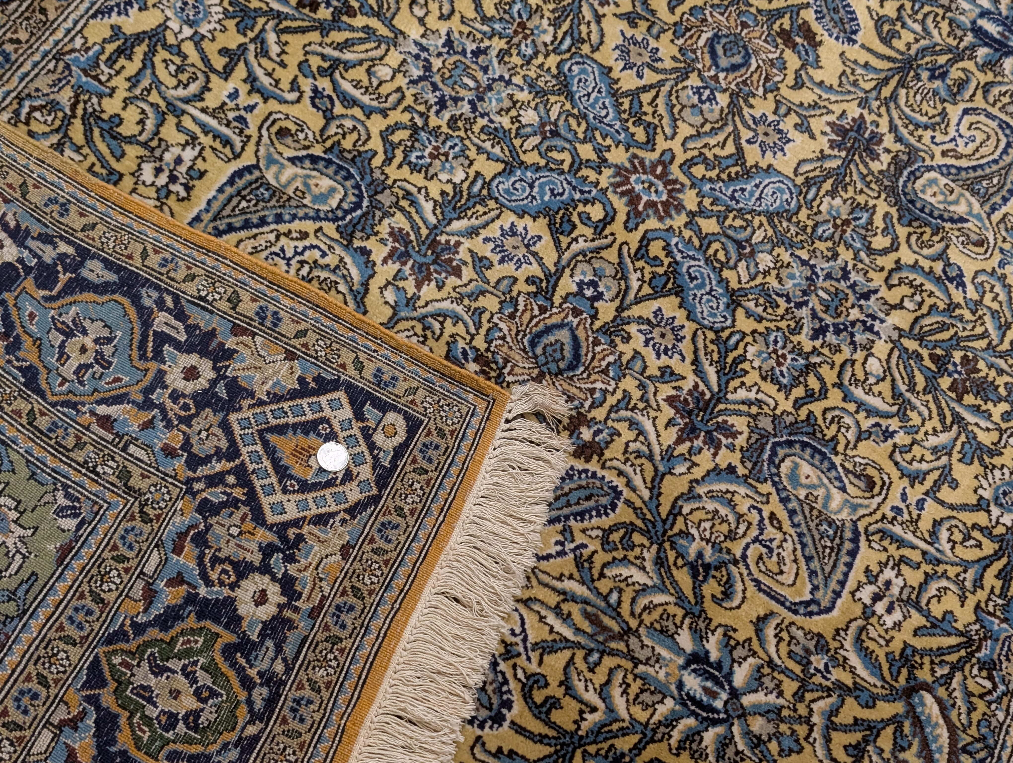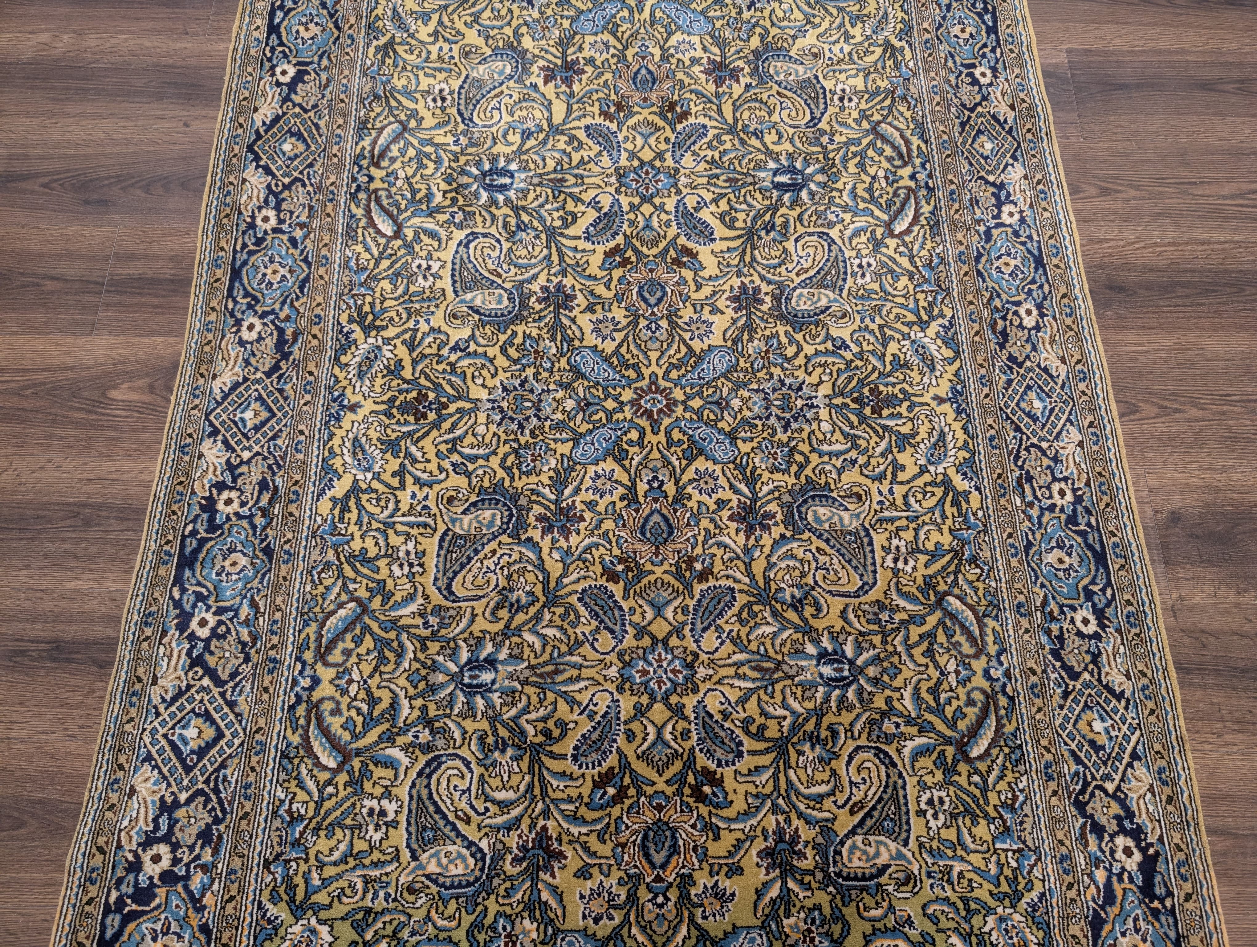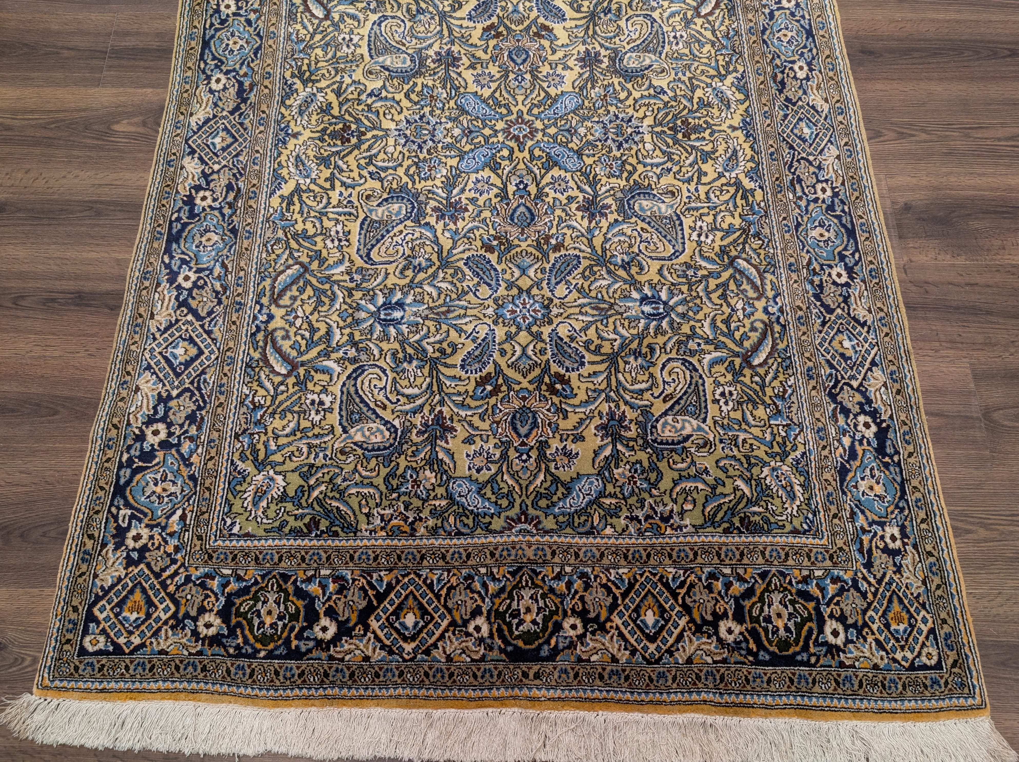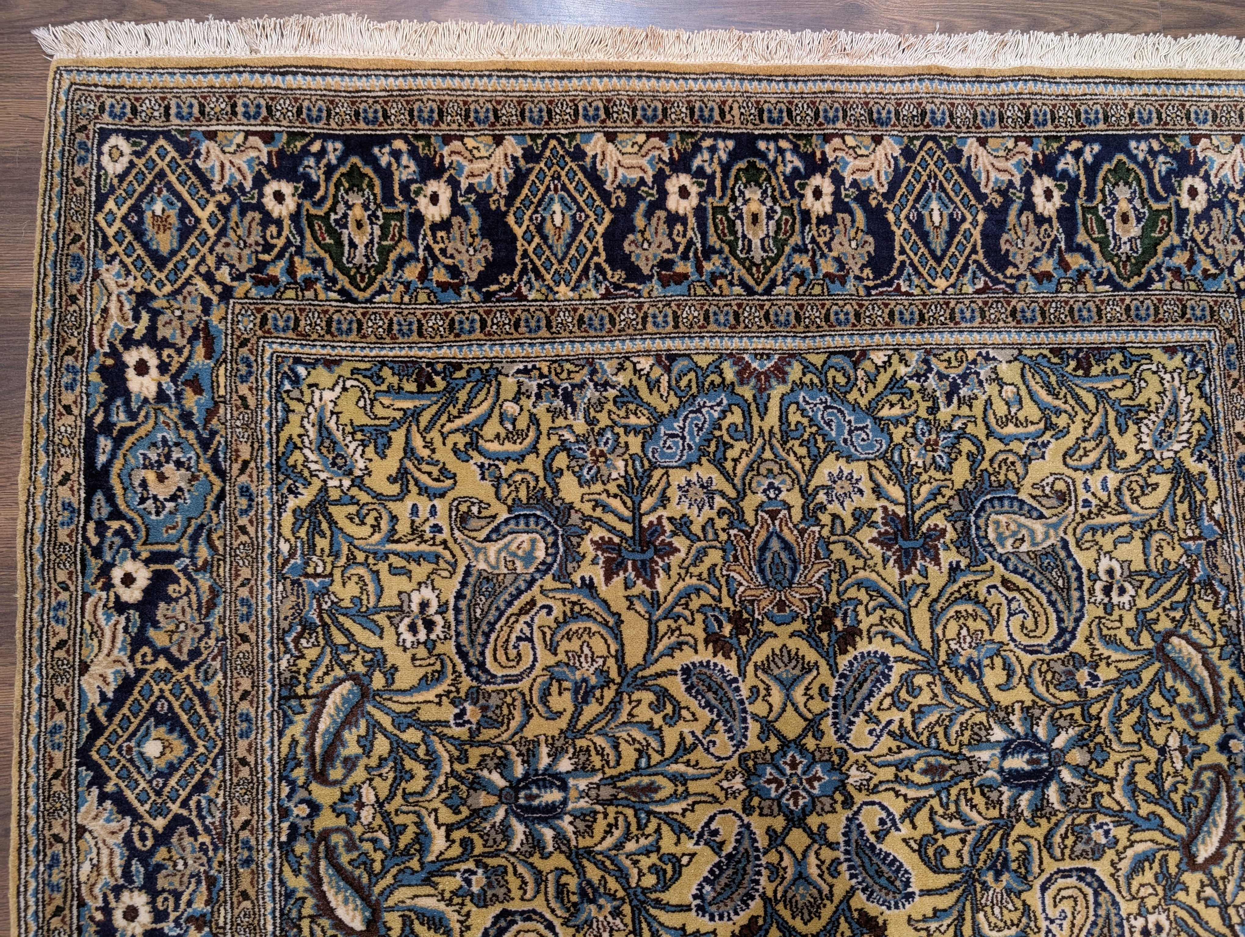 Persian Qum Rug 5x7, Gold and Navy Blue, Paisley-Boteh, Allover Floral