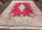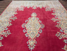 Persian Rug 9x12, Kerman Rug, Semi Open Field, Medallion, Red, Vintage, Wool