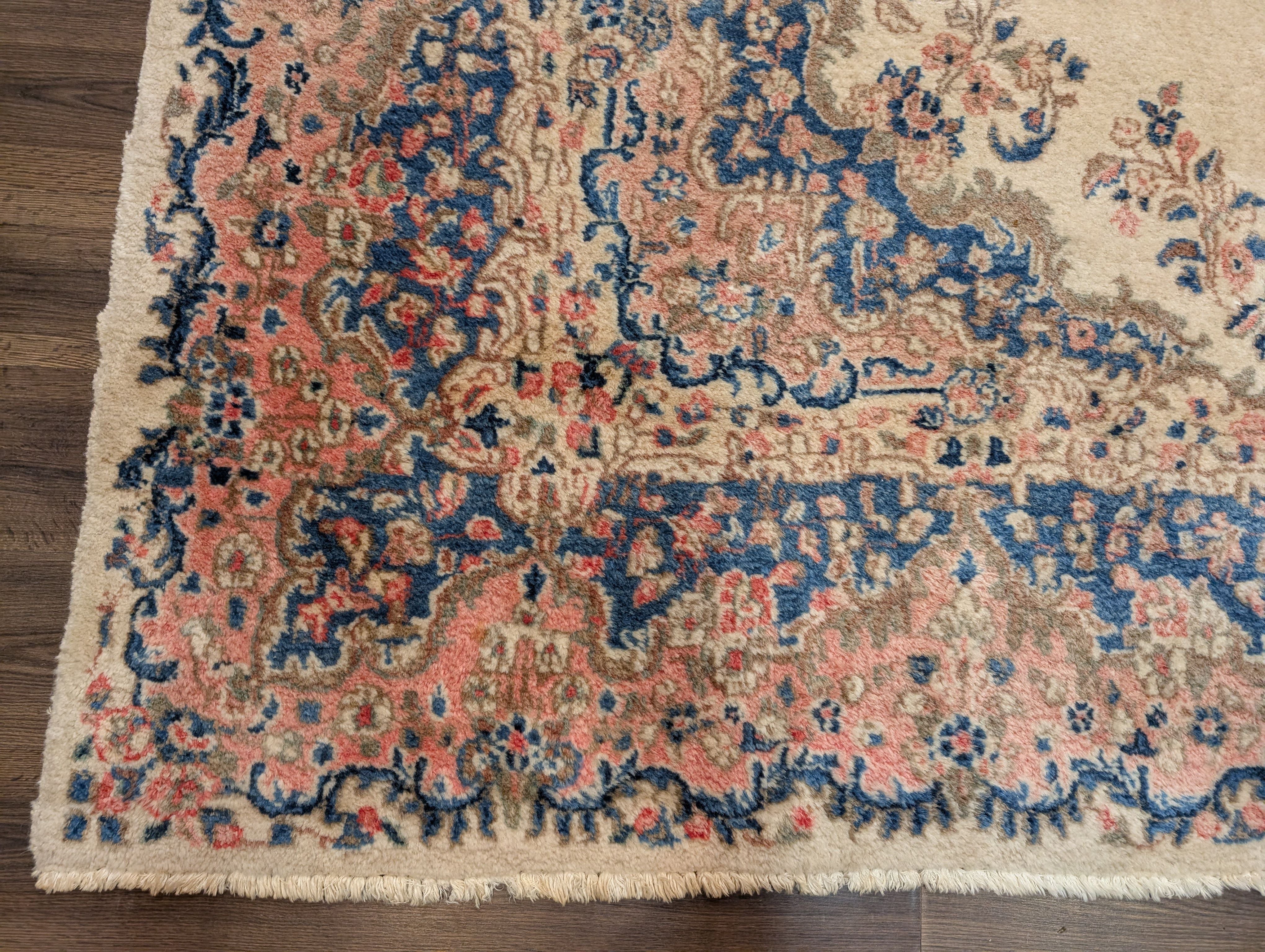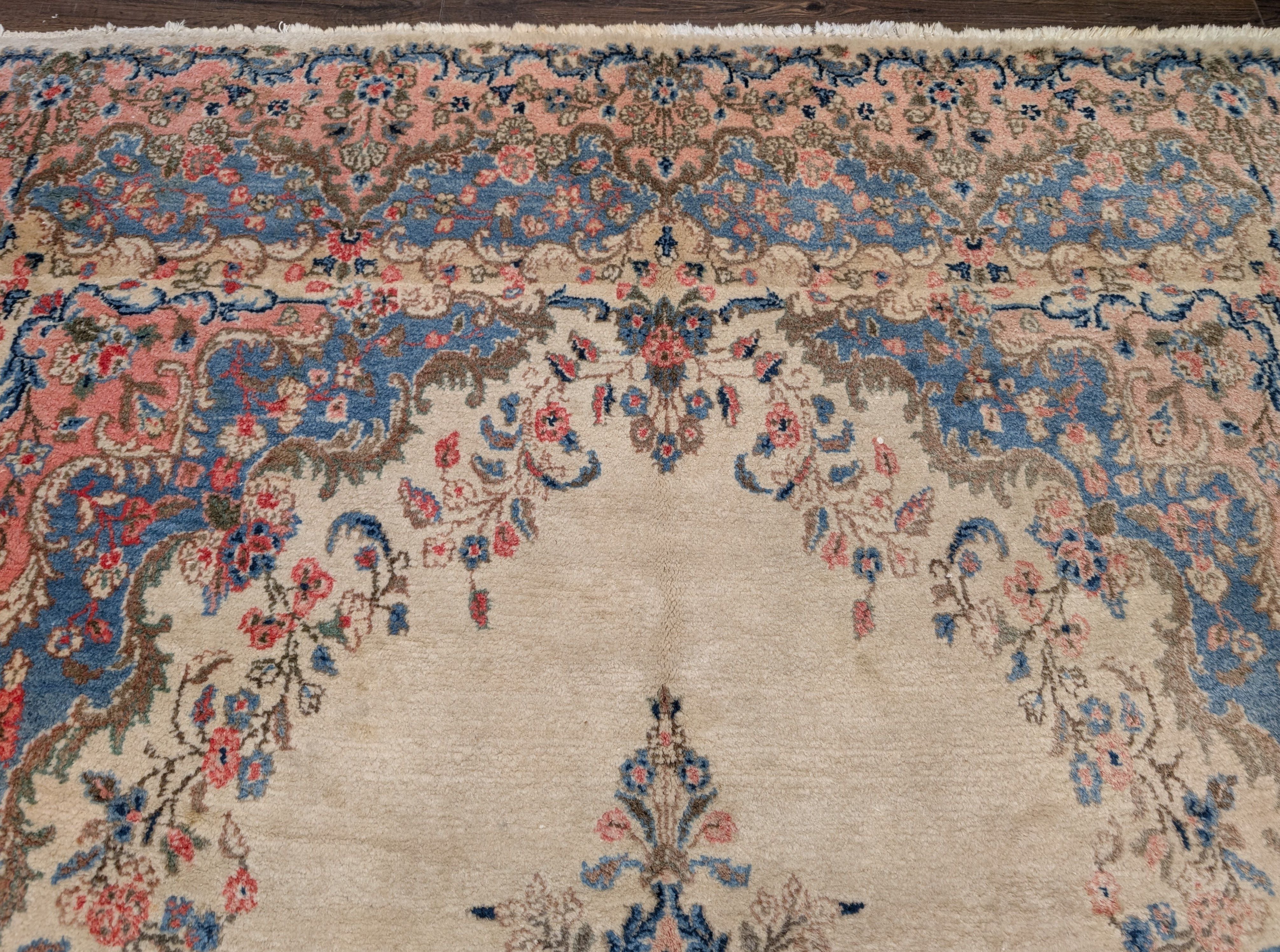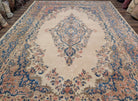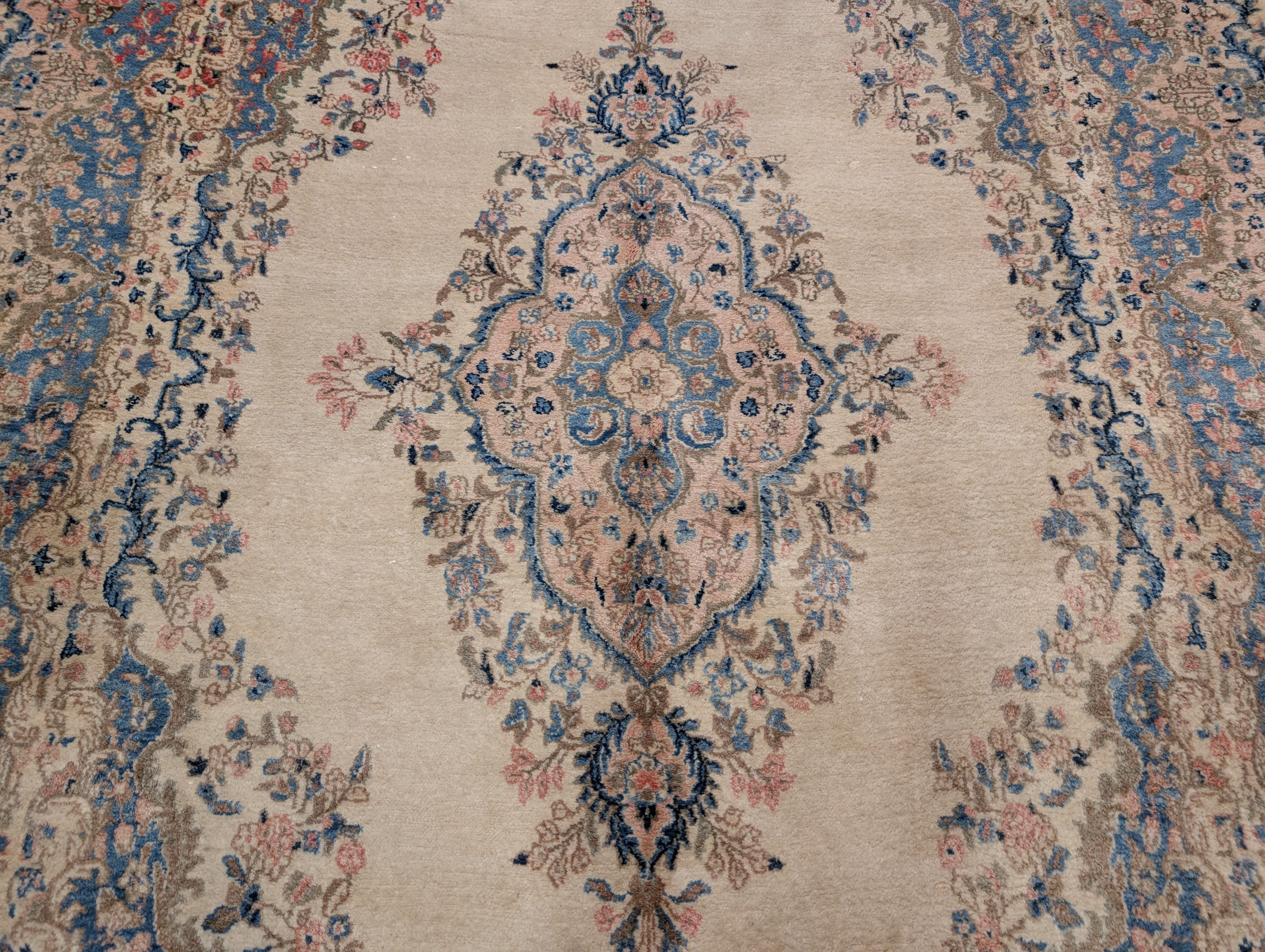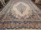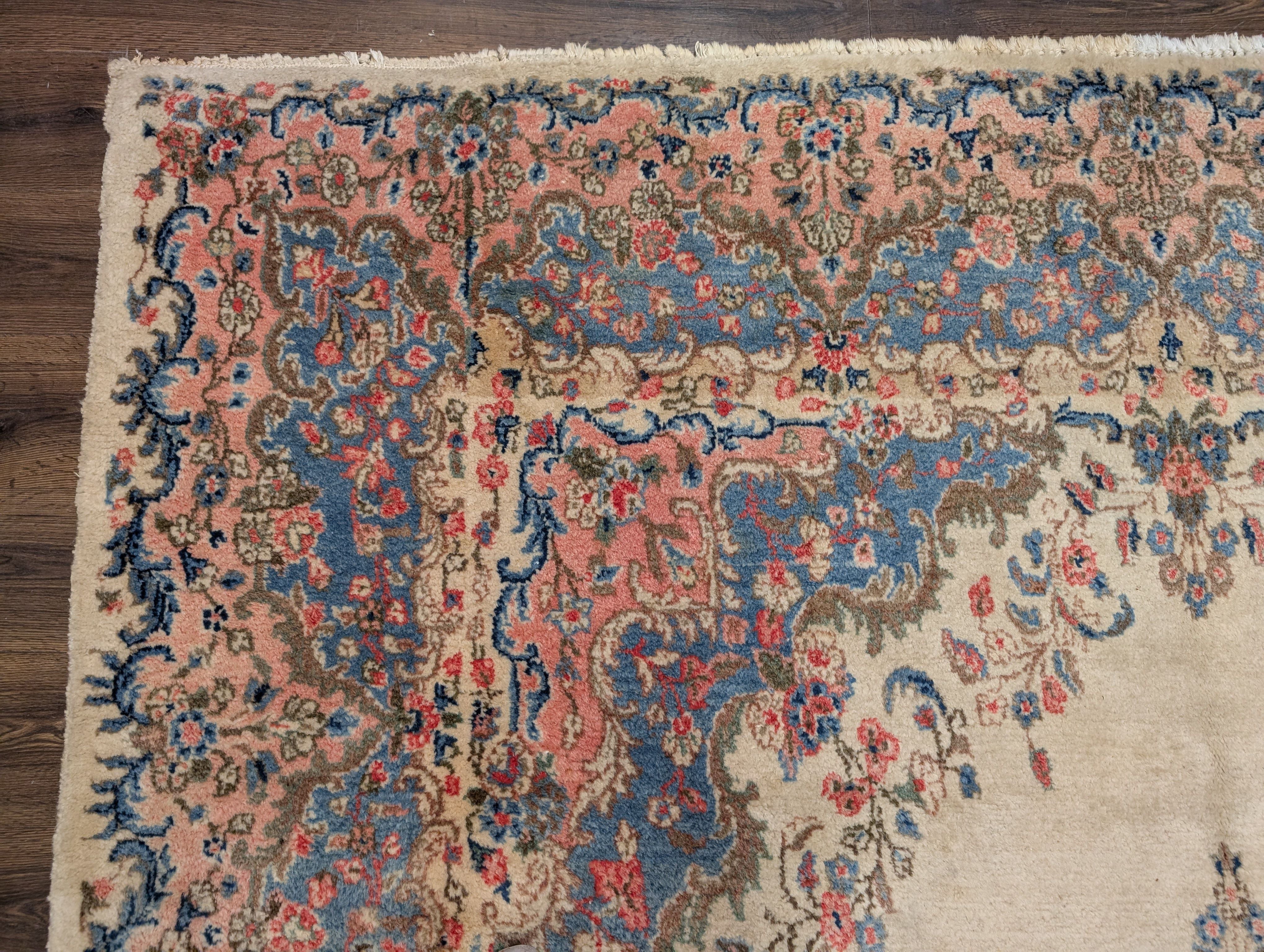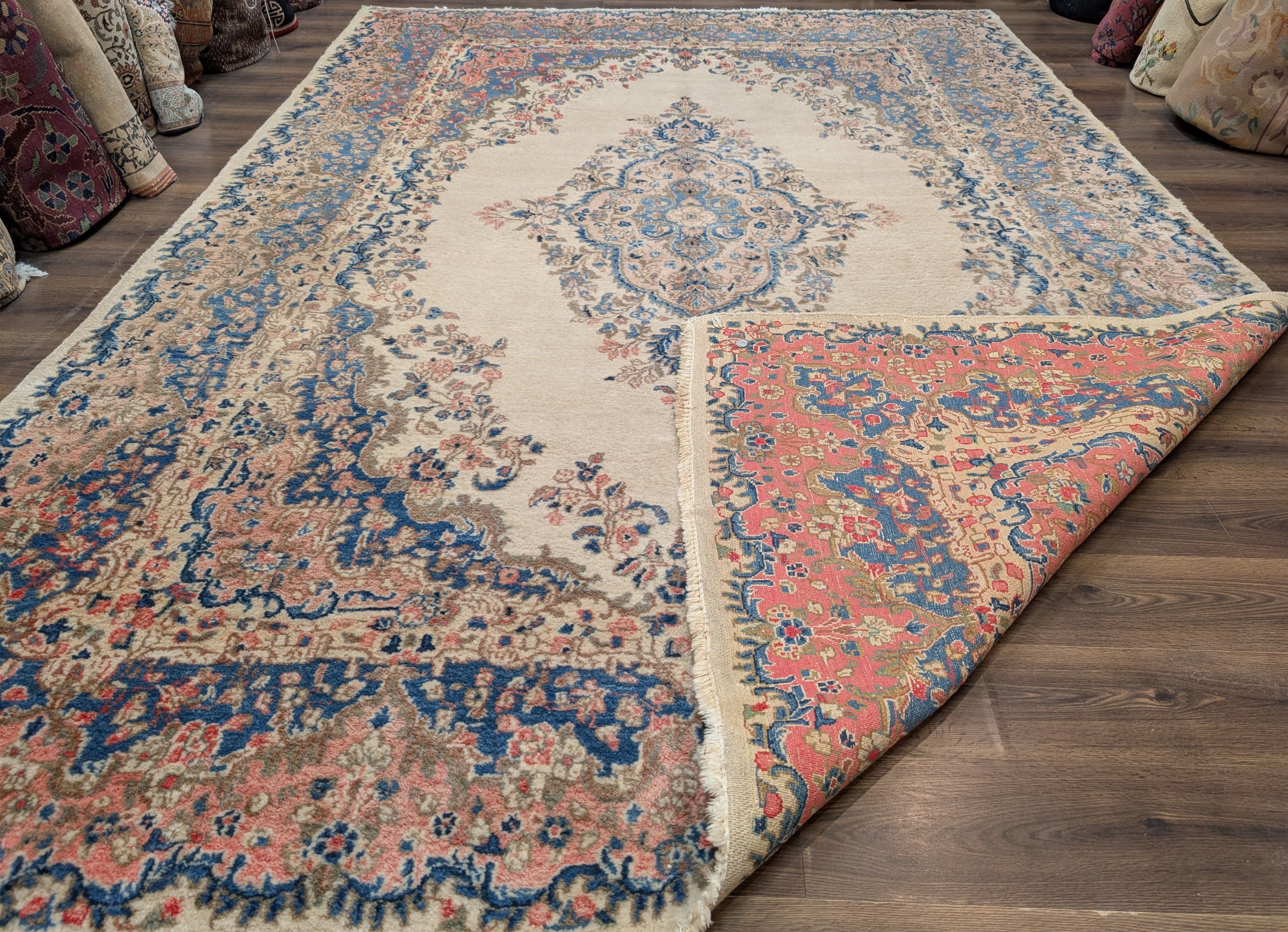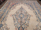 Persian Rug 9x12, Light Colors, Semi Antique, Oat Blue Pink, Hand Knotted, Kerman Design