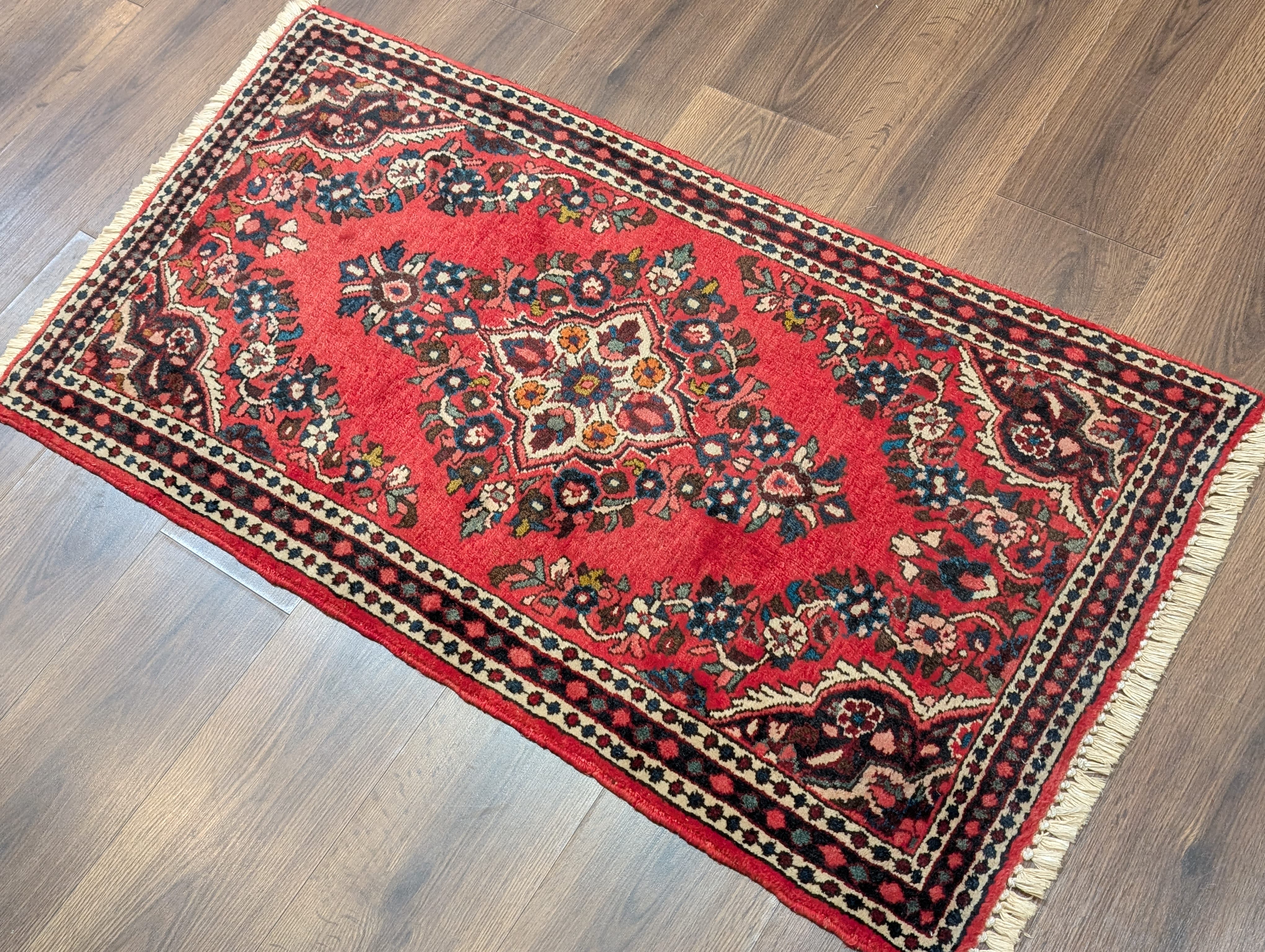 Persian Sarouk Rug 2x4, Small Vintage Wool Carpet