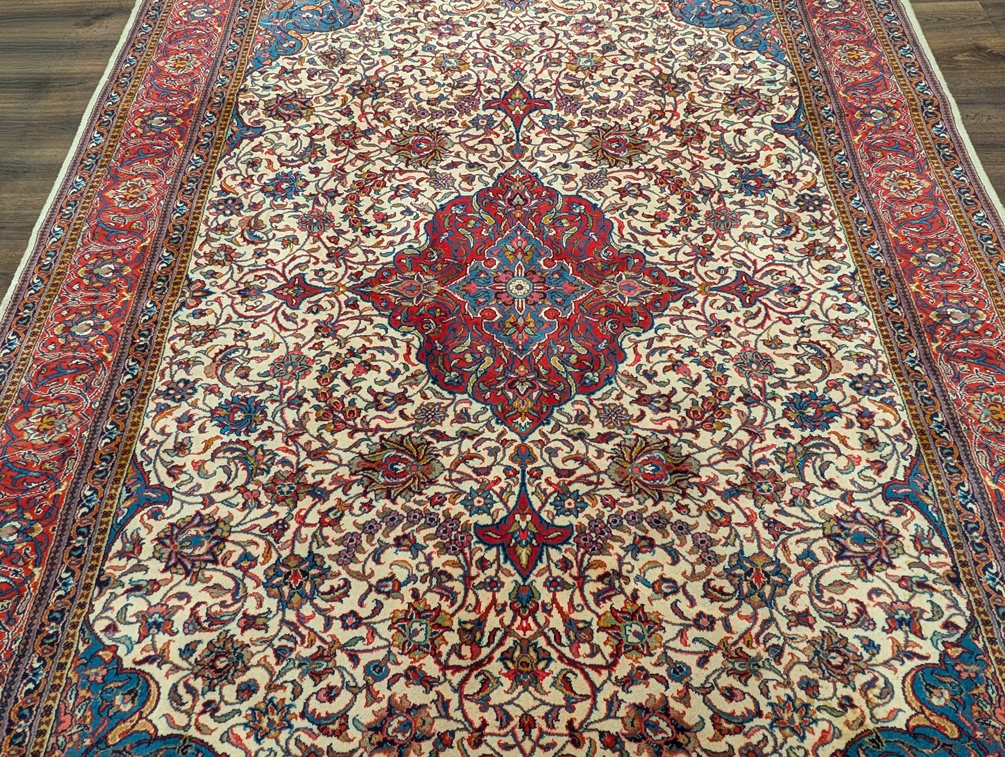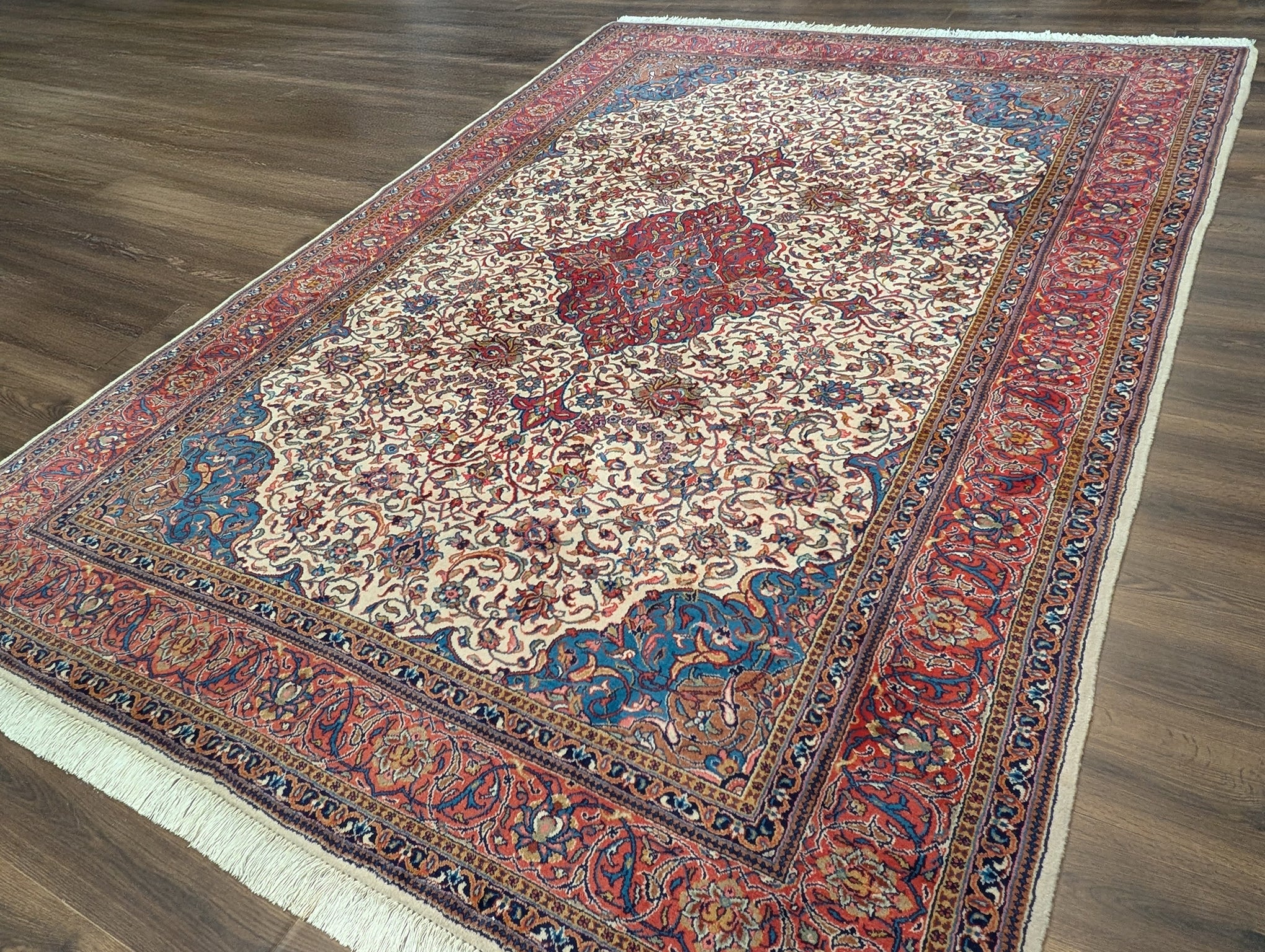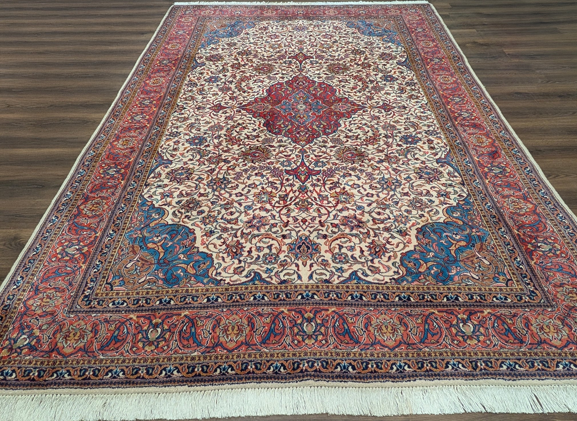 Persian Sarouk Rug 8x11, Floral Medallion, Cream, Hand Knotted