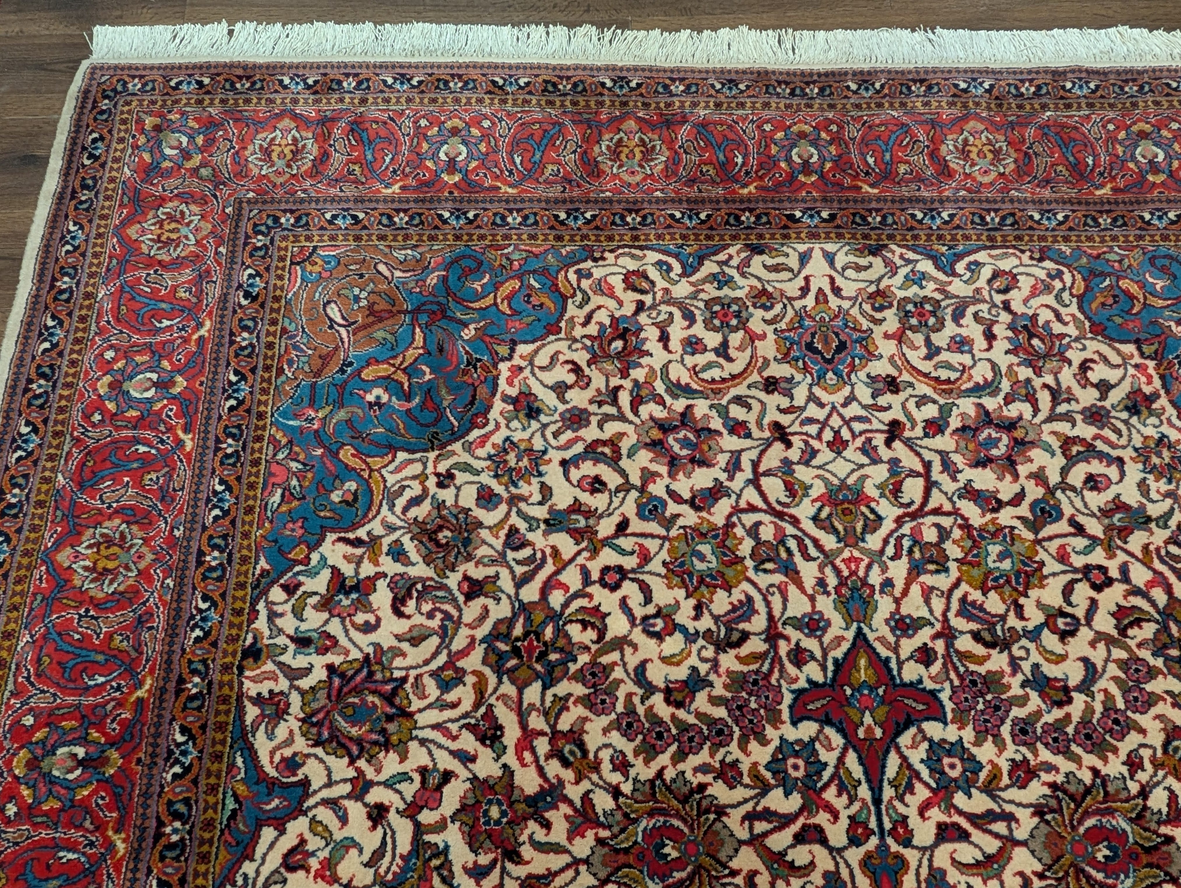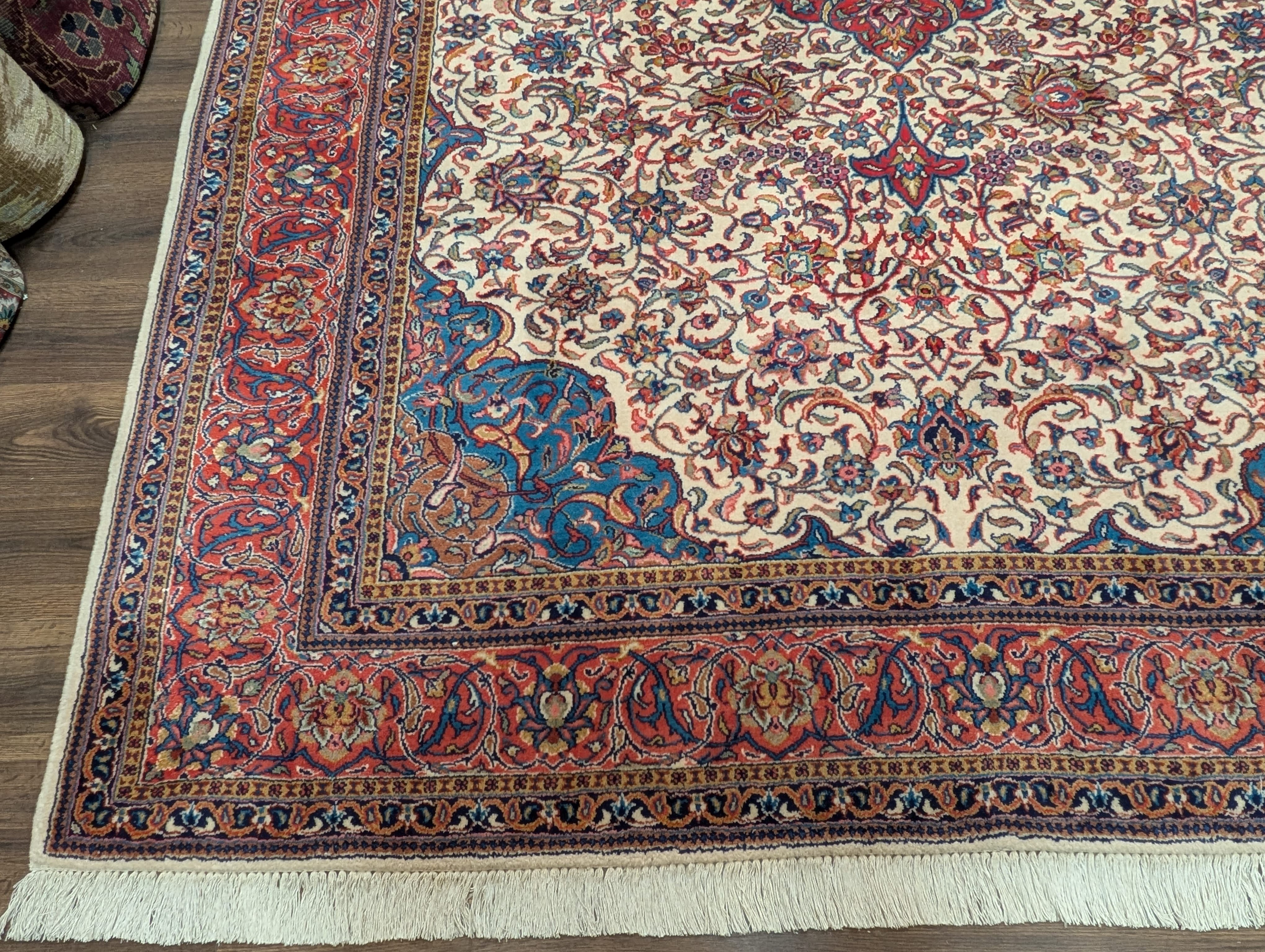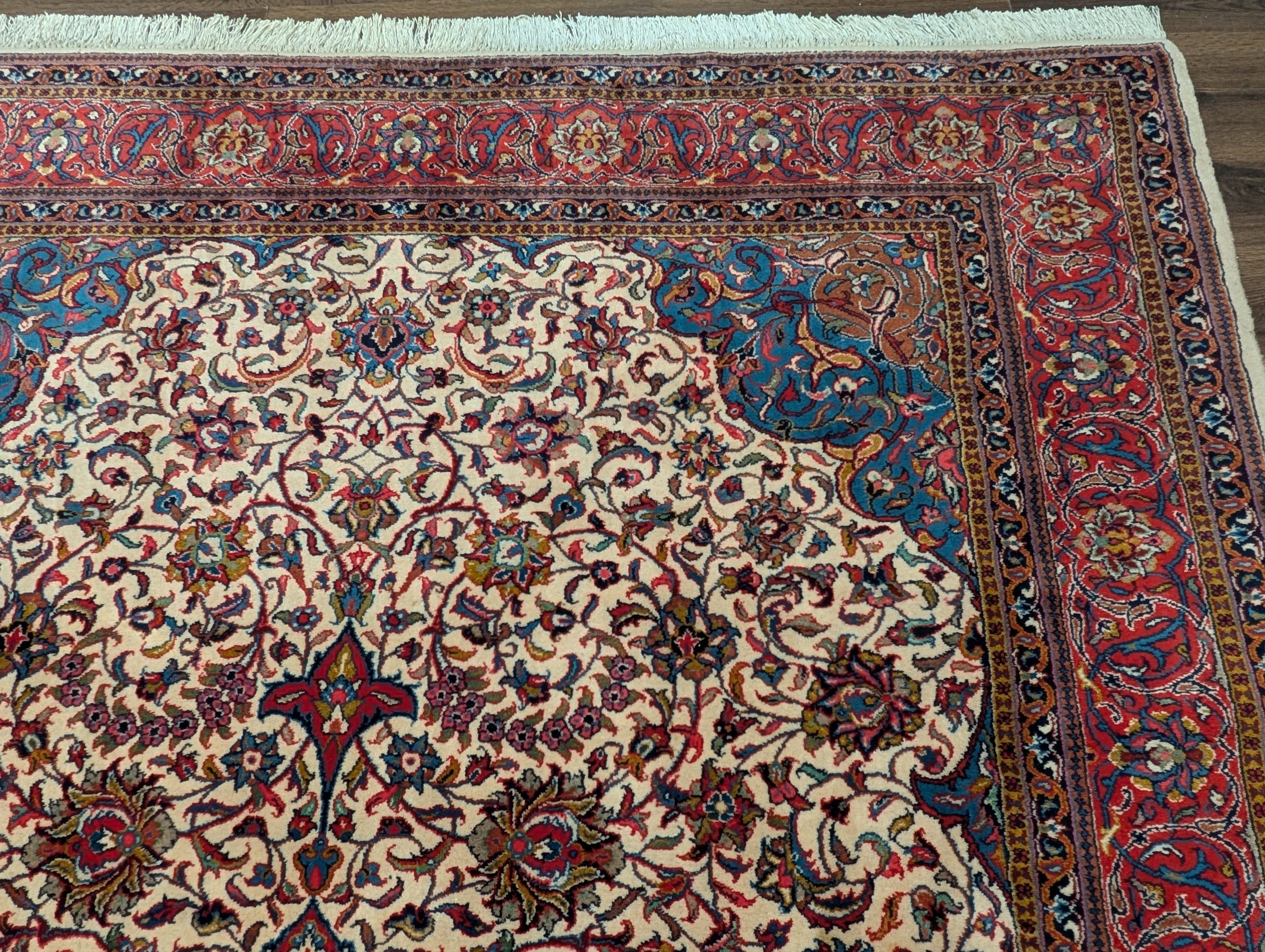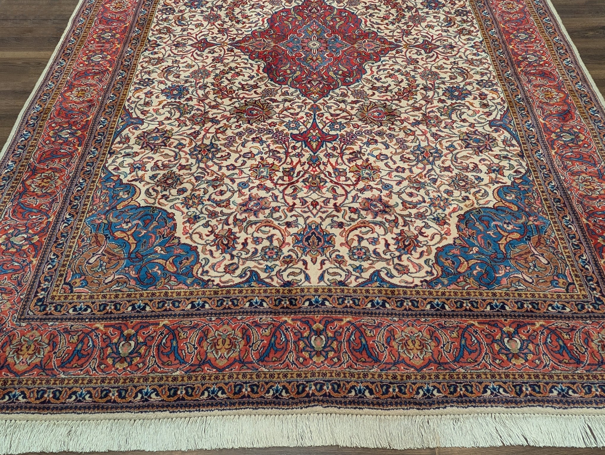 Persian Sarouk Rug 8x11, Floral Medallion, Cream, Hand Knotted