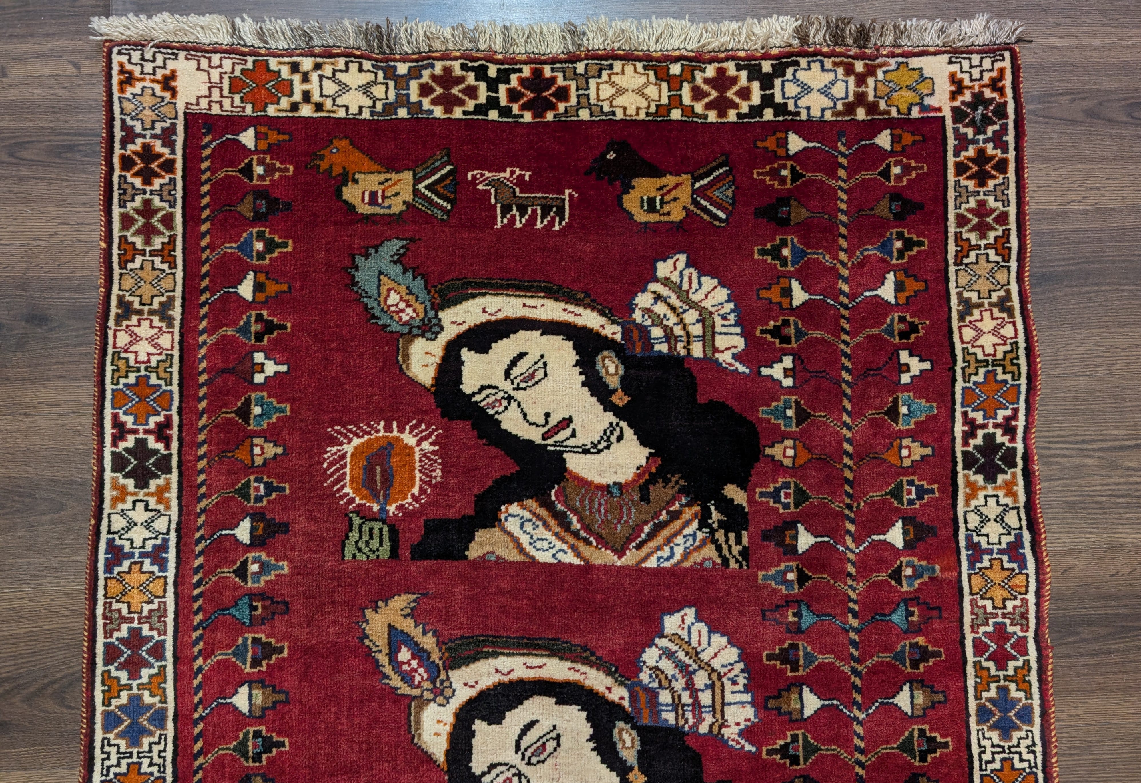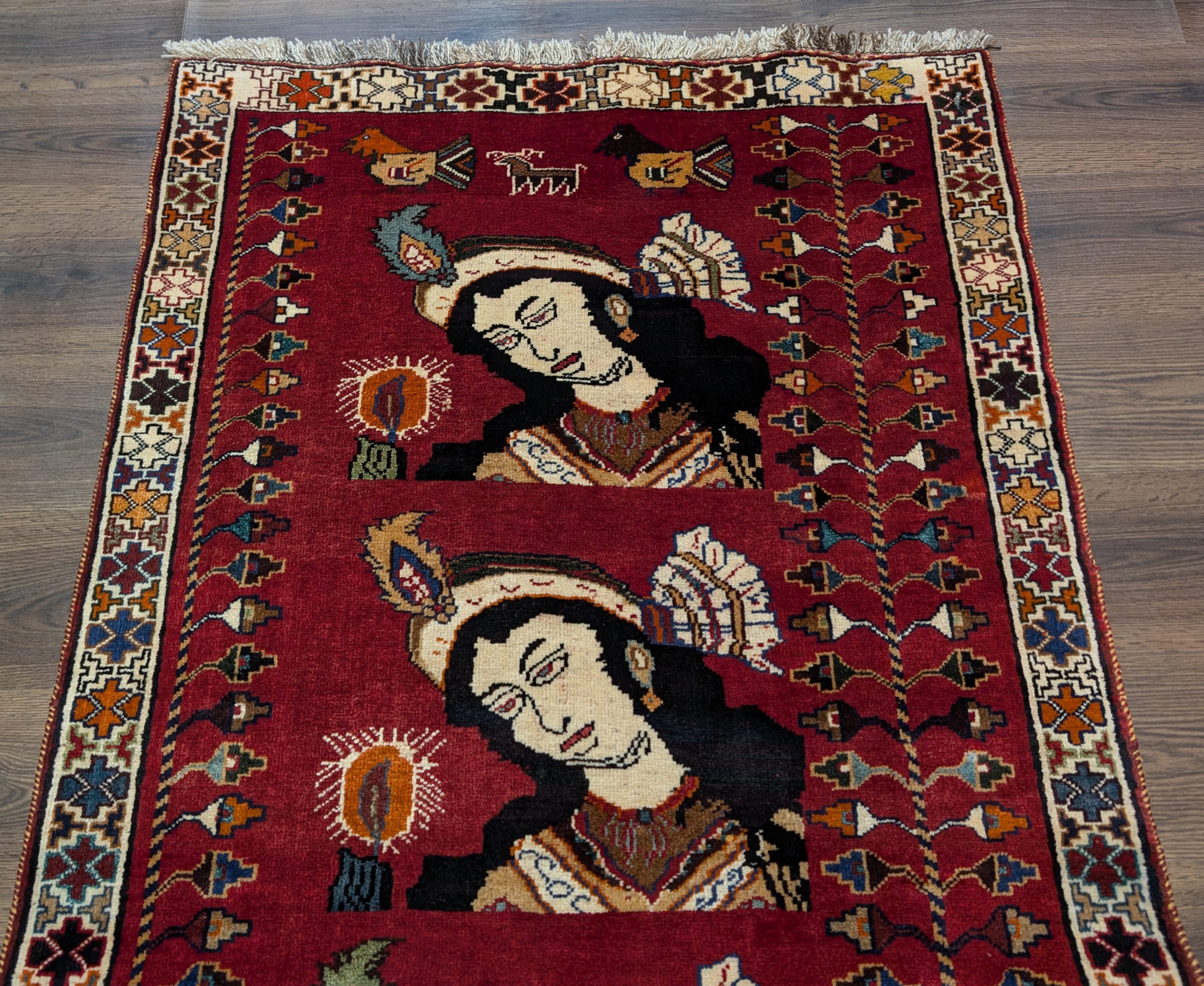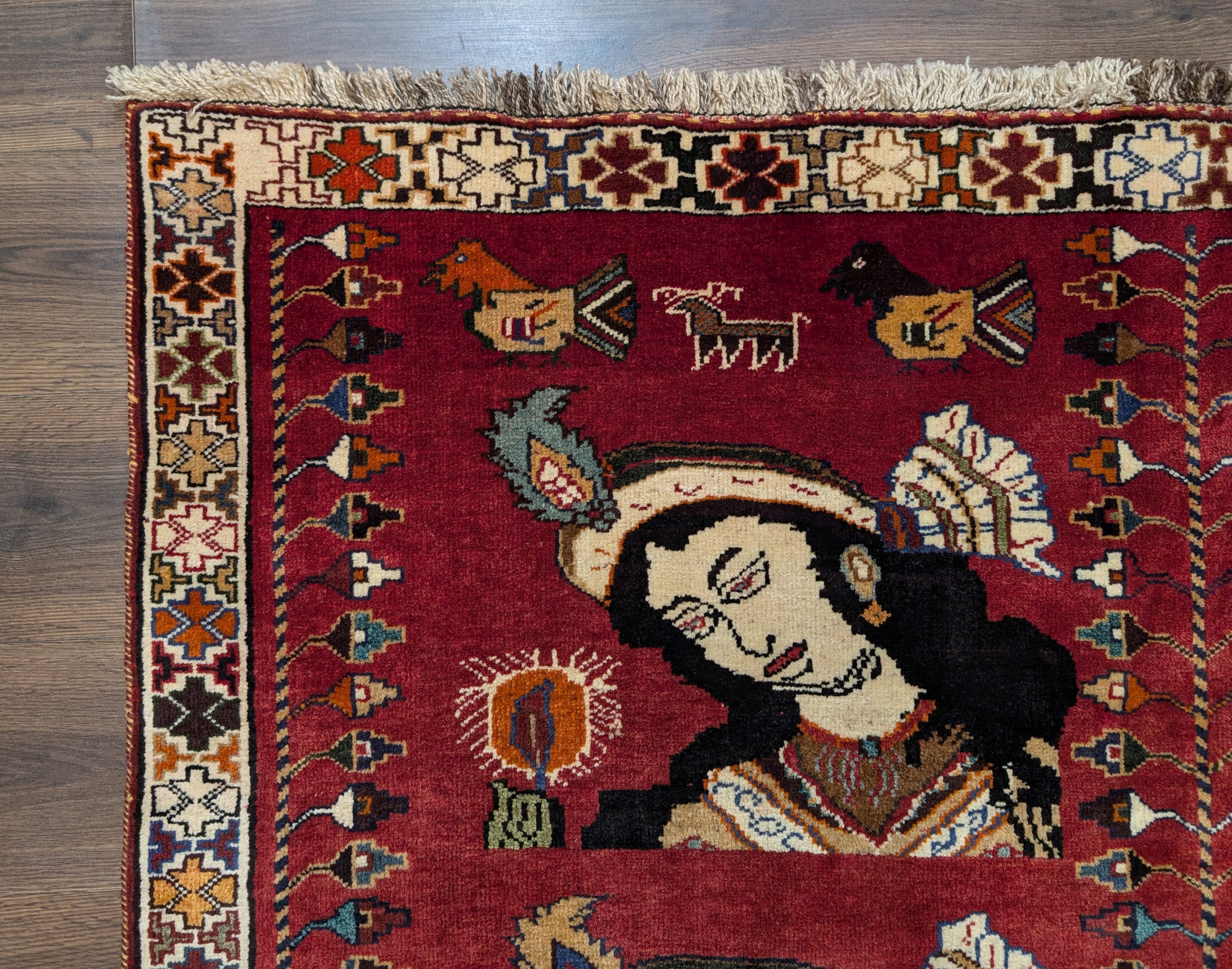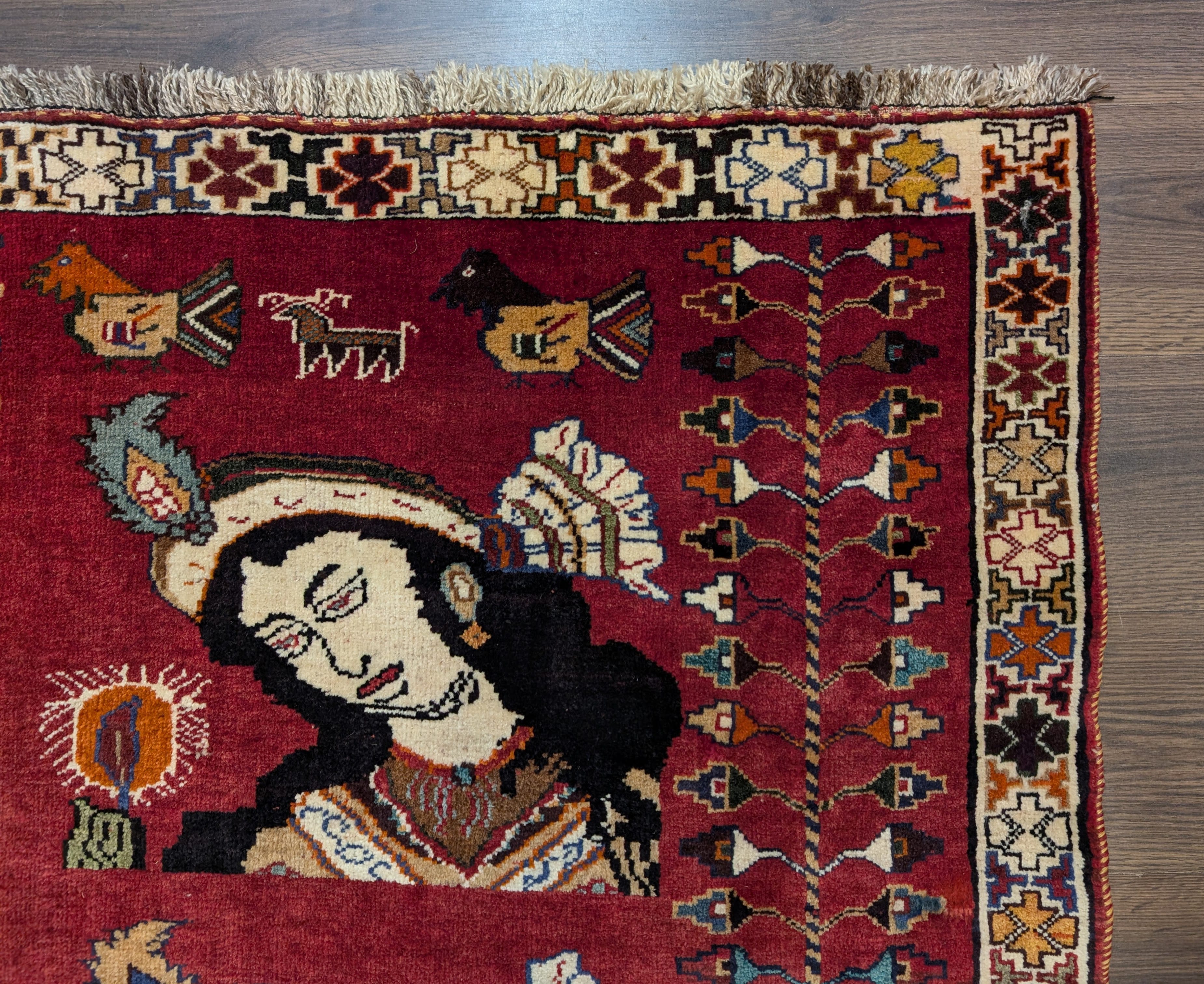 Persian Shiraz Tribal Rug 3.6 x 5, Dark Red, Pictorials, Qashqai