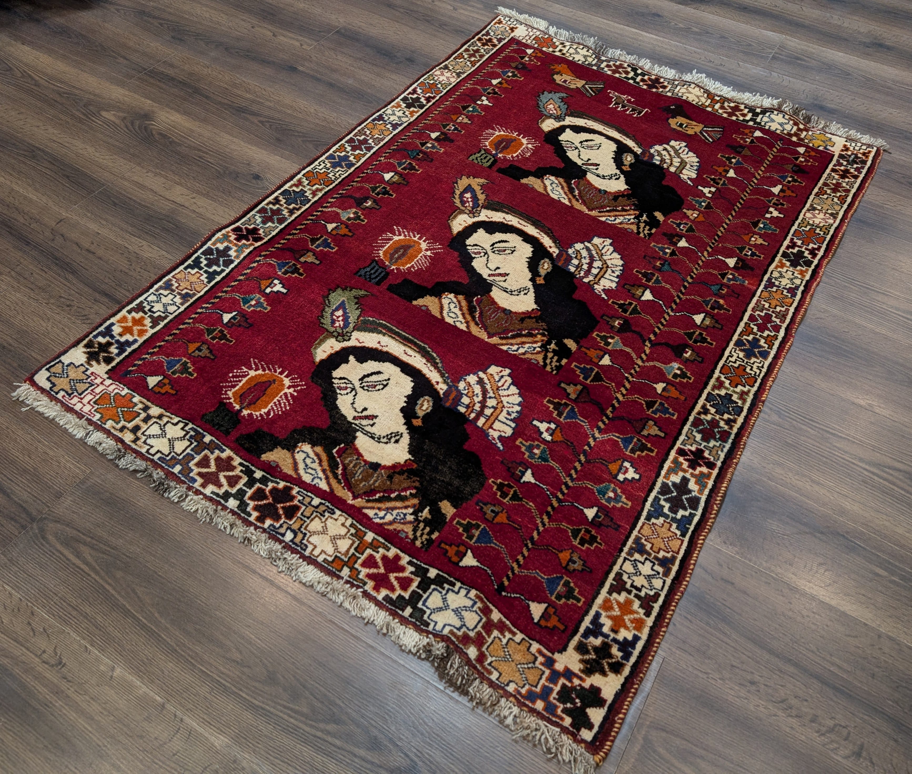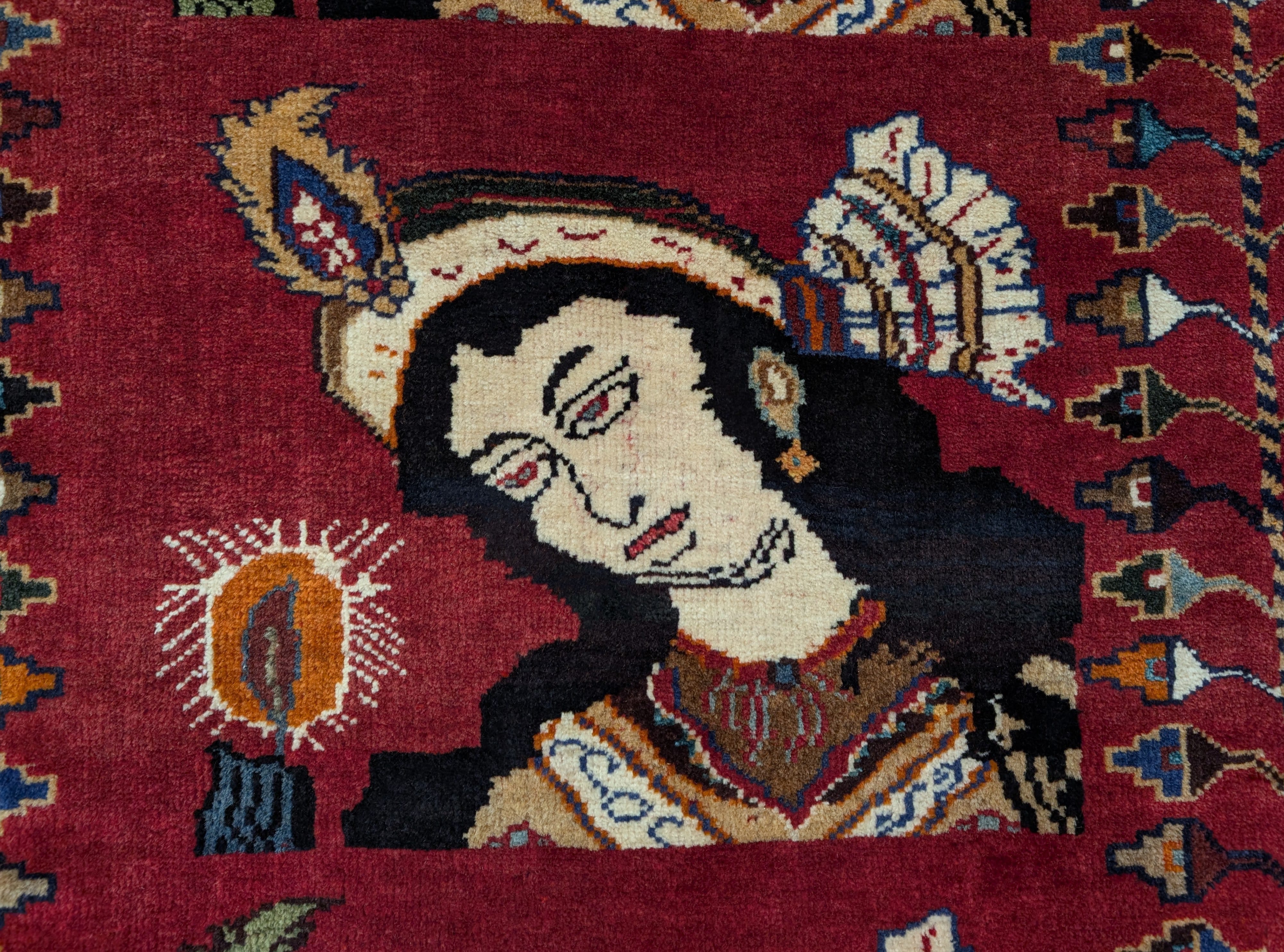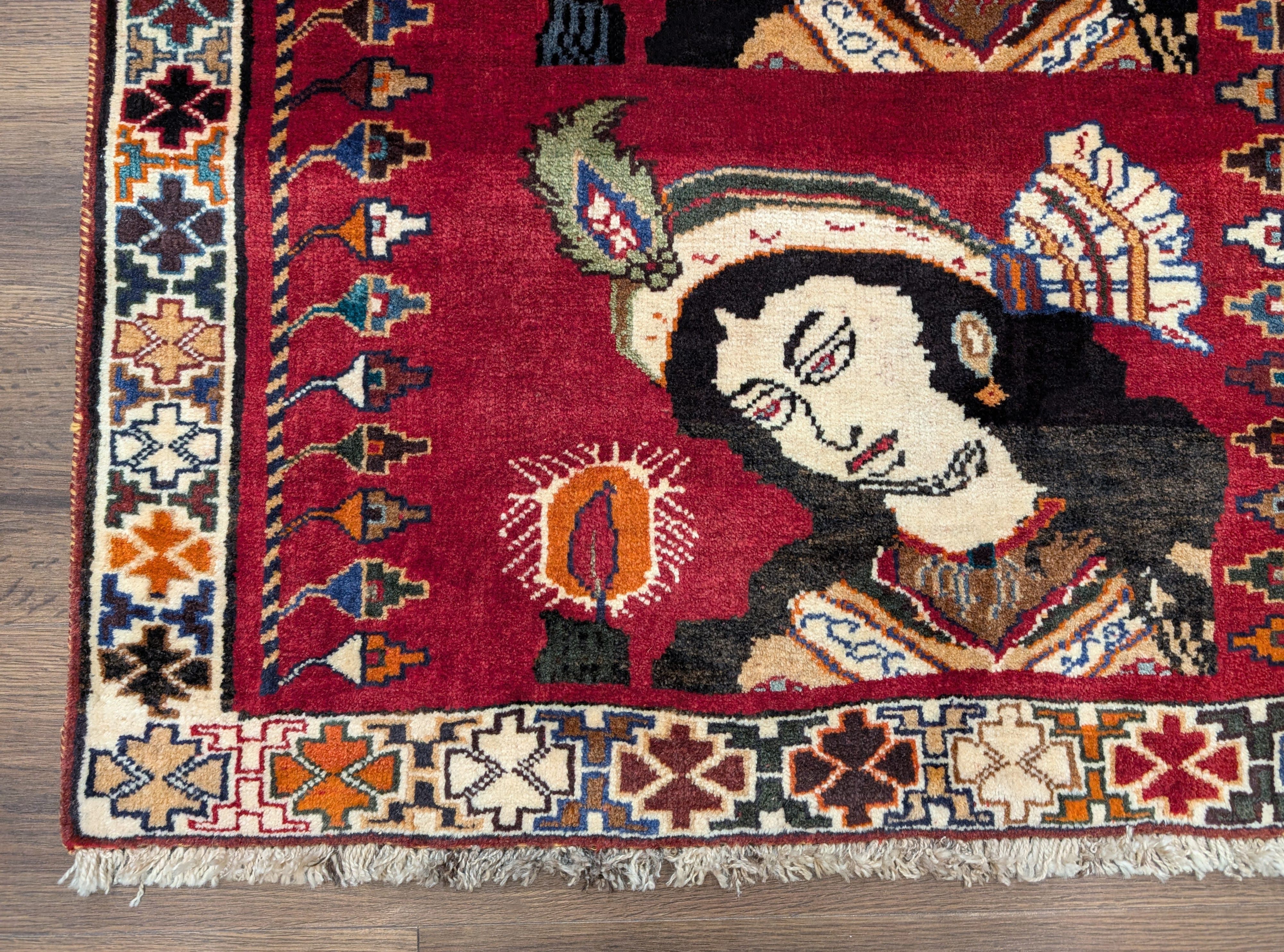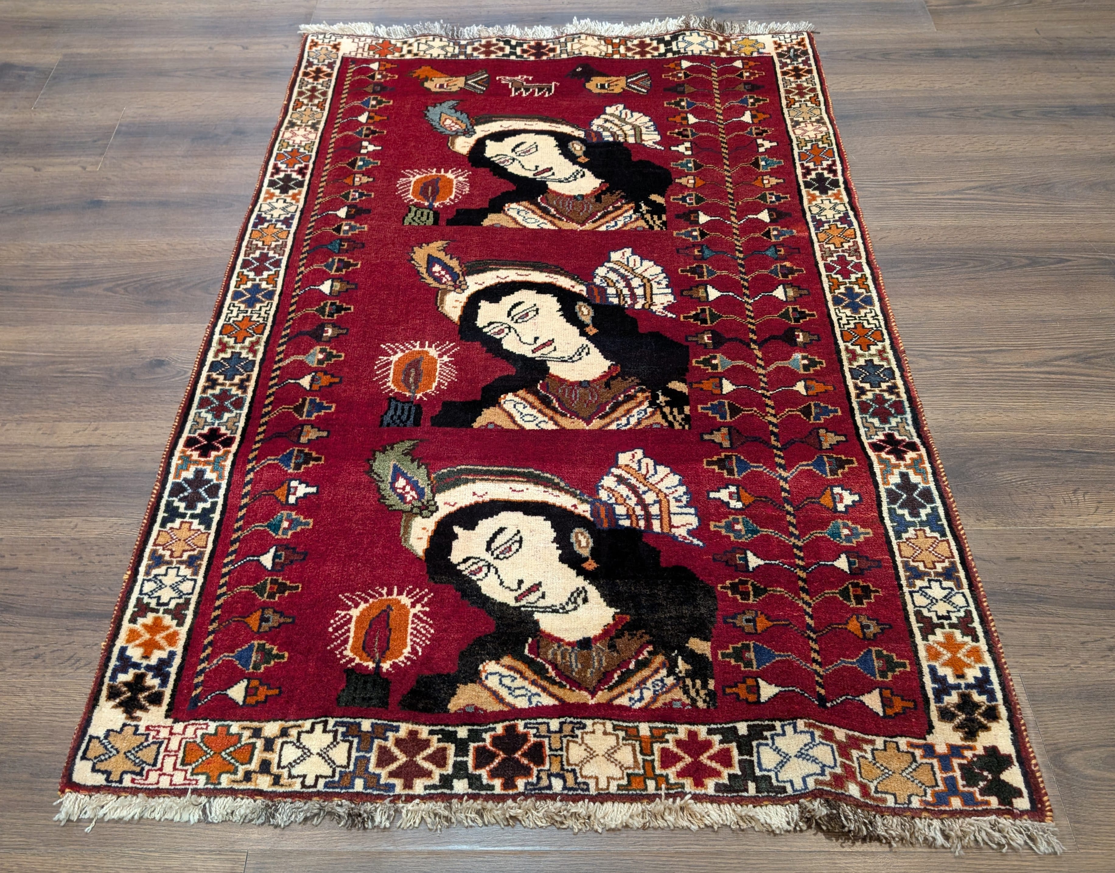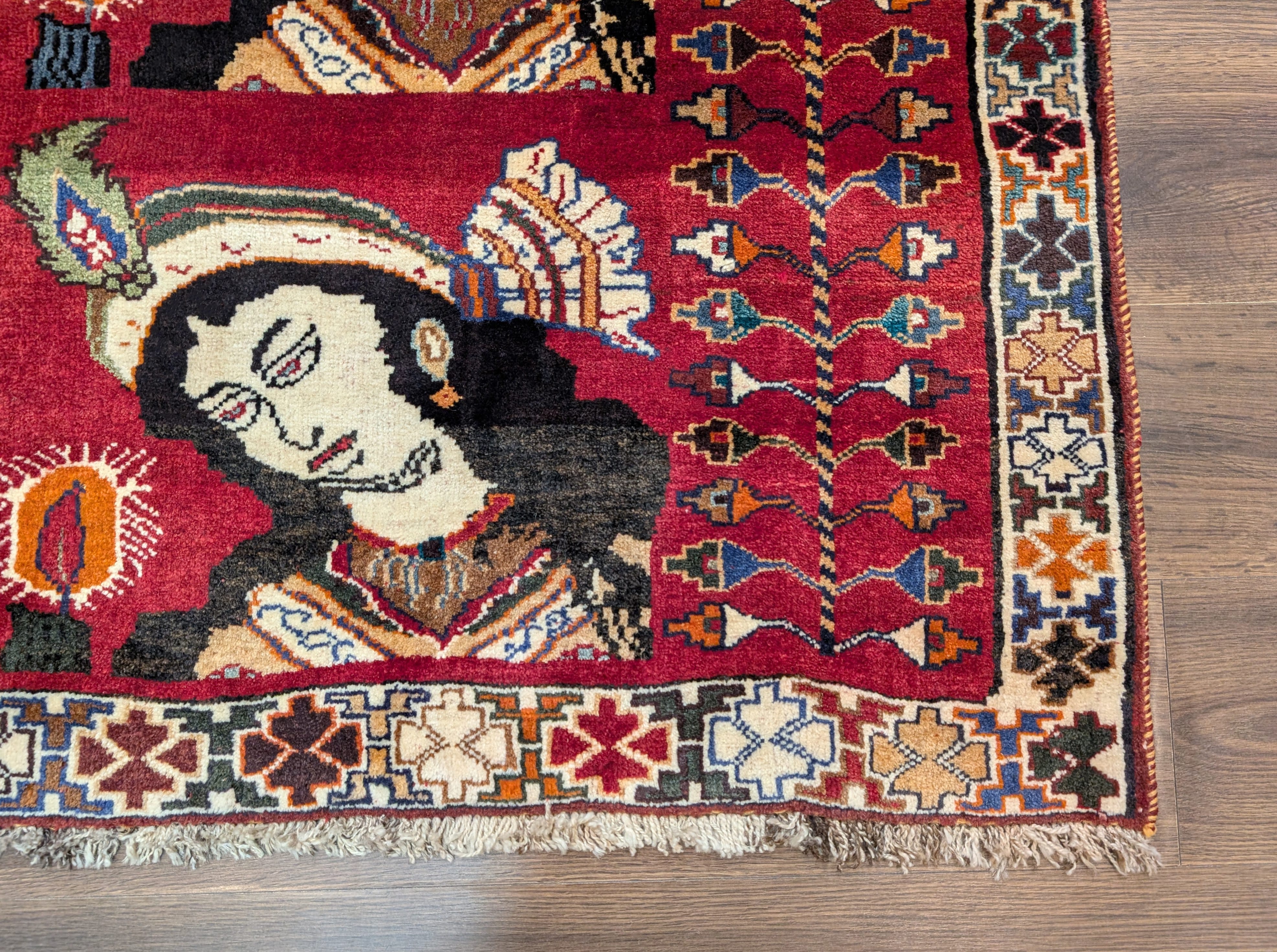Persian Shiraz Tribal Rug 3.6 x 5, Dark Red, Pictorials, Qashqai