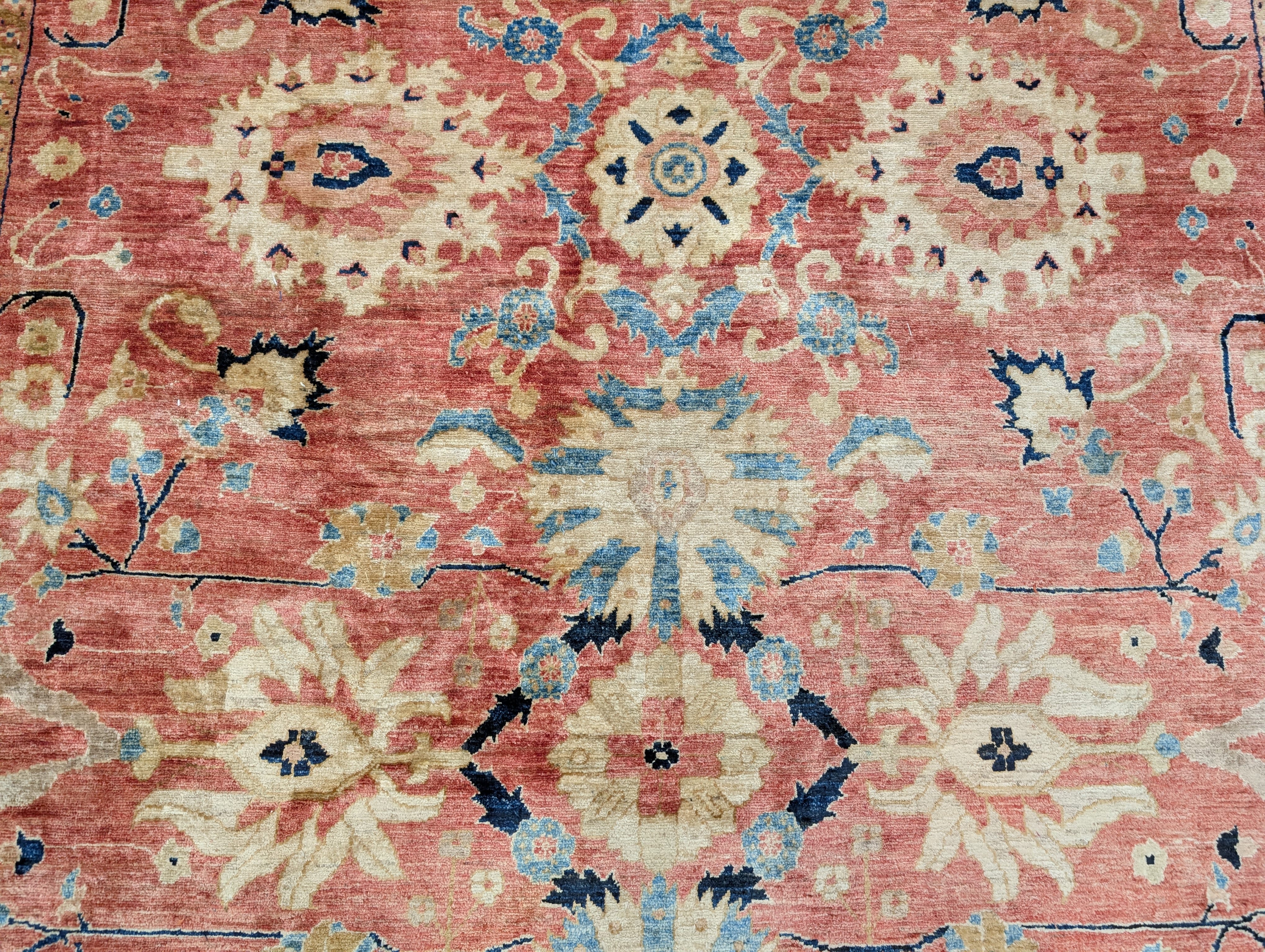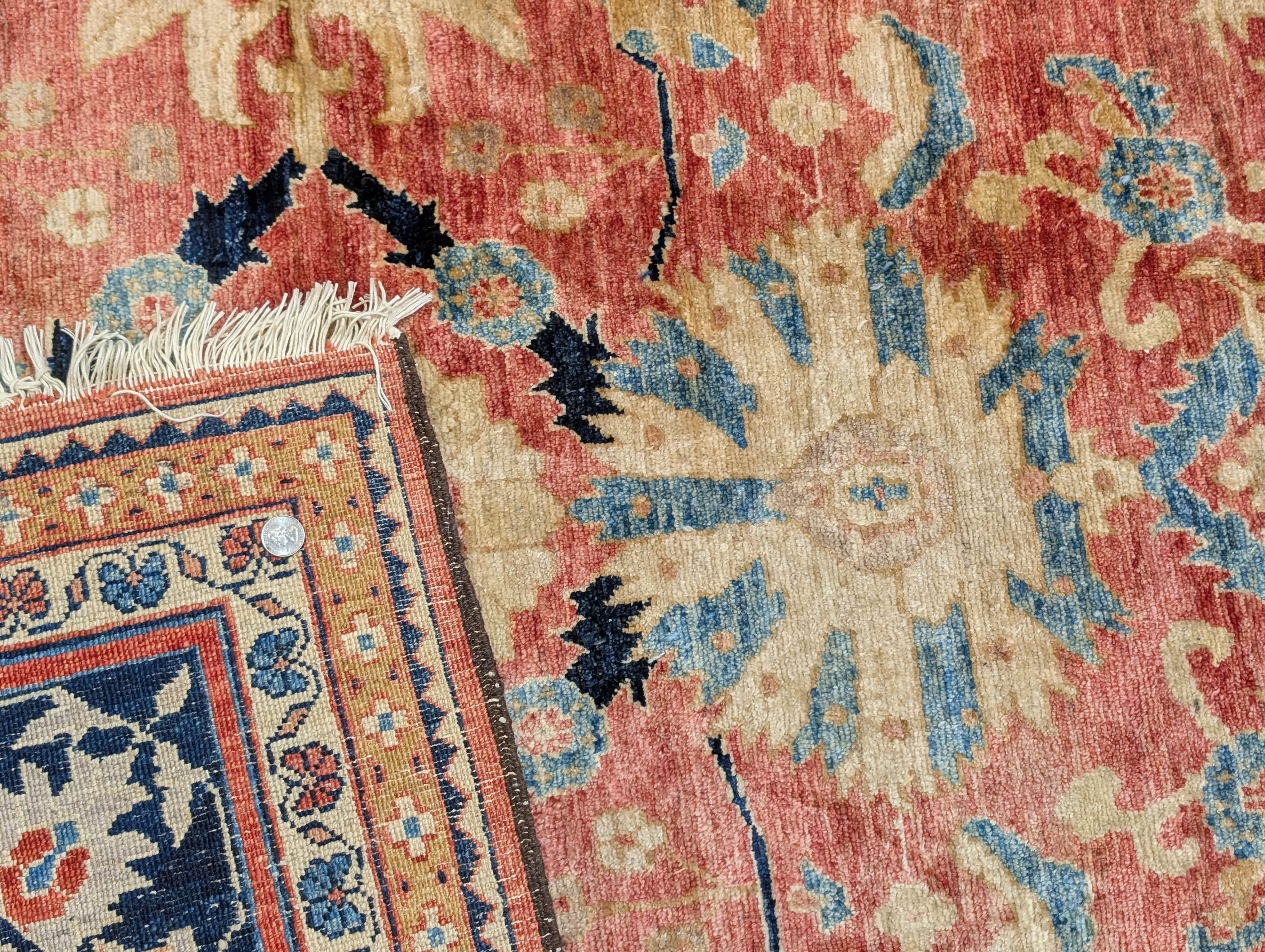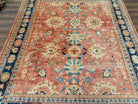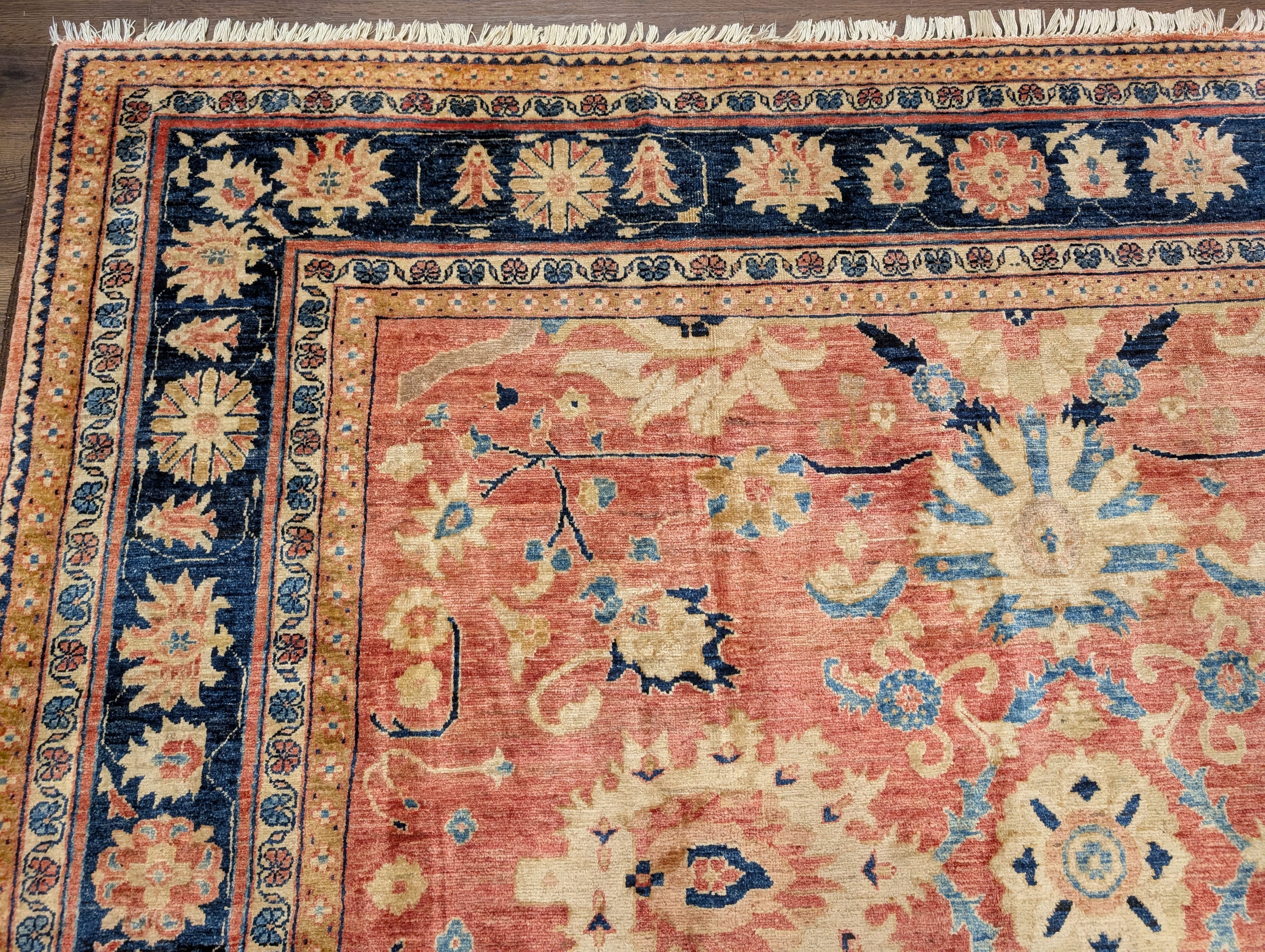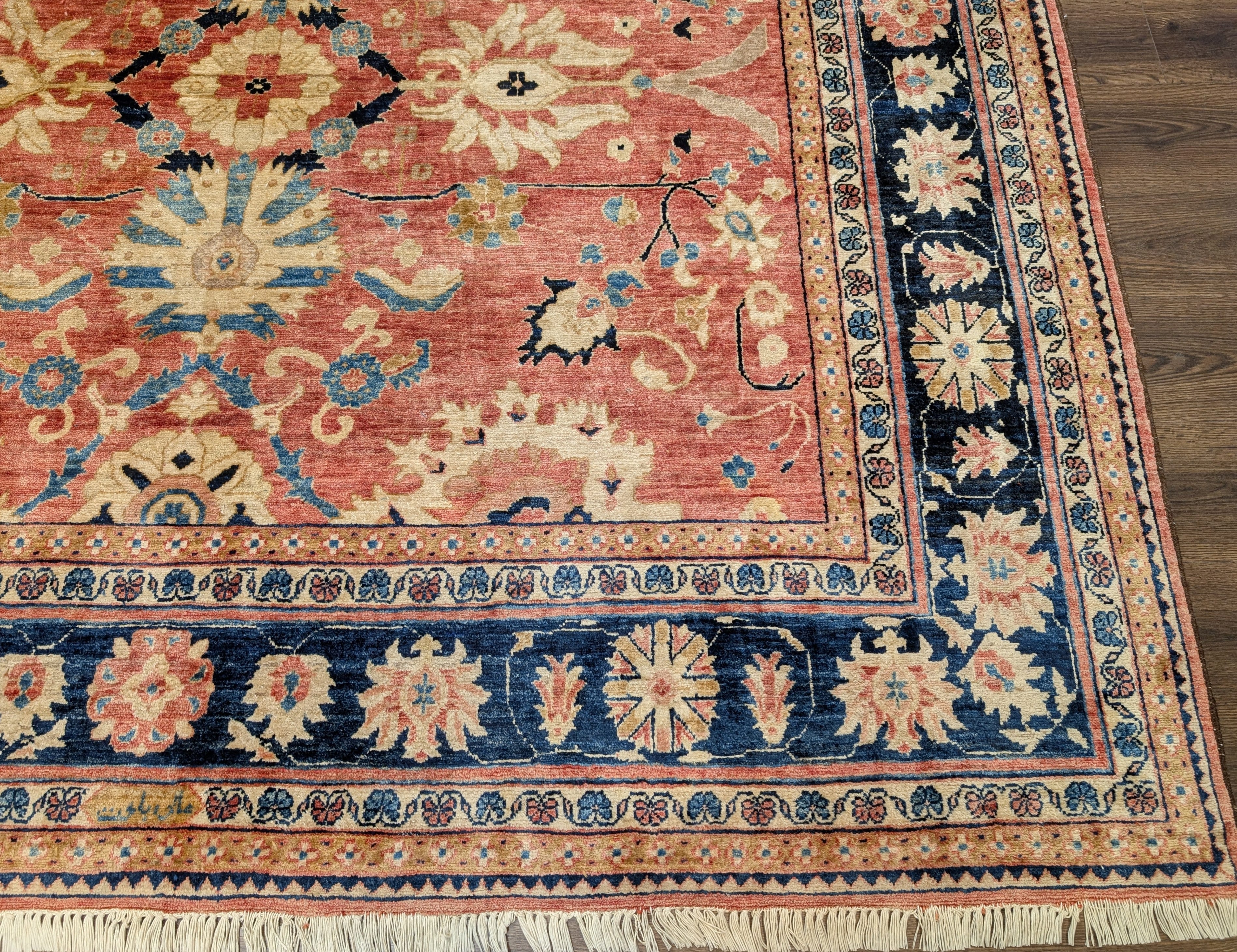 Persian Sultanabad Rug 8x10, Coral and Blue, Allover Pattern, Mahal Carpet, Wool