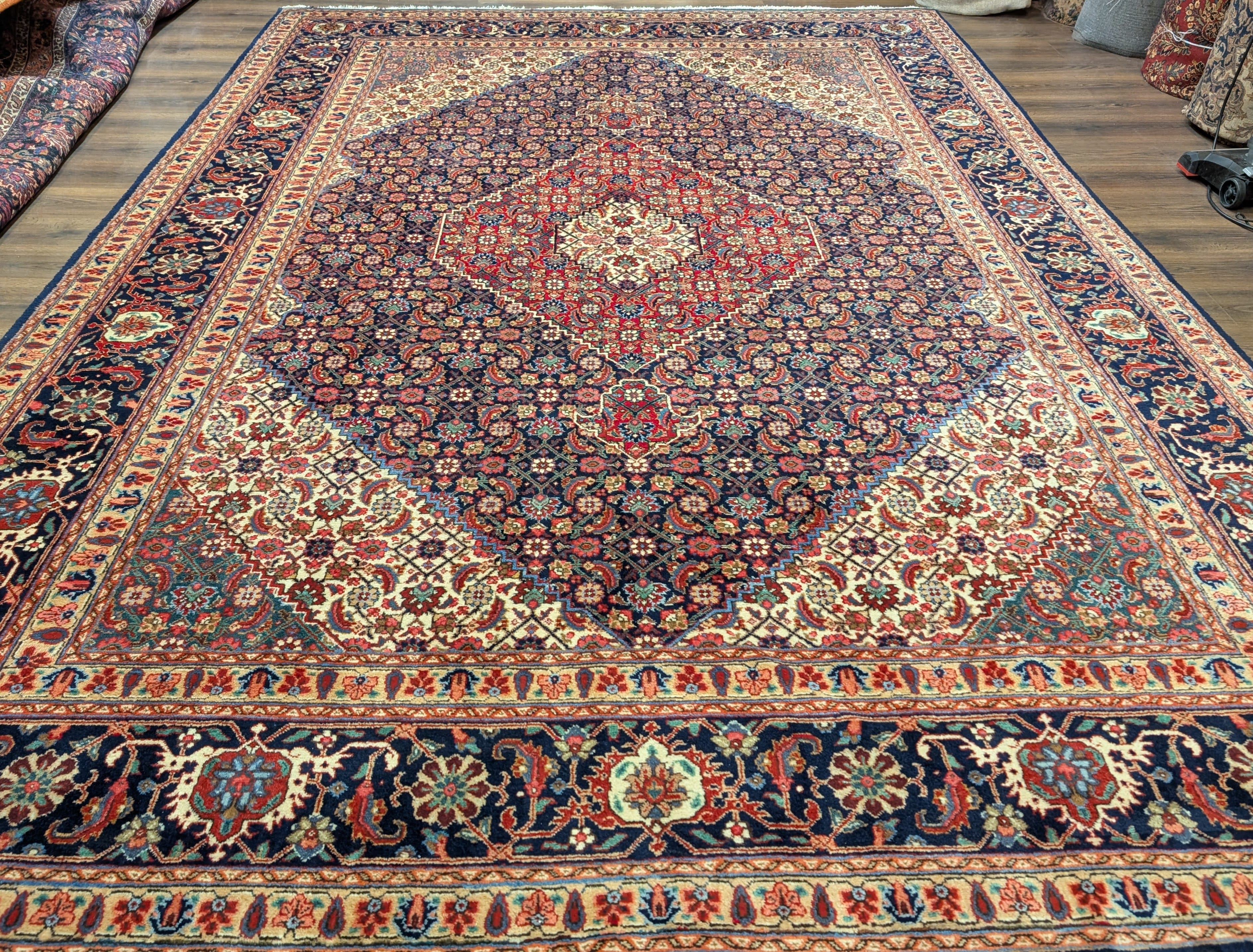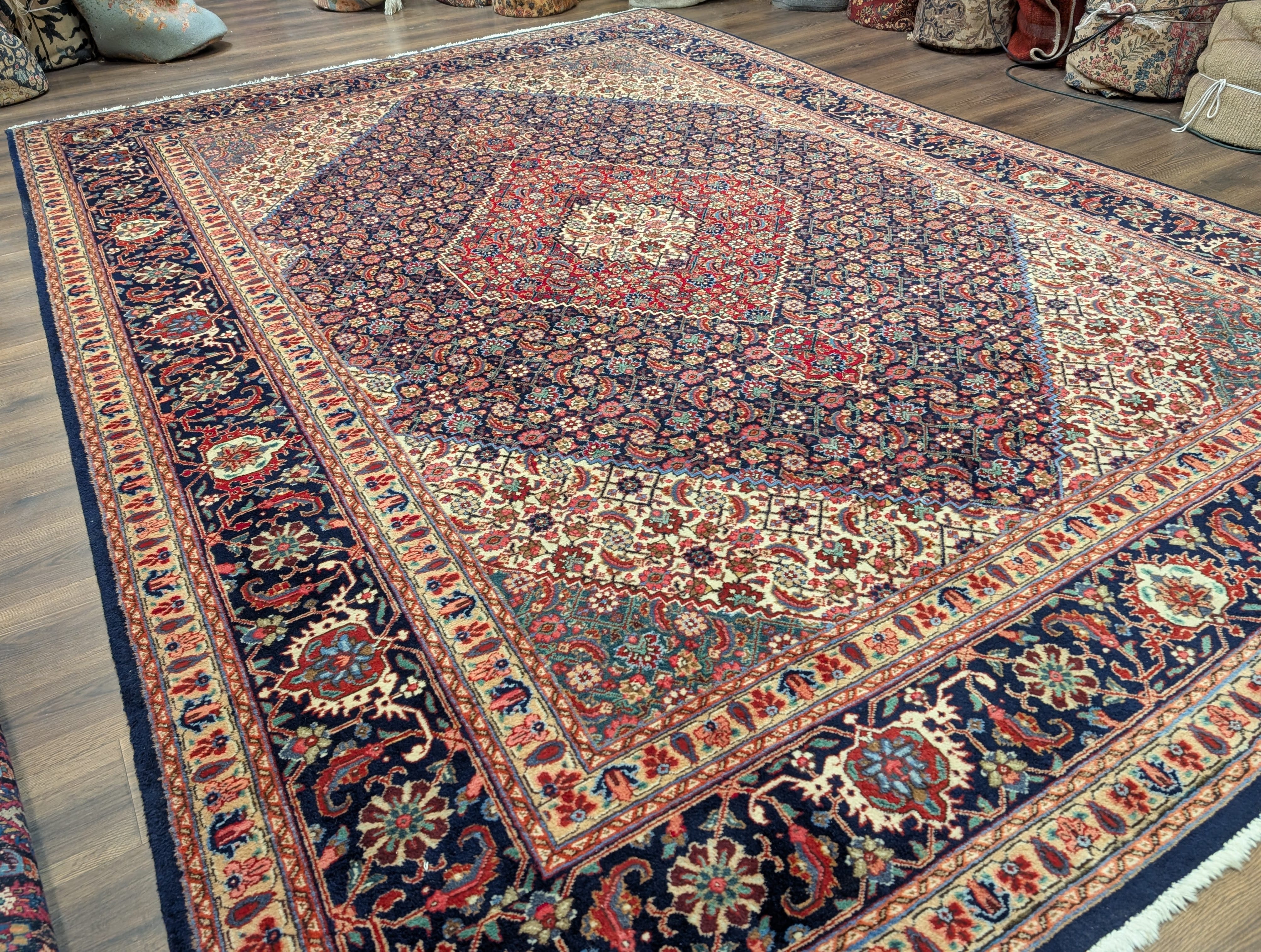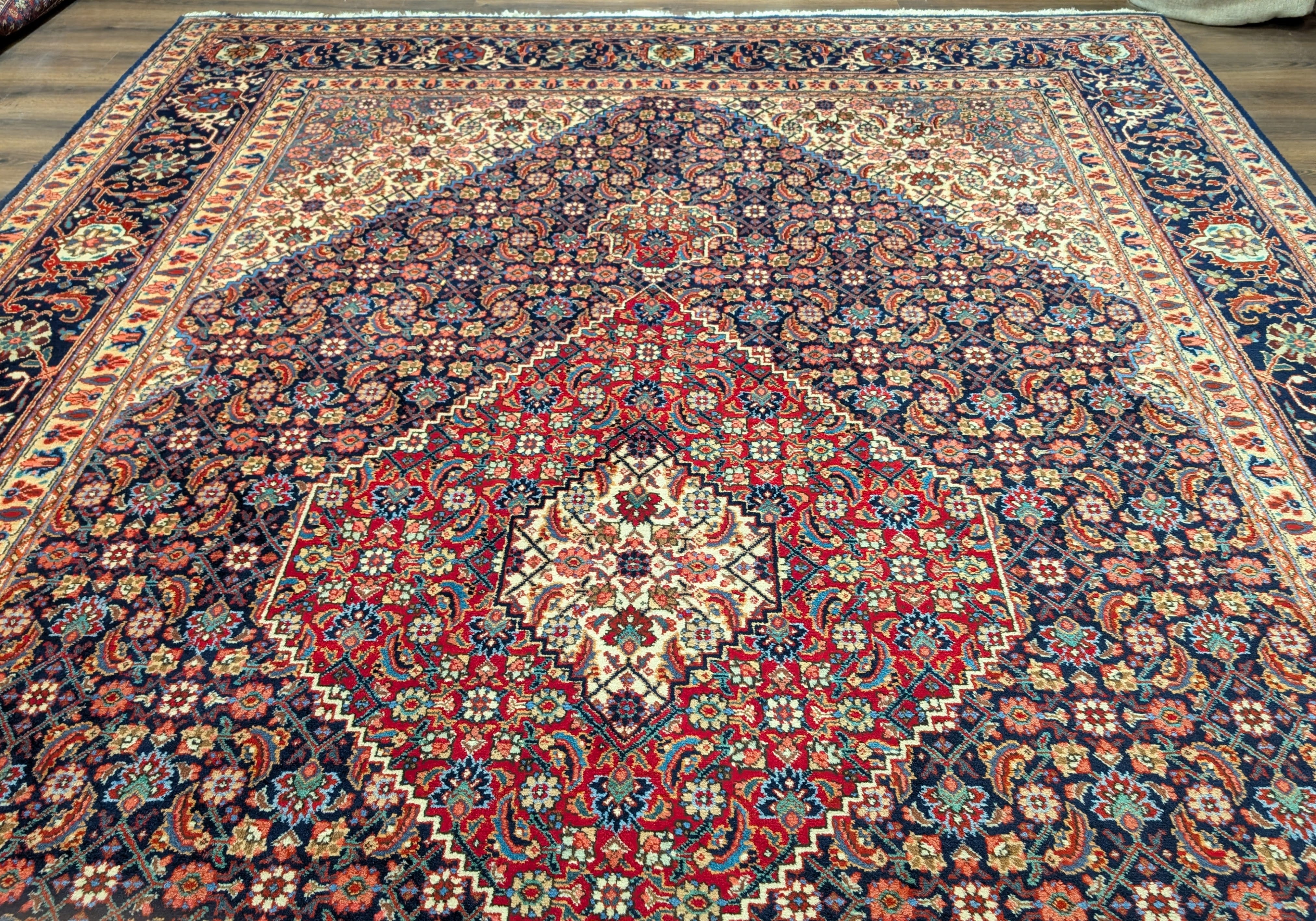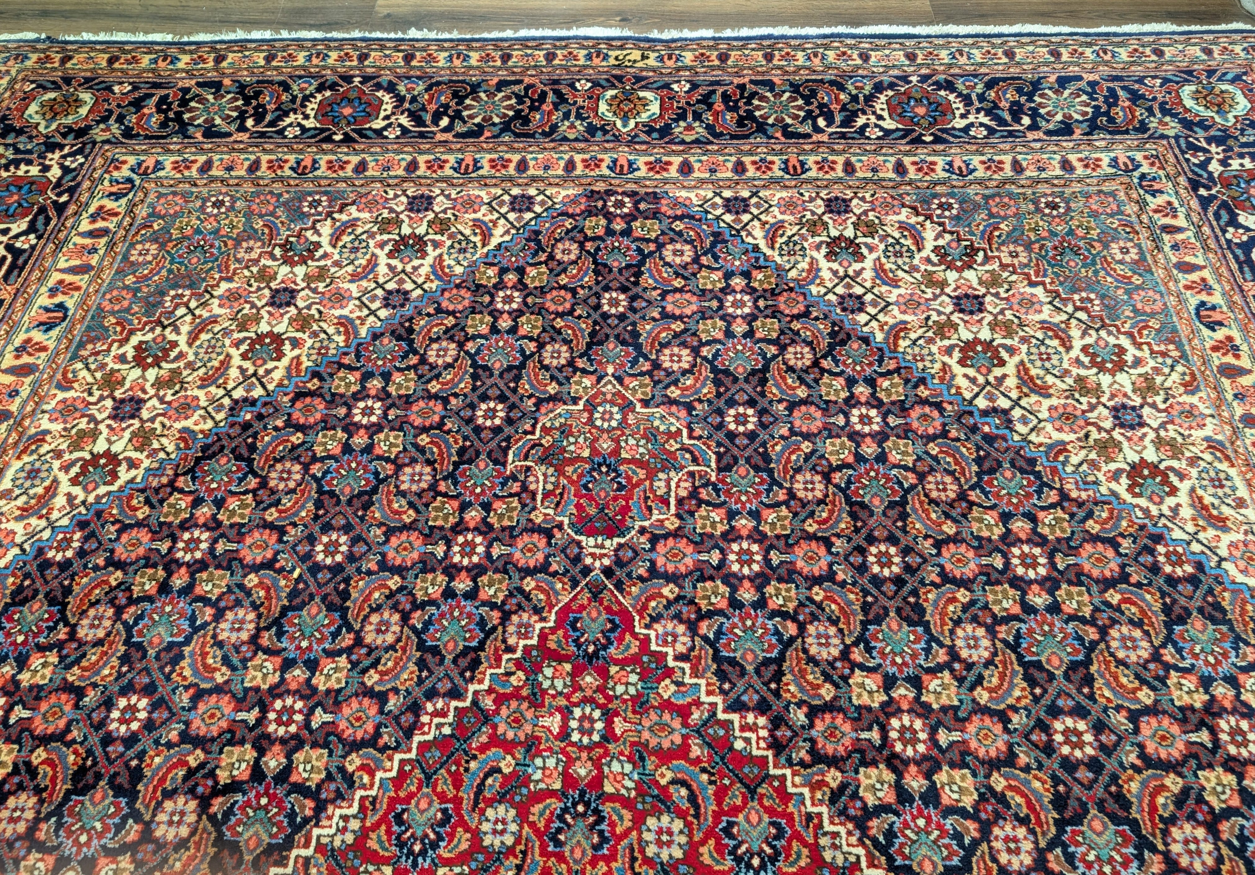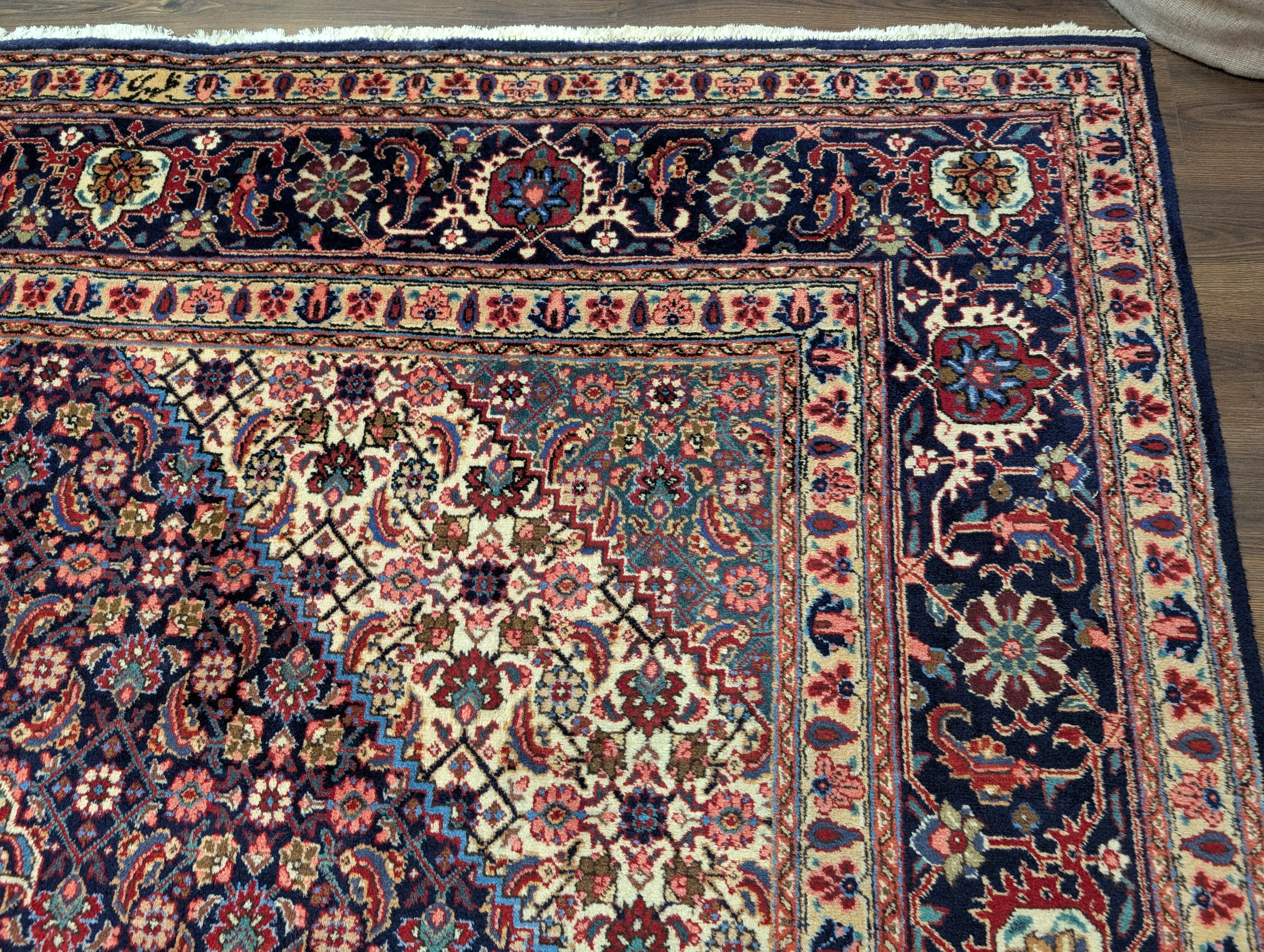 Persian Tabriz Rug 10x13 ft, Herati Mahi, Medallion, Signed By Master Weaver, Navy Blue