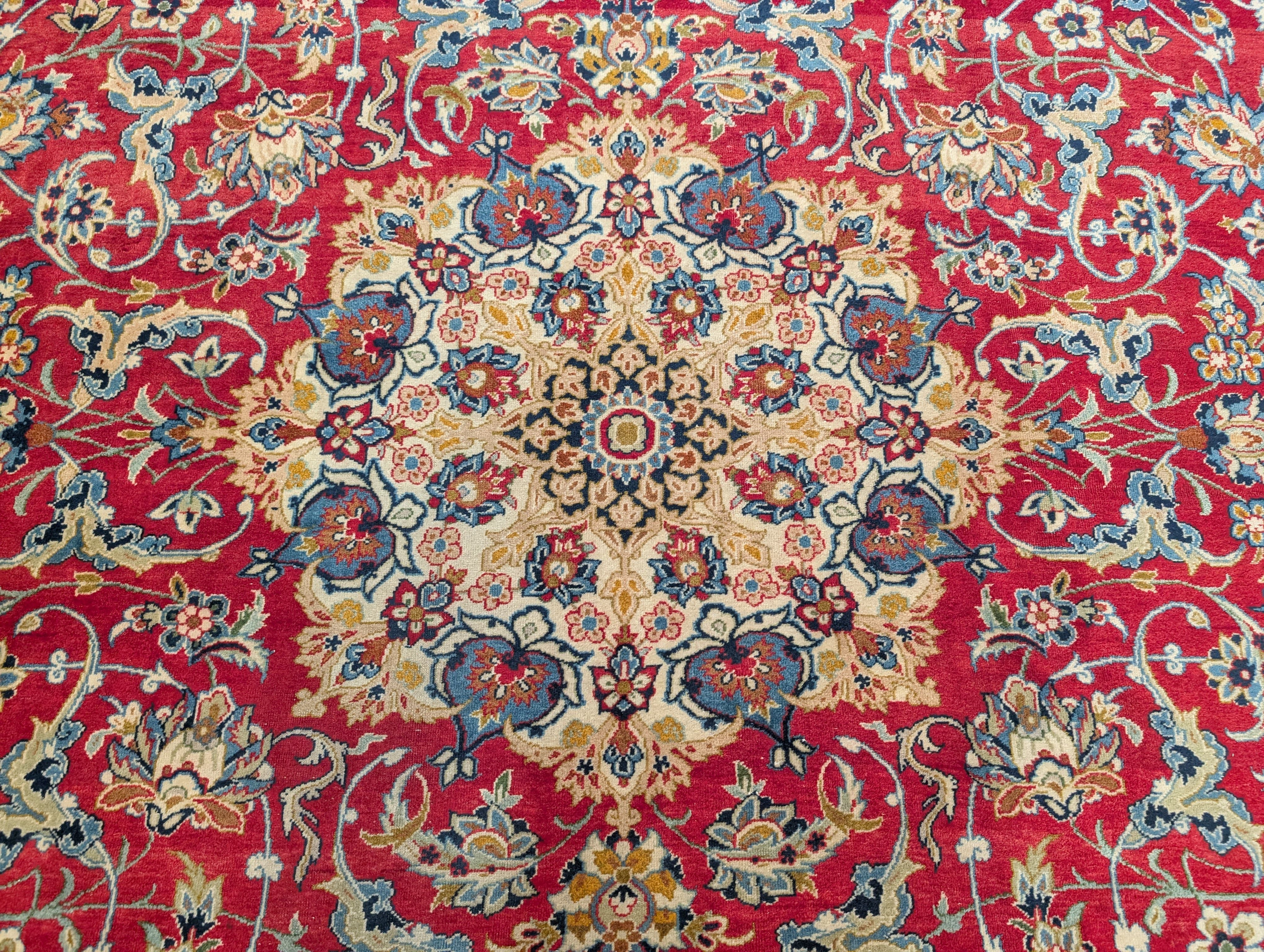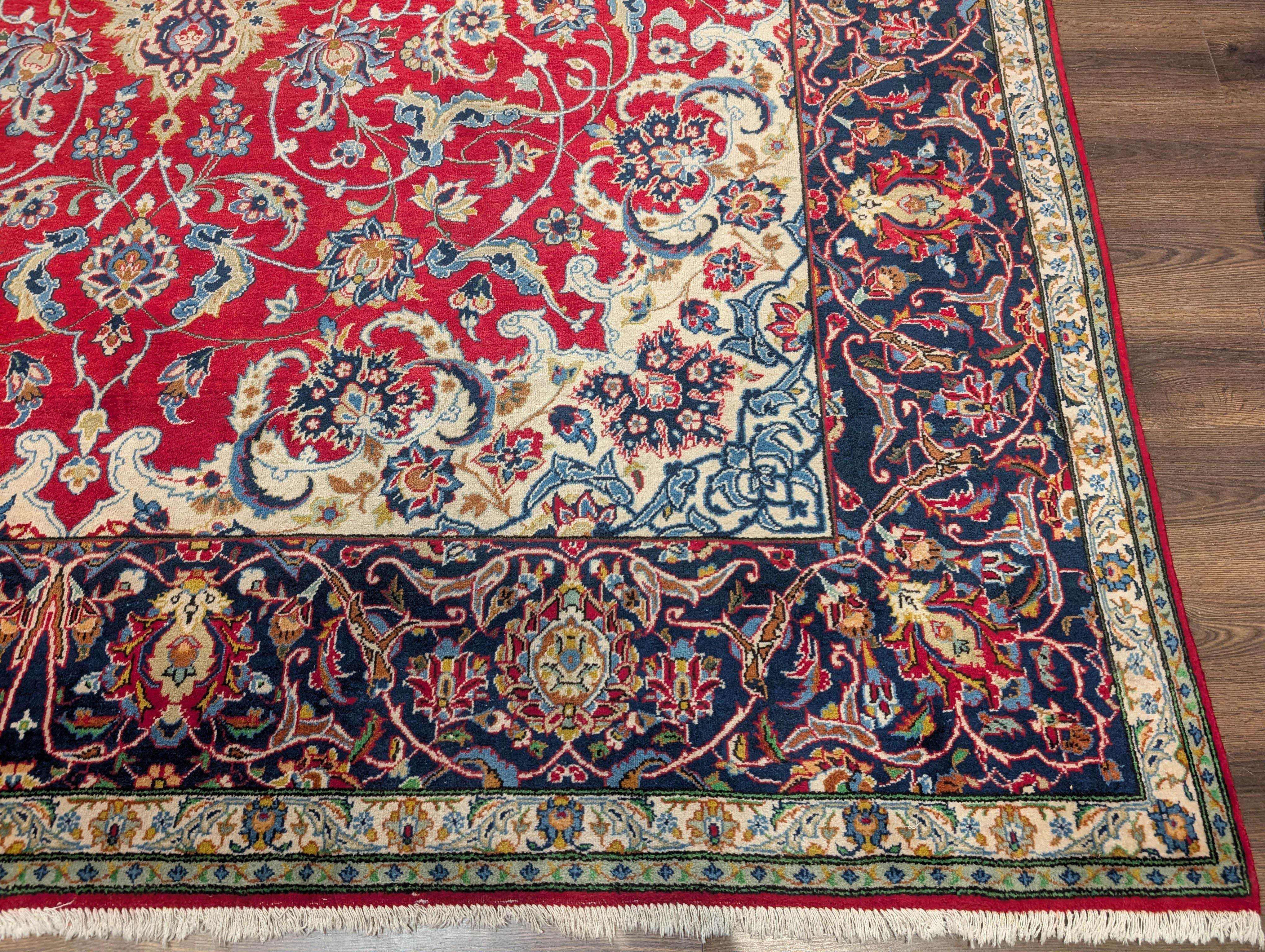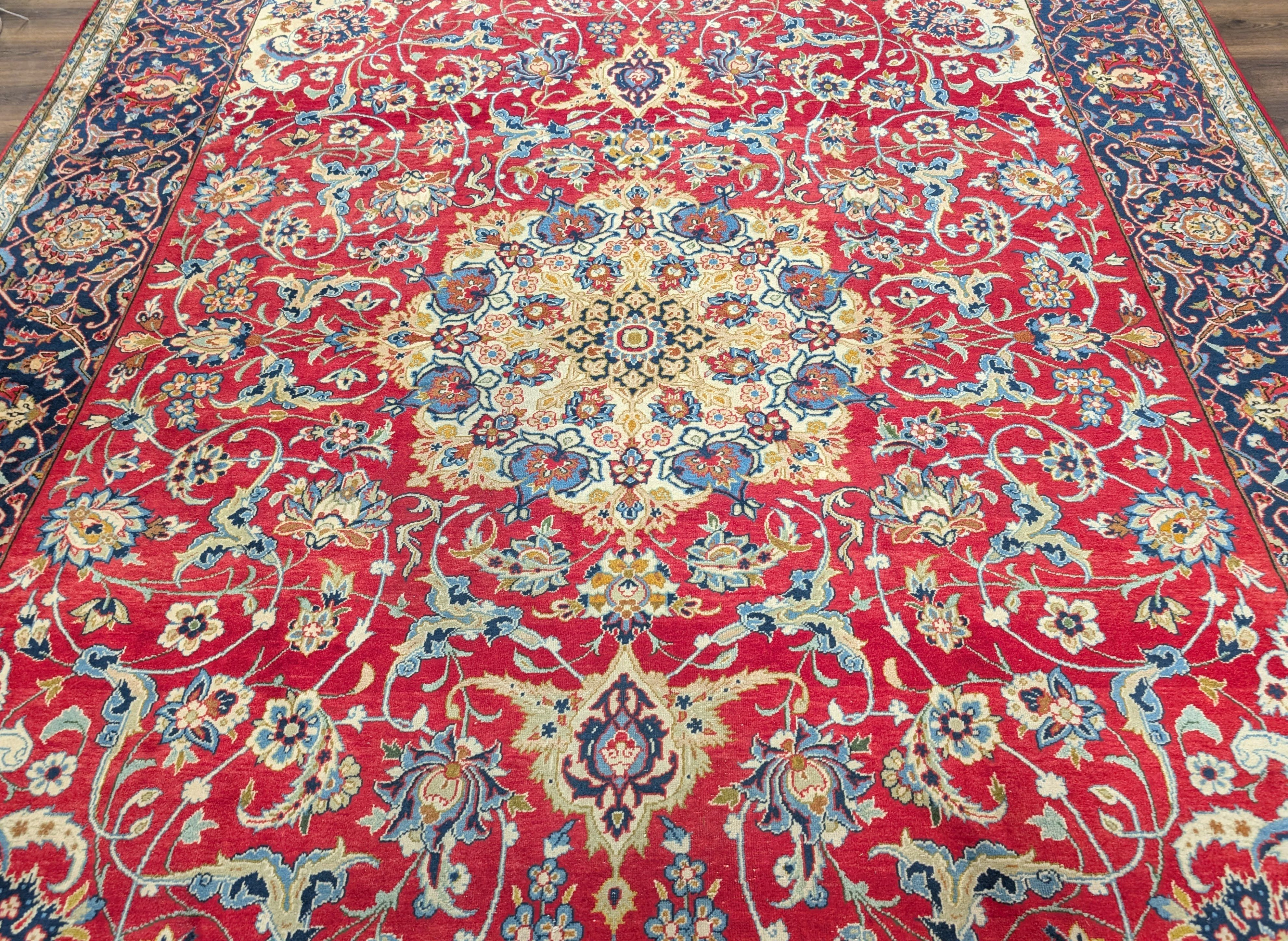 Red Persian Isfahan Rug 10x14, Floral Medallion, Handmade, Wonderful Colors, Wool, Najafabad Rug