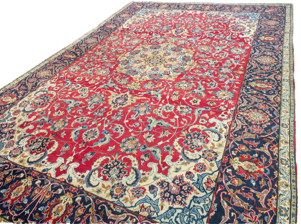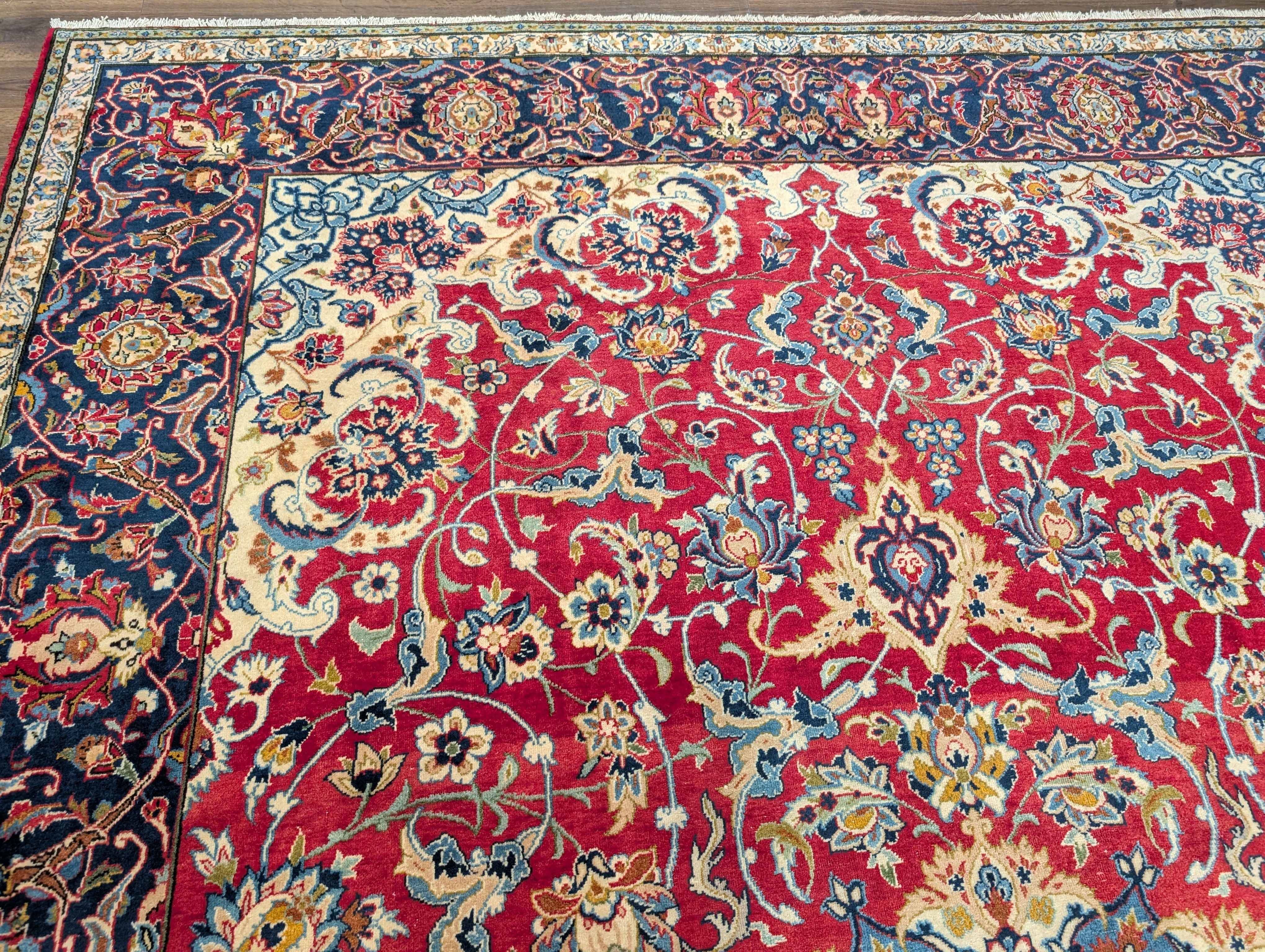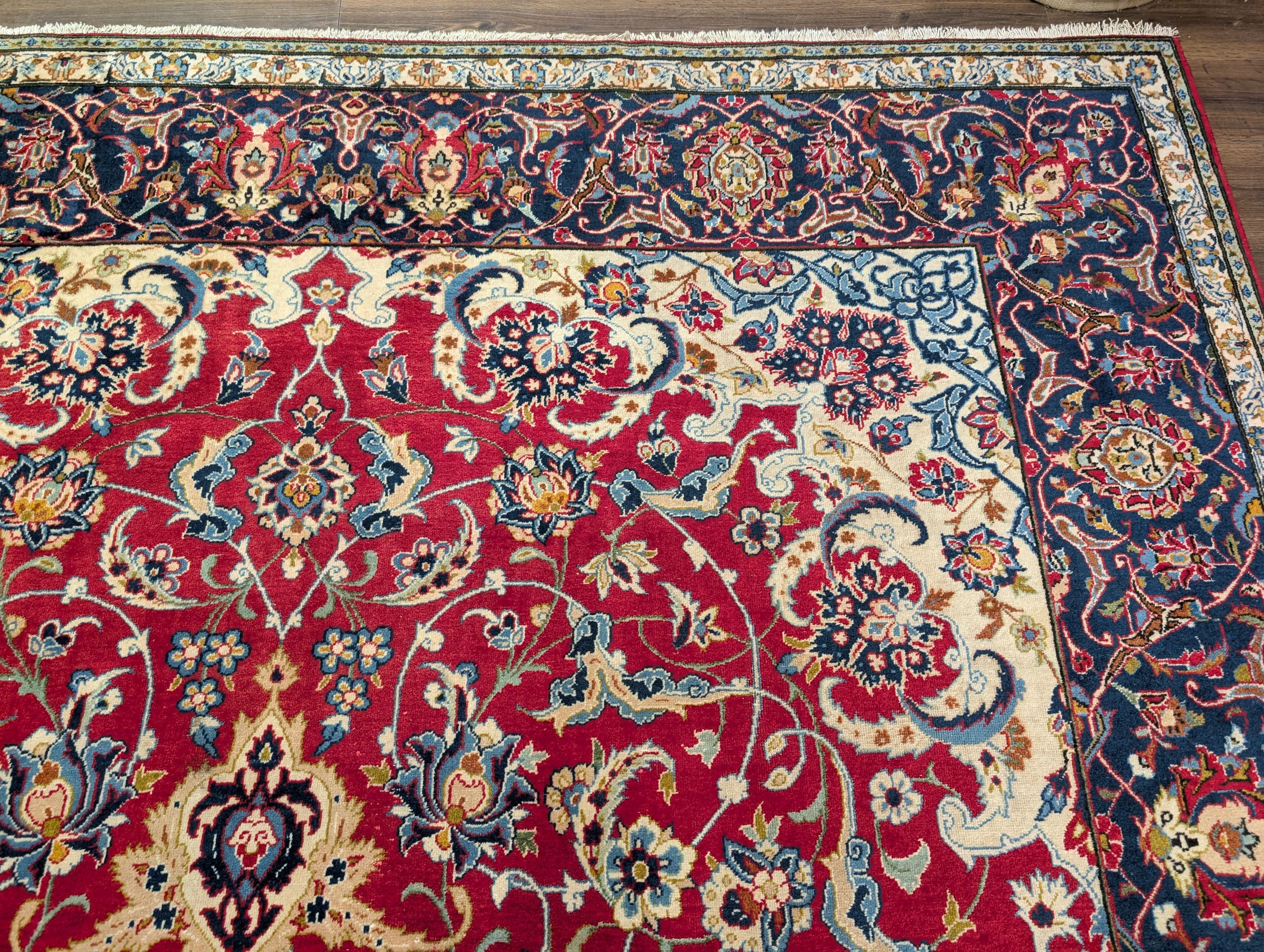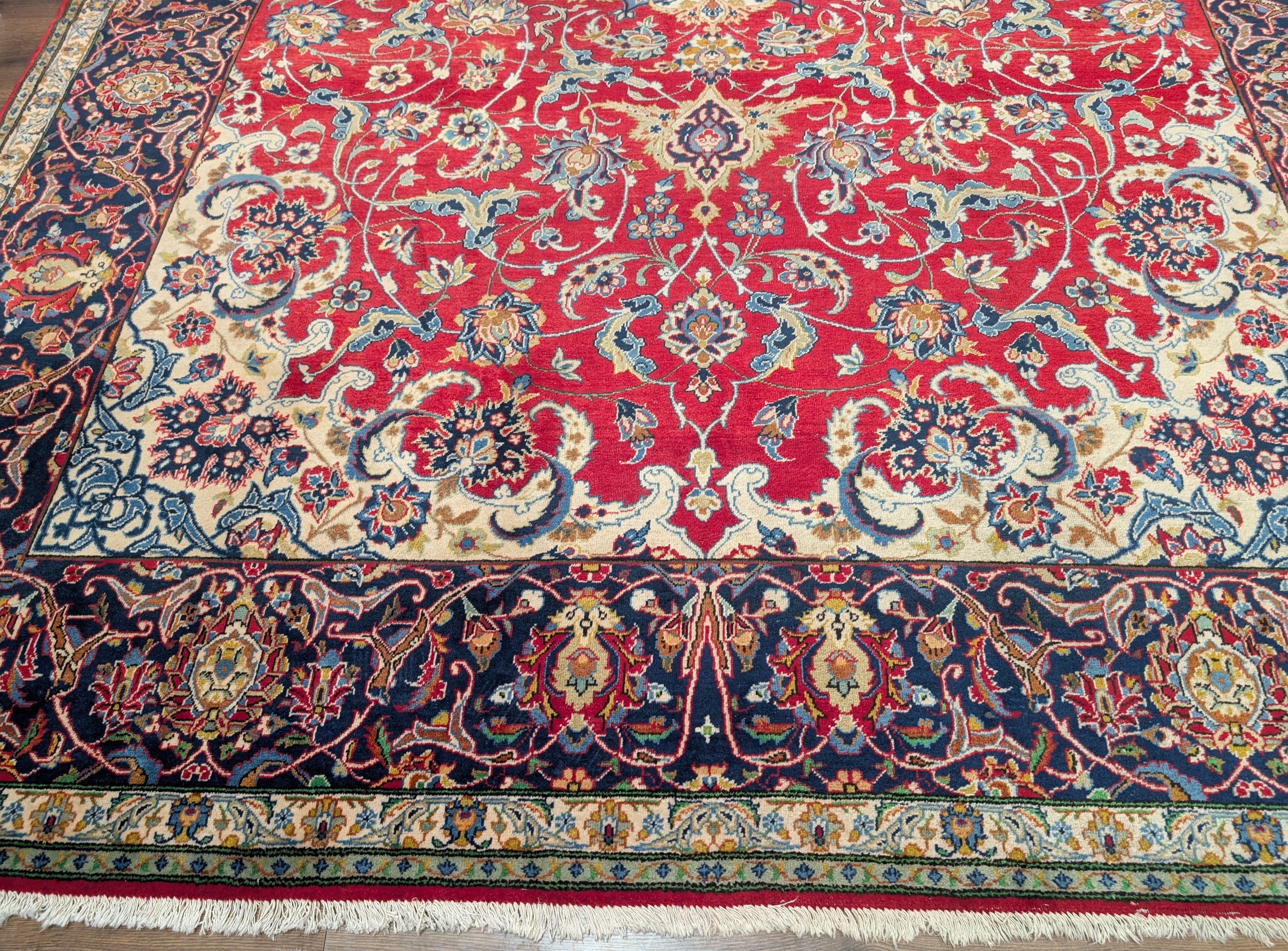 Red Persian Isfahan Rug 10x14, Floral Medallion, Handmade, Wonderful Colors, Wool, Najafabad Rug