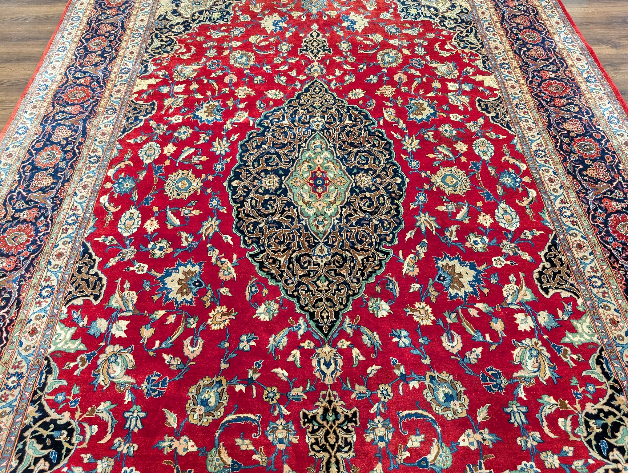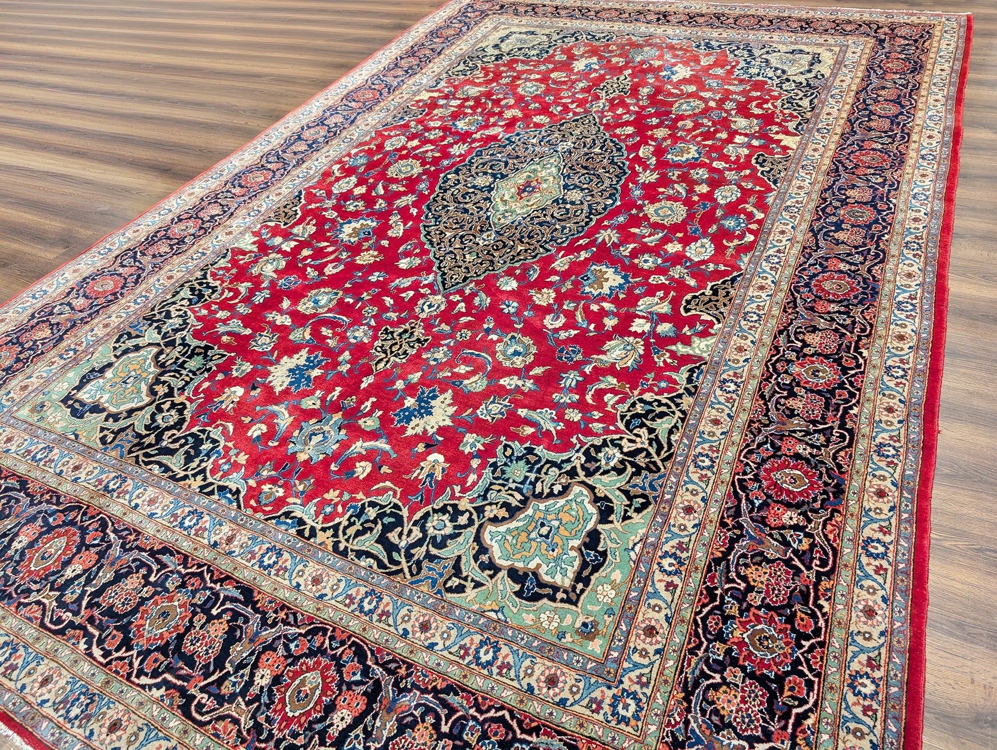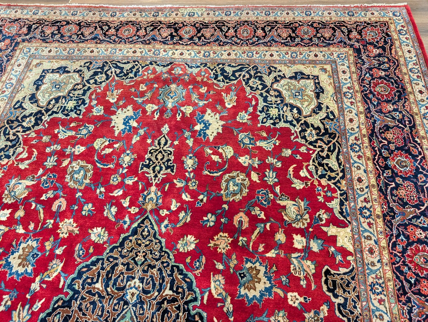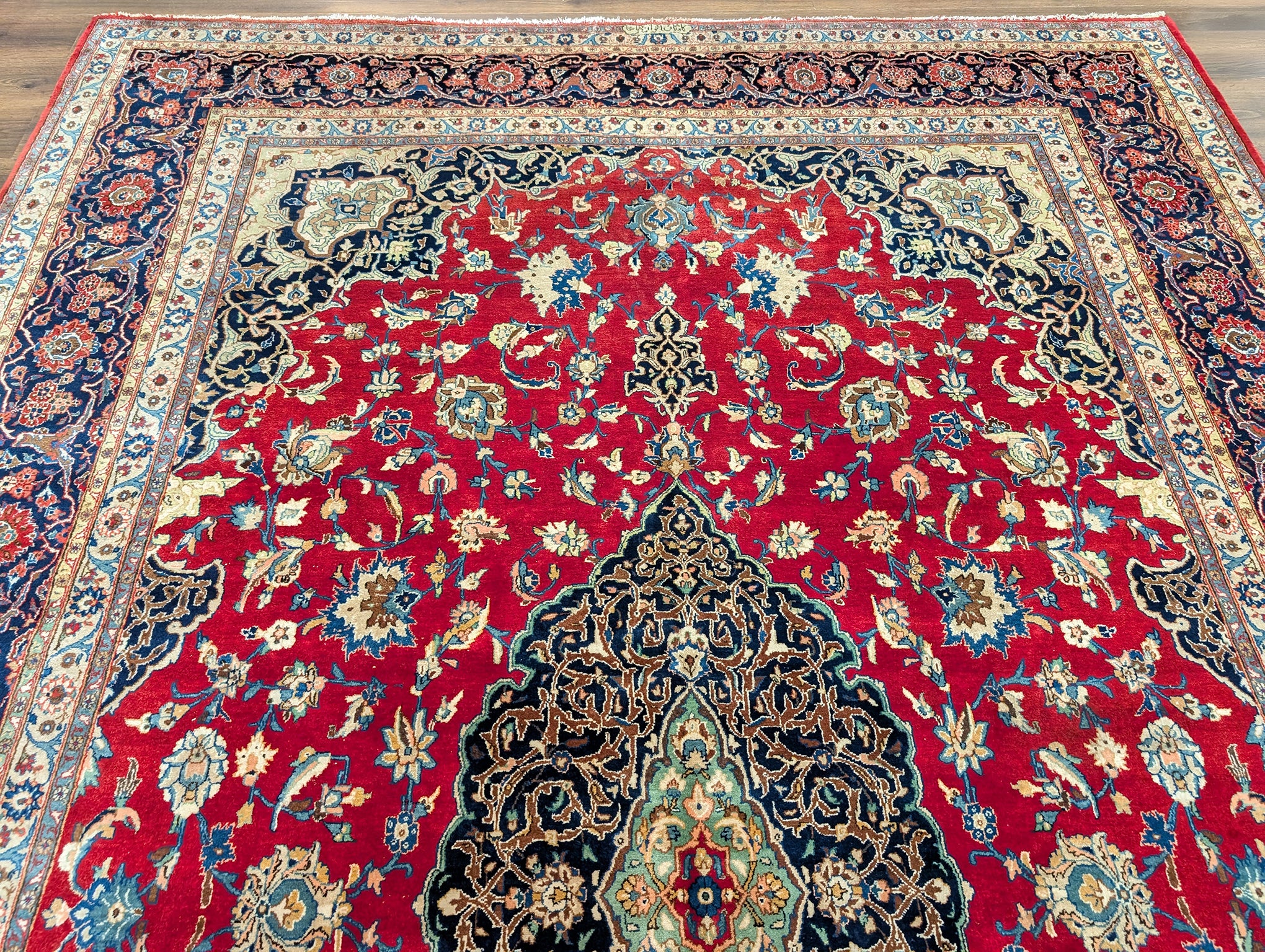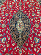 Red Persian Kashan Rug 9x14, Floral Medallion, Signed