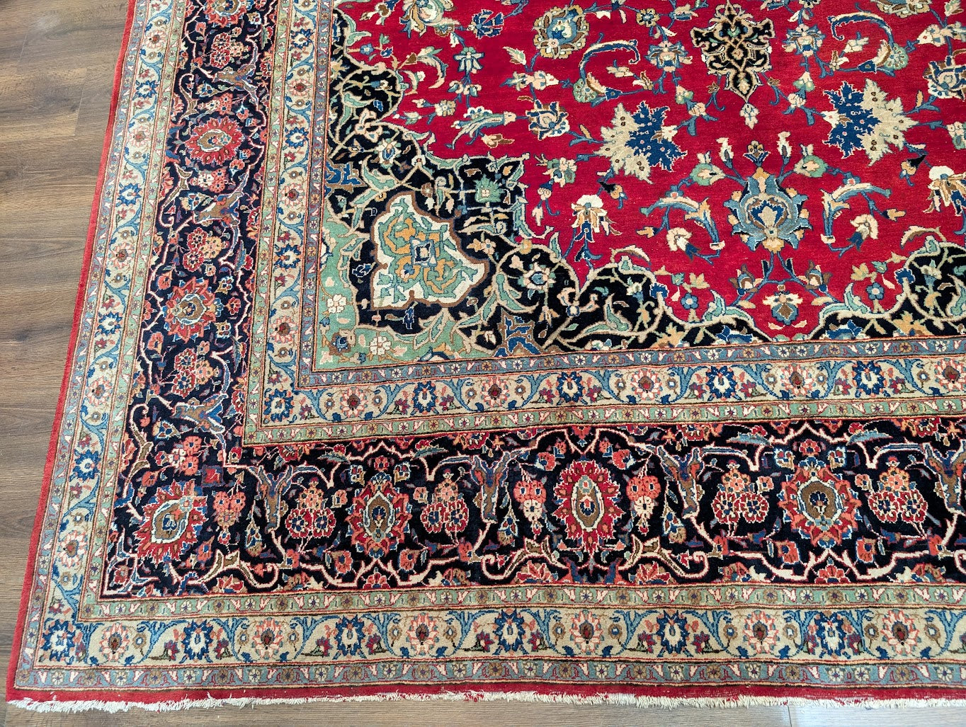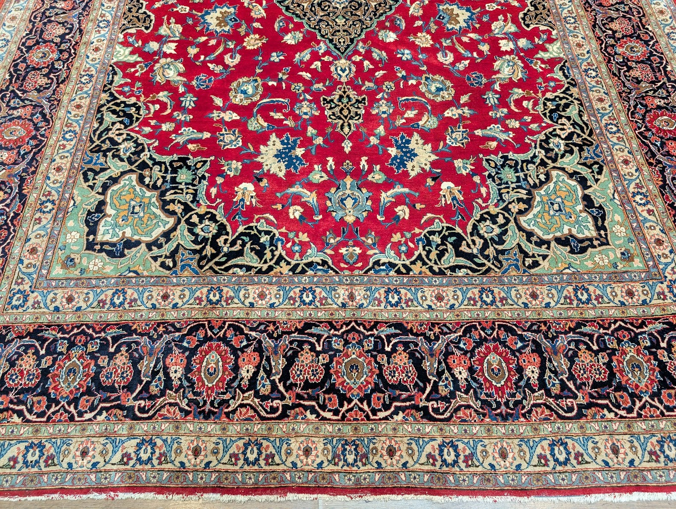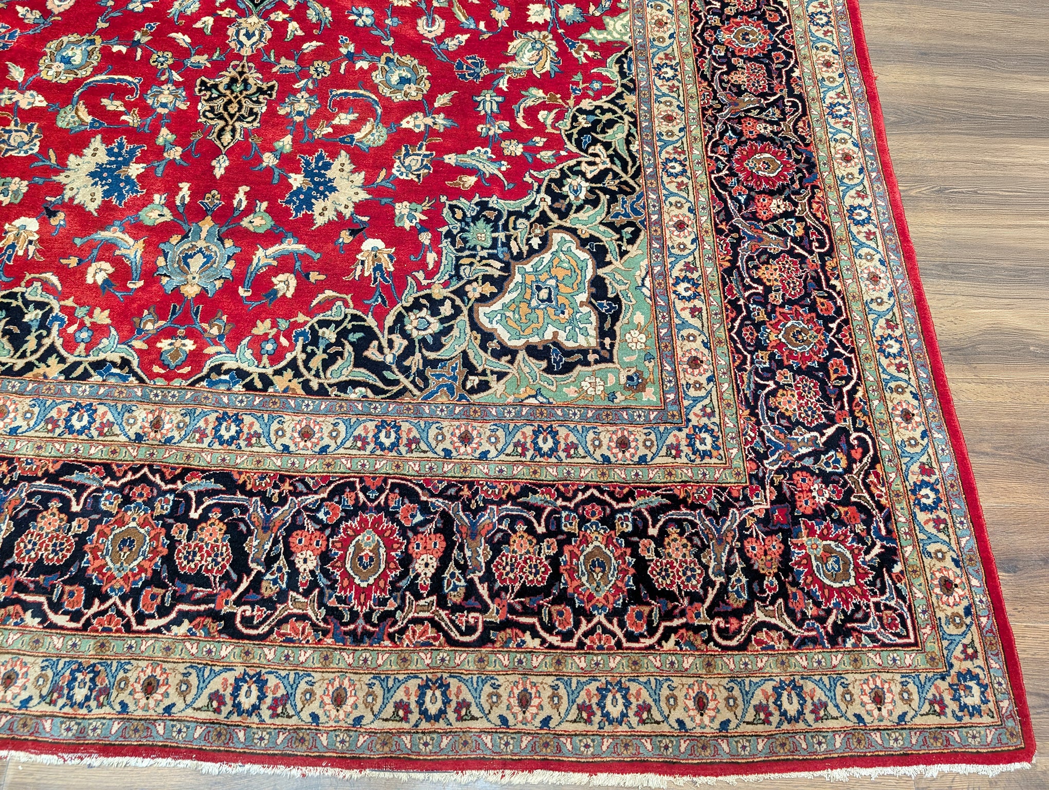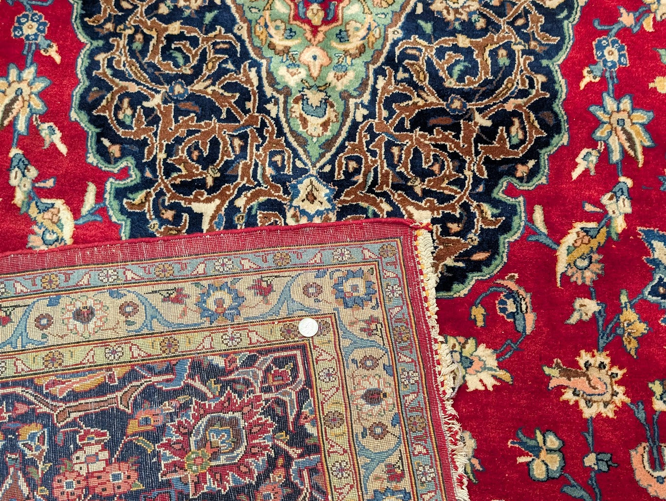 Red Persian Kashan Rug 9x14, Floral Medallion, Signed