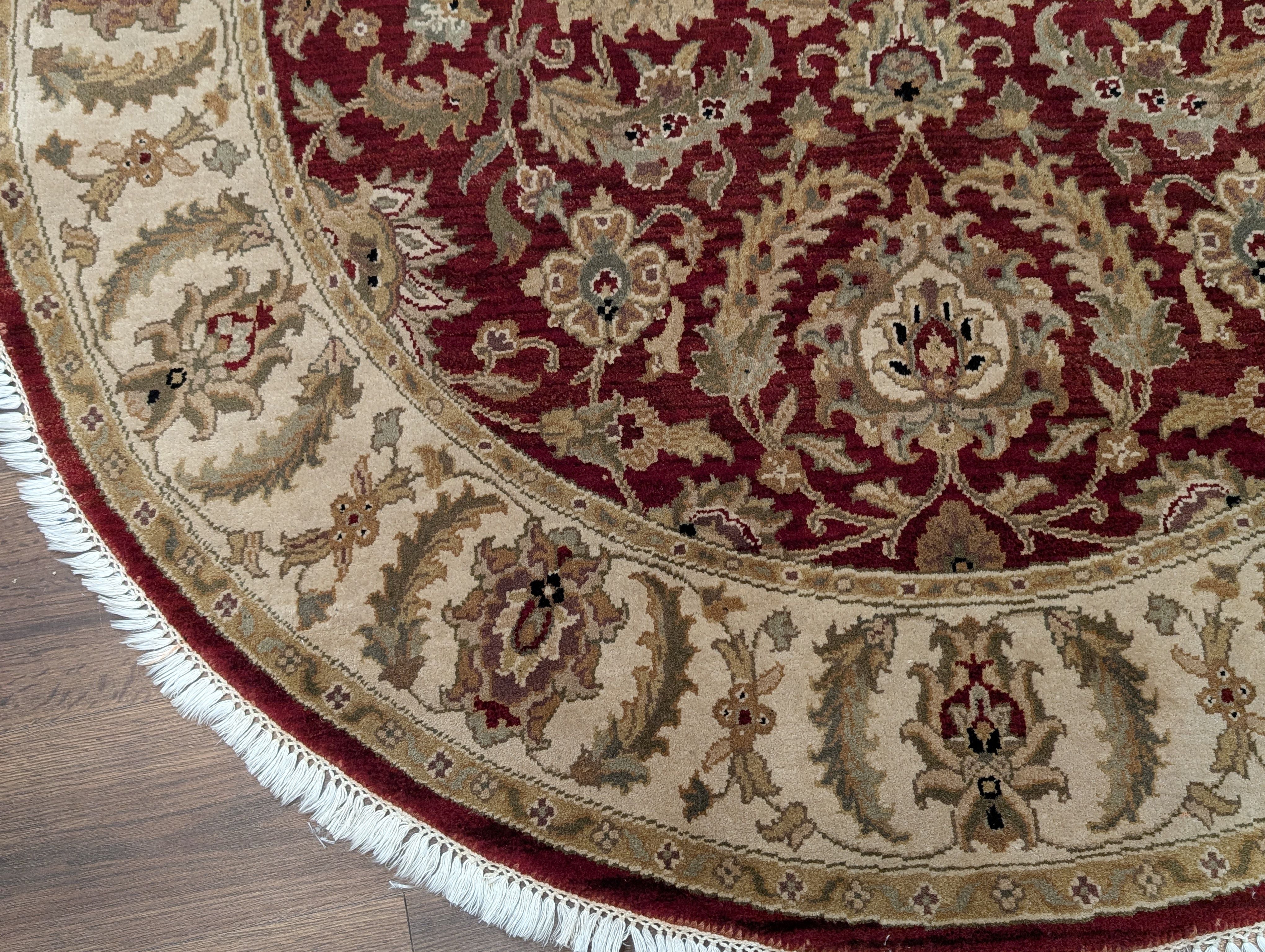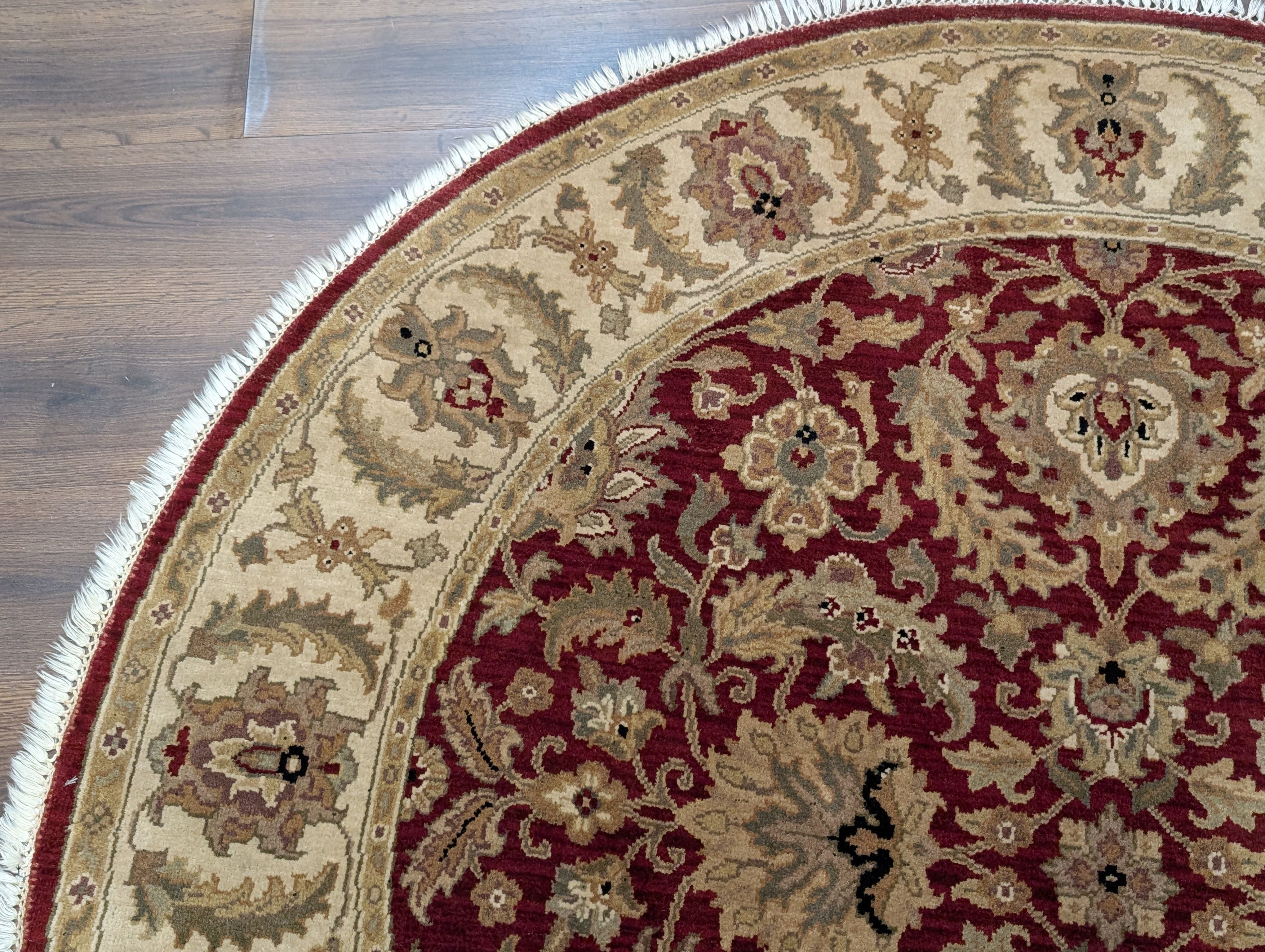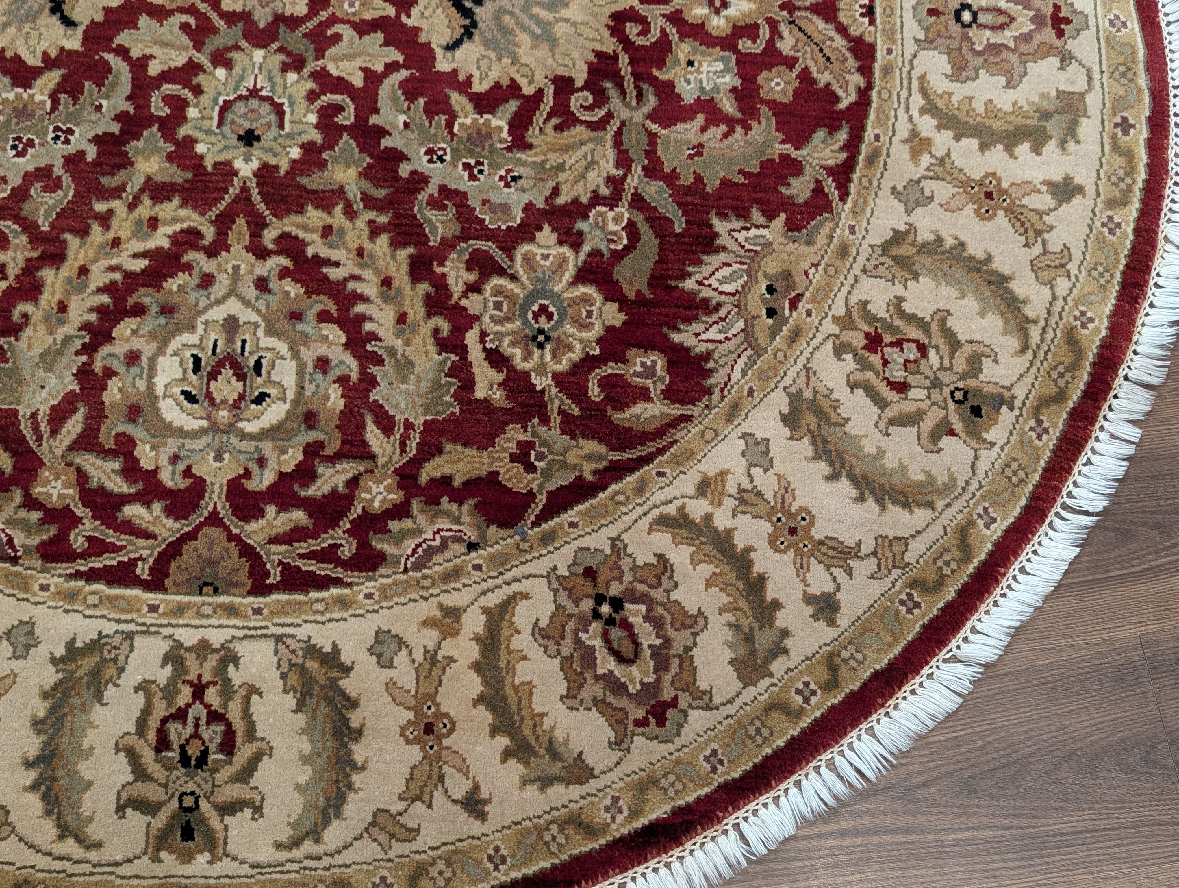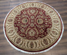 Round Indo Persian Mahal Rug 6x6, Burgundy