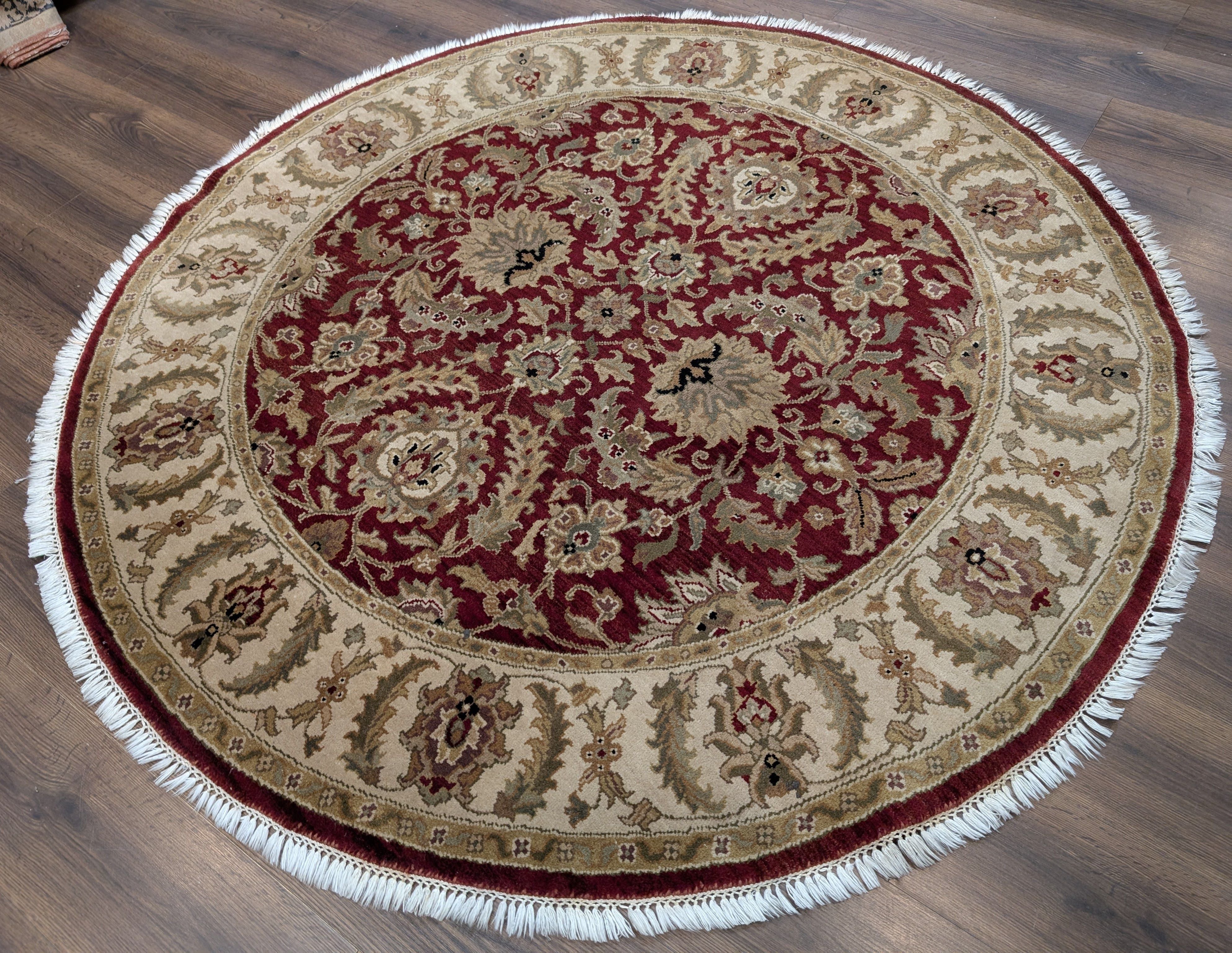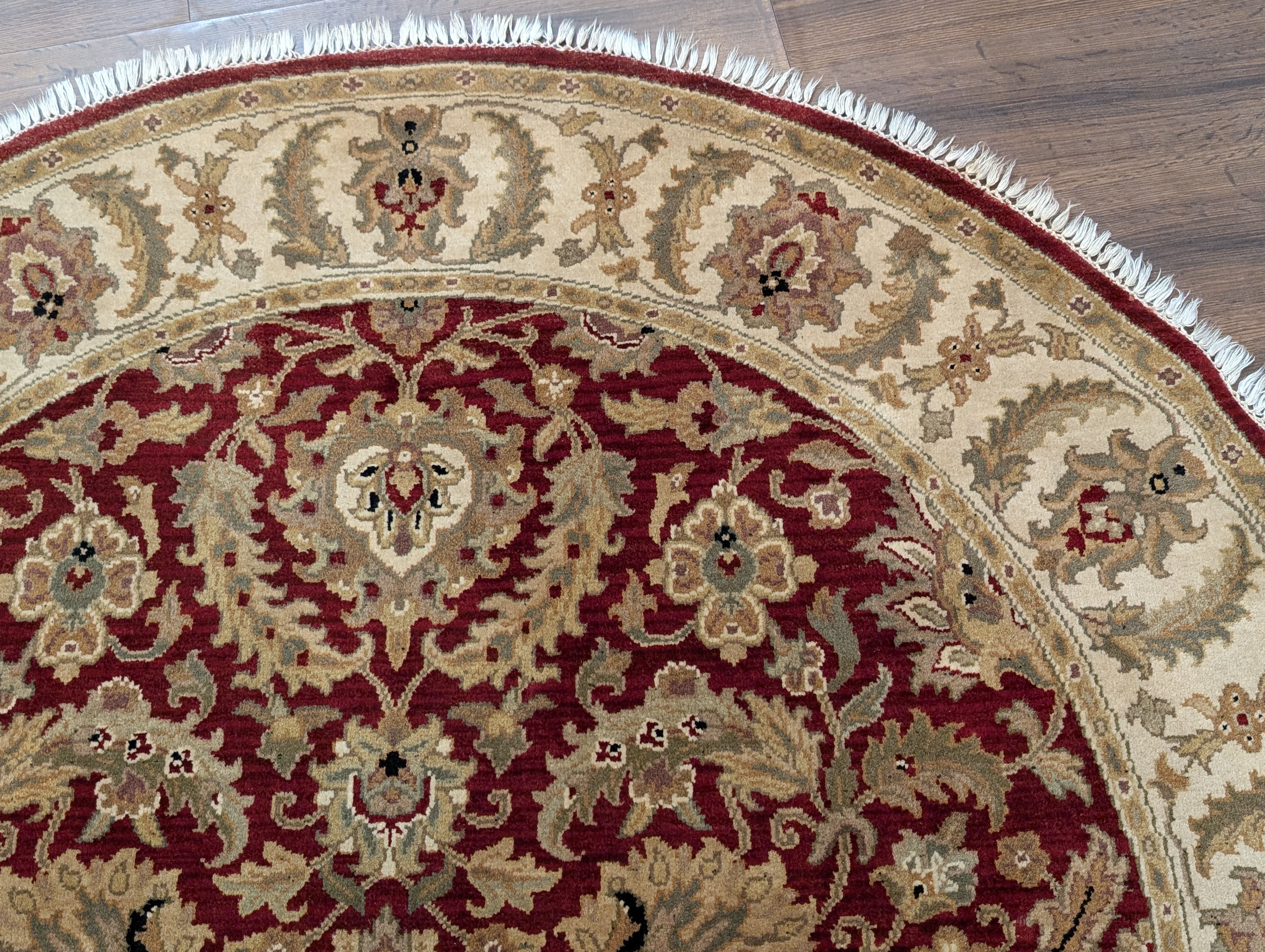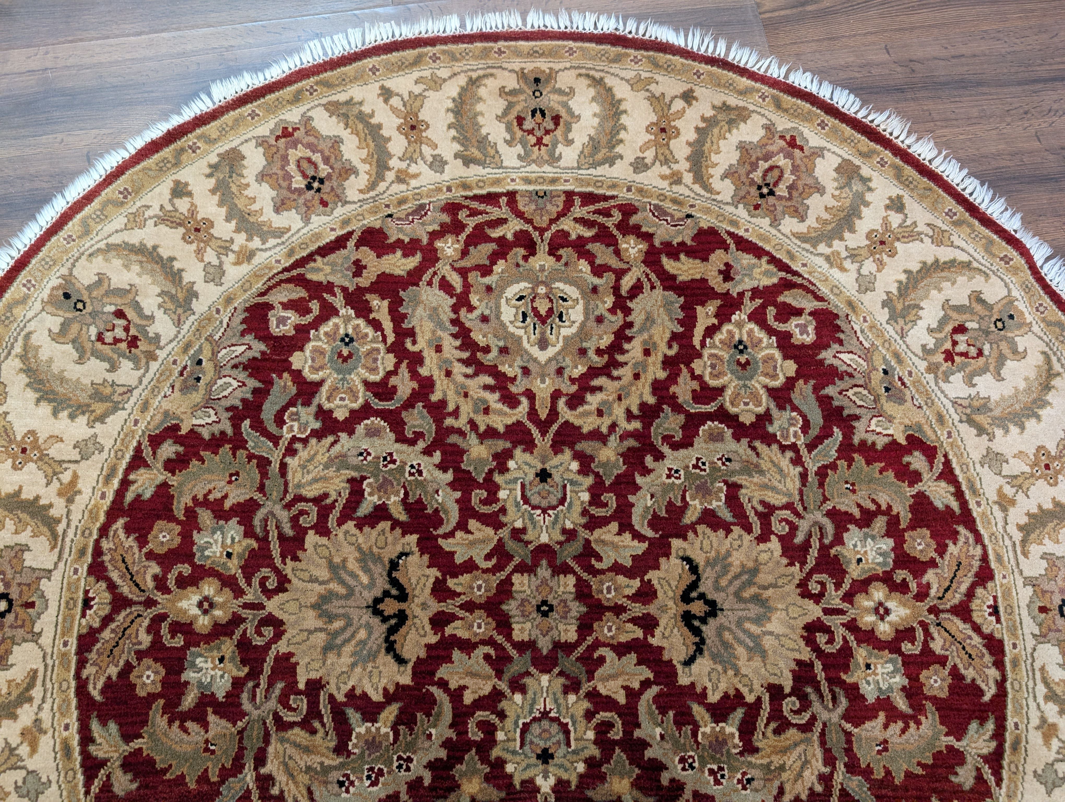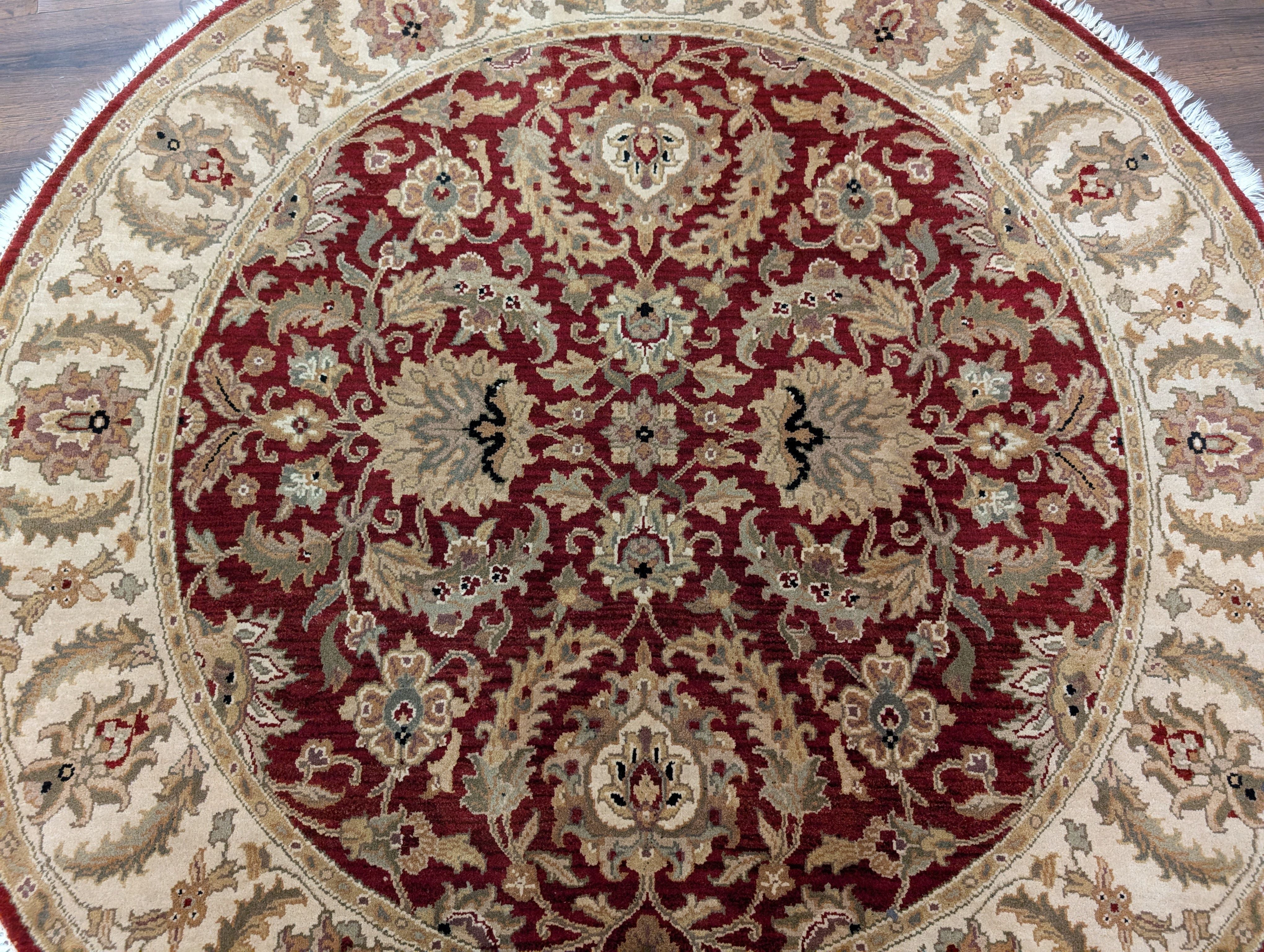 Round Indo Persian Mahal Rug 6x6, Burgundy