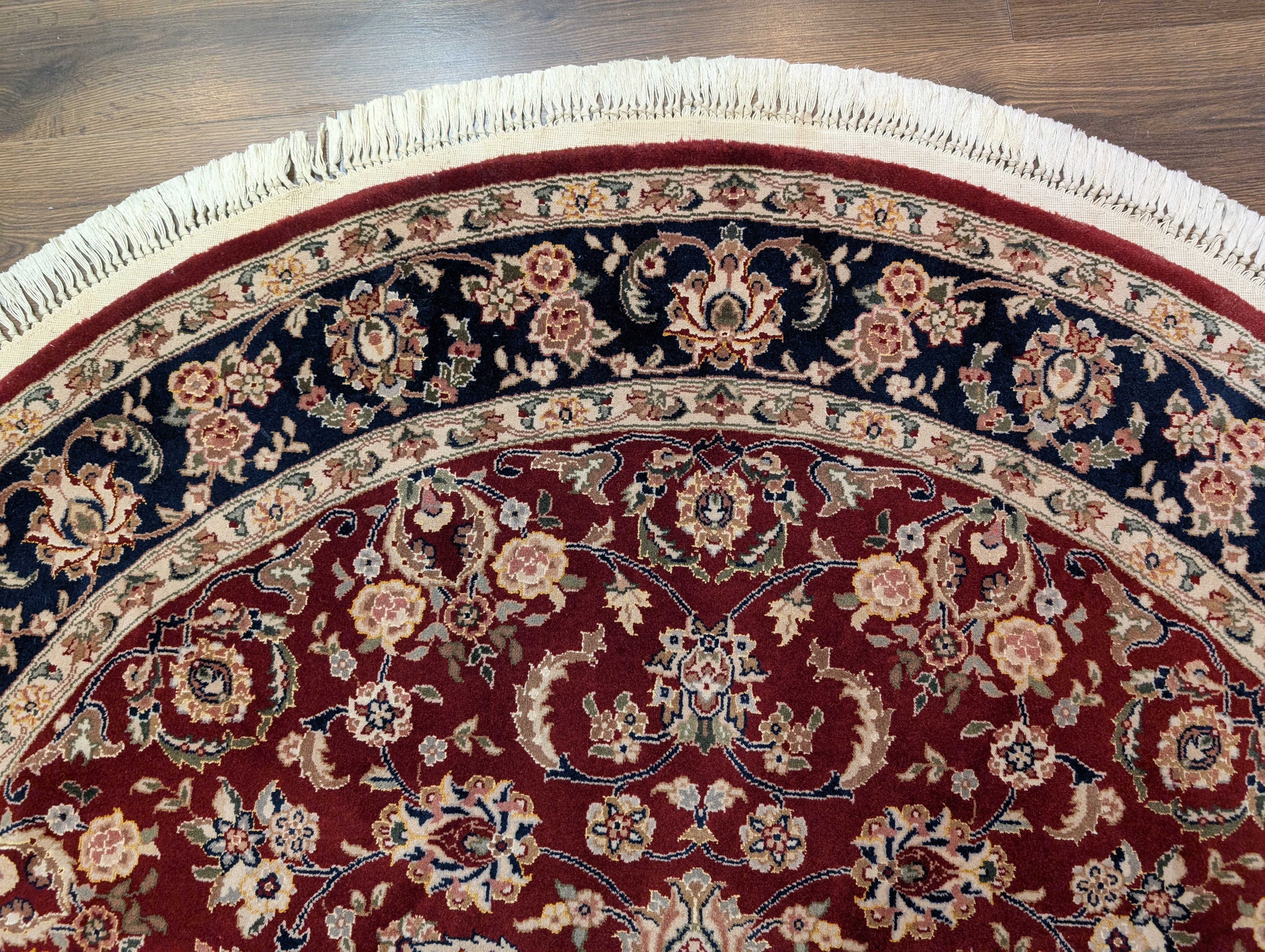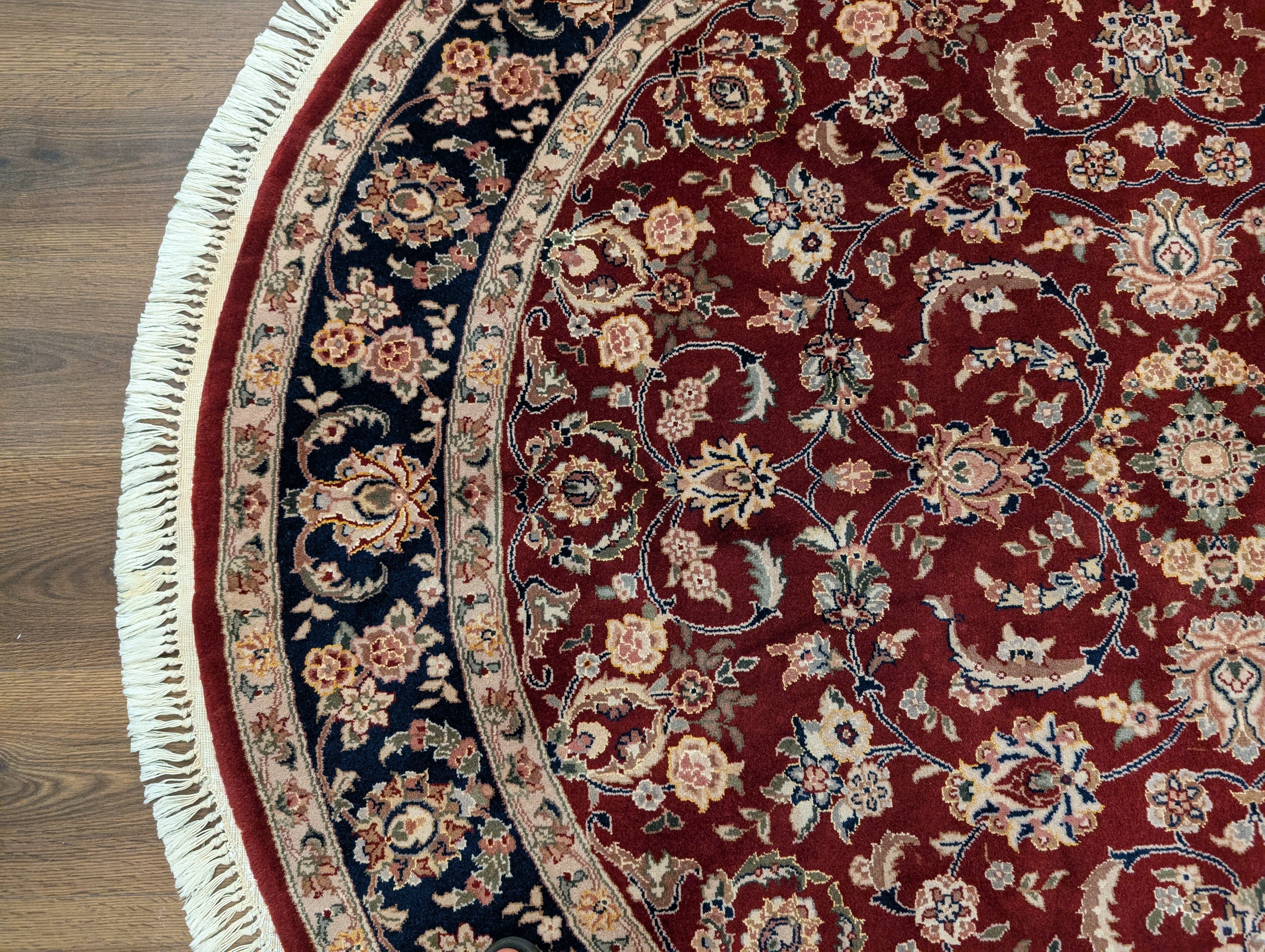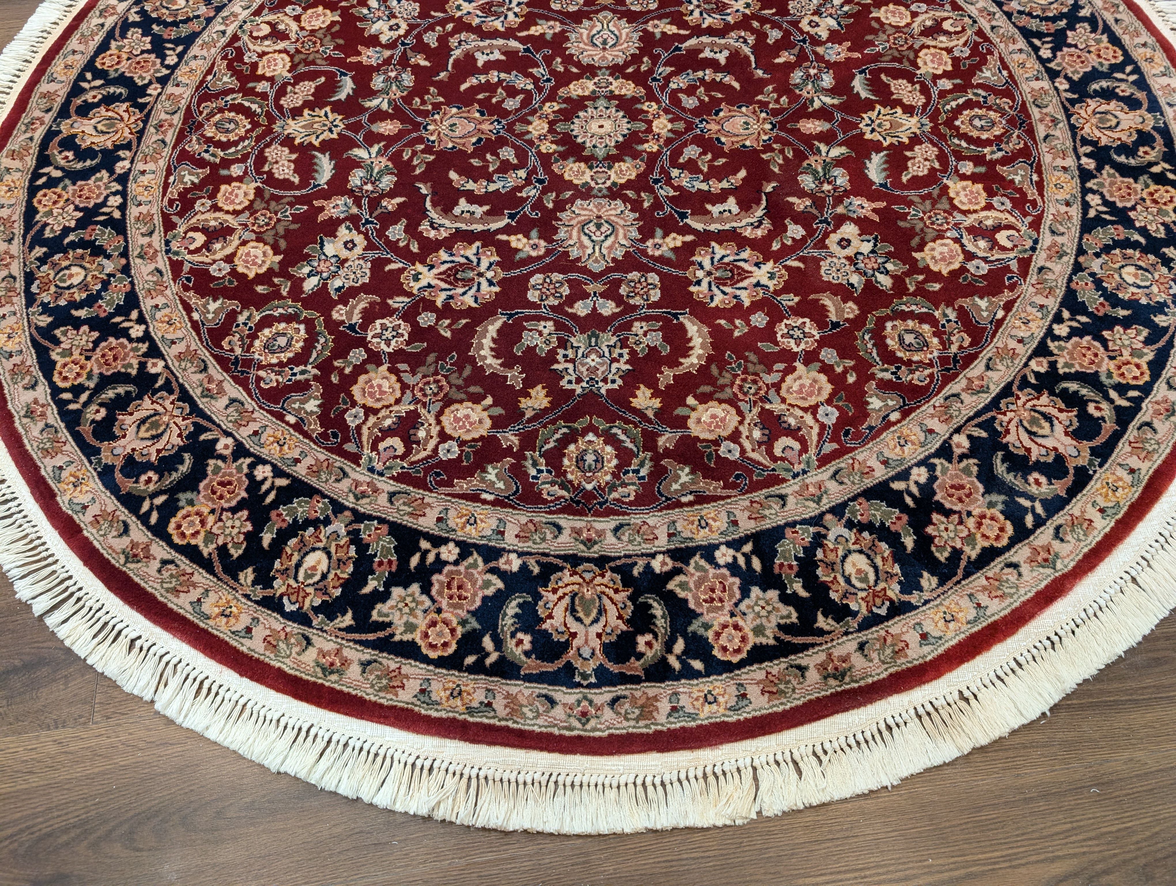 Round Indo Persian Rug 6x6, Fine 210 KPSI, Hand Knotted, Wool